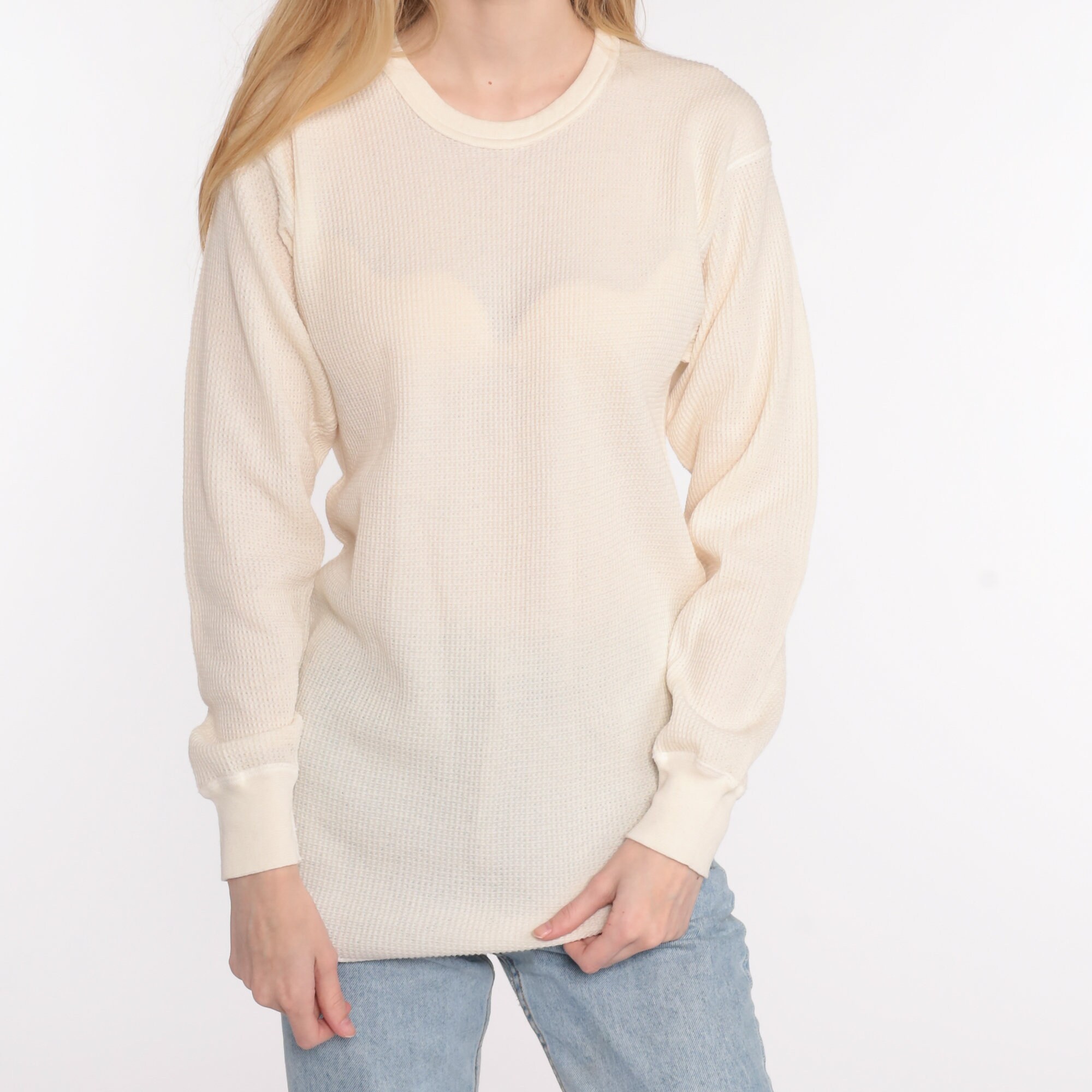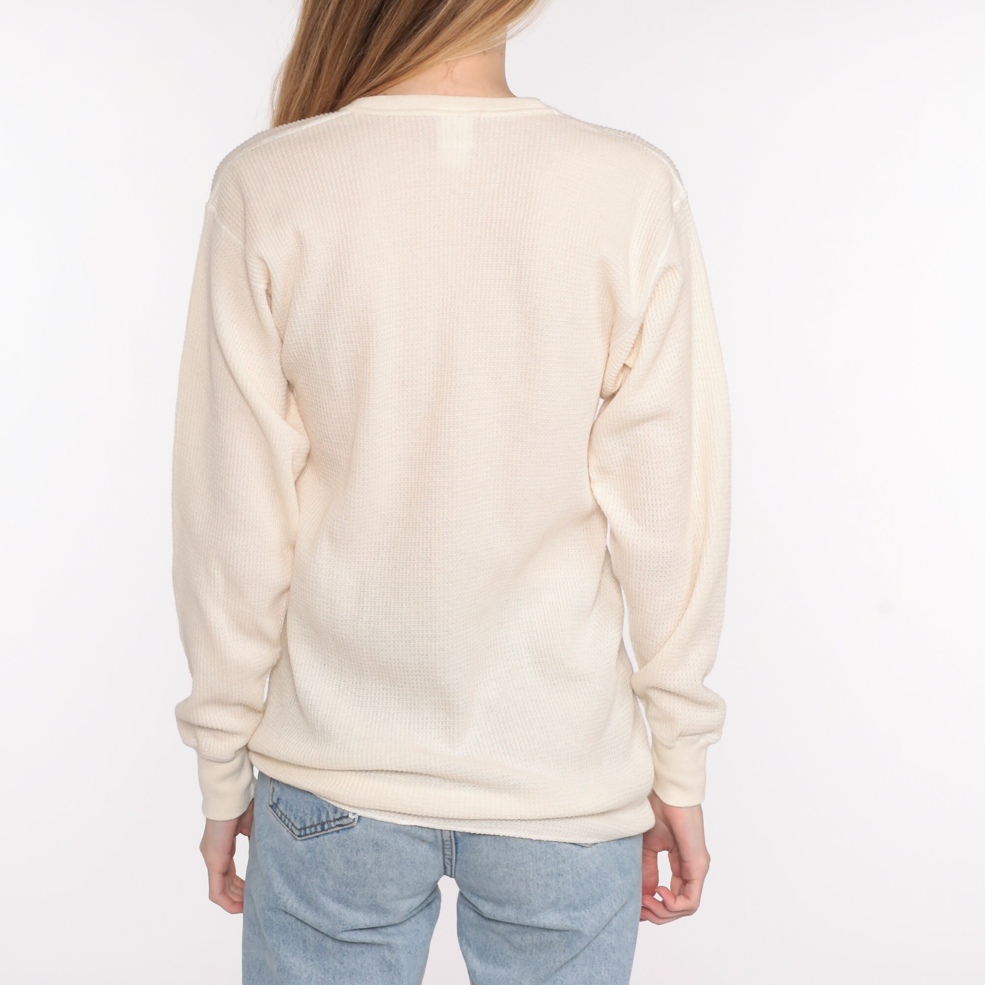 Vintage 80s shirt in cream thermal waffle knit.