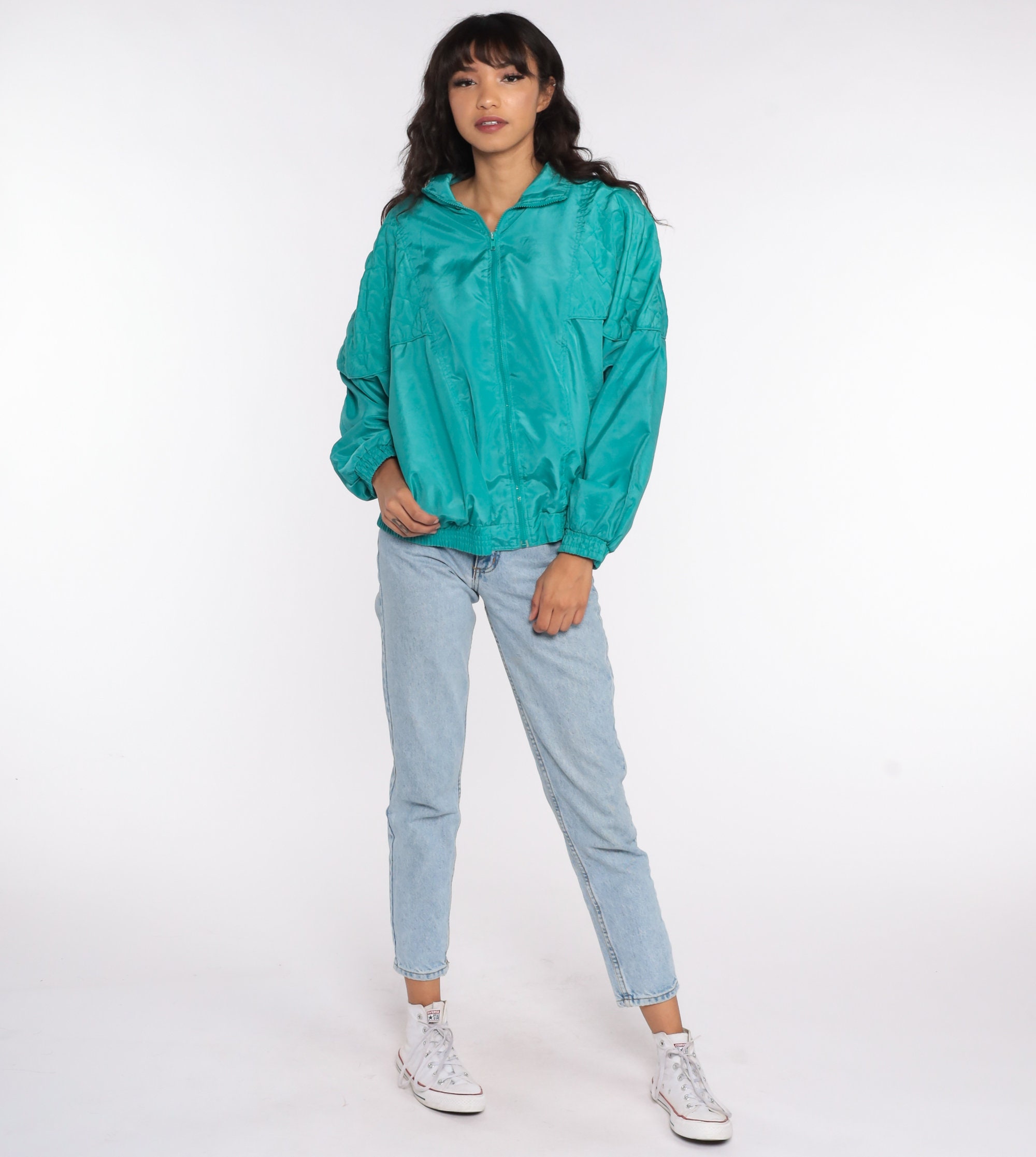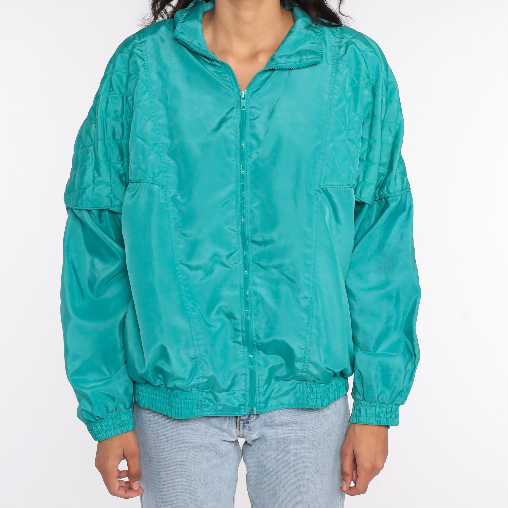 Vintage 80s 90s jacket in turquoise with quilting.