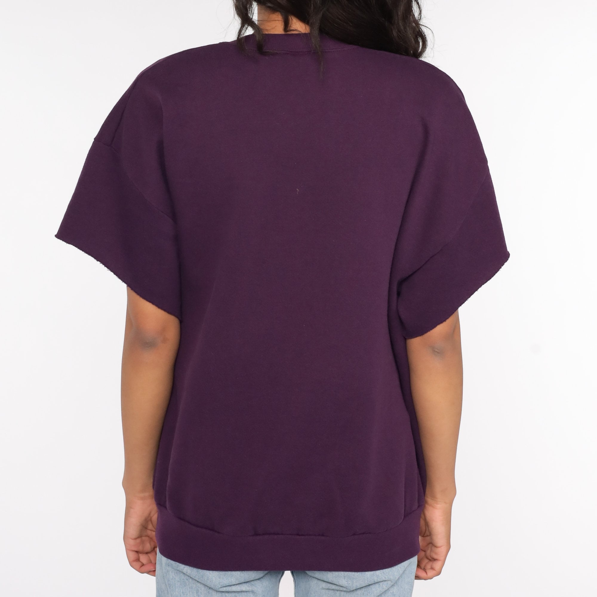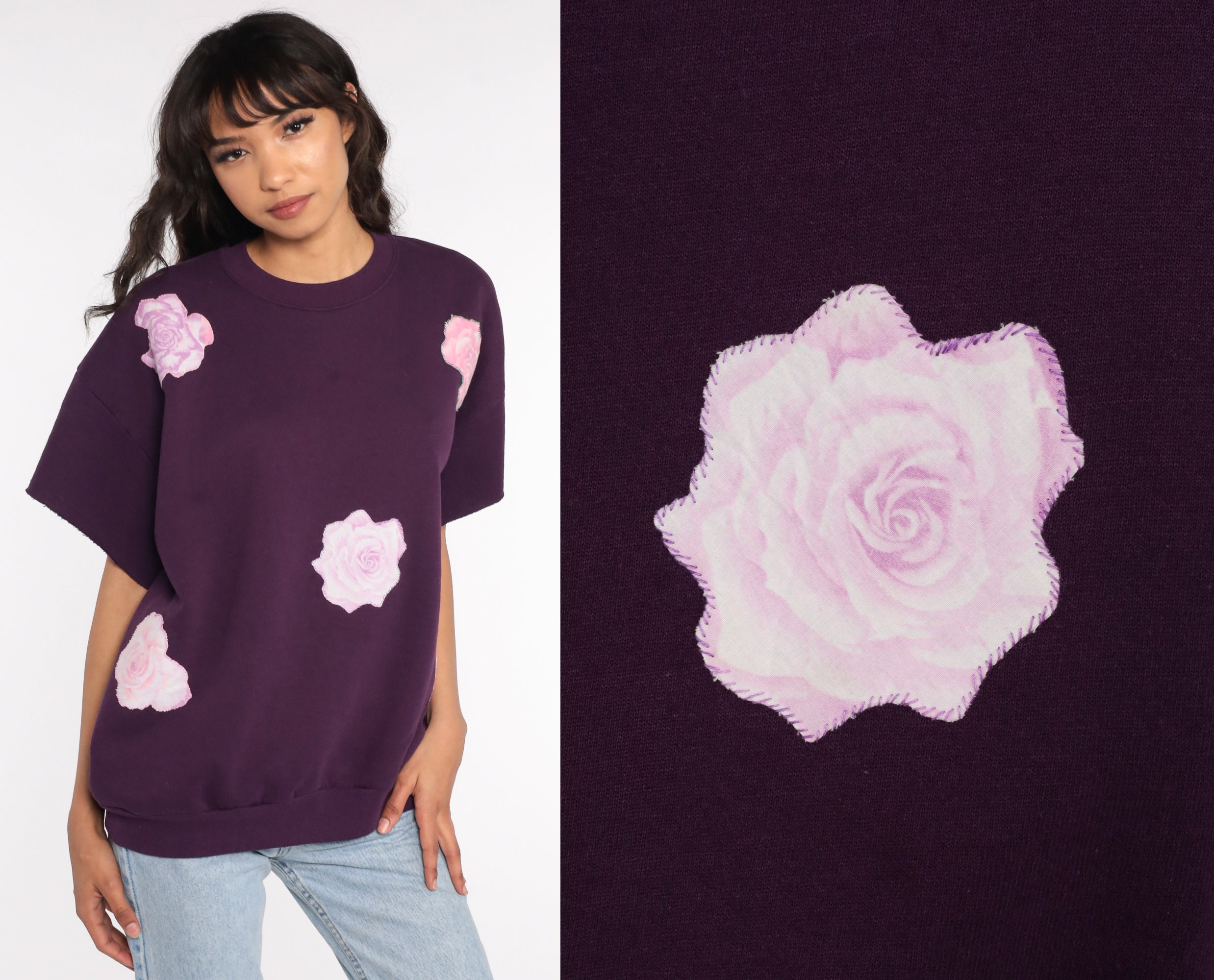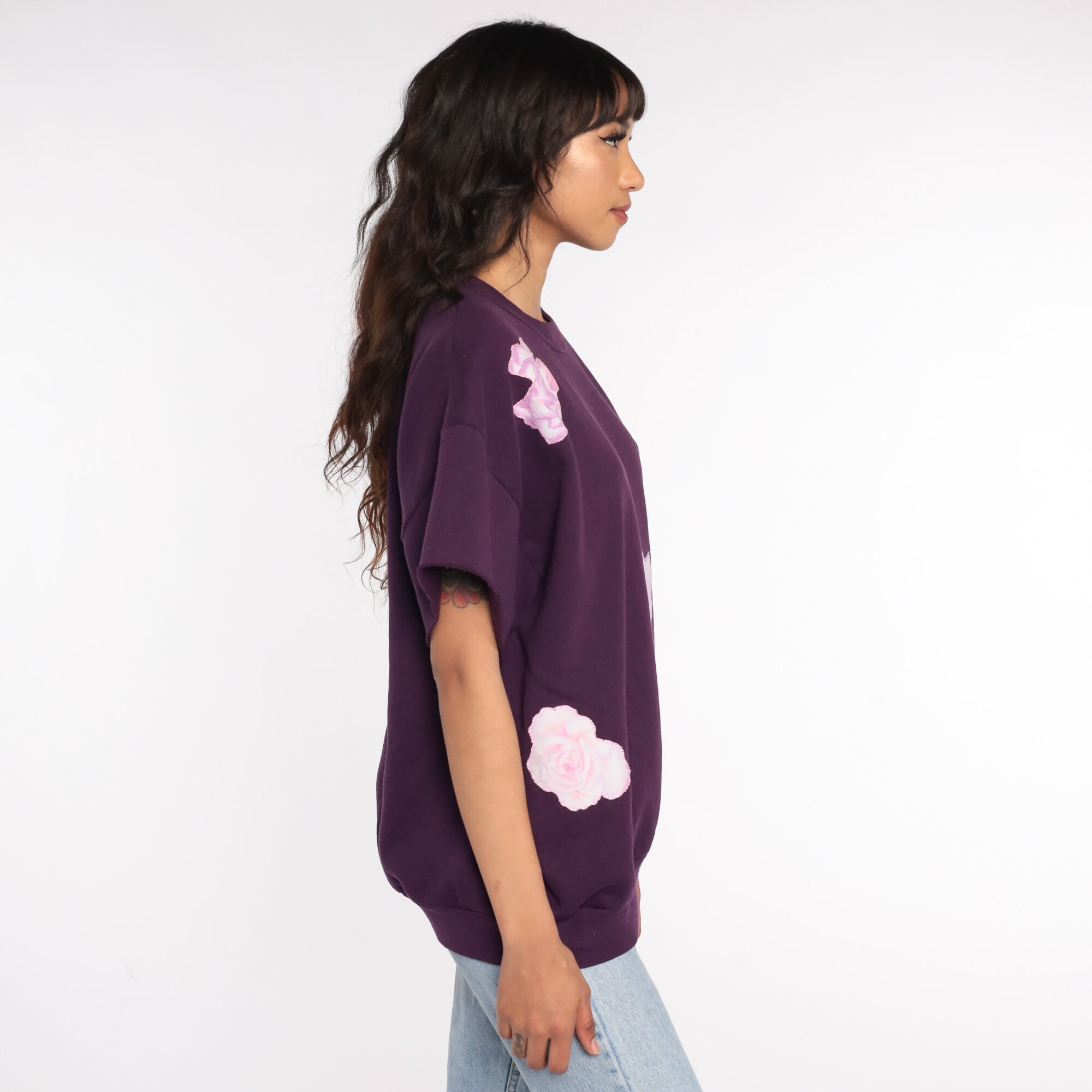 Vintage 80s short sleeve sweatshirt in purple with a floral design. Slouchy fit.