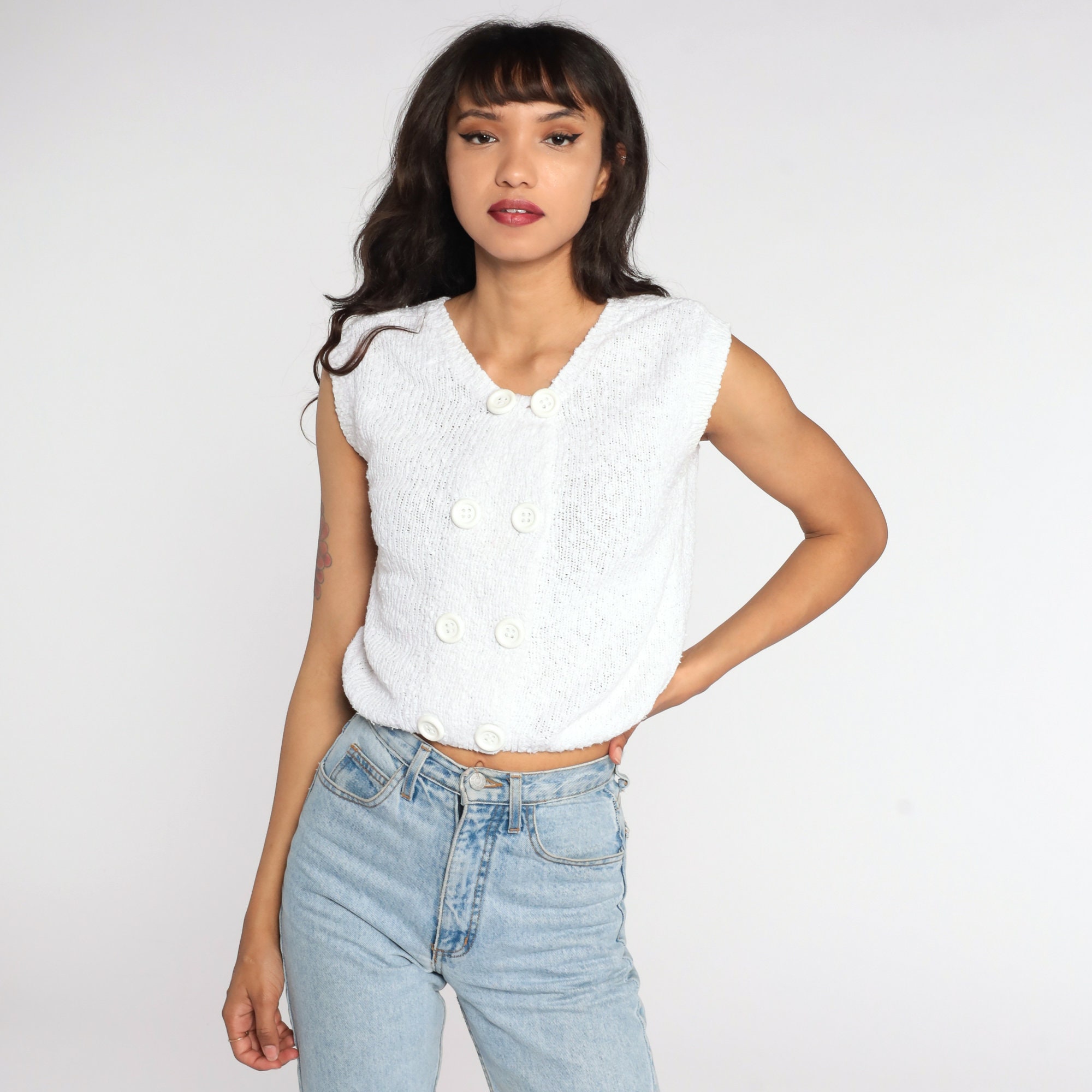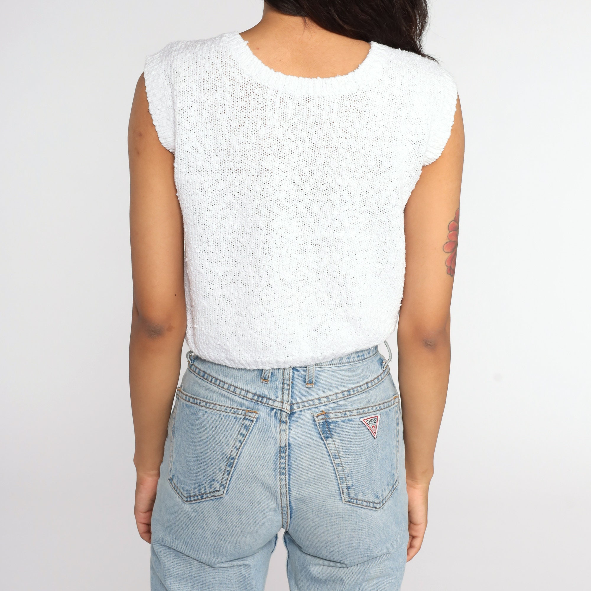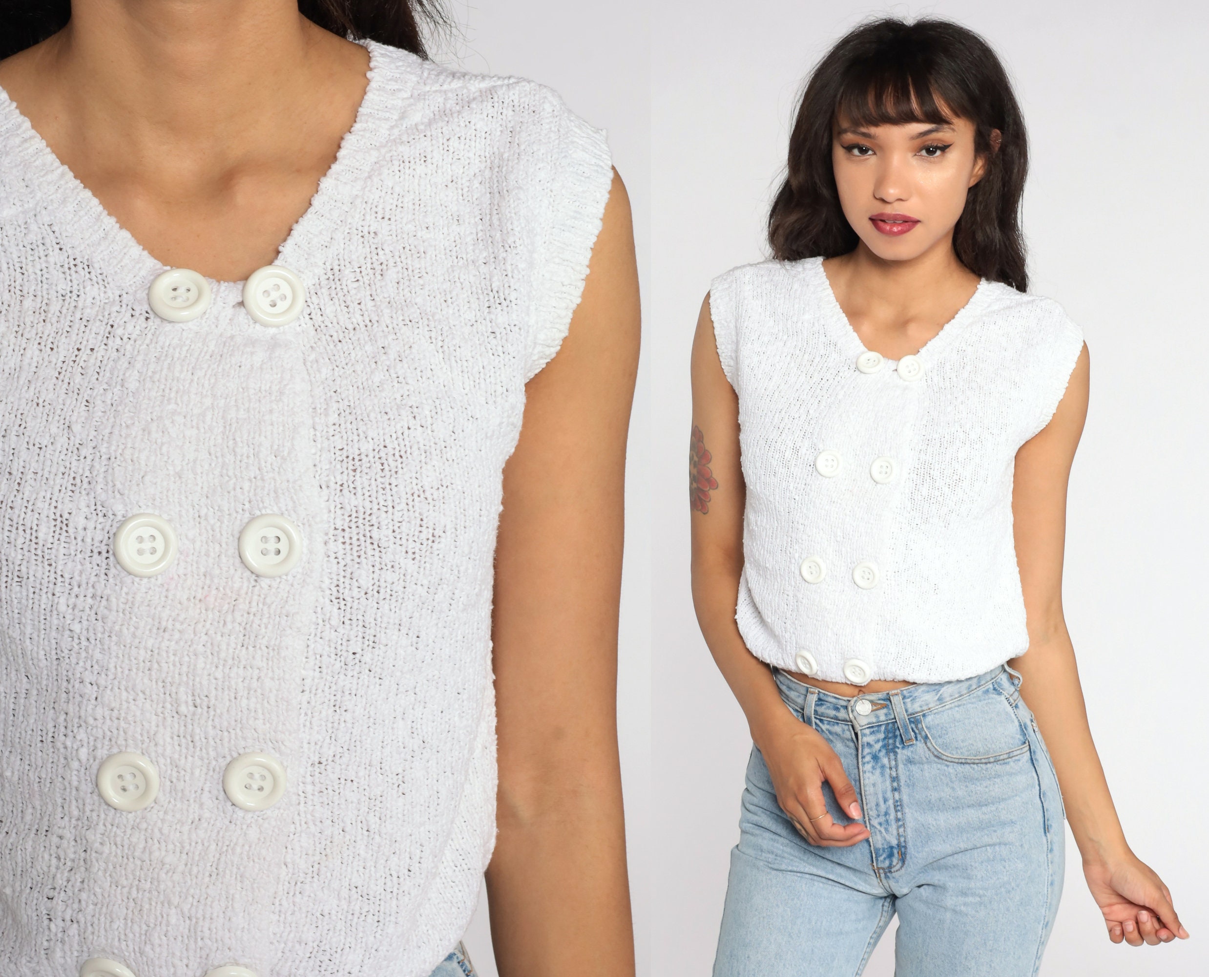 Vintage 80s knit top in white with short sleeves.