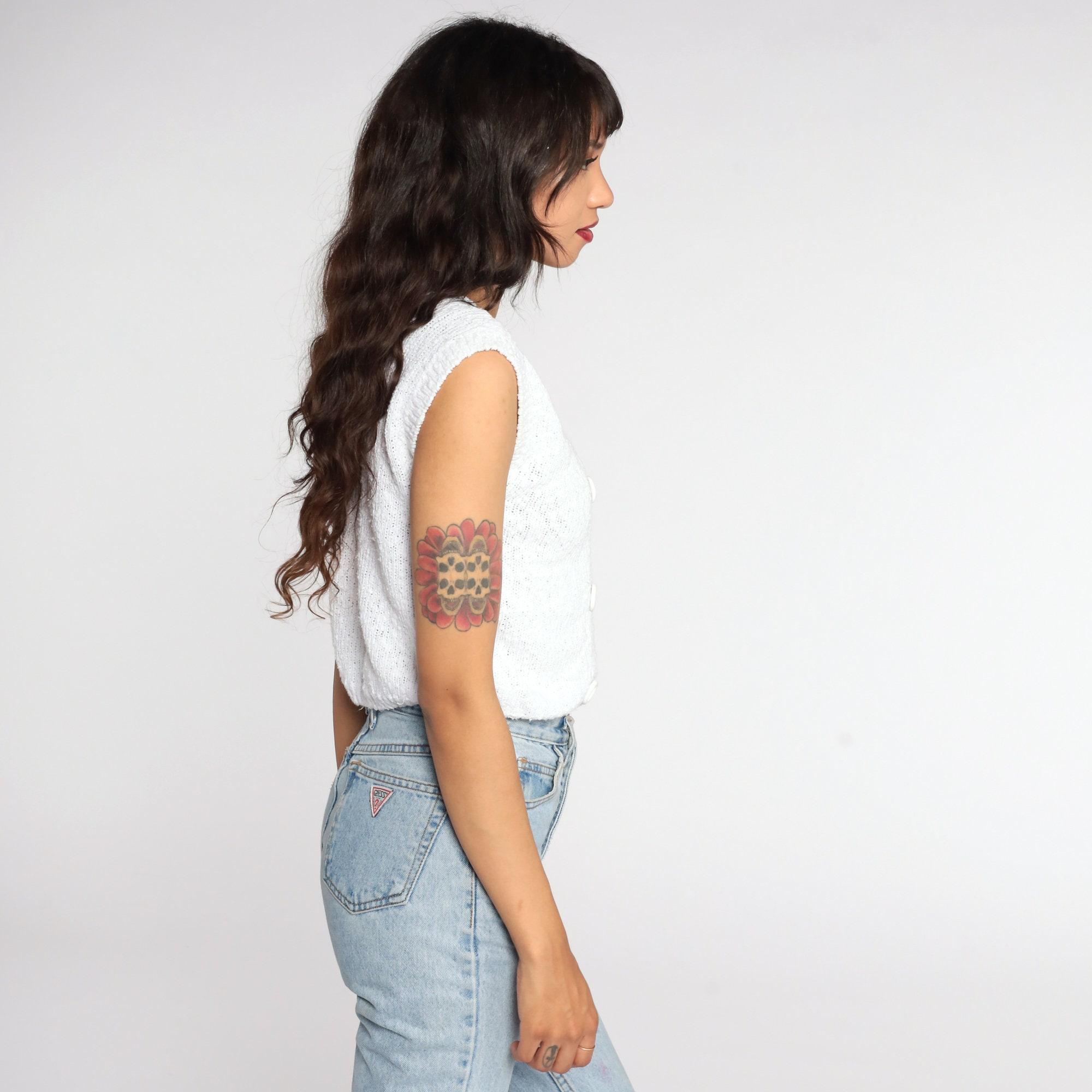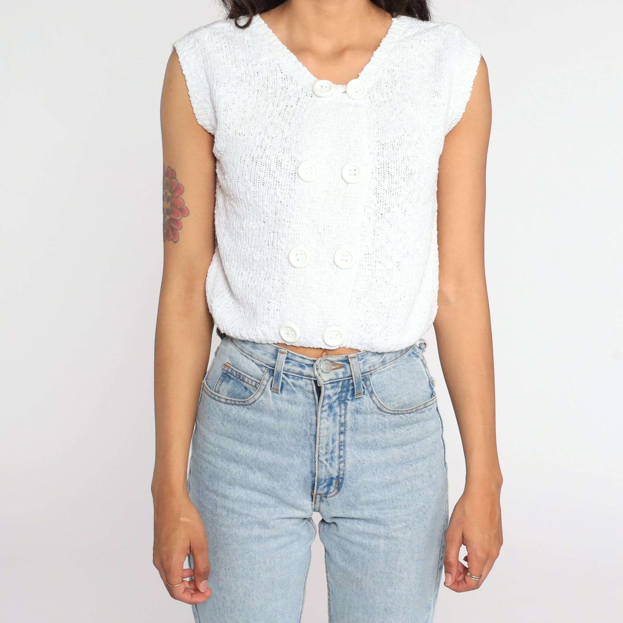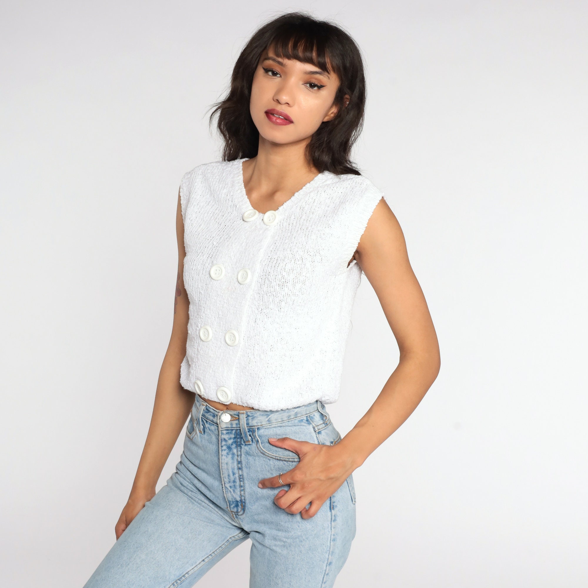 Vintage 80s knit top in white with short sleeves.