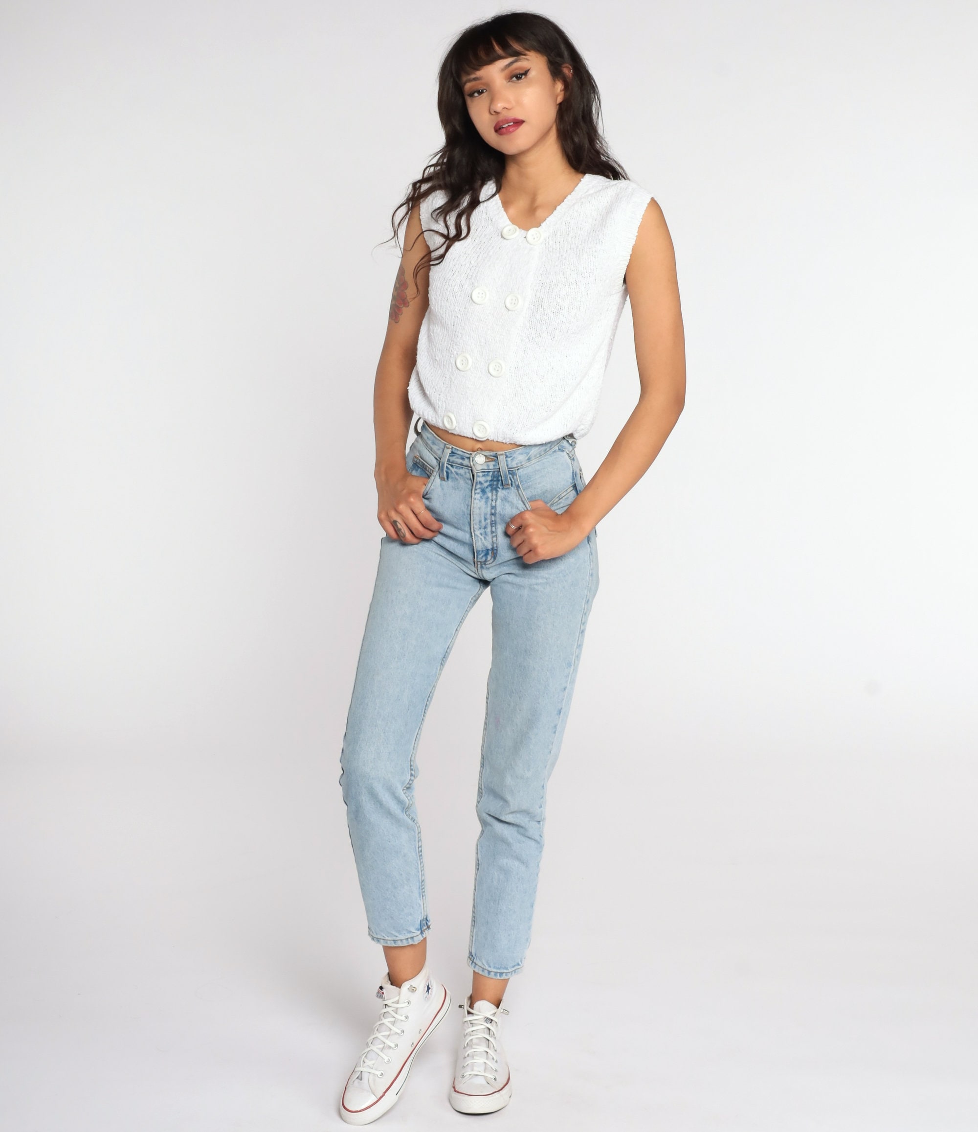 Vintage denim was usually made without any stretch, unlike modern jeans. Check the measurements to ensure proper fit, and remember to give yourself a little wiggle room in the waist and hips, depending on your preferred fit.