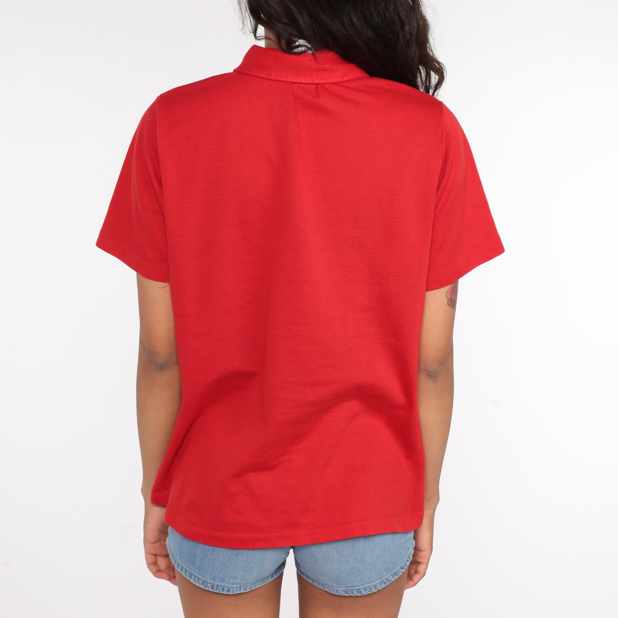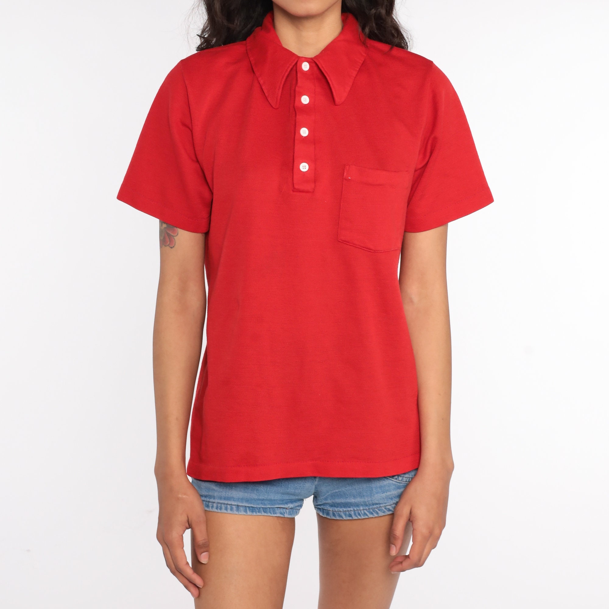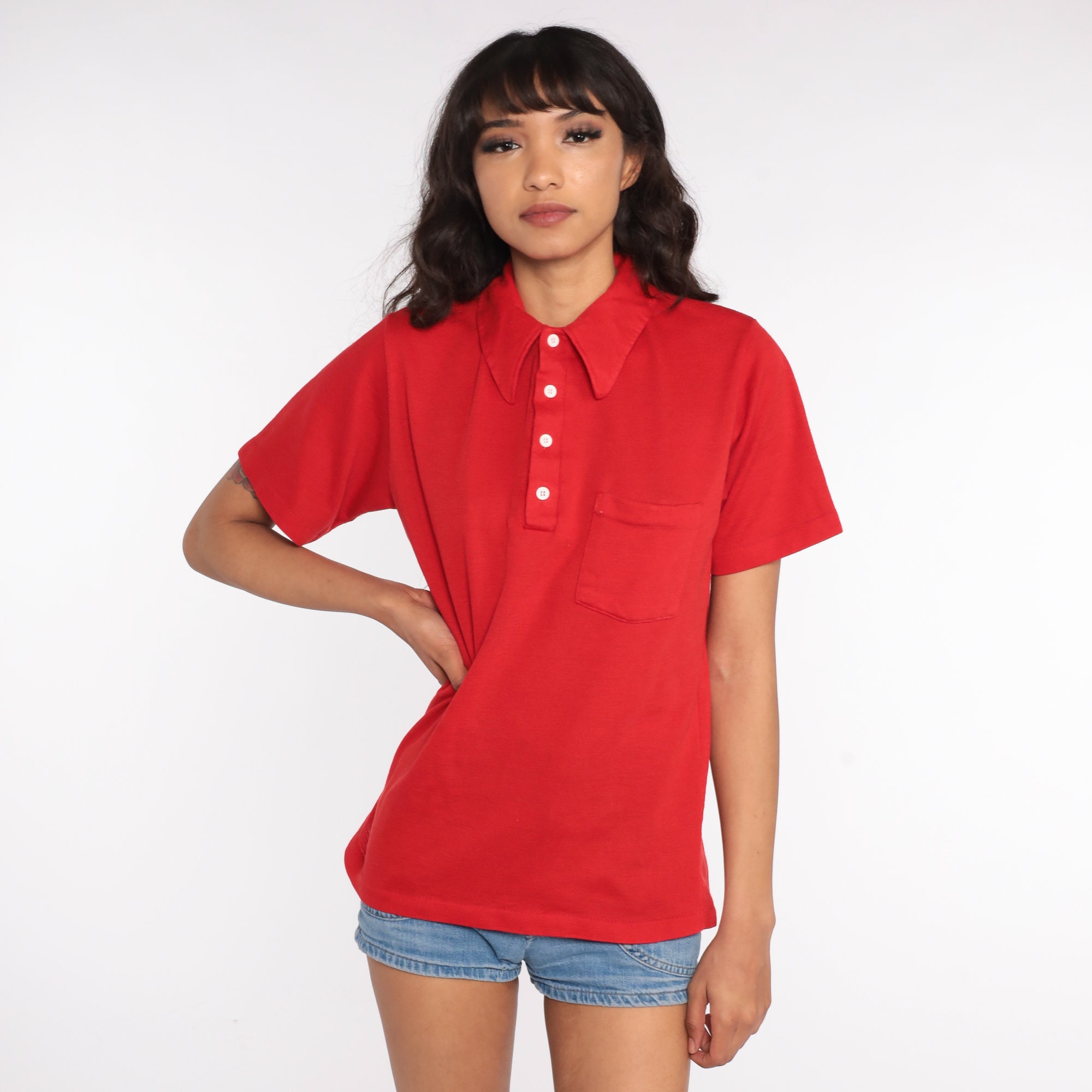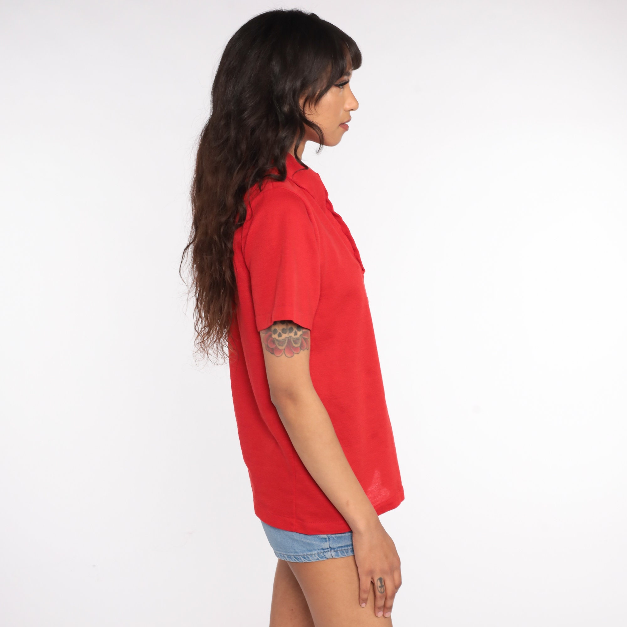 Vintage 70s shirt in red. Buttons up the chest with a collar.