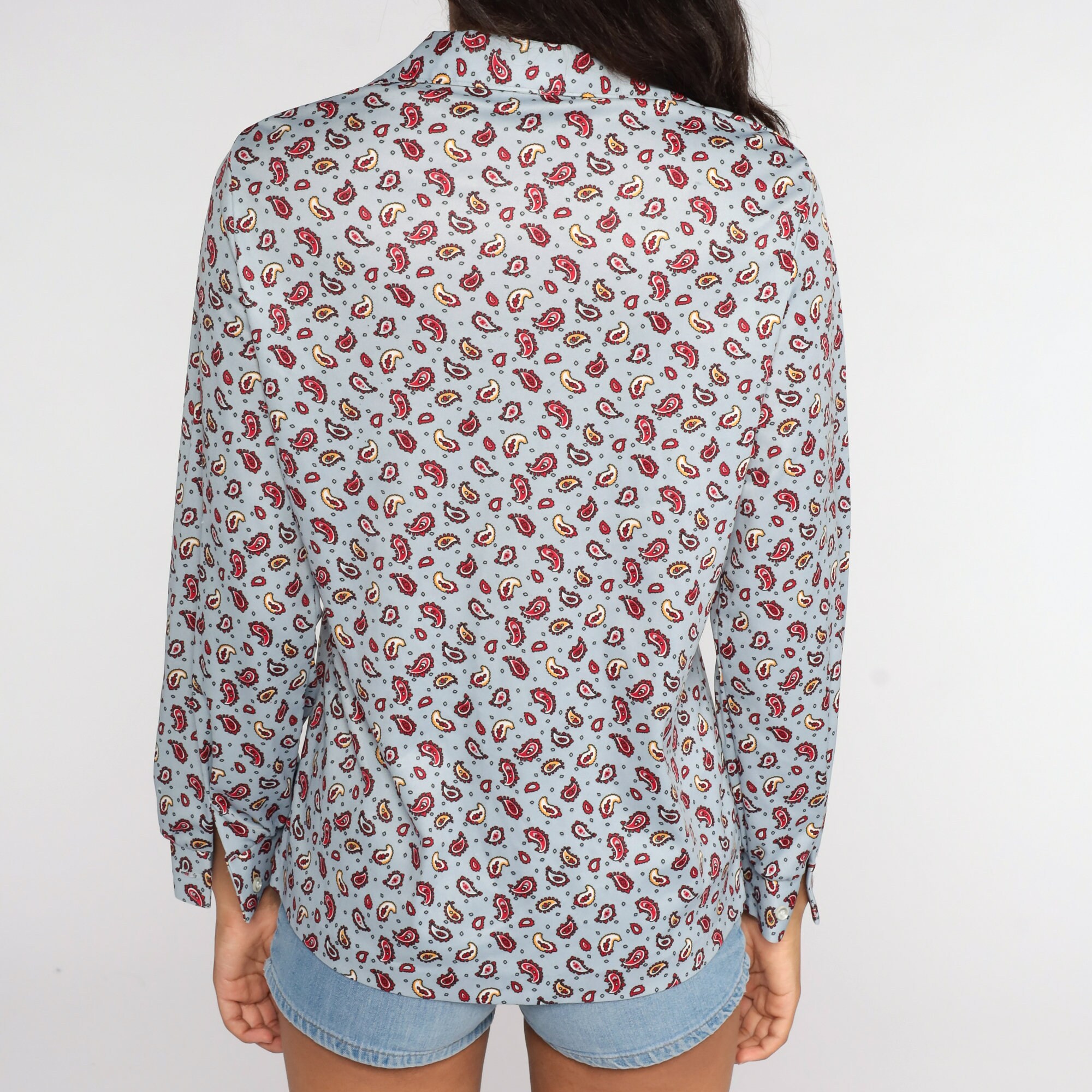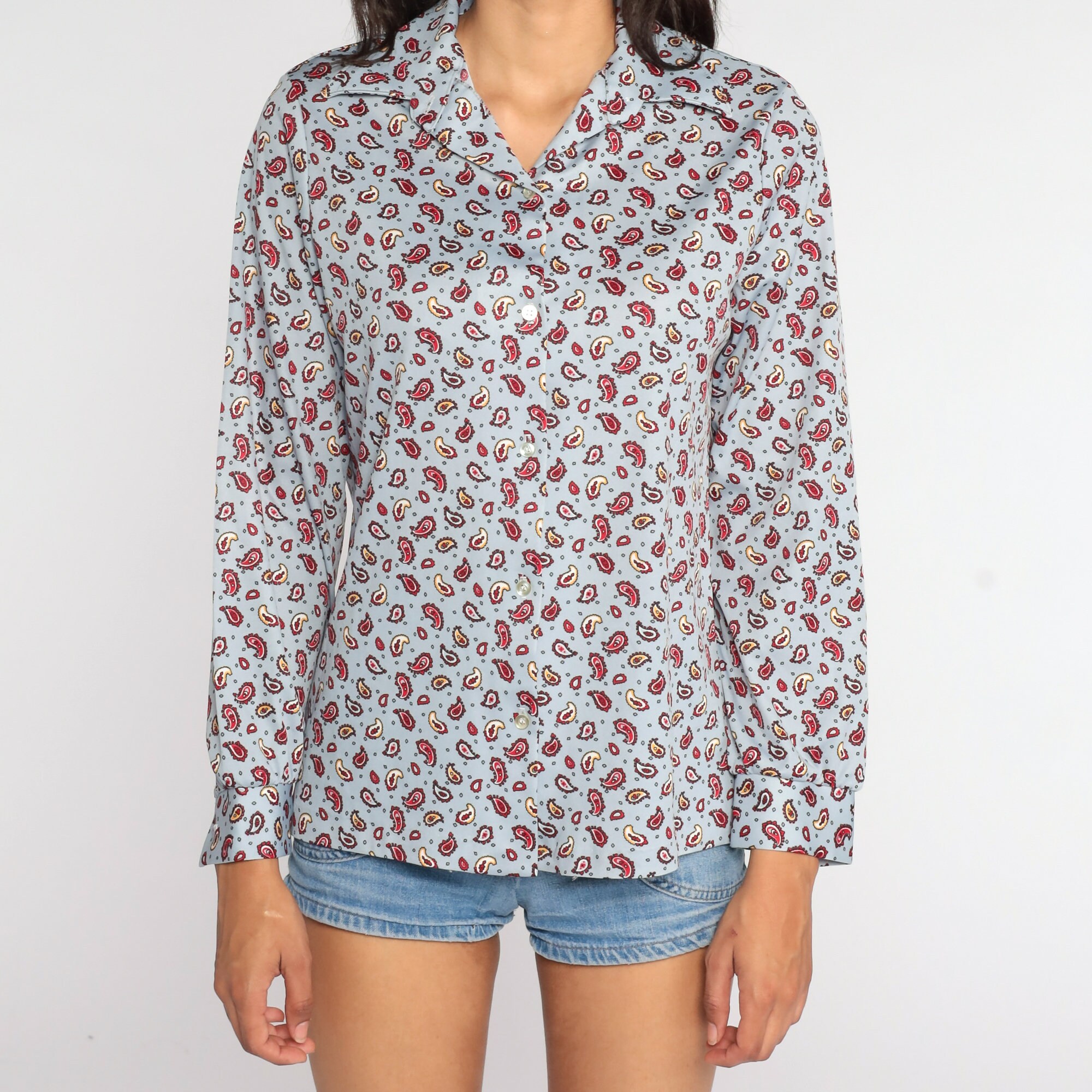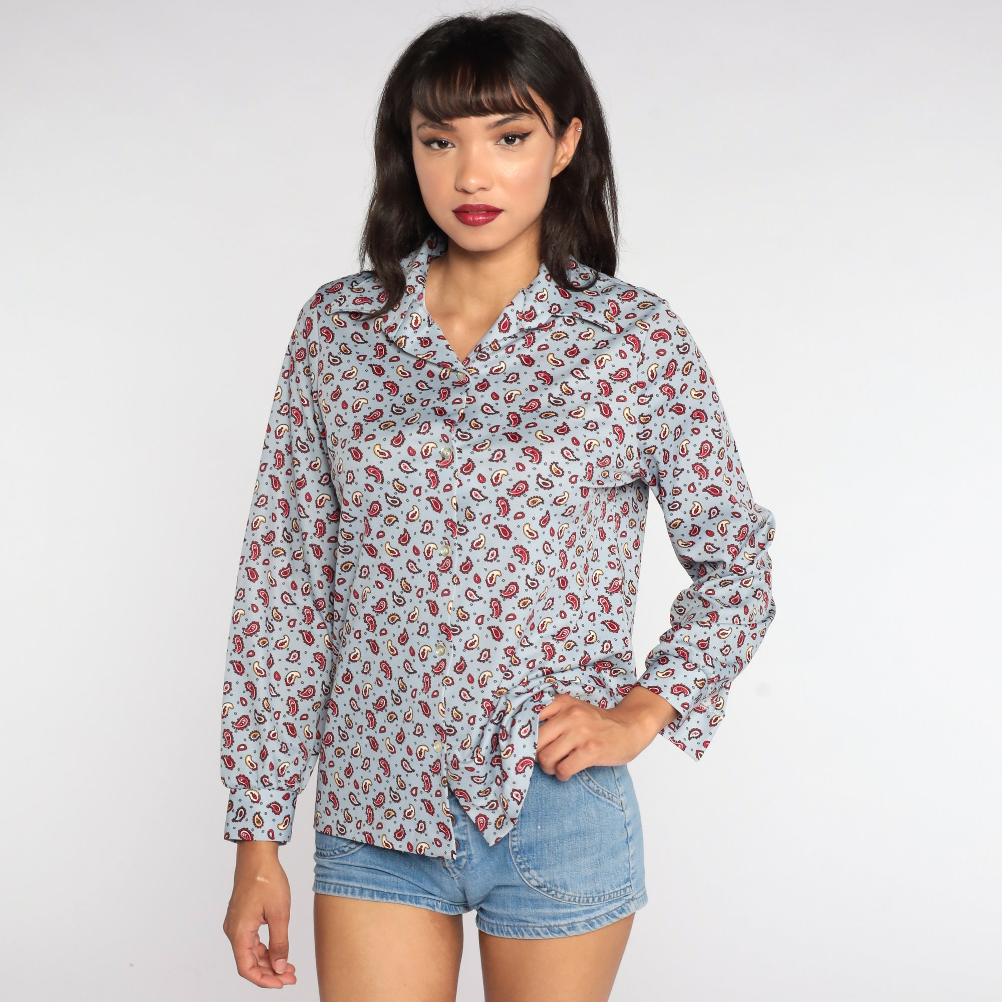 Vintage 70s blouse in a paisley print. Long sleeves, buttons down the front.