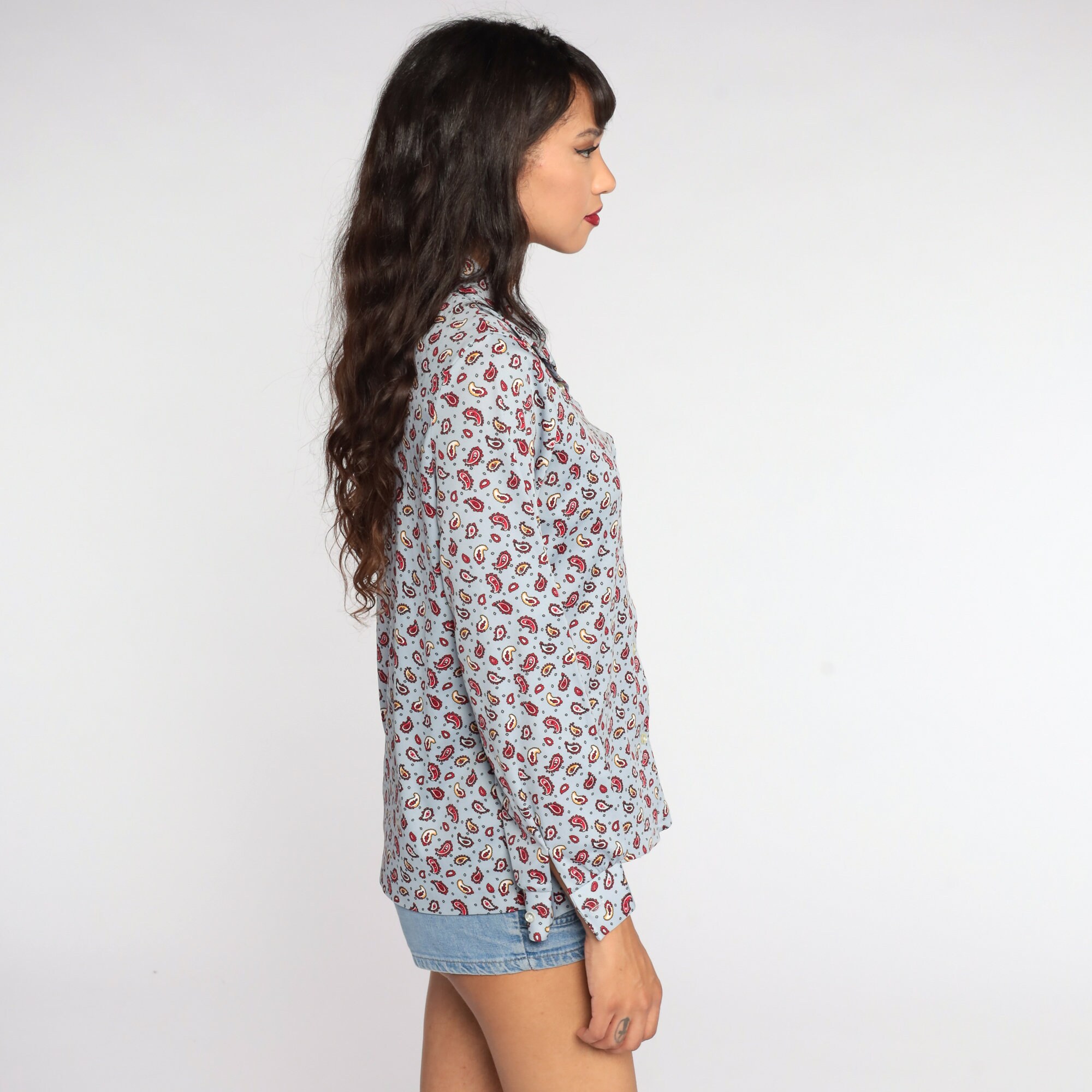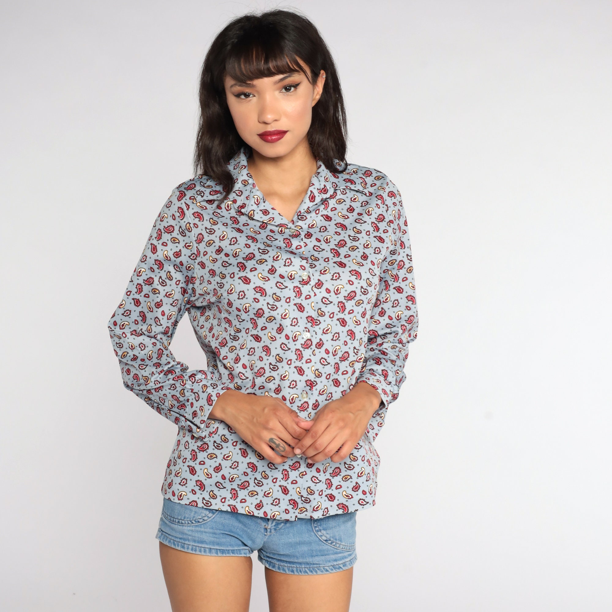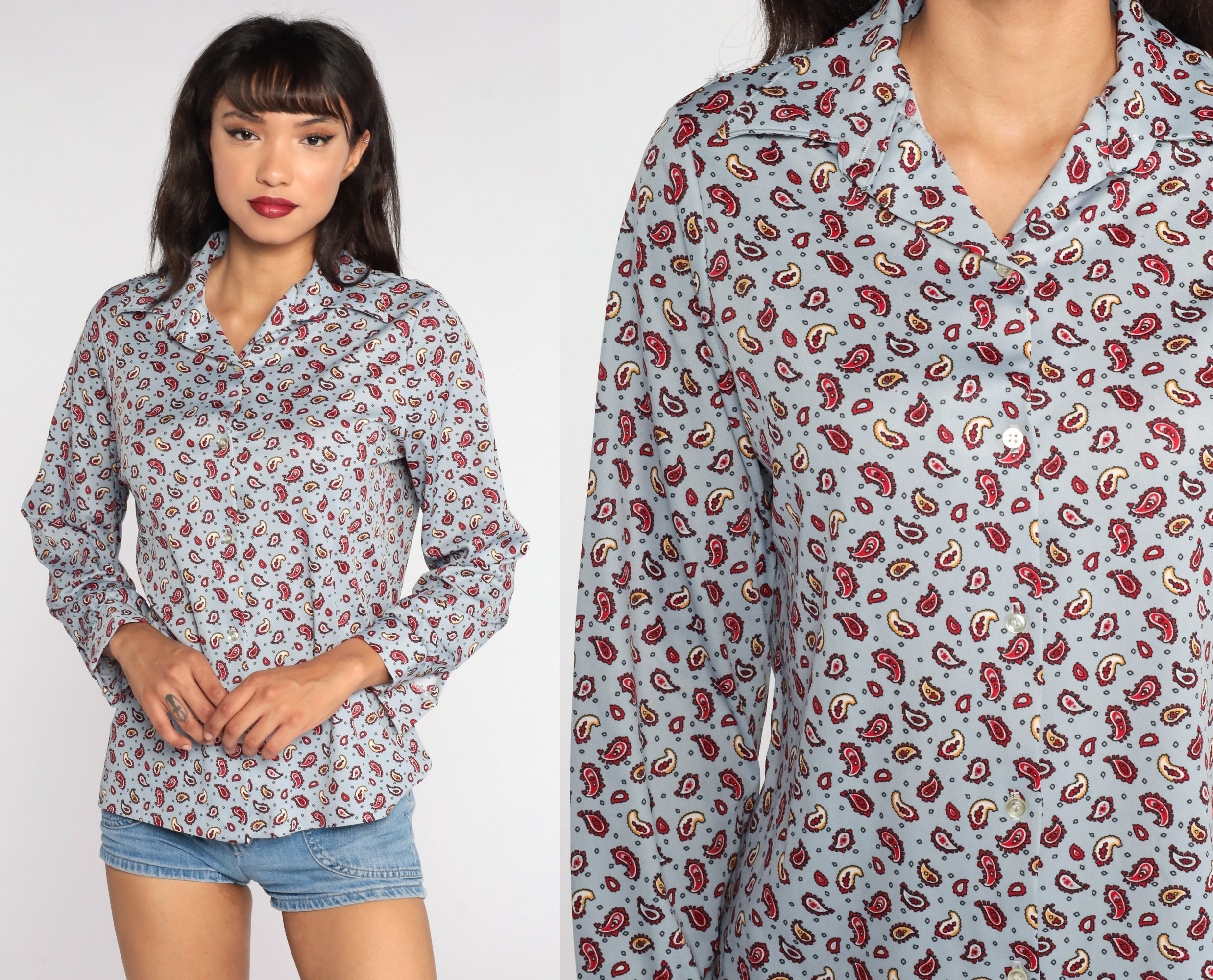Vintage 70s blouse in a paisley print. Long sleeves, buttons down the front.