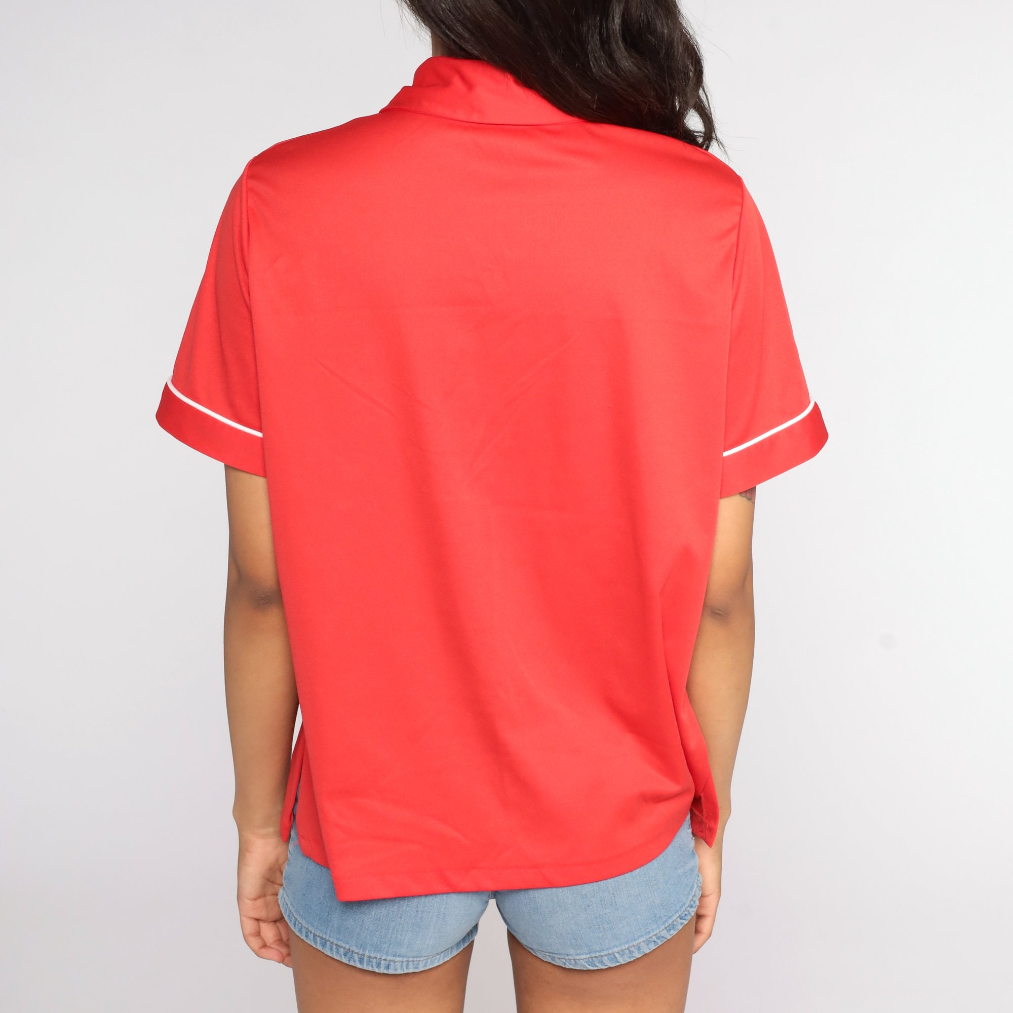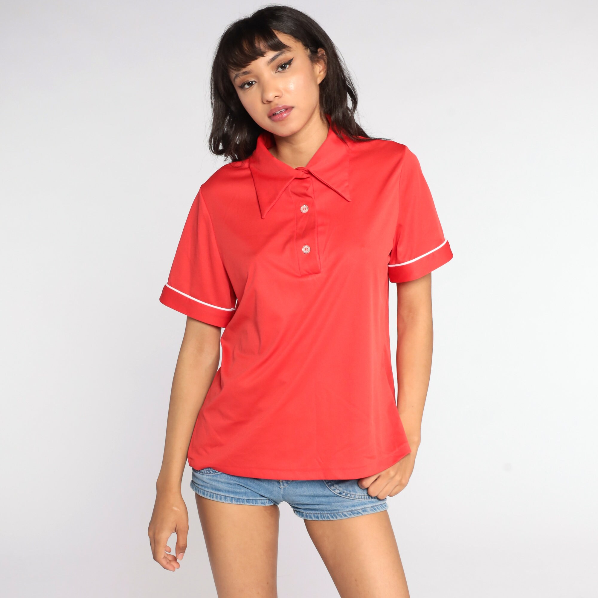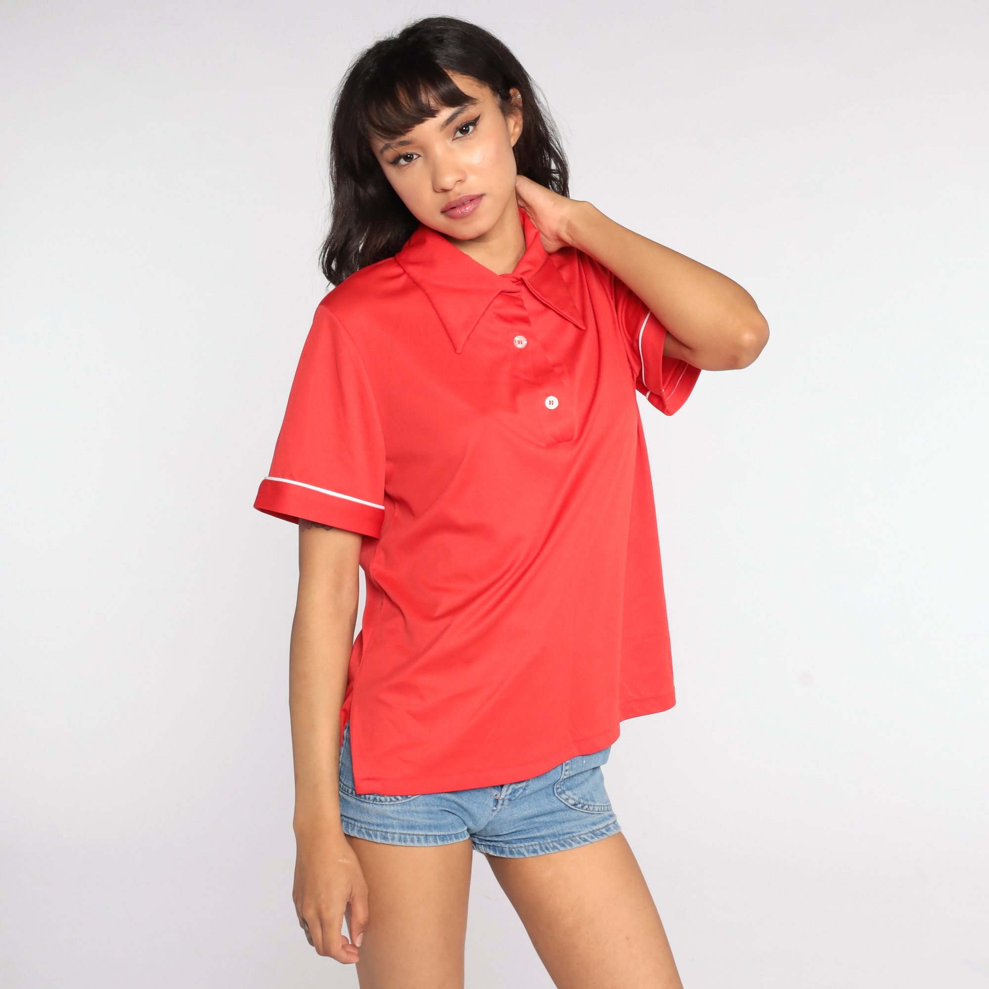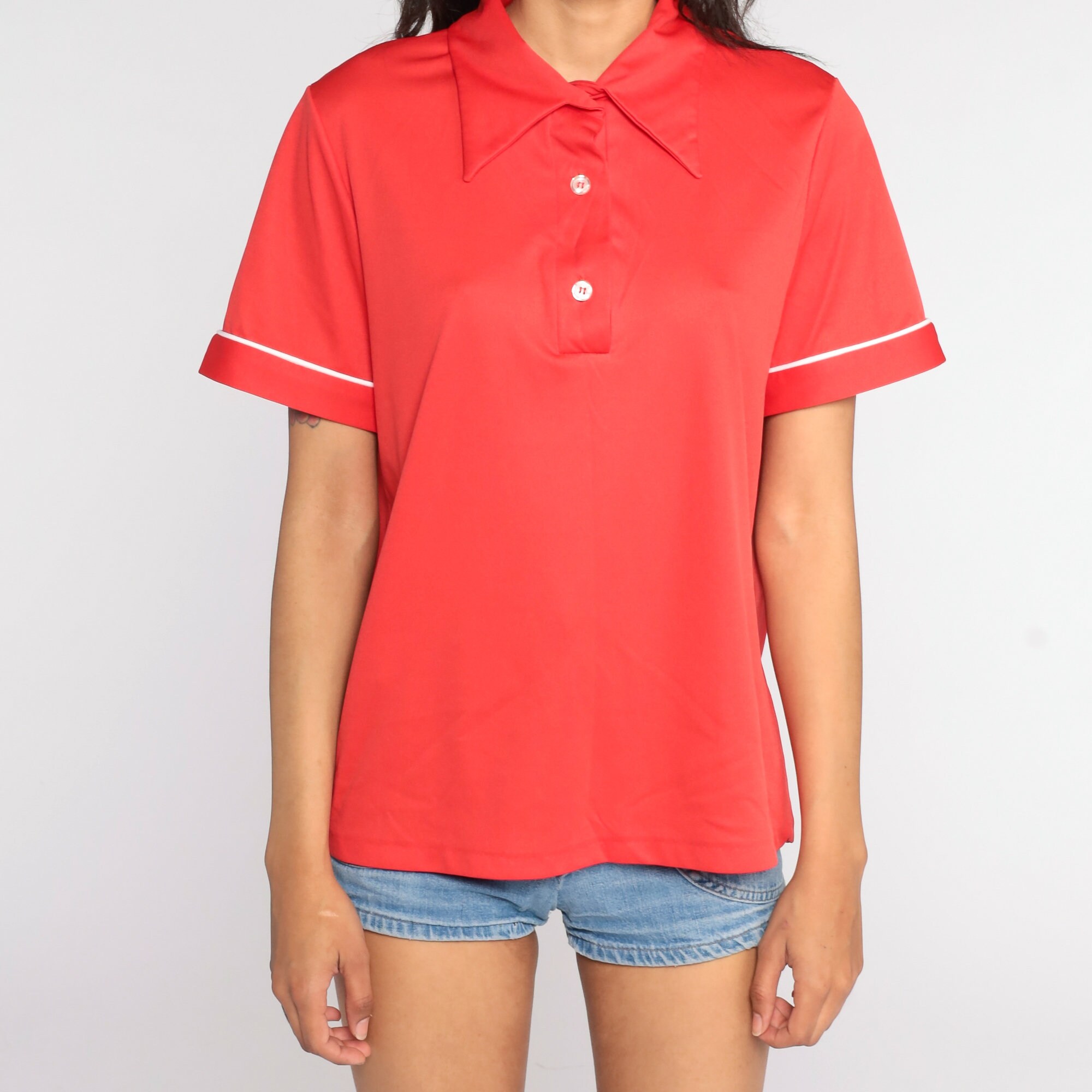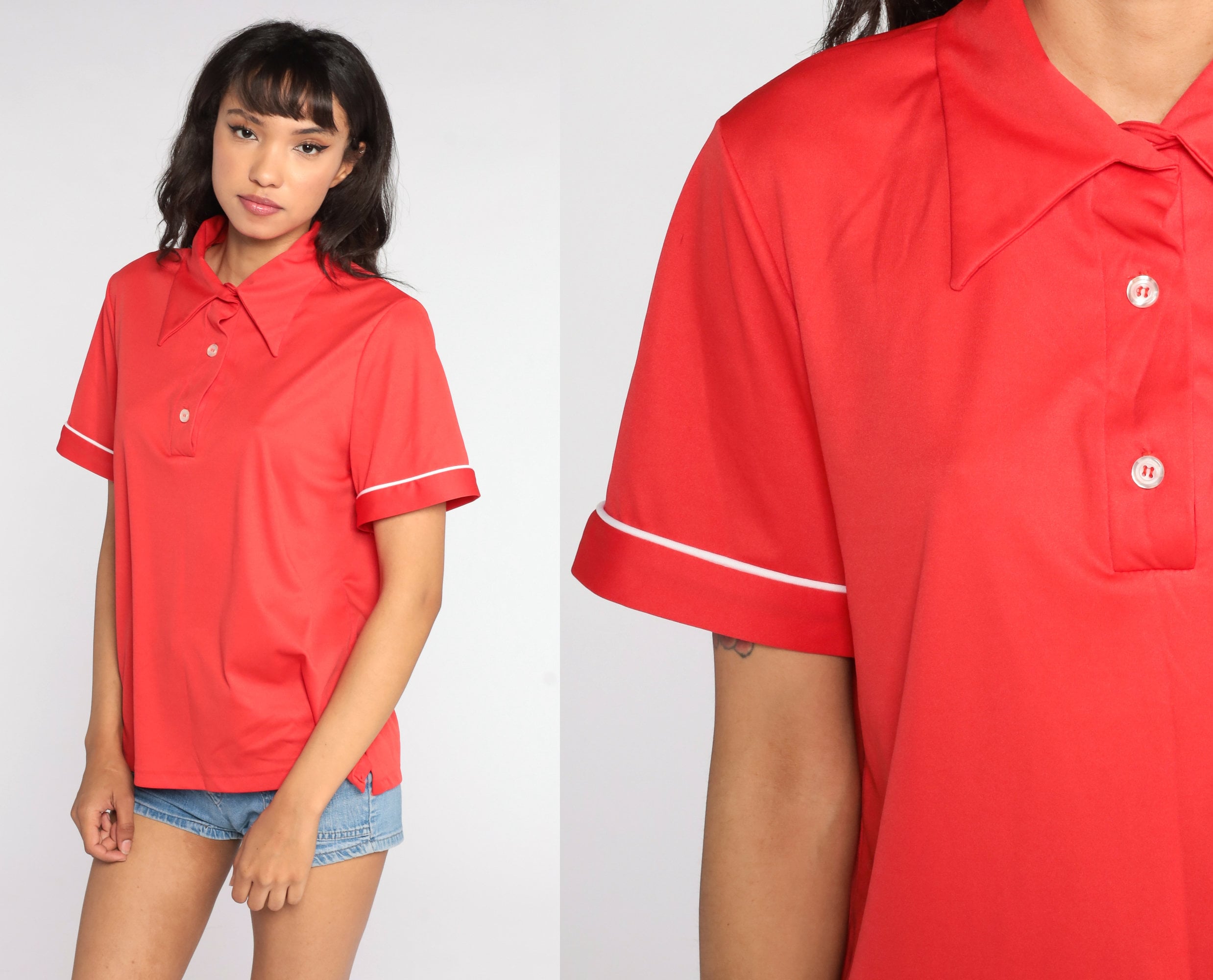 Vintage 70s shirt in red. Buttons up the chest with a collar.