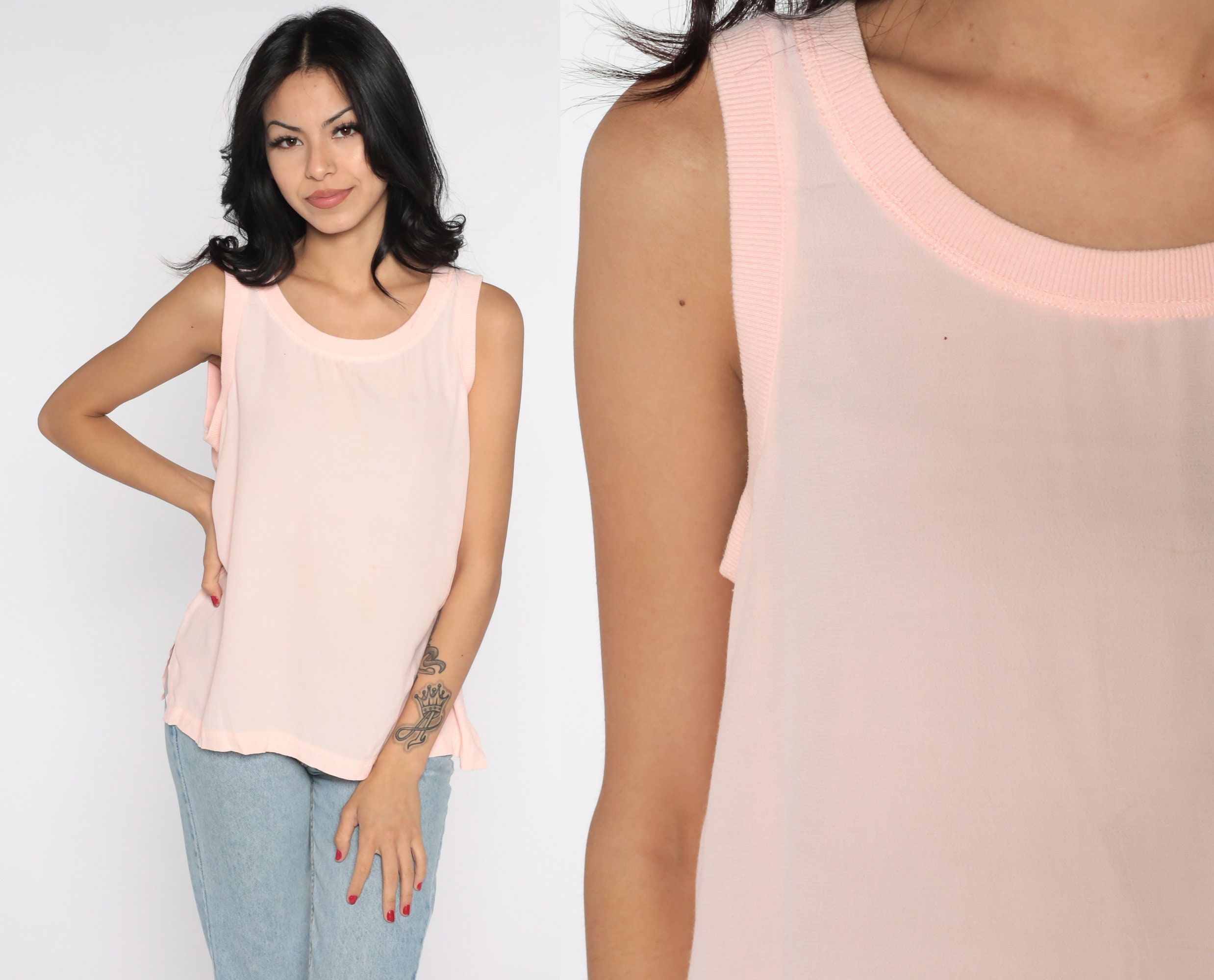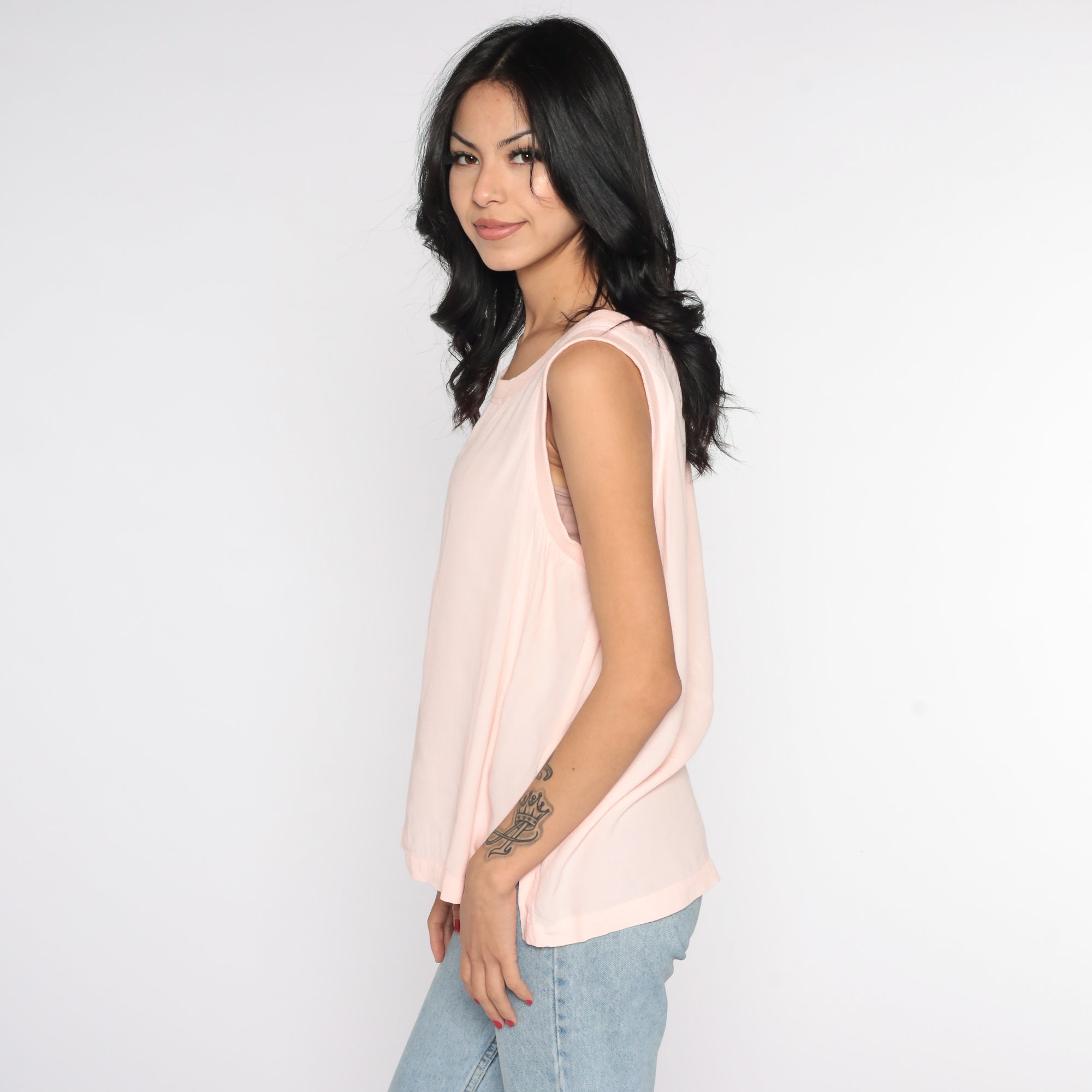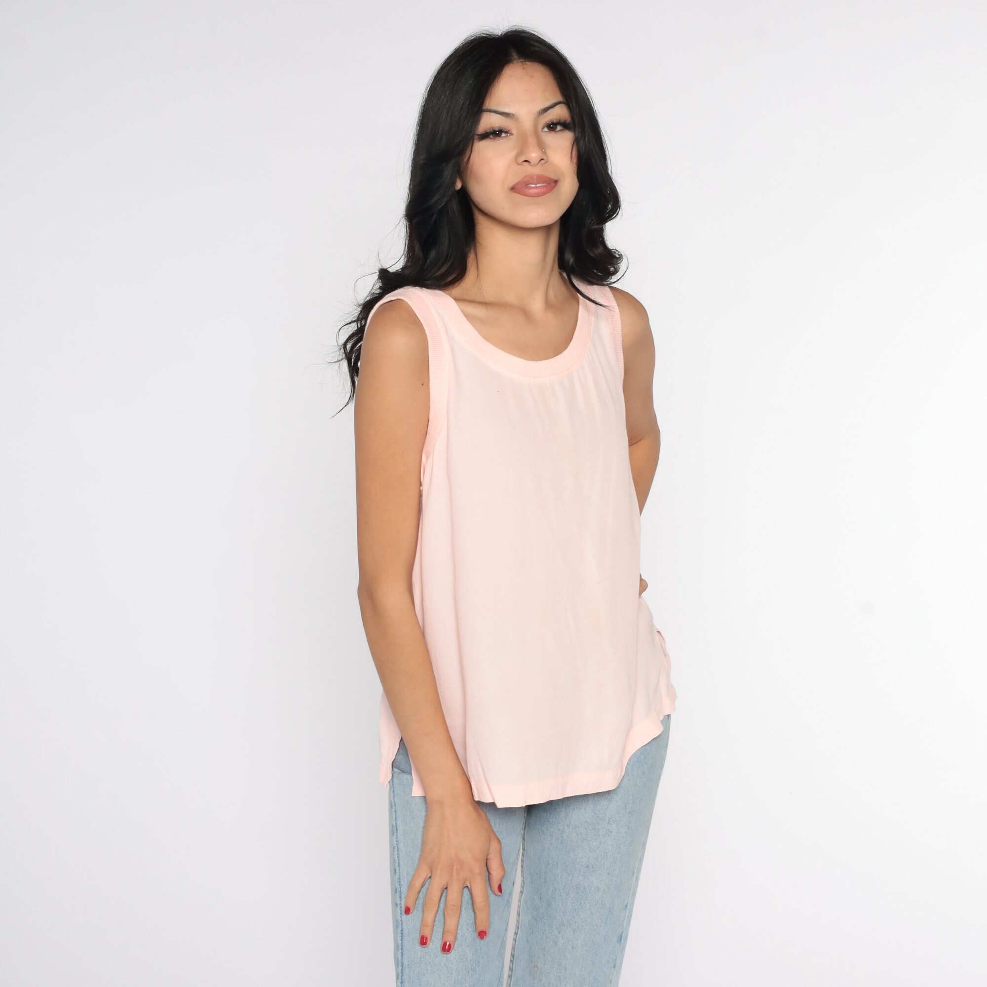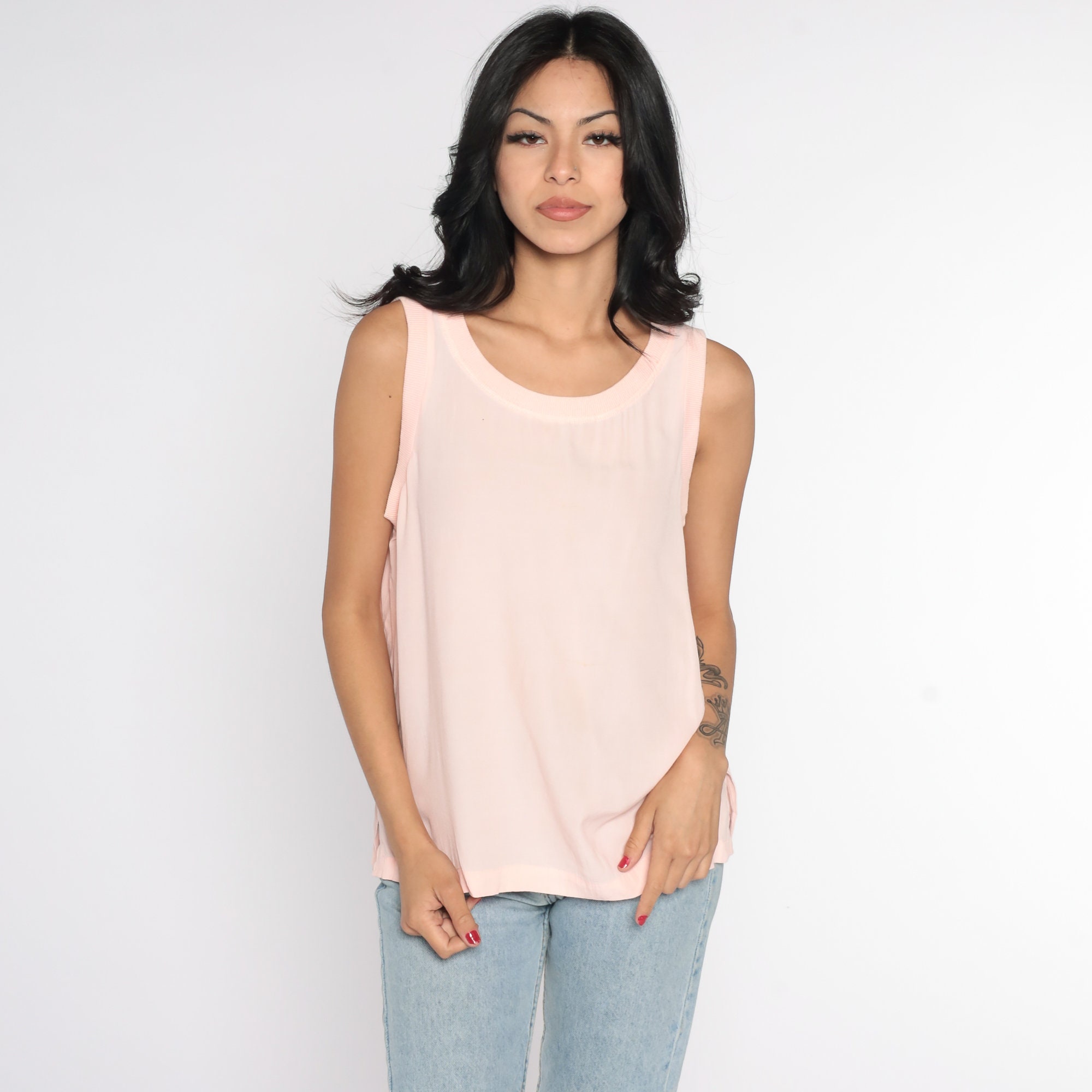 Vintage 80s tank top in baby pink.