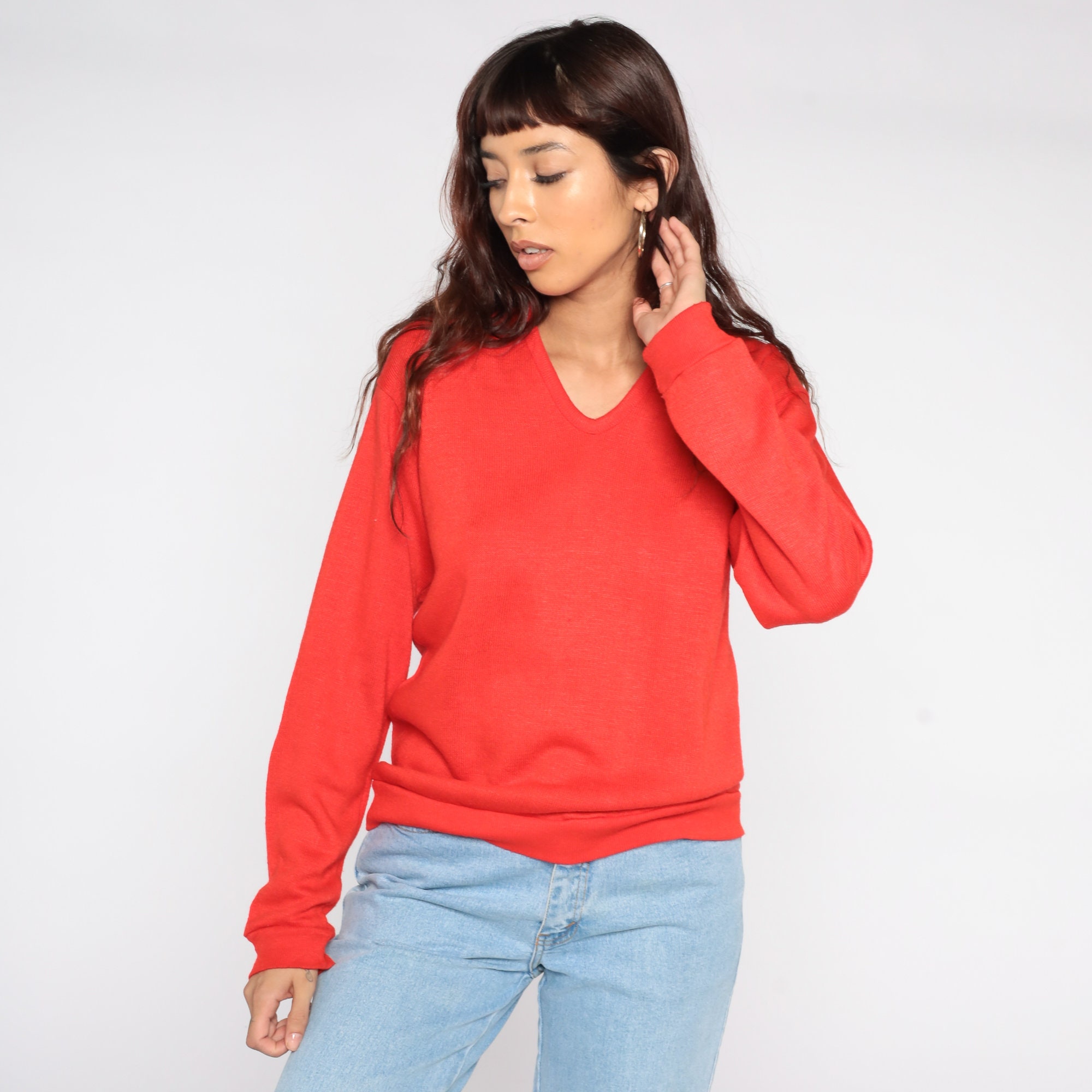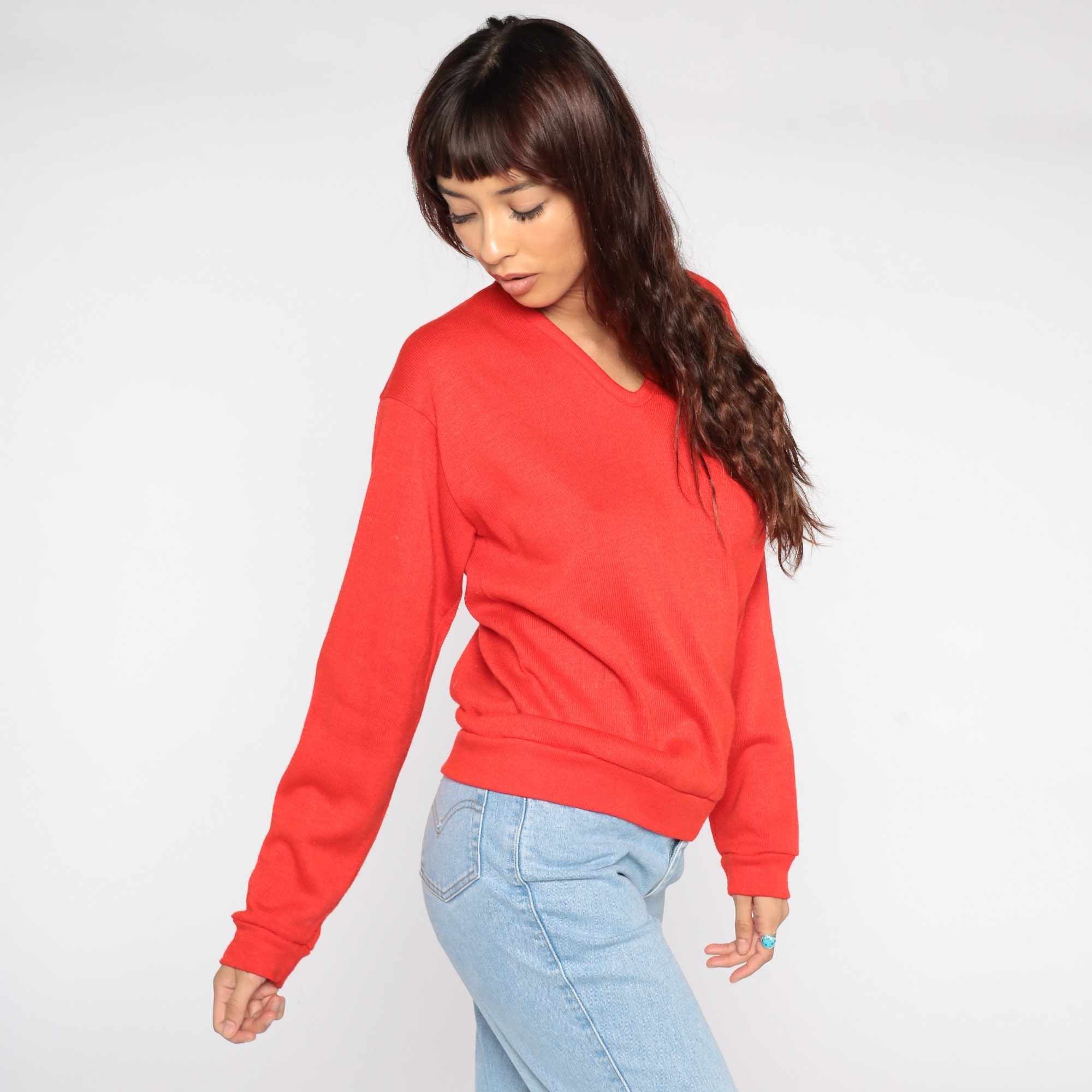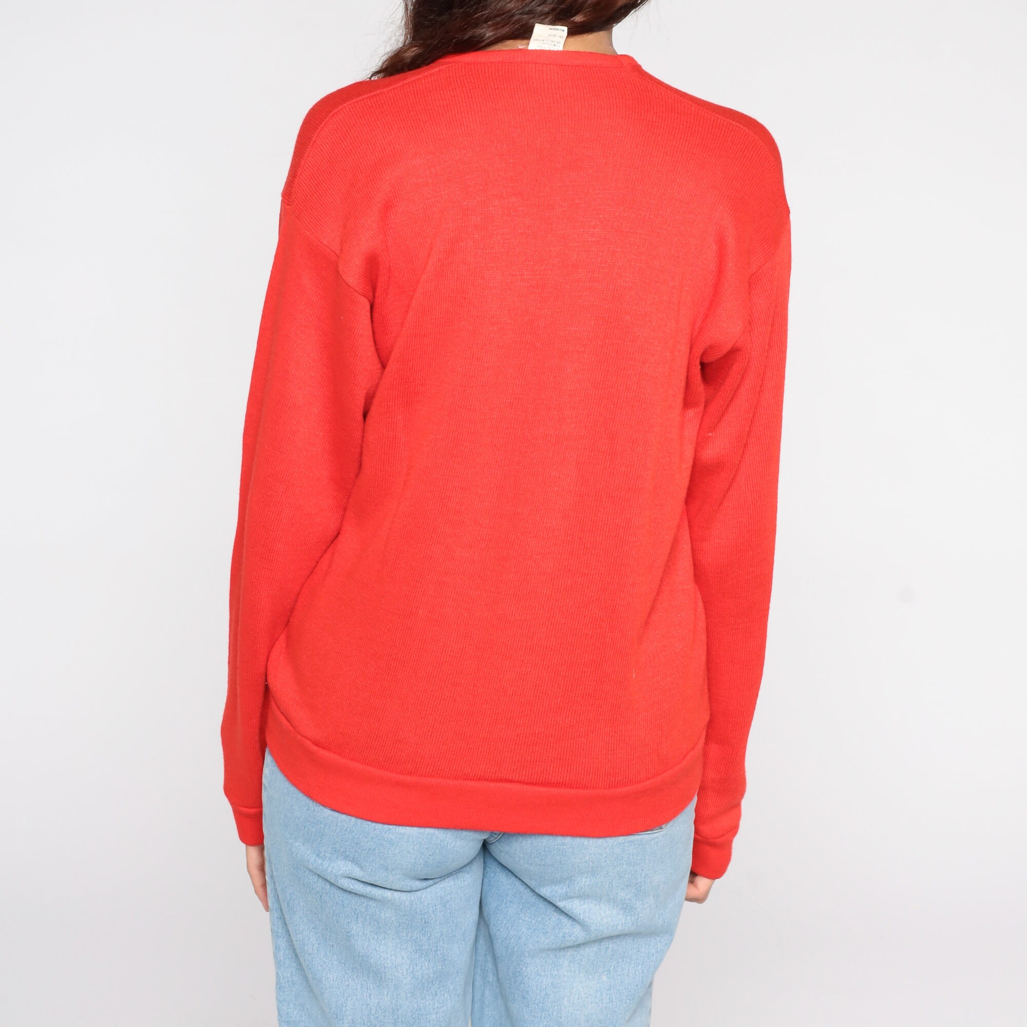 Vintage 80s sweater in red knit with a v neck. Slouchy fit.