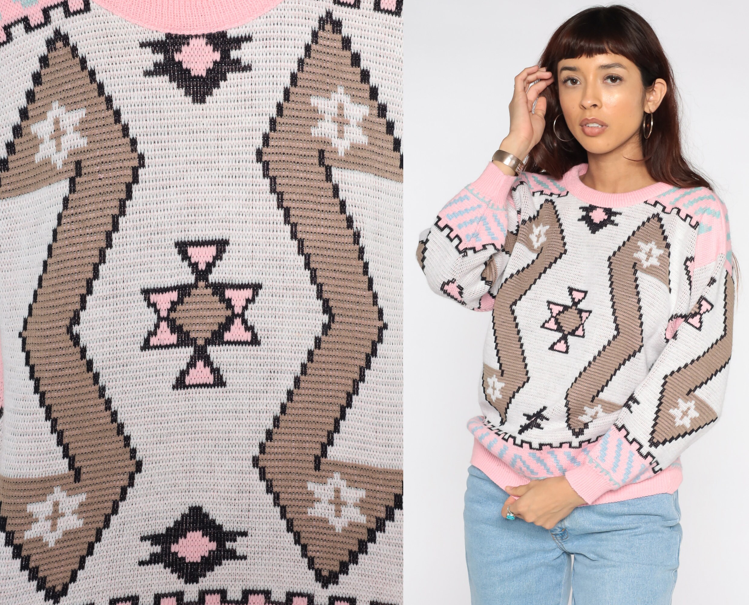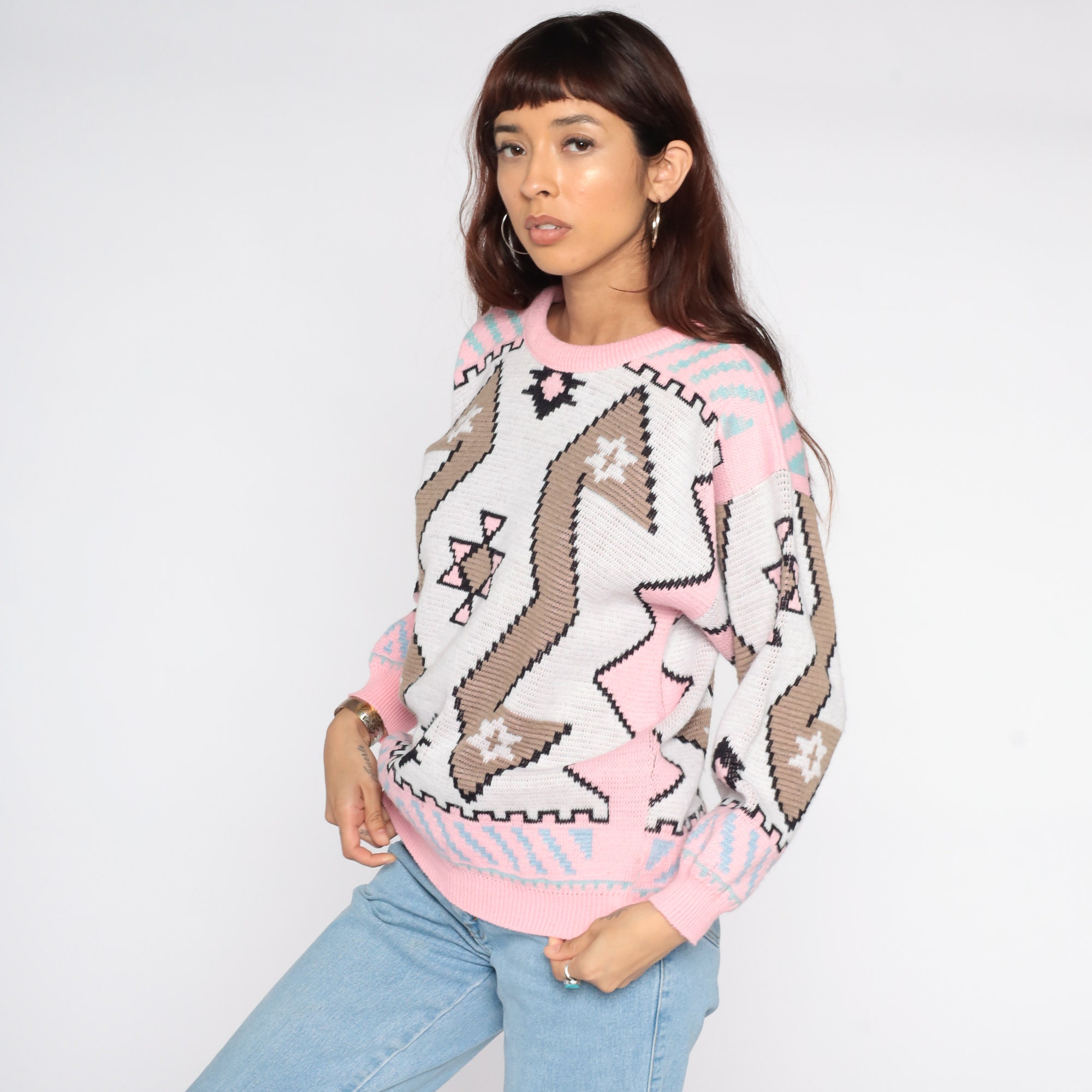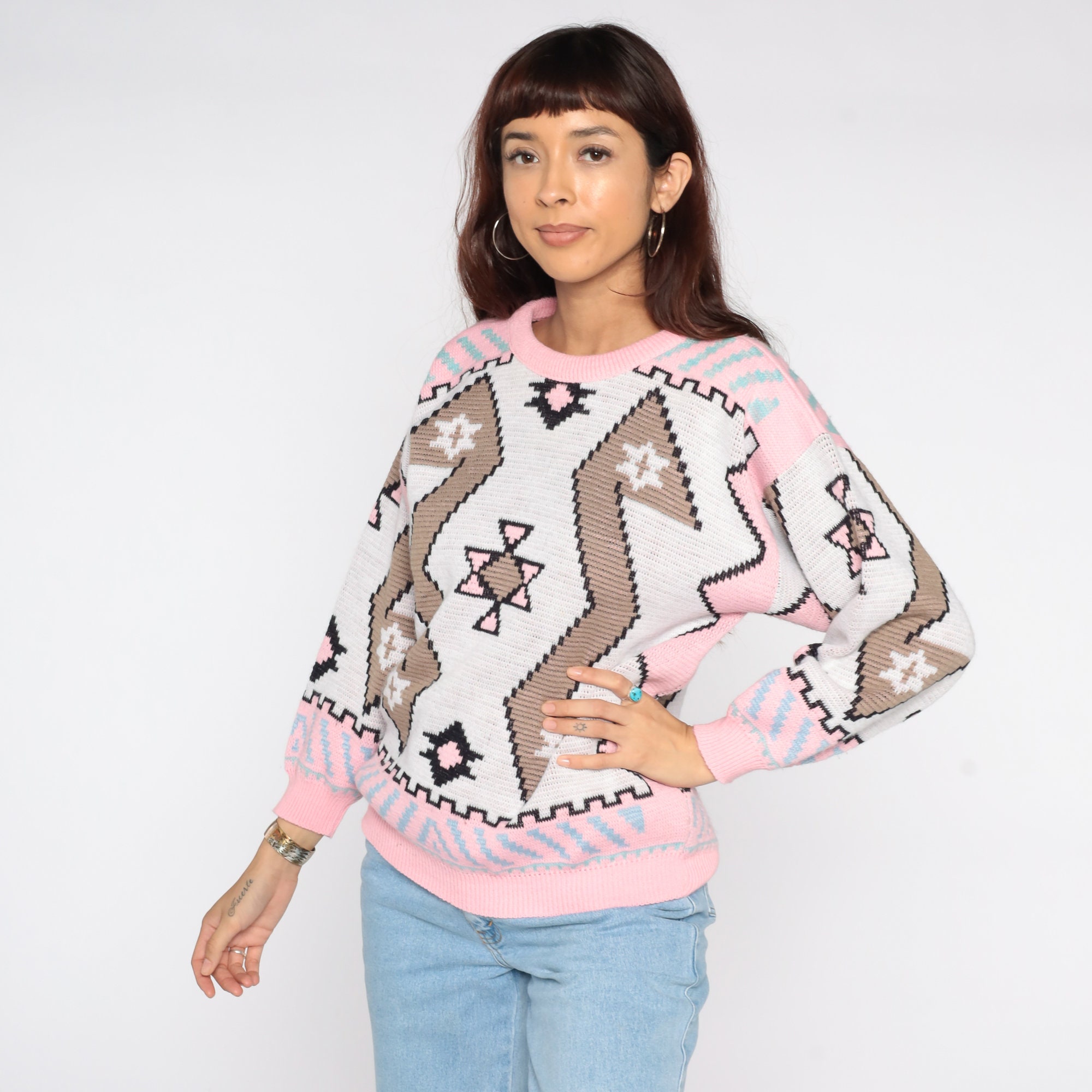 Vintage 80s sweater with a Southwestern print. Slouchy fit.