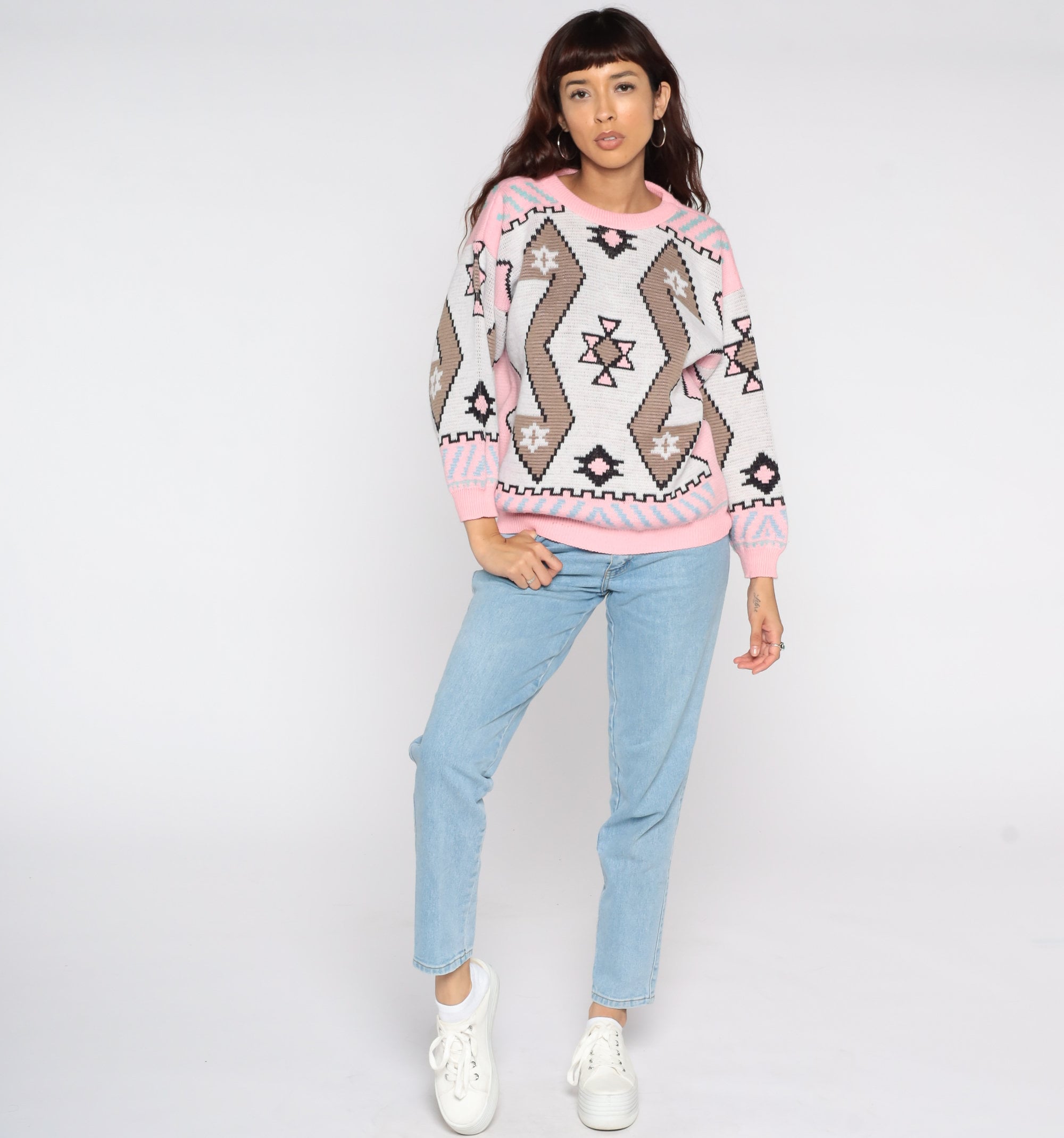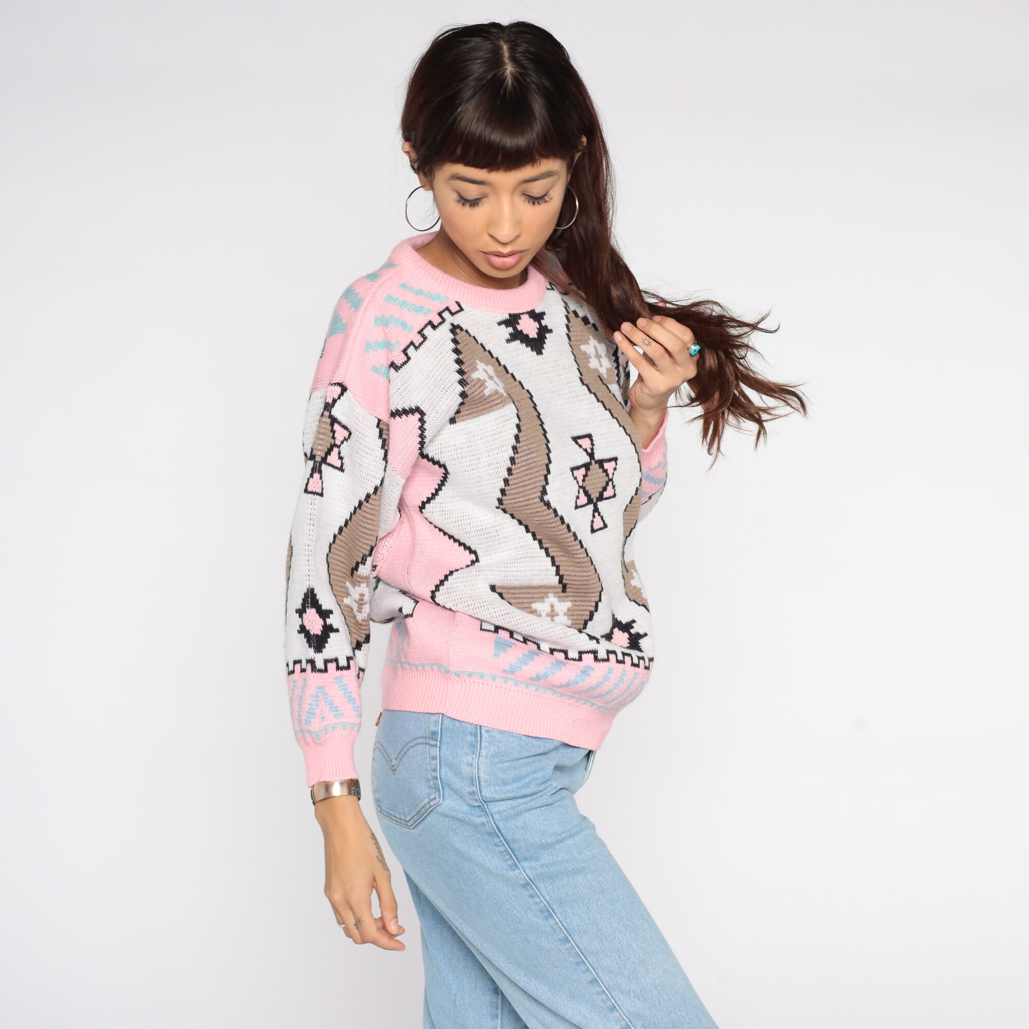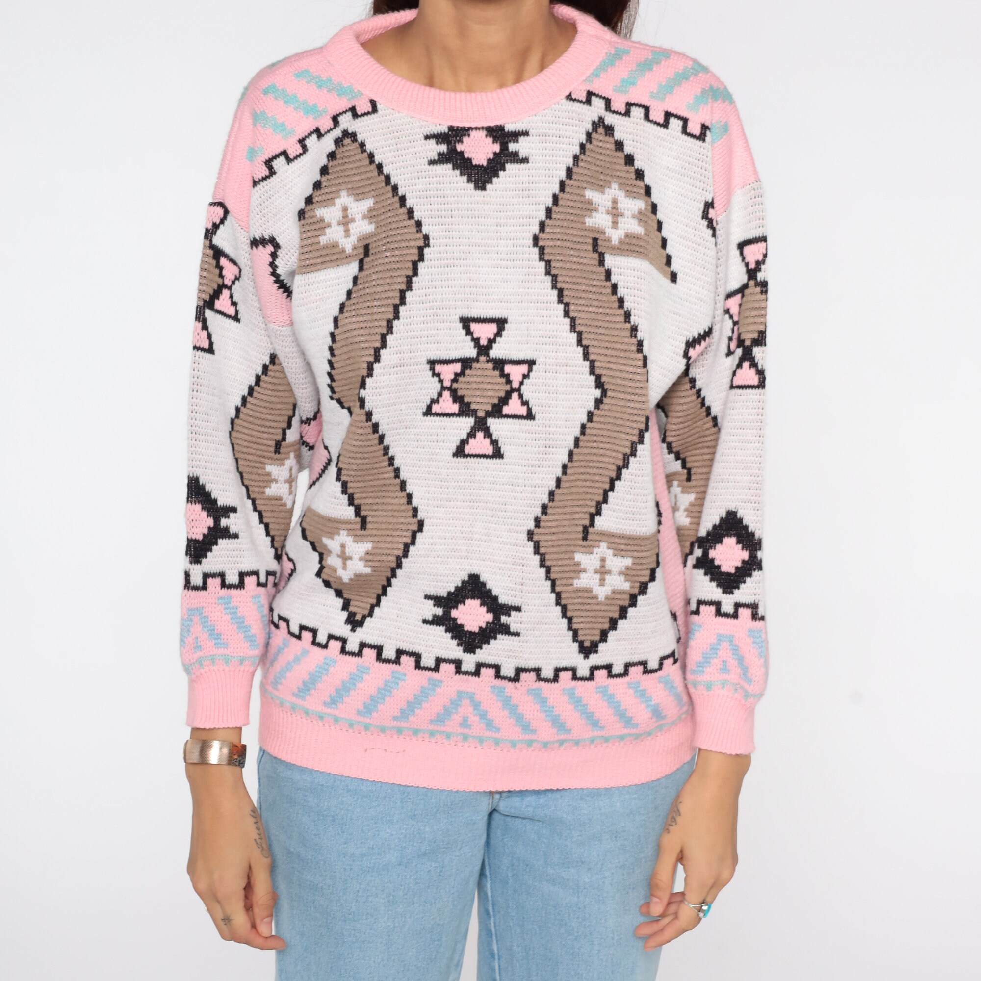 Vintage 80s sweater with a Southwestern print. Slouchy fit.