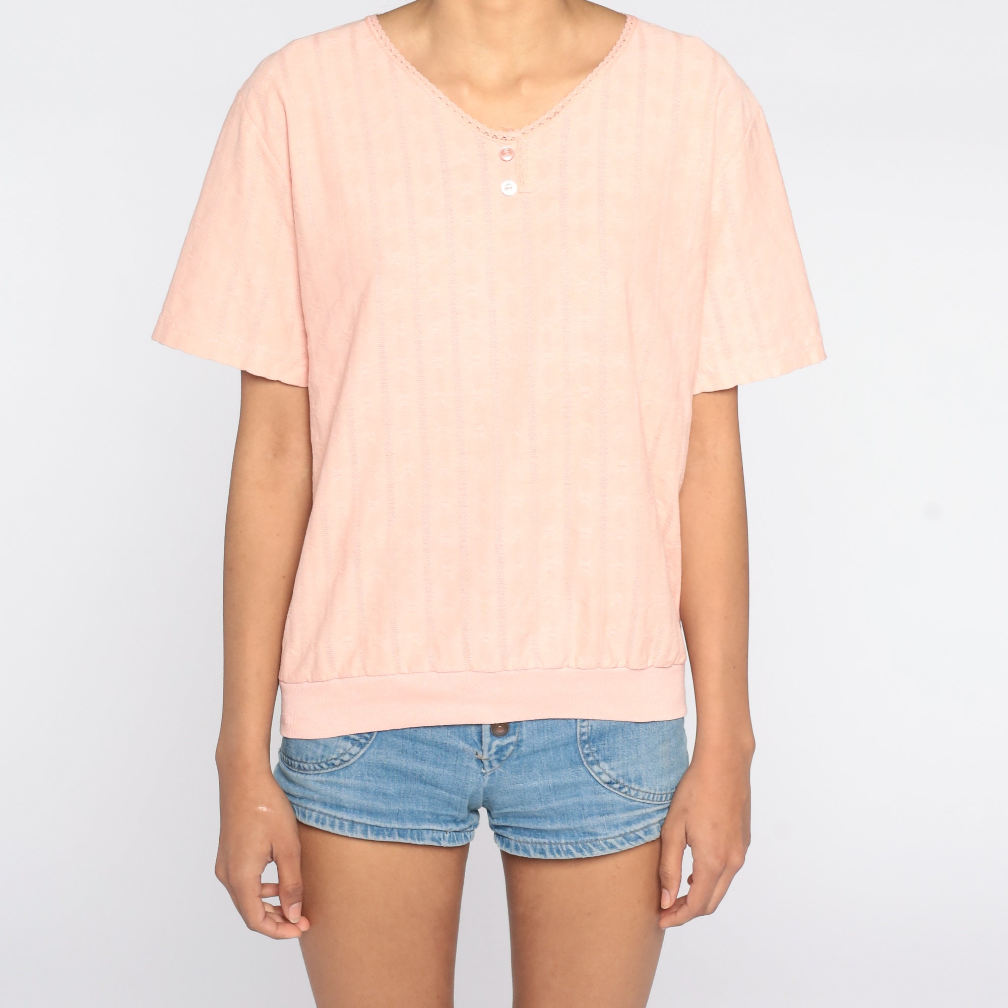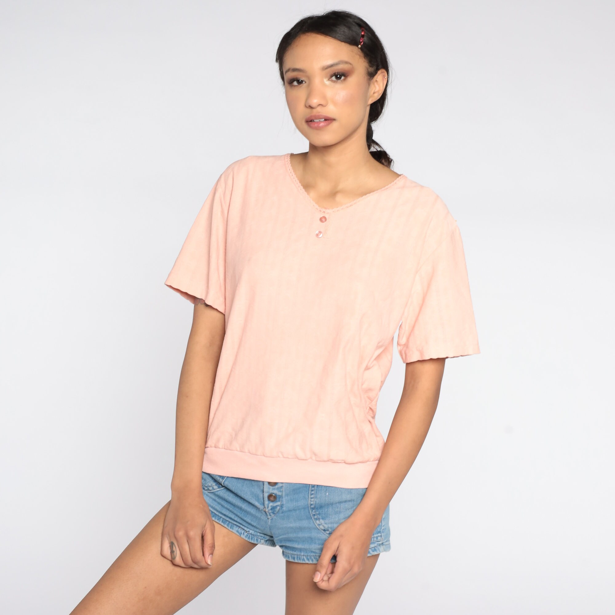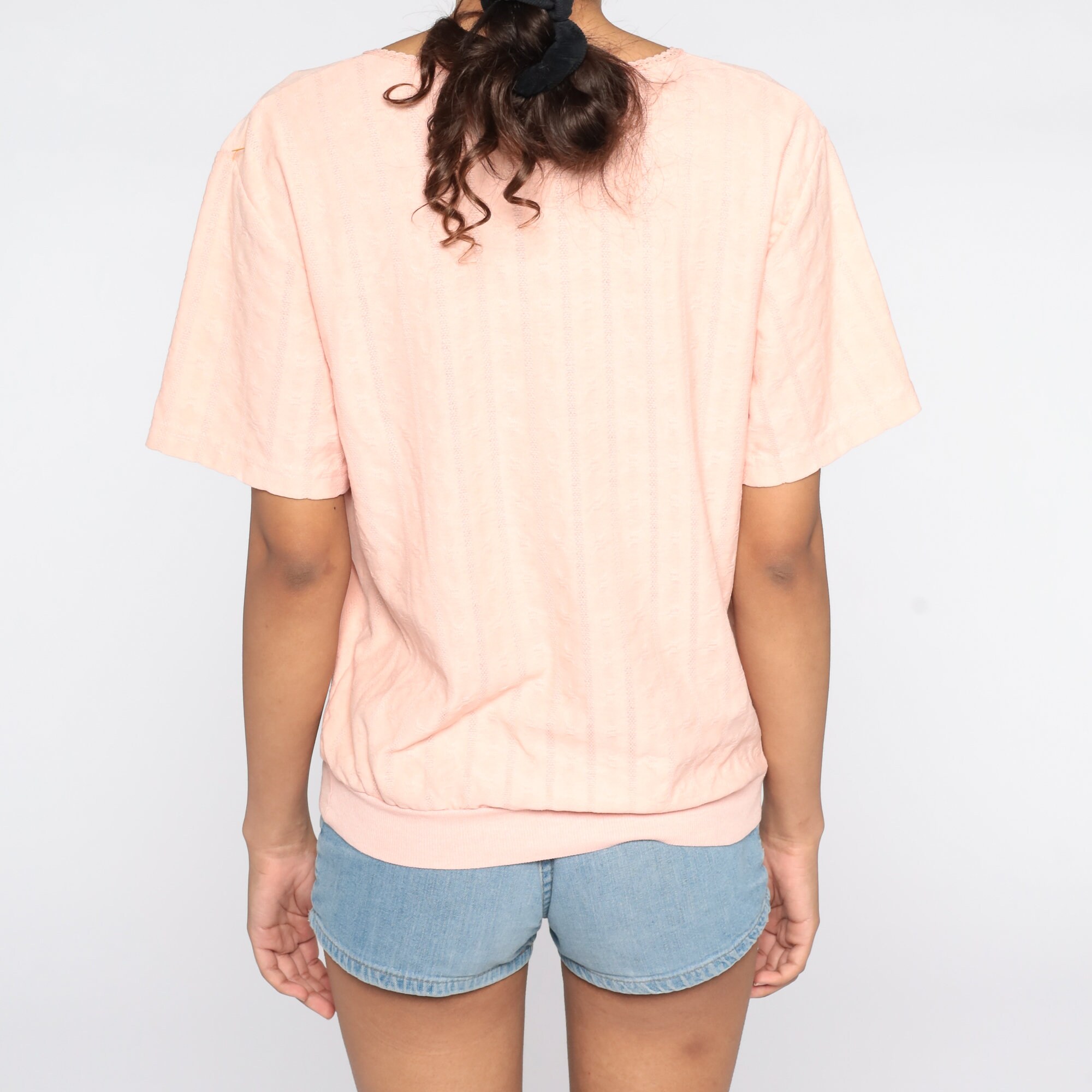 Vintage 80s shirt in peach with a slouchy fit.