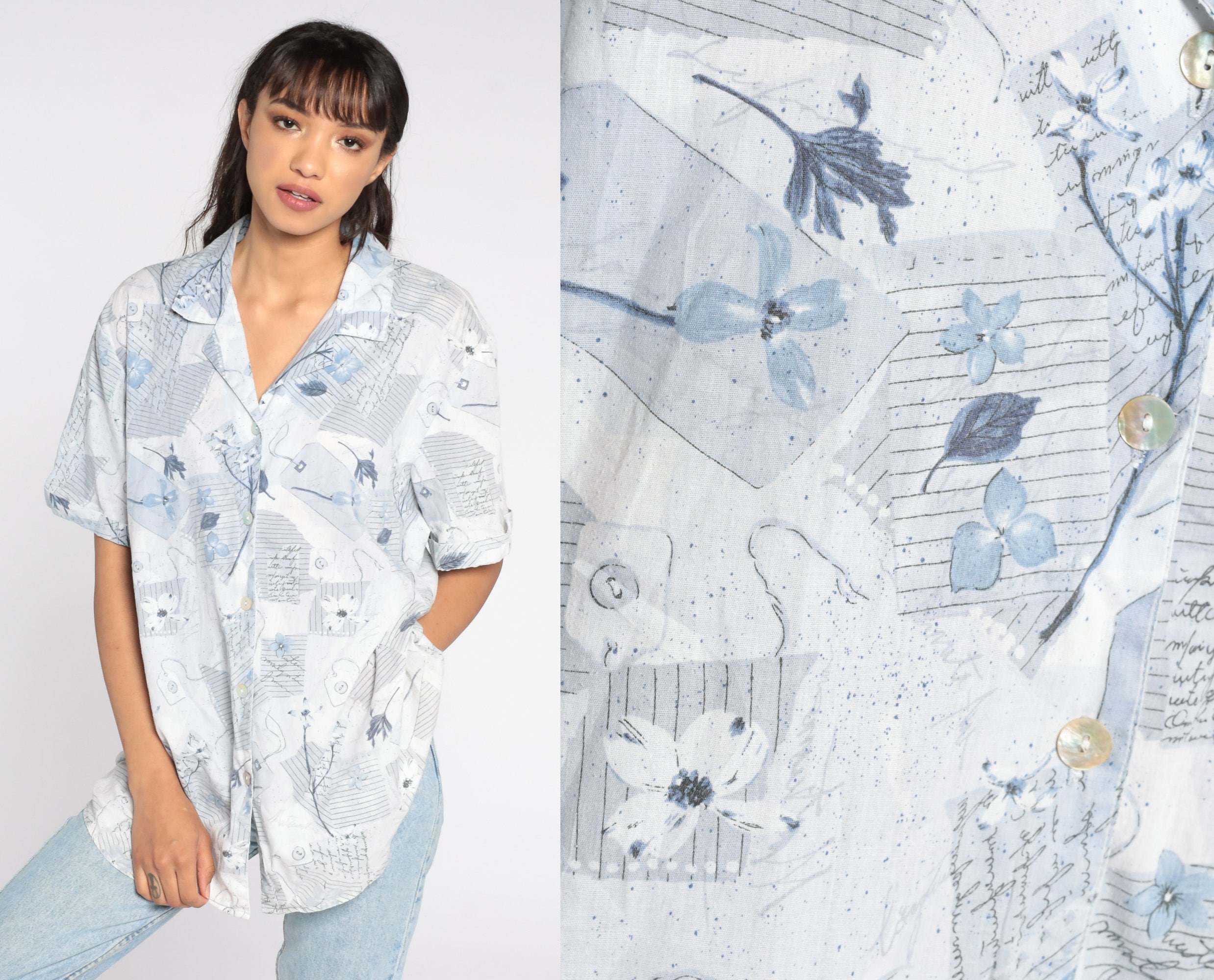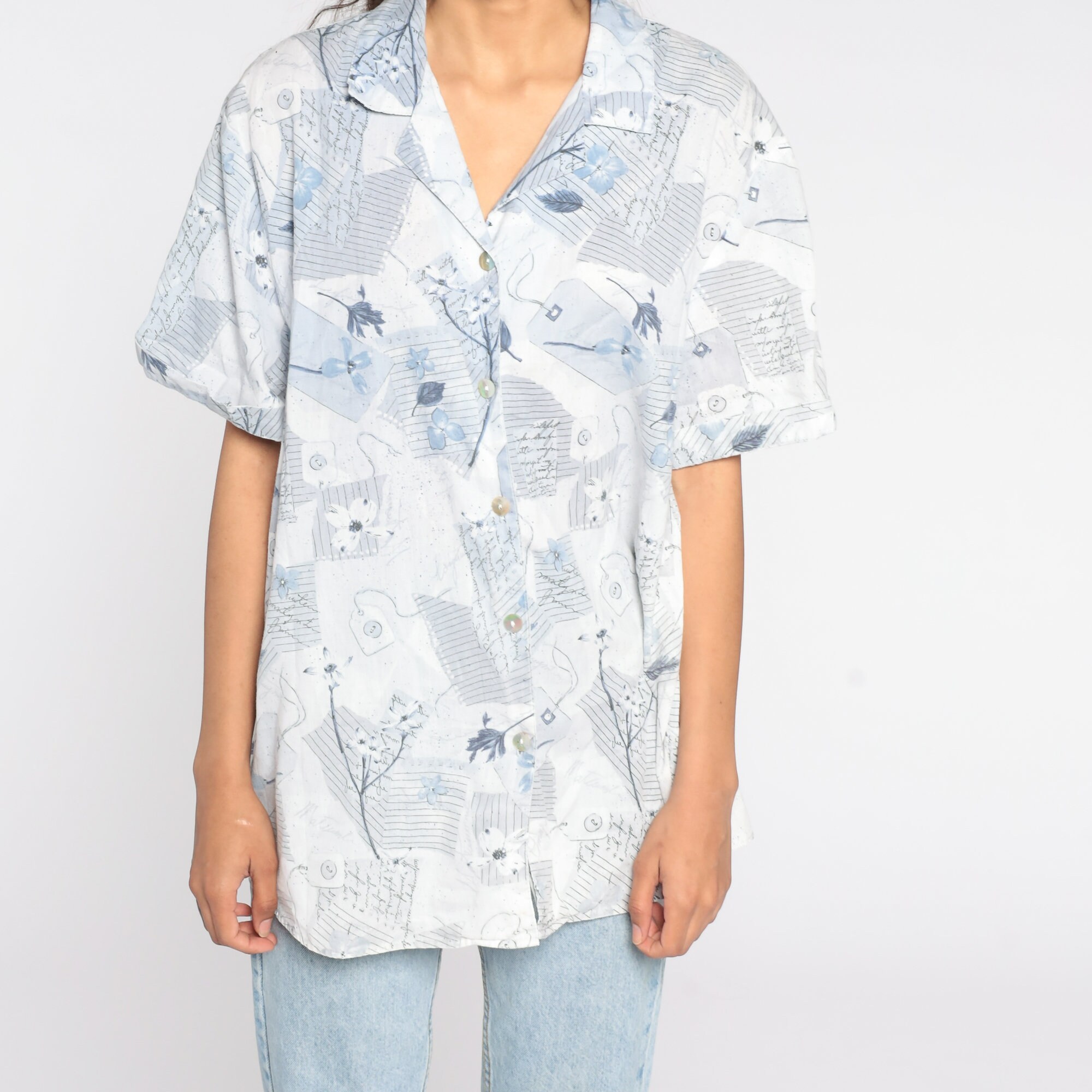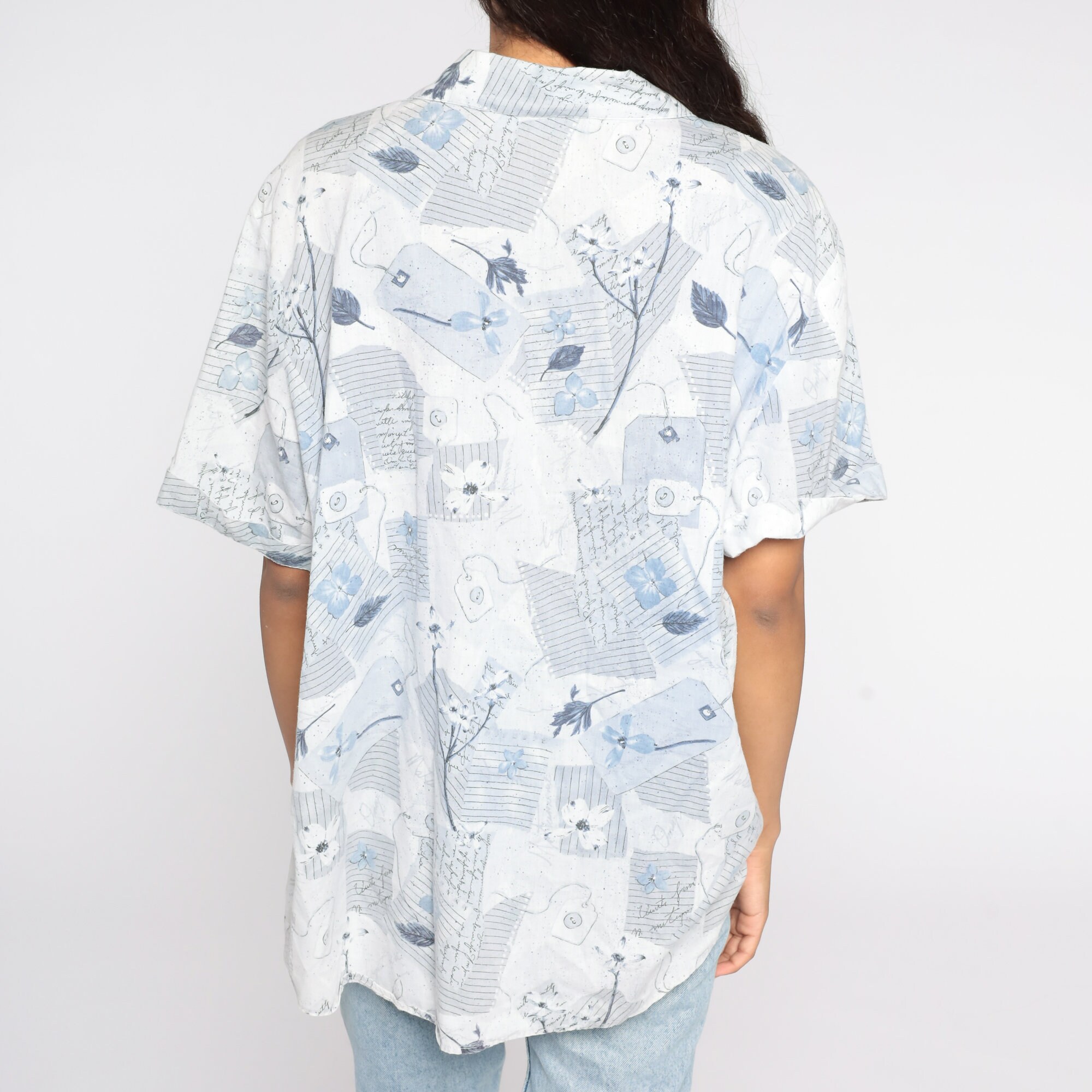 Vintage 90s shirt in a floral print. It has short sleeves and buttons up the front.