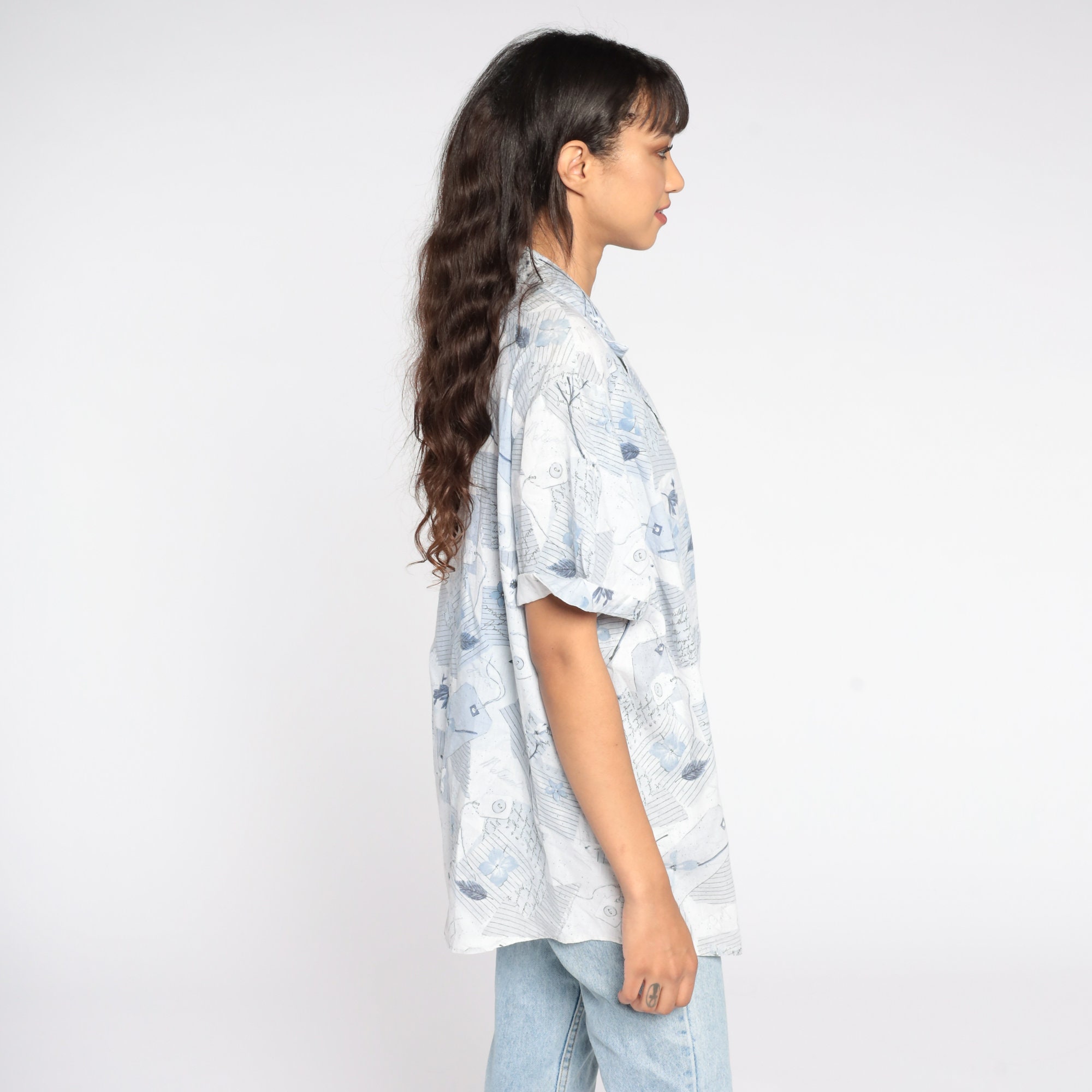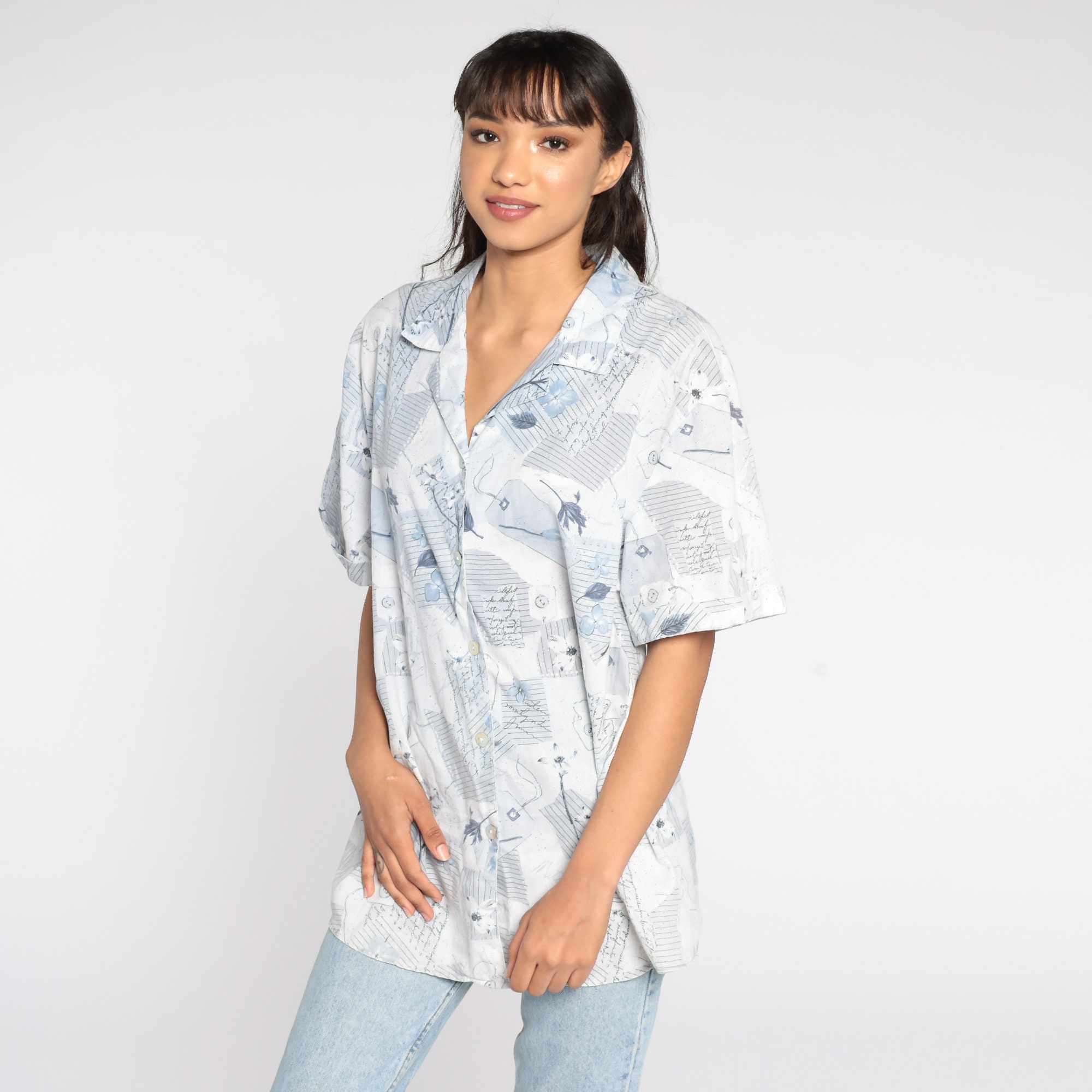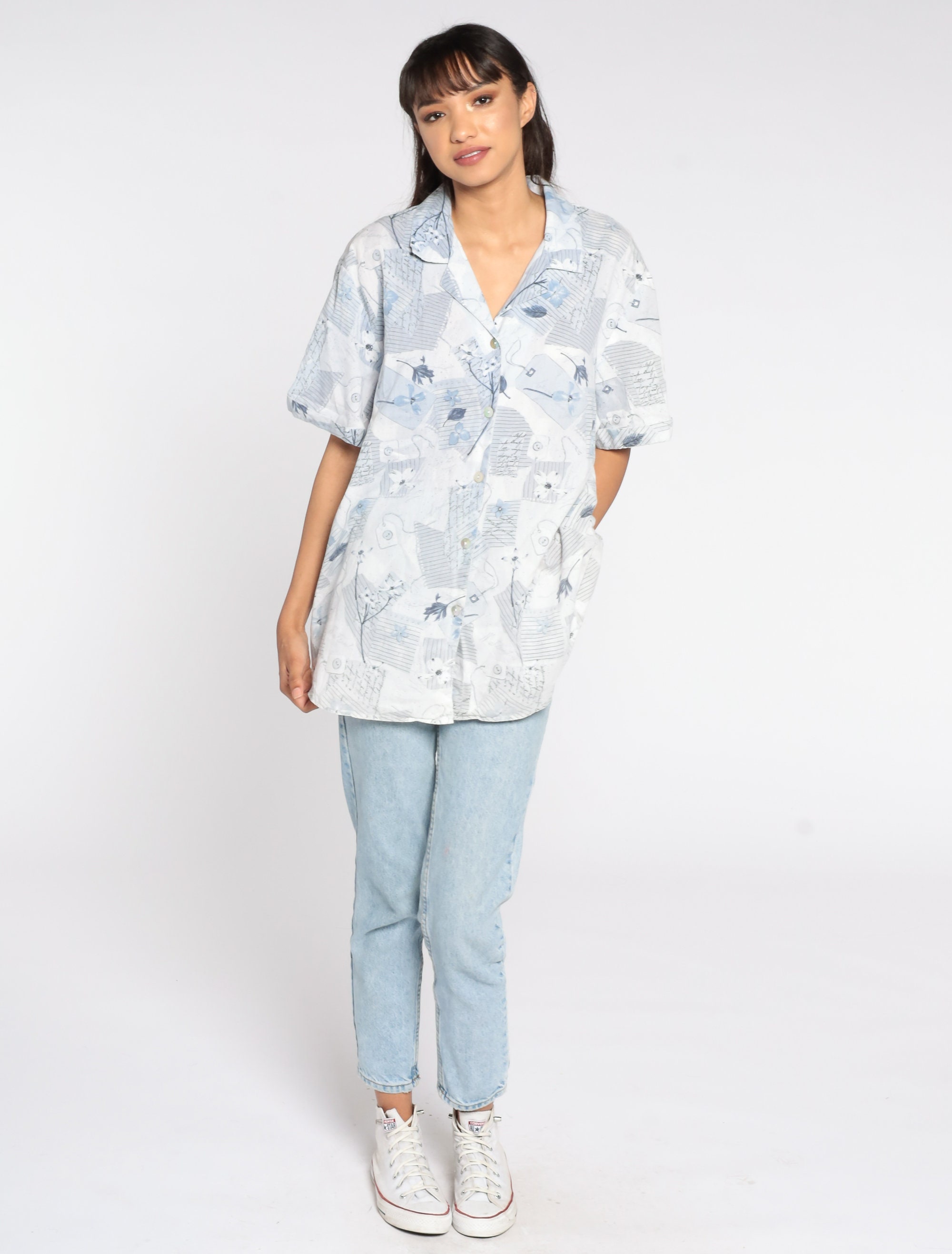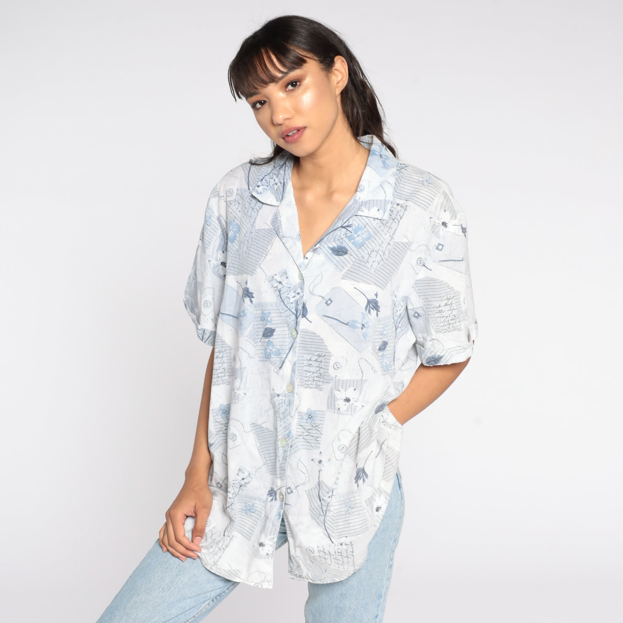 Vintage 90s shirt in a floral print. It has short sleeves and buttons up the front.