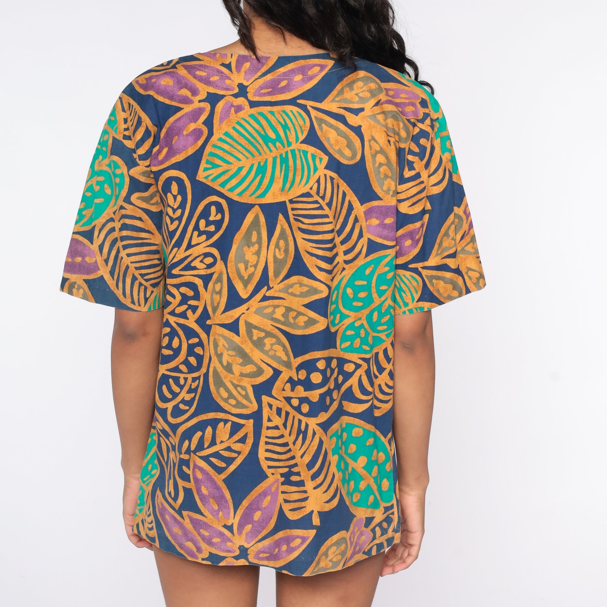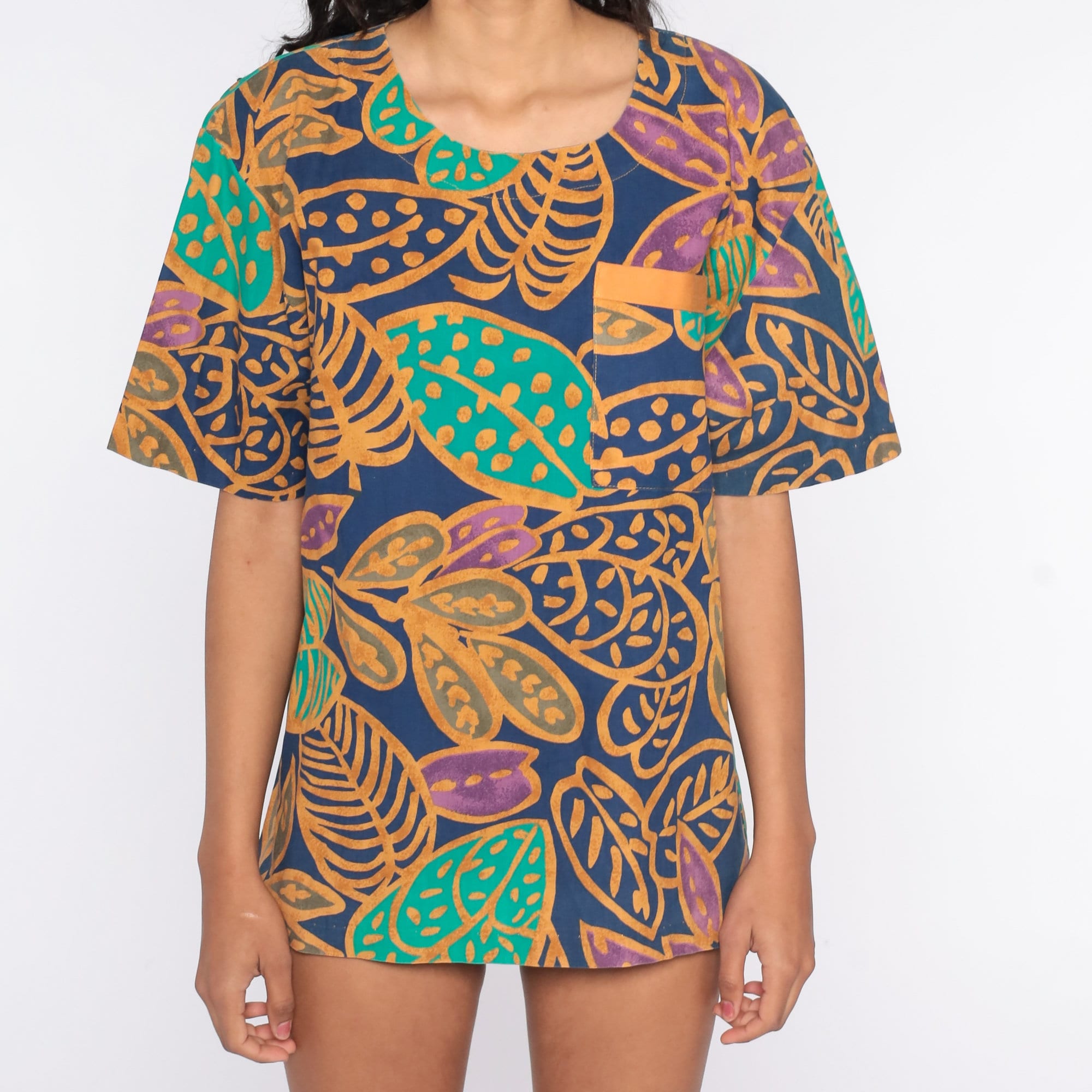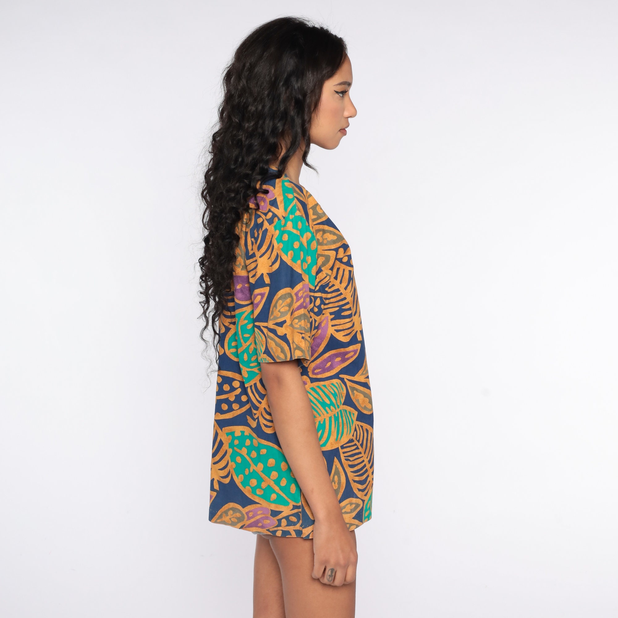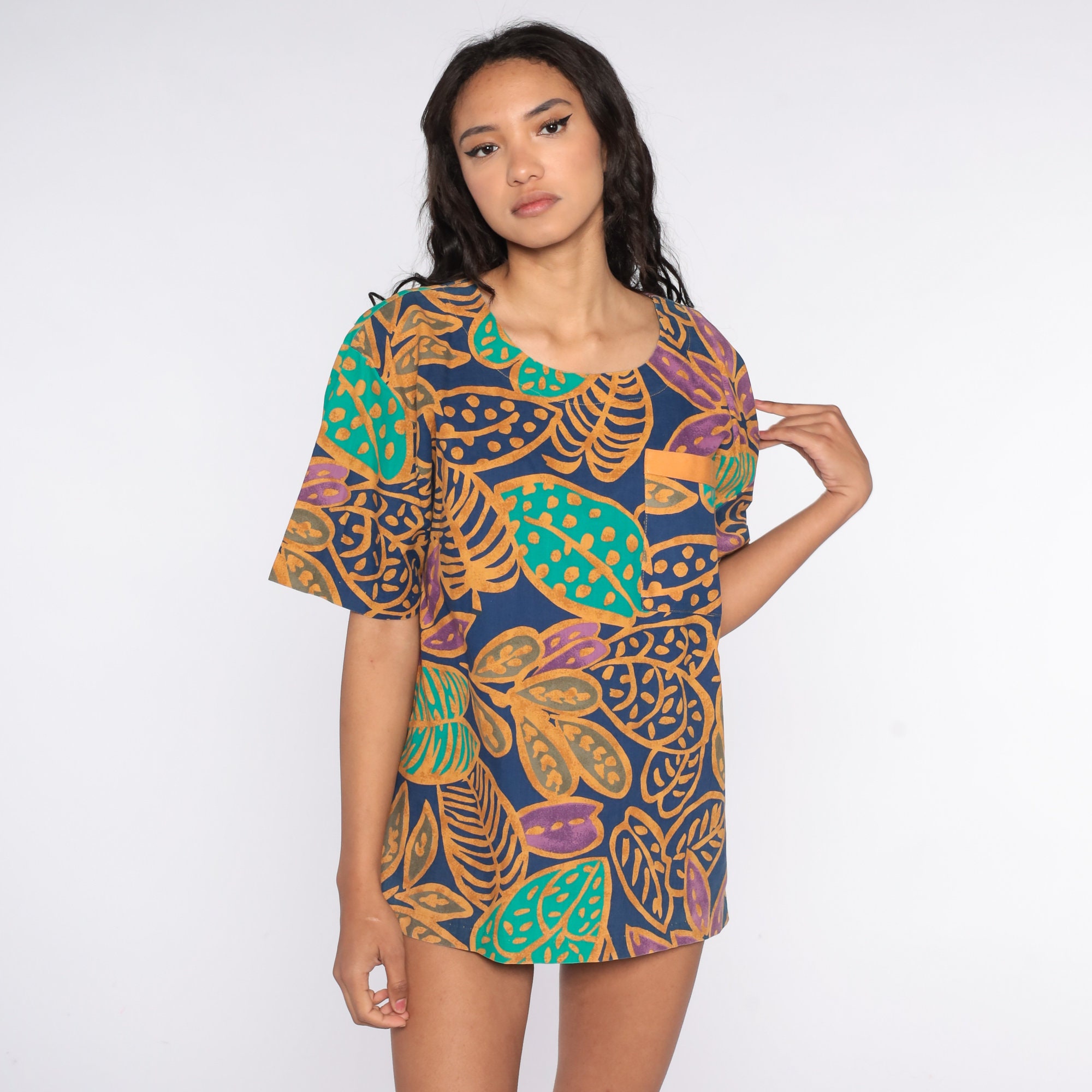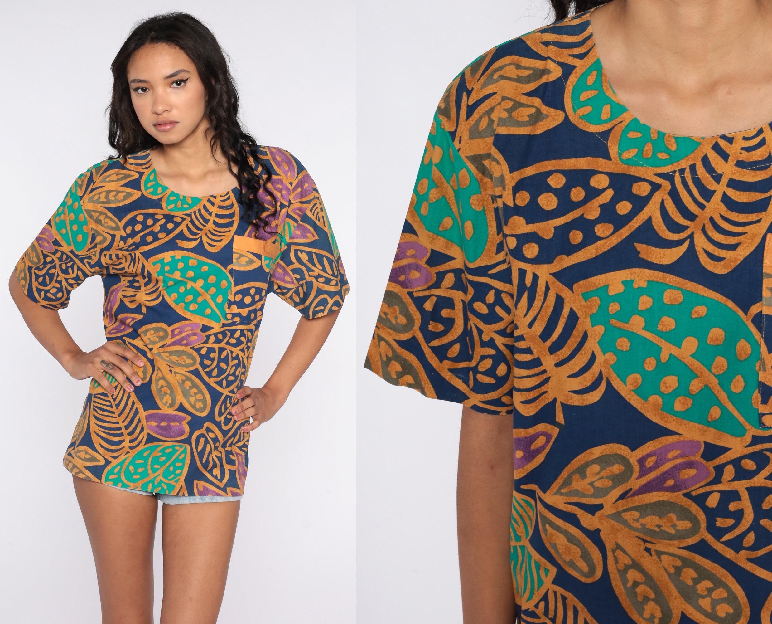 Vintage 90s t shirt with a tropical leaf print.