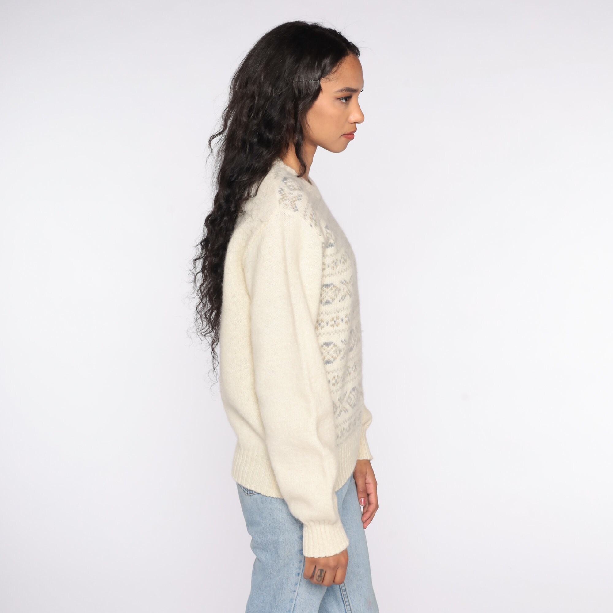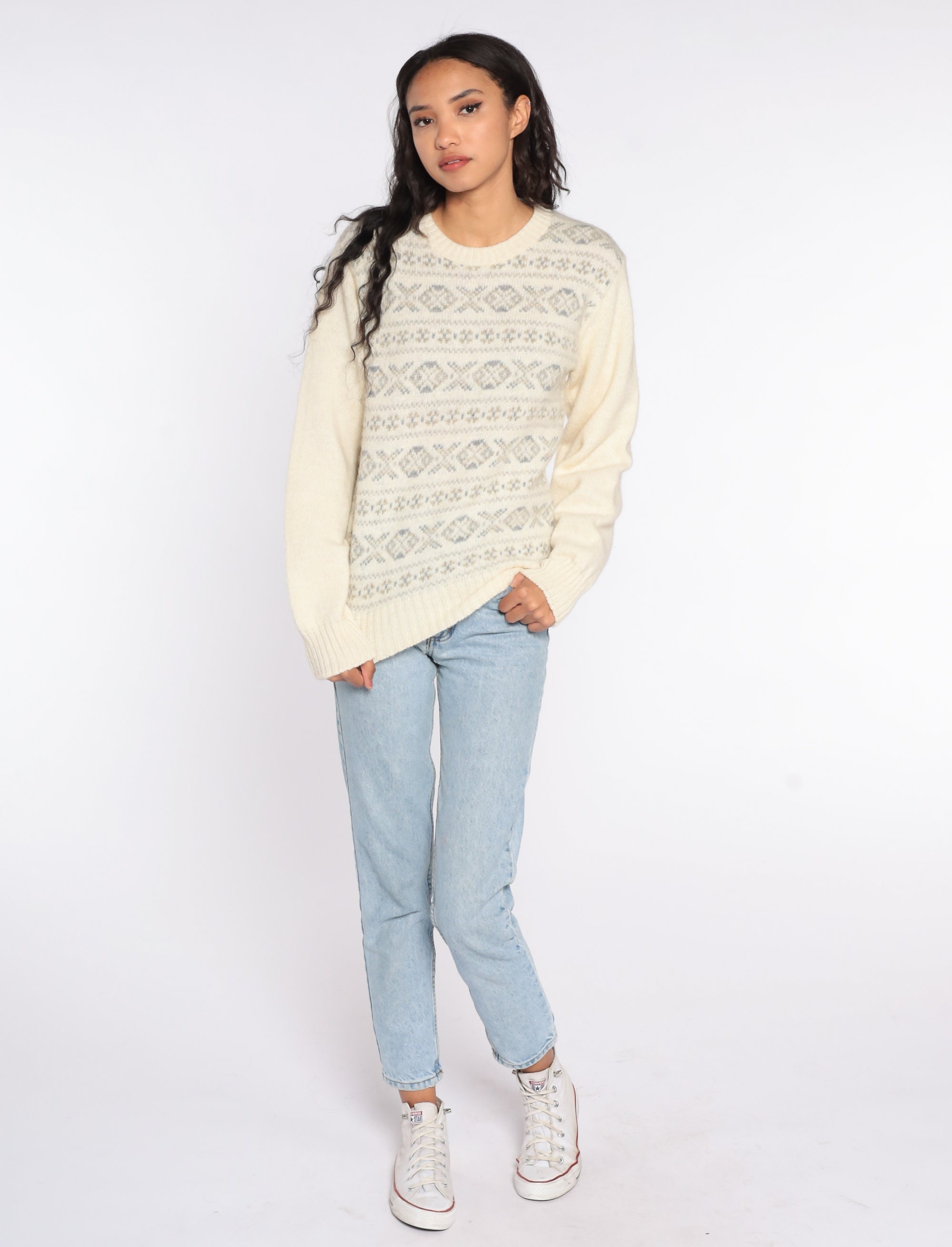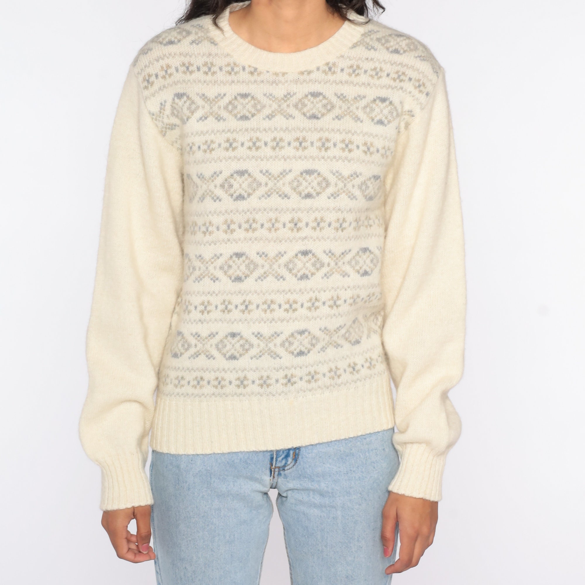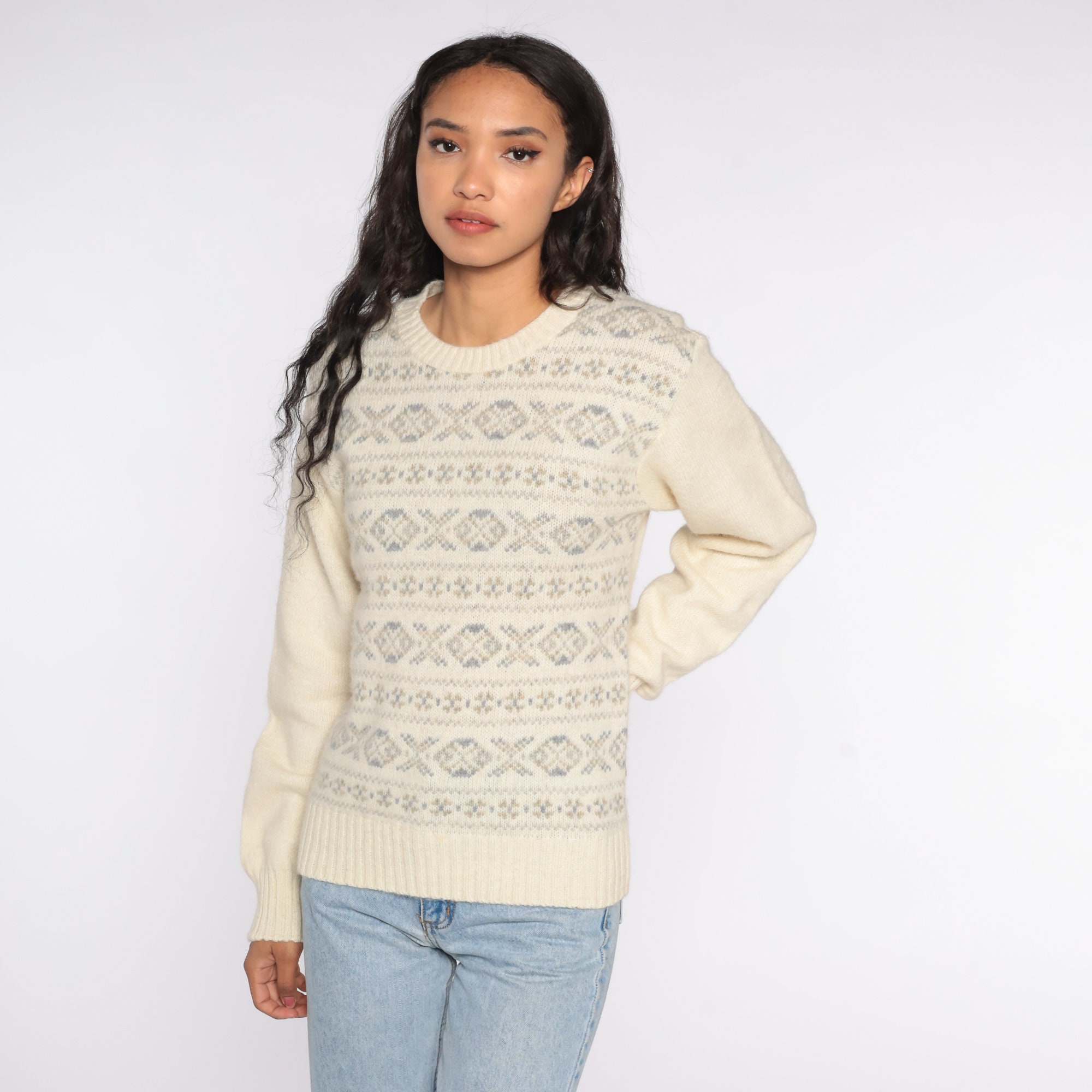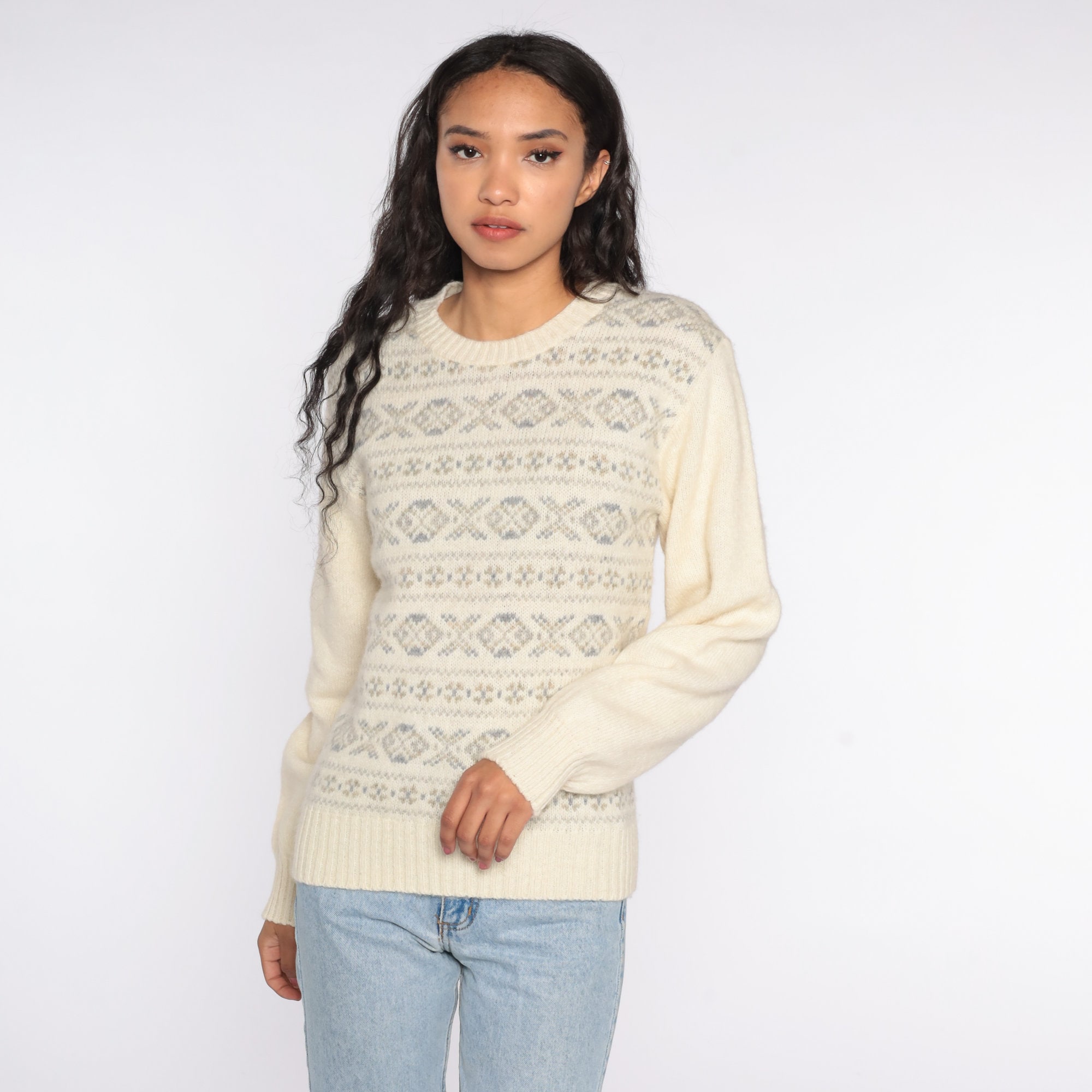 Vintage 80s sweater with a geometric print. Slouchy fit.