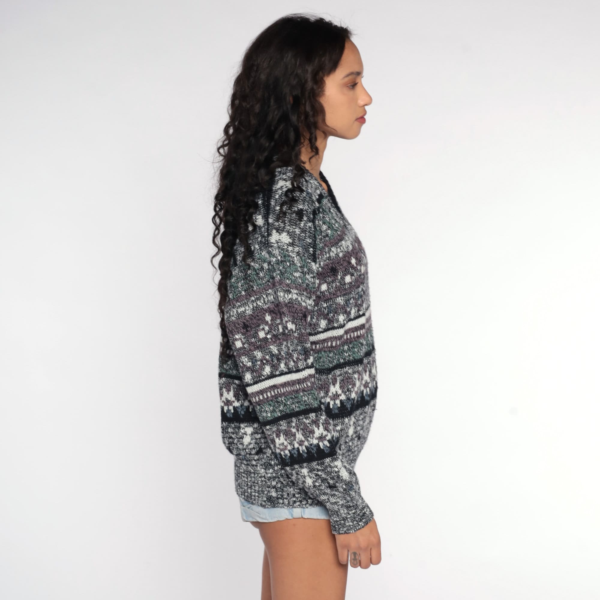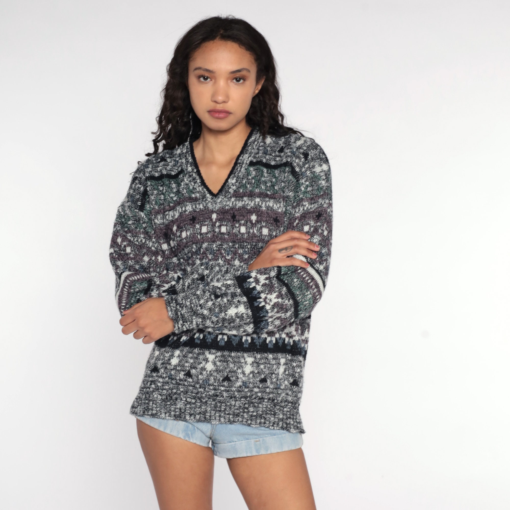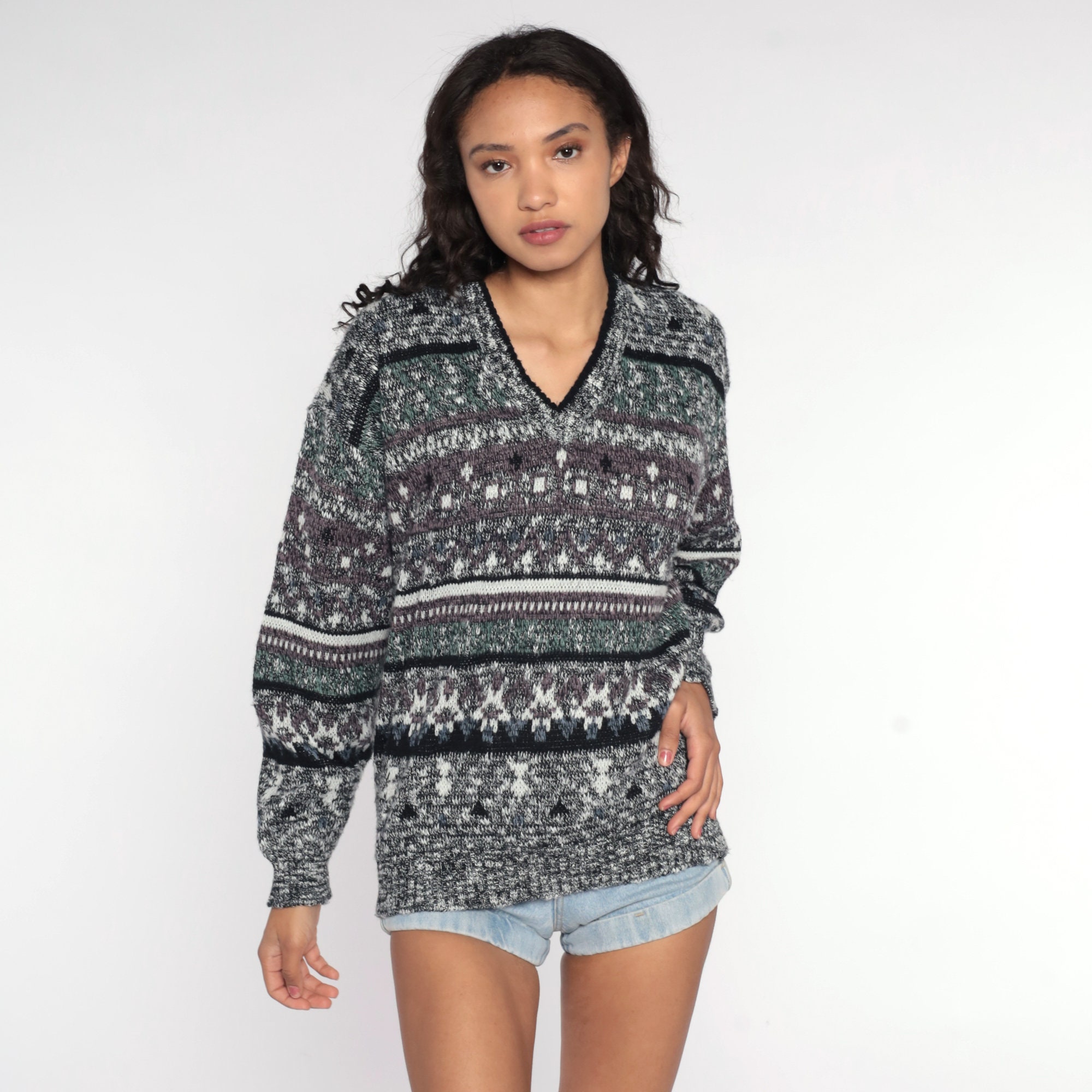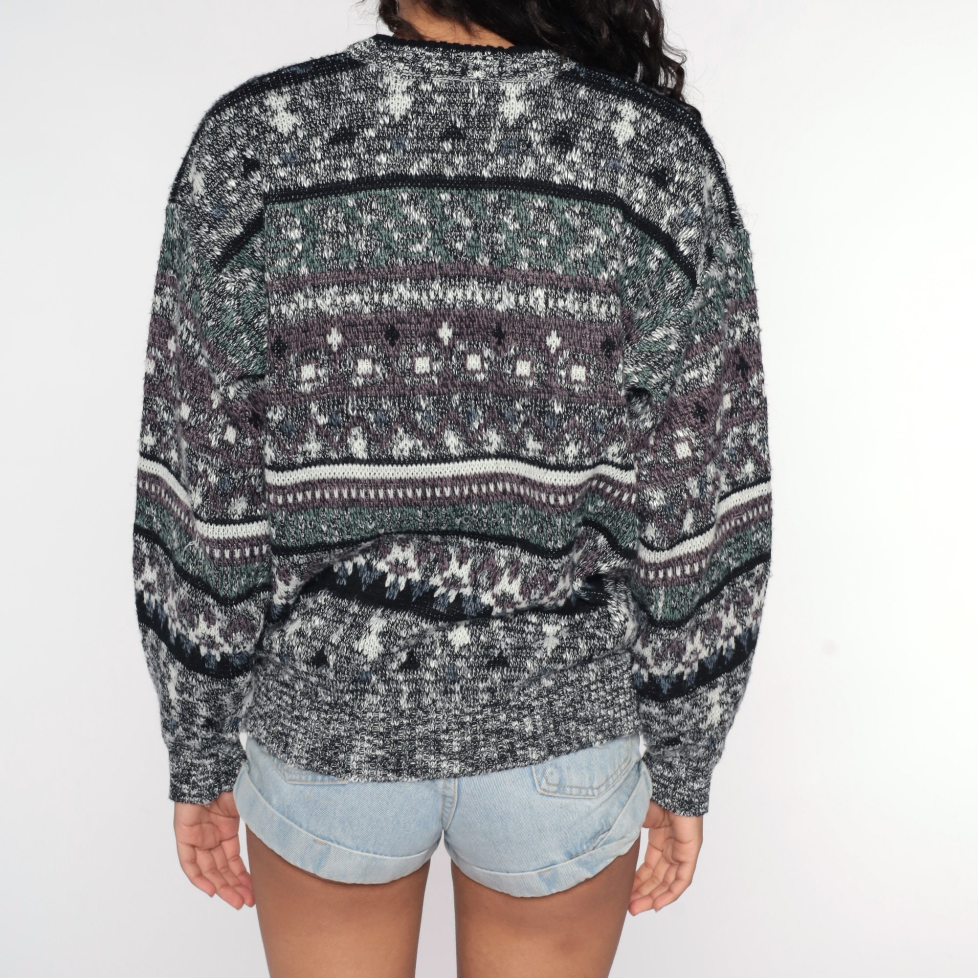 Vintage 80s 90s sweater with a geometric print. Slouchy fit.