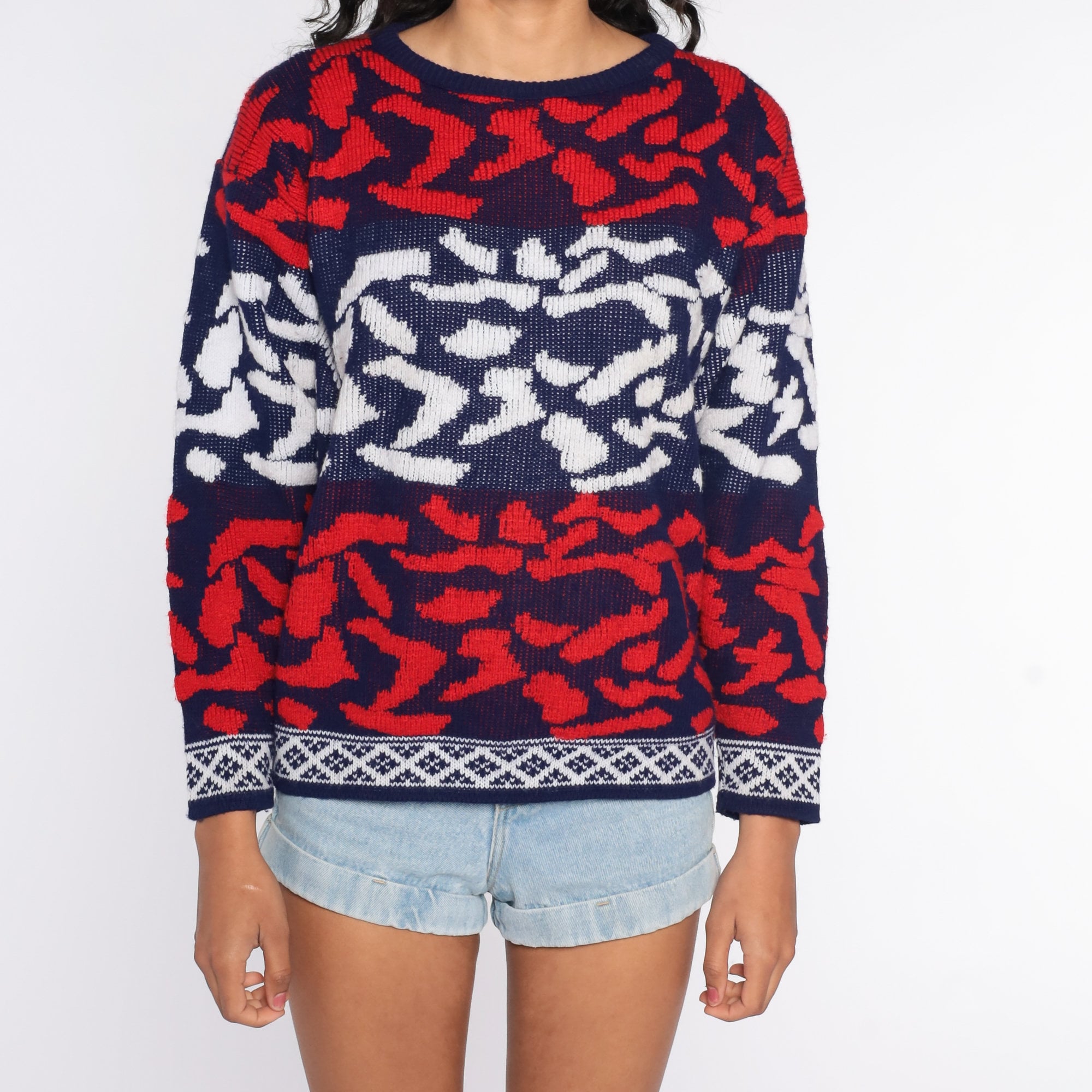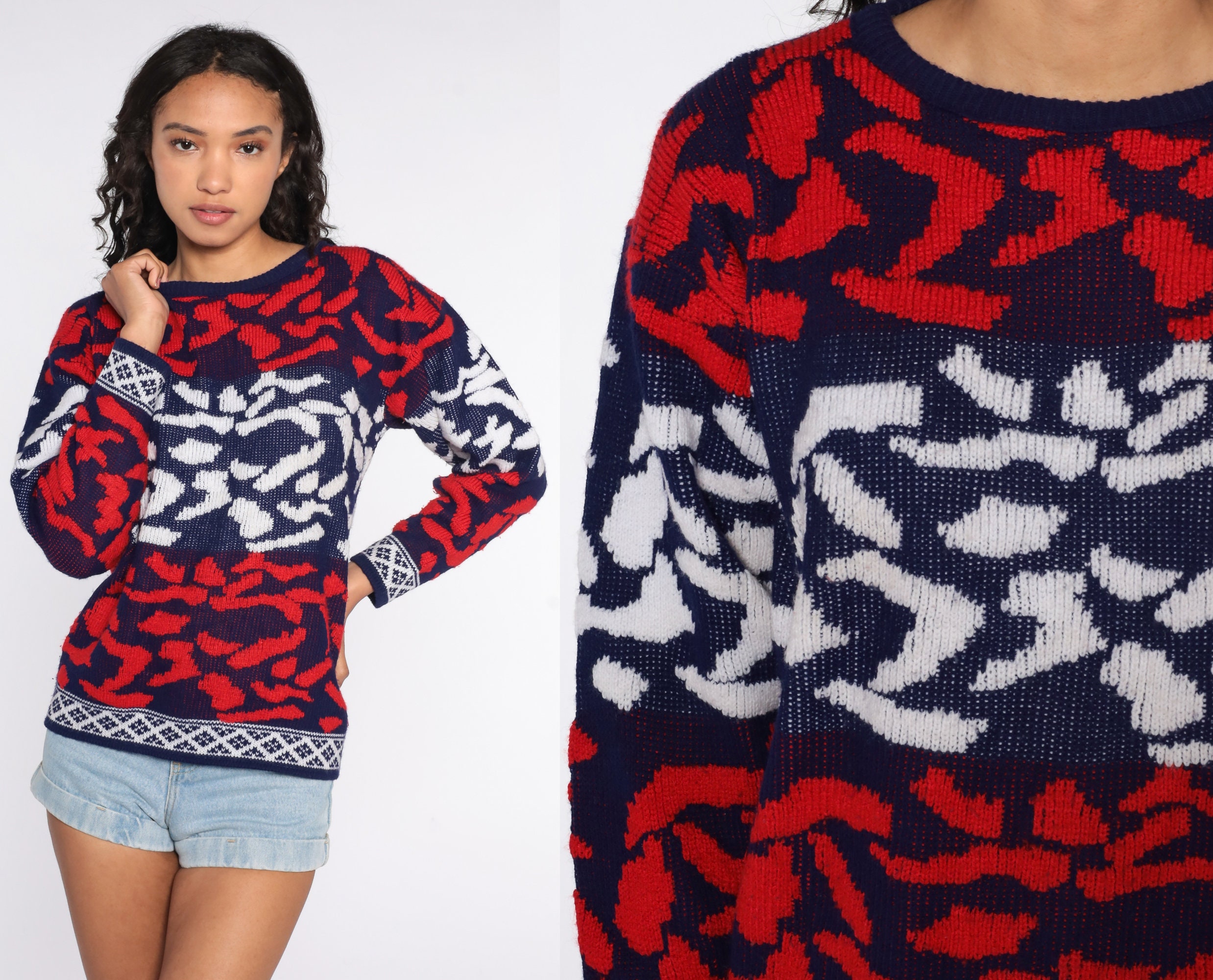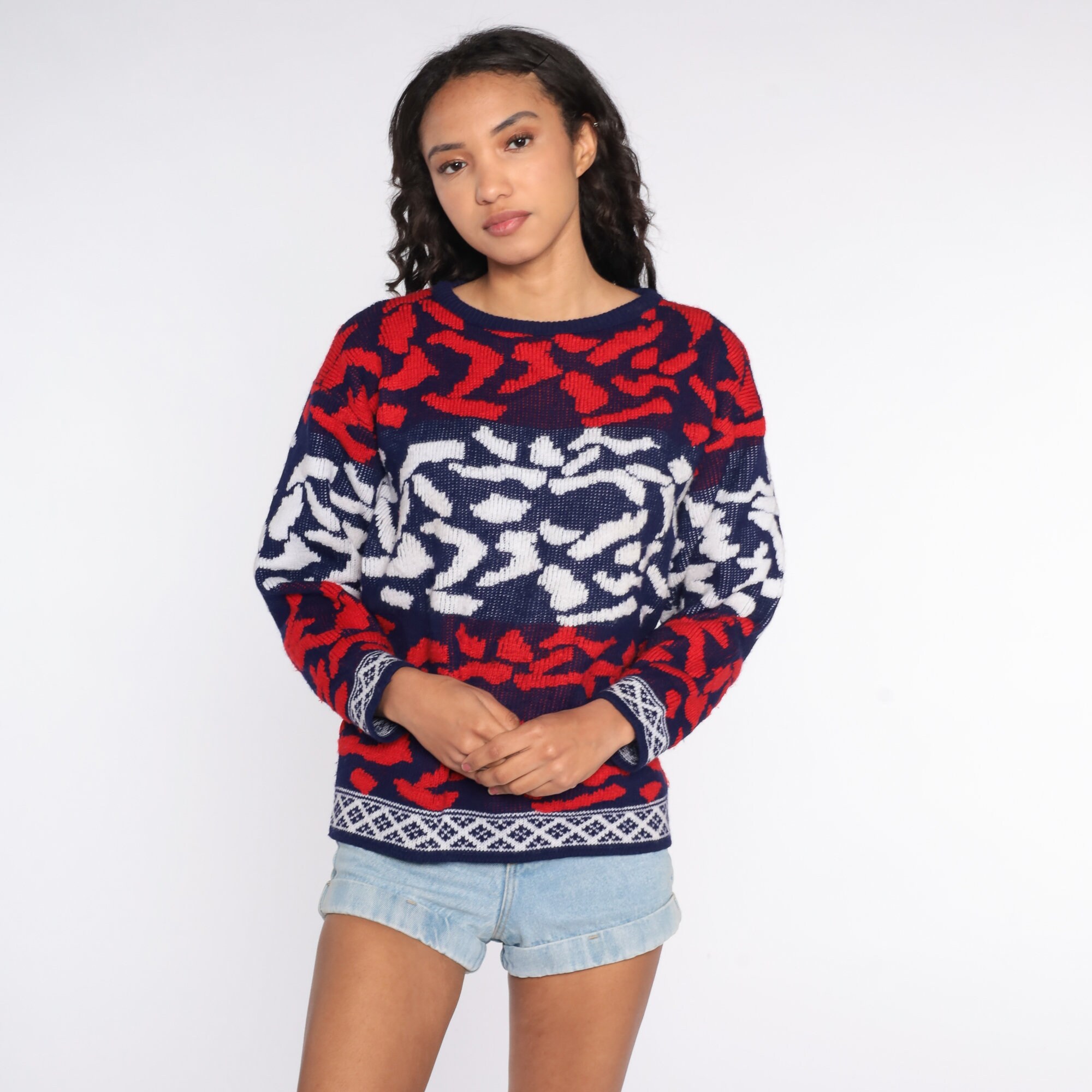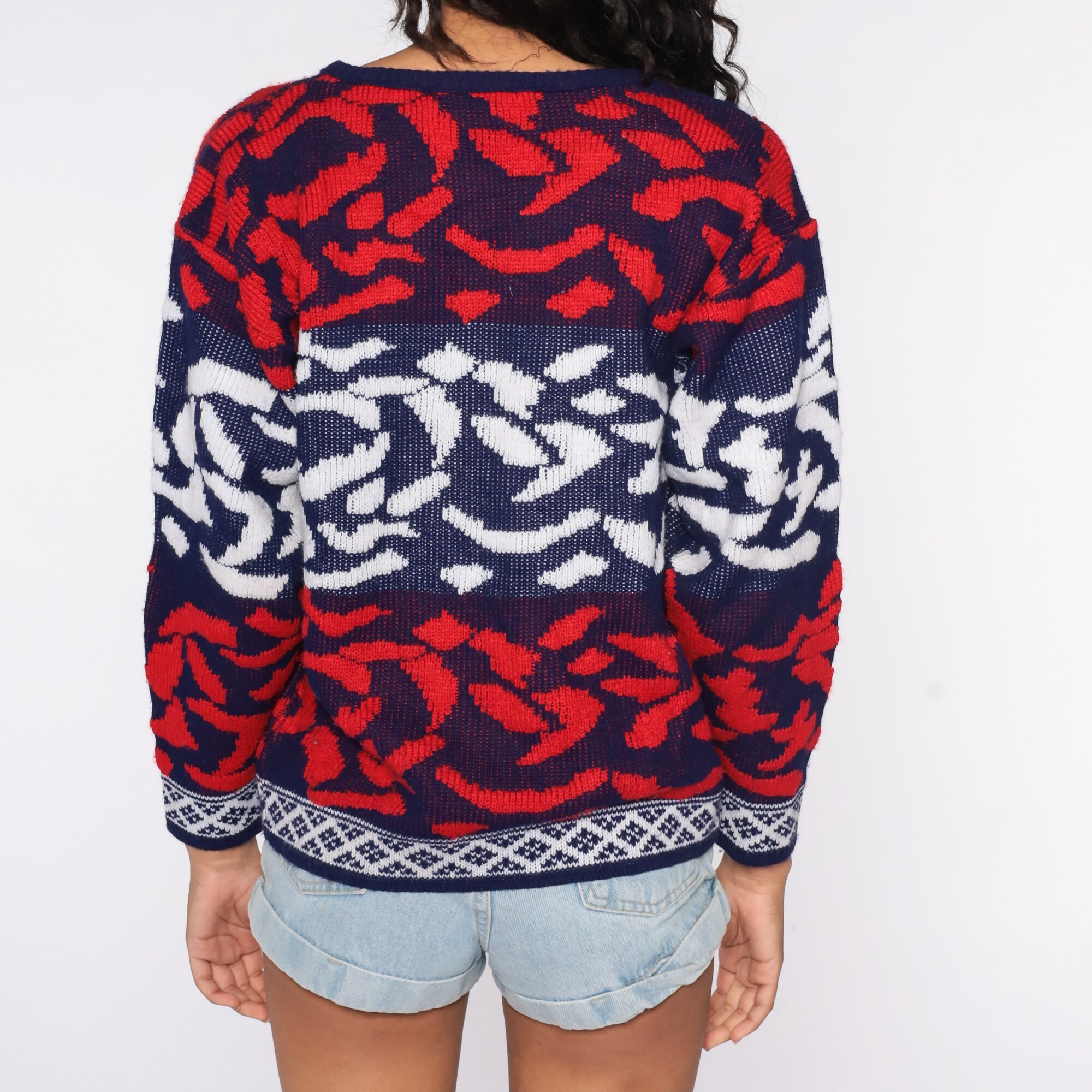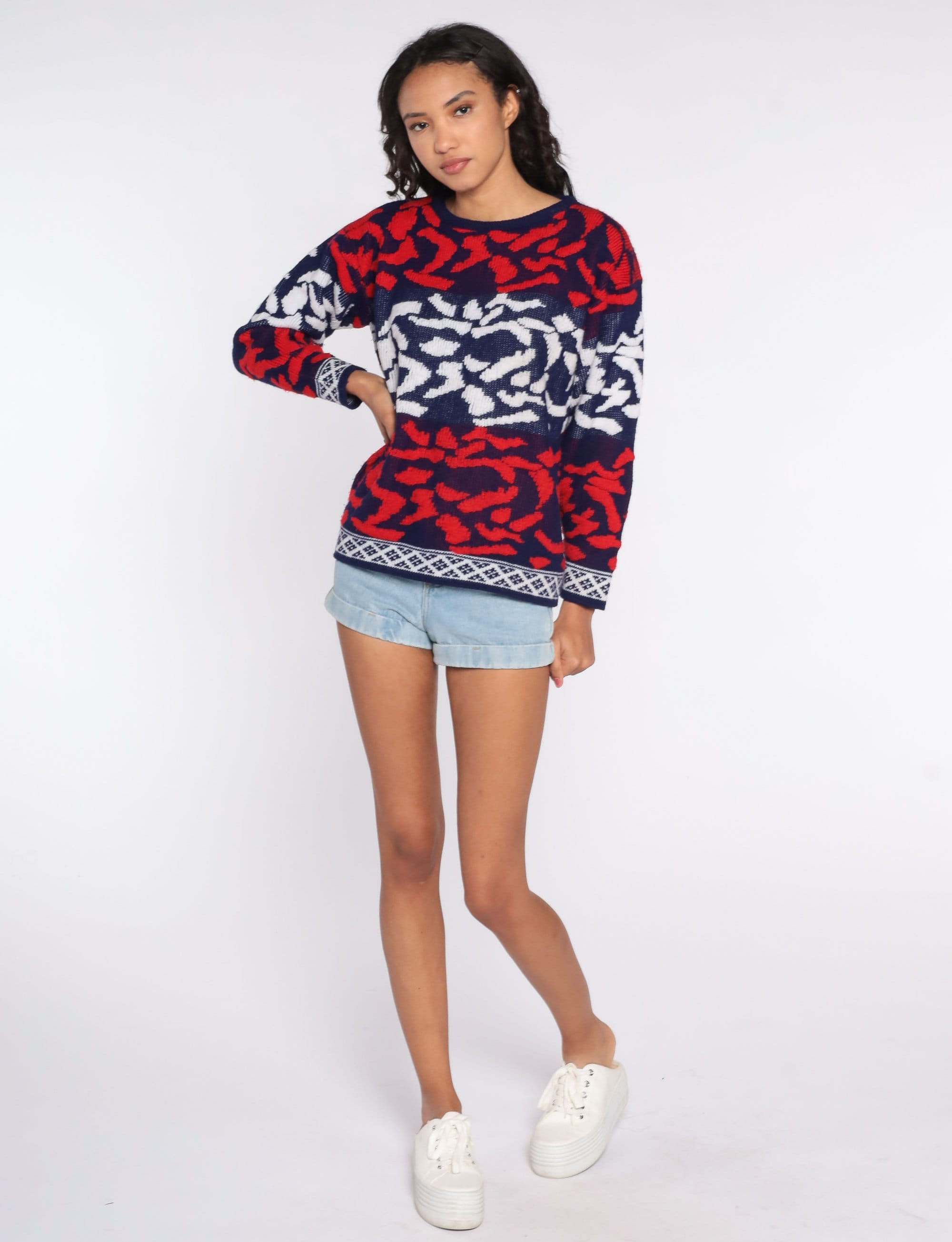 Vintage 80s sweater with an abstract print. Slouchy fit.