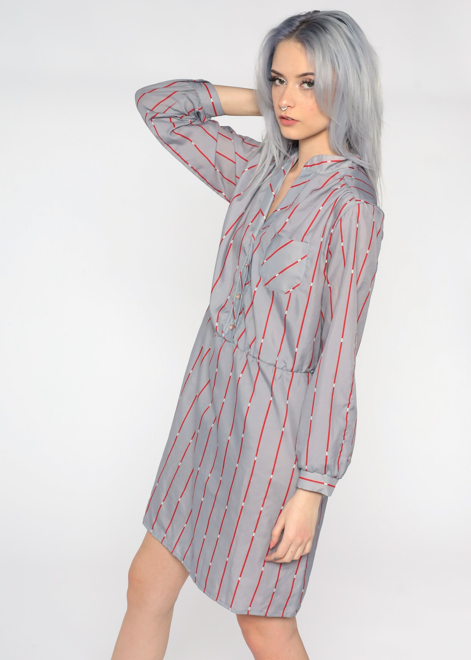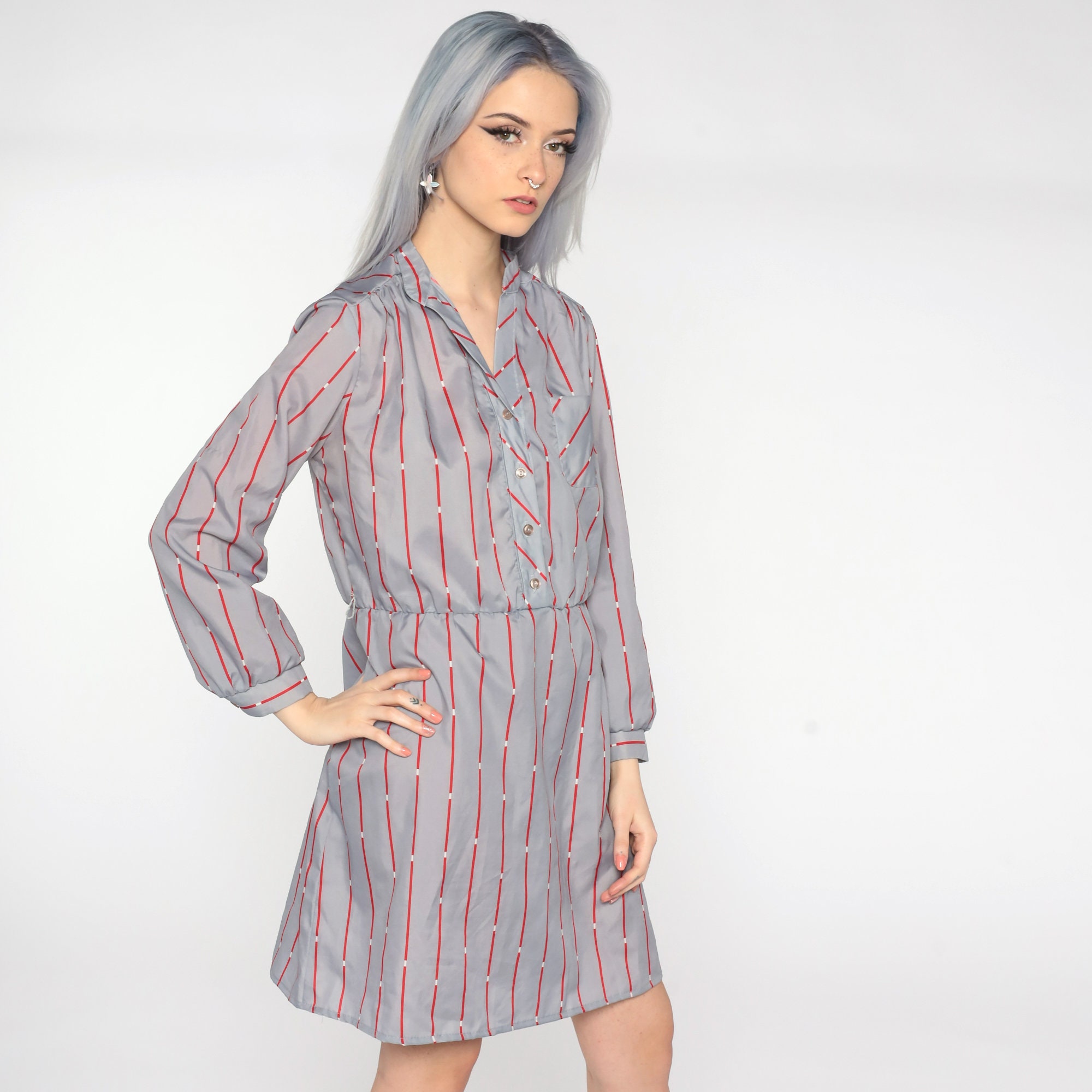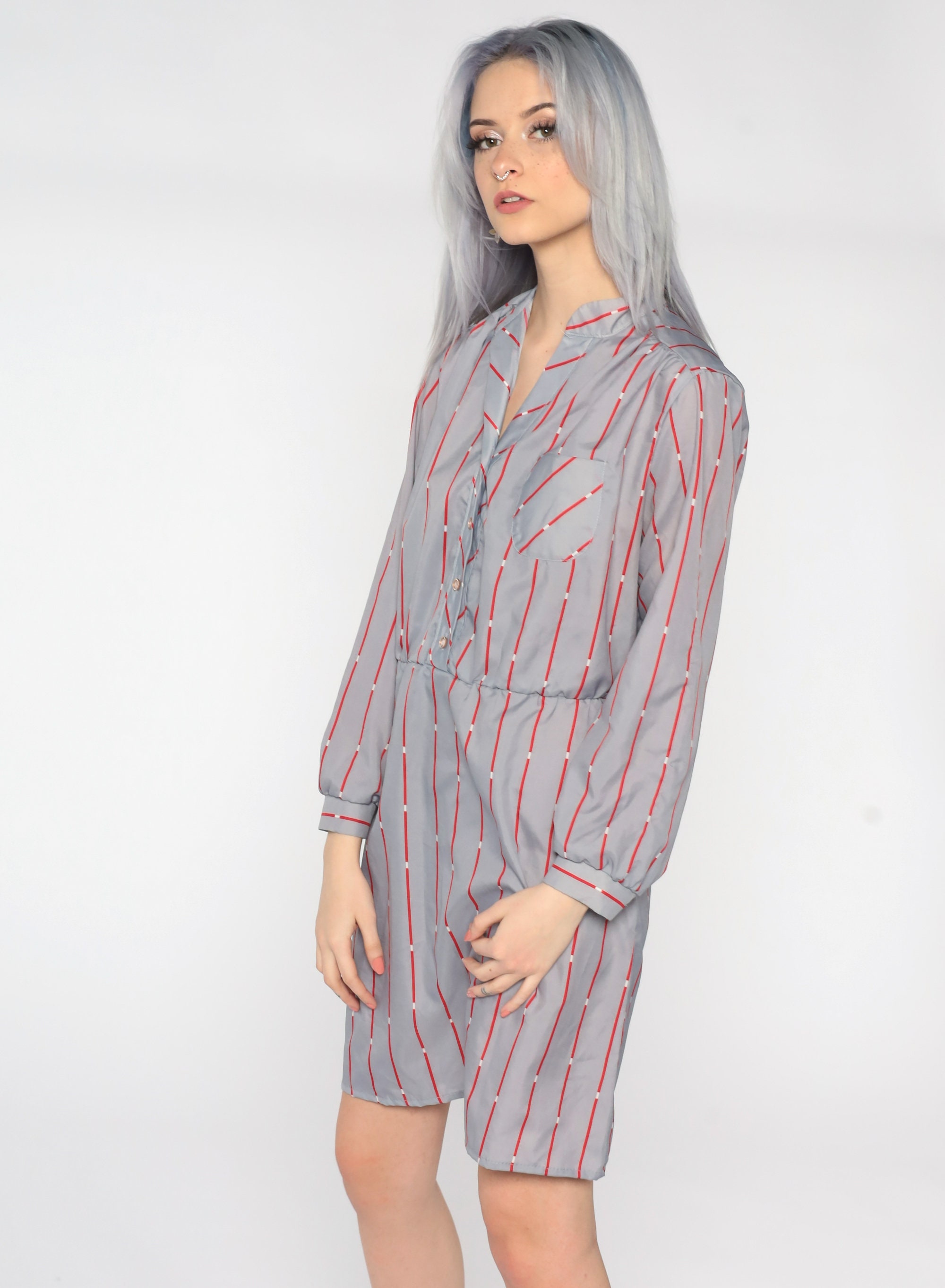 Vintage 80s dress with stripes and buttons up the chest. Mini length.