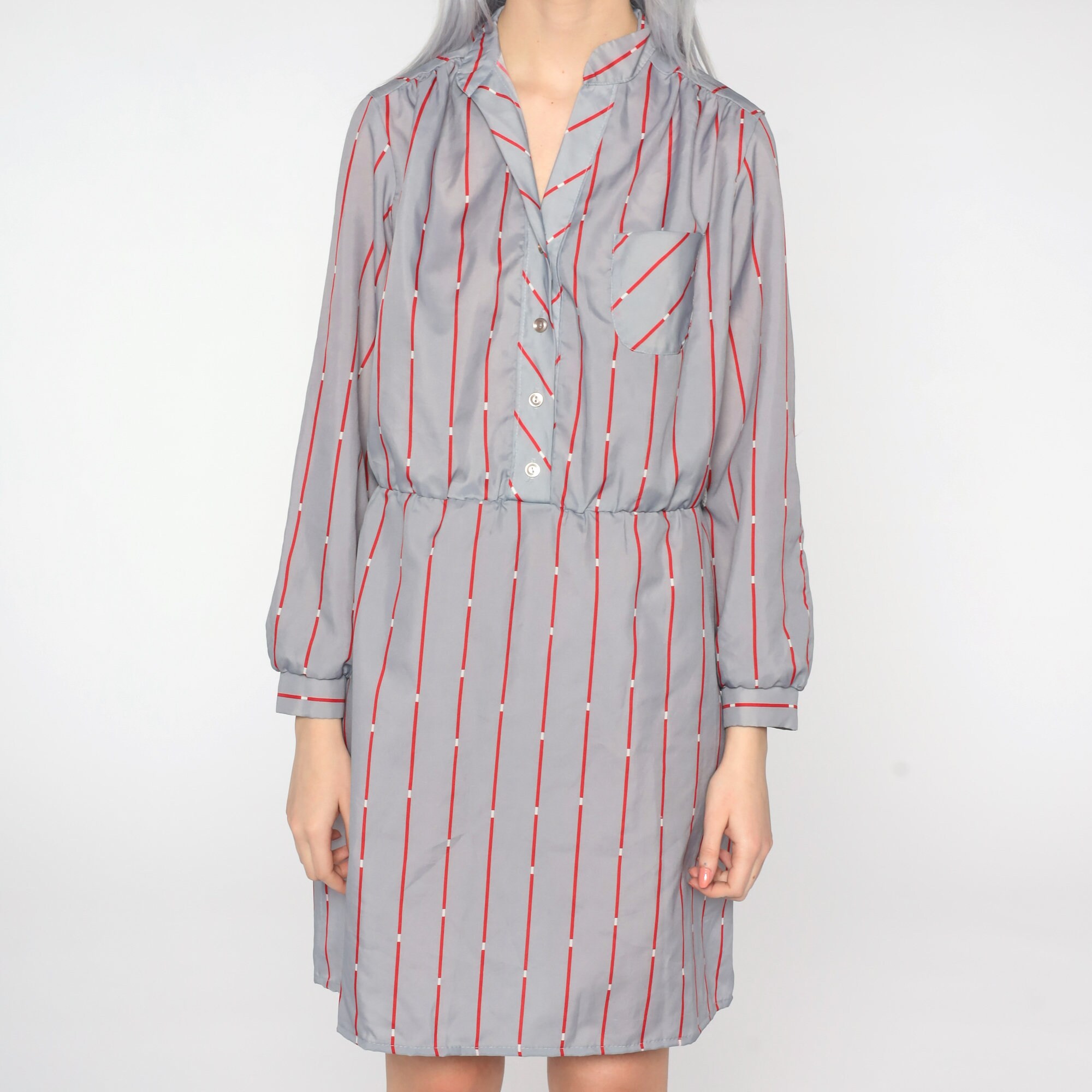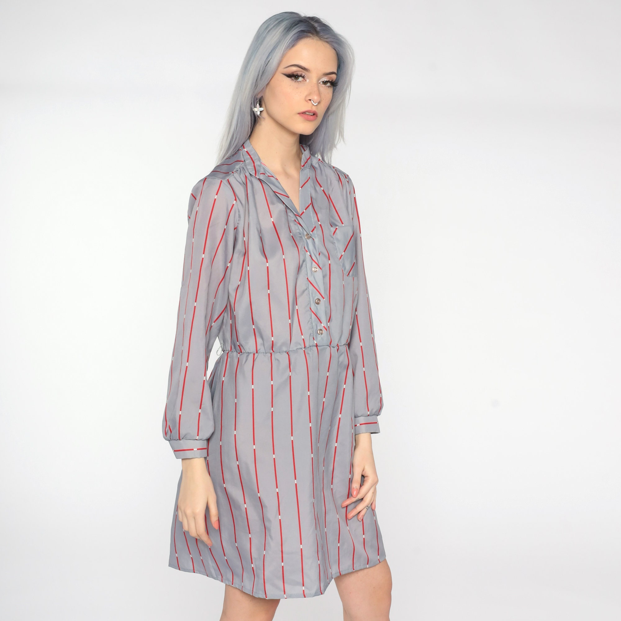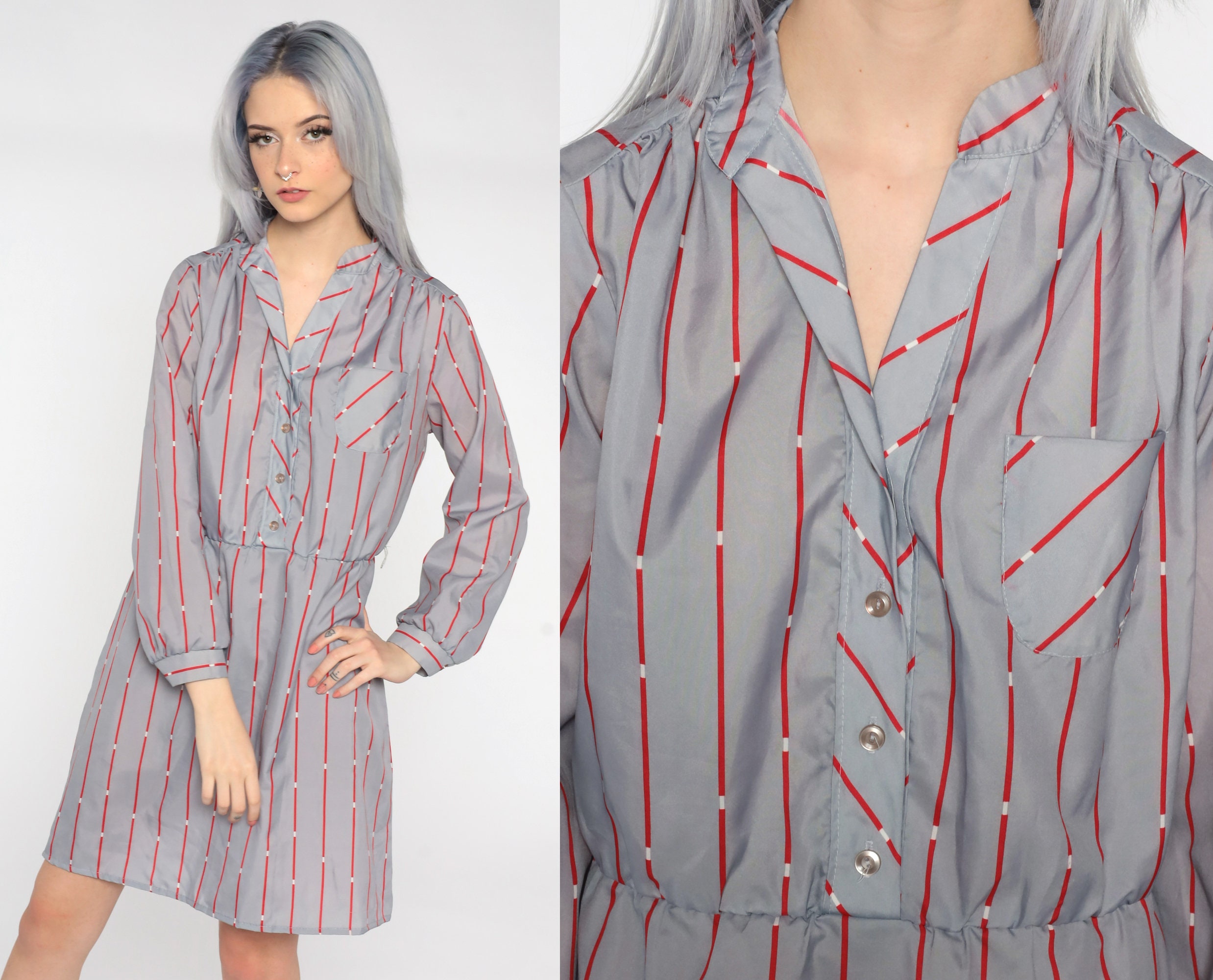 Vintage 80s dress with stripes and buttons up the chest. Mini length.