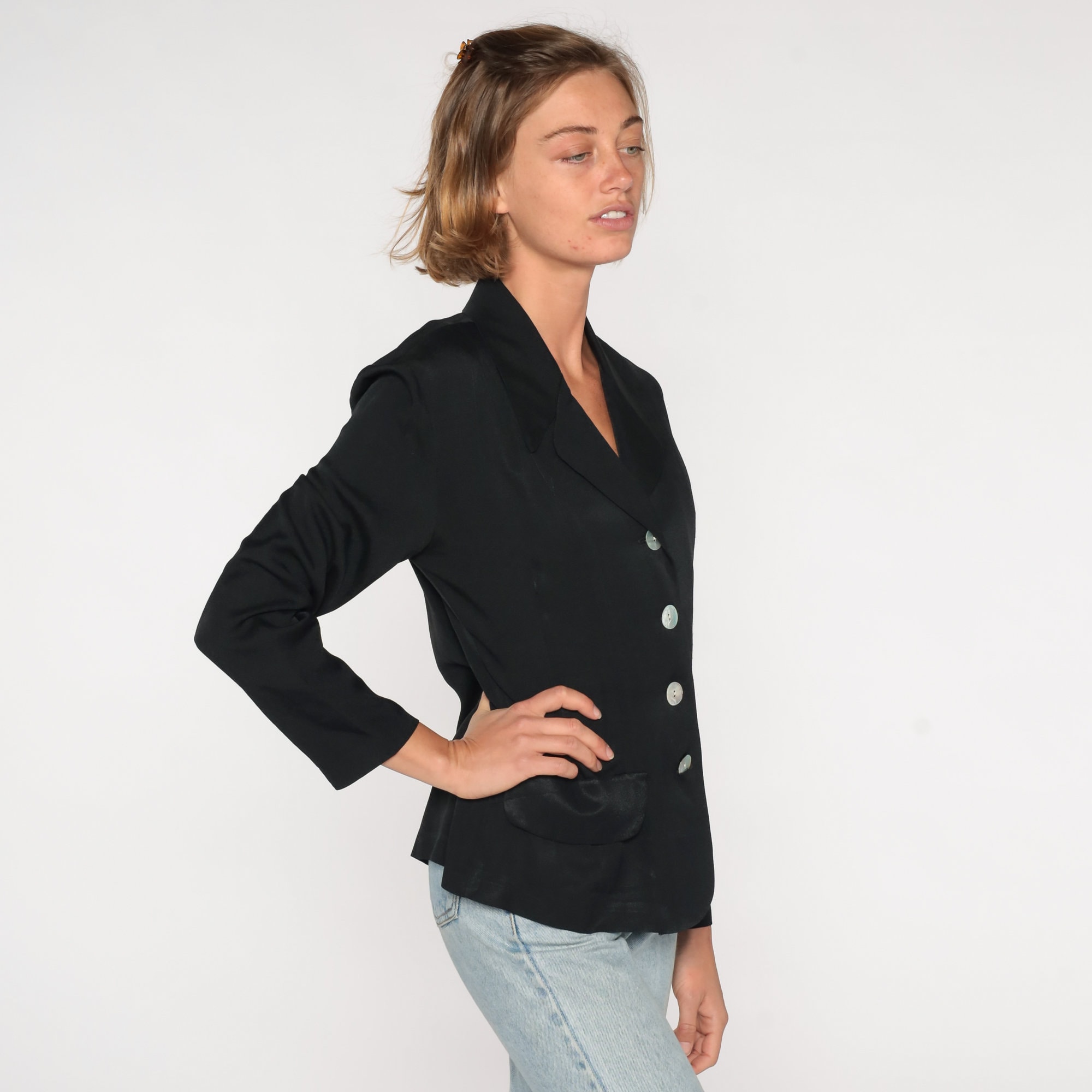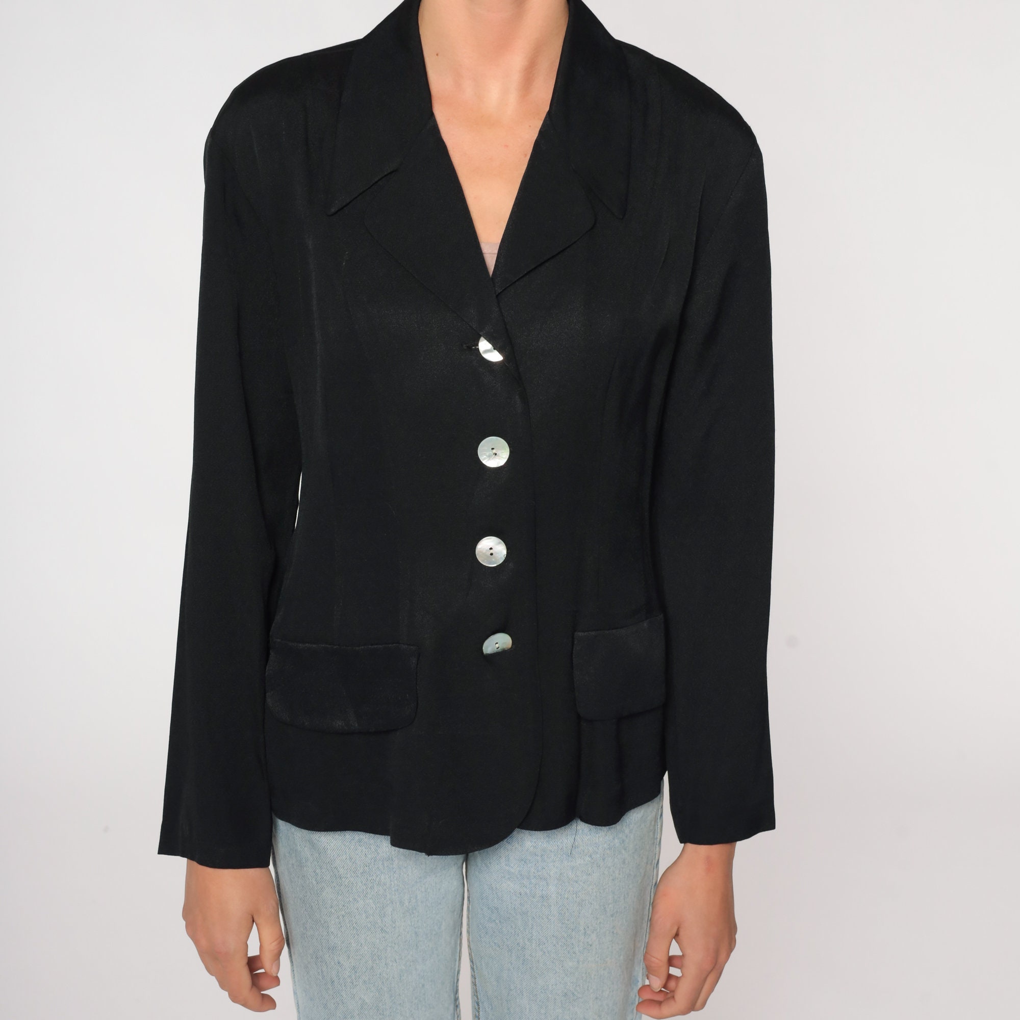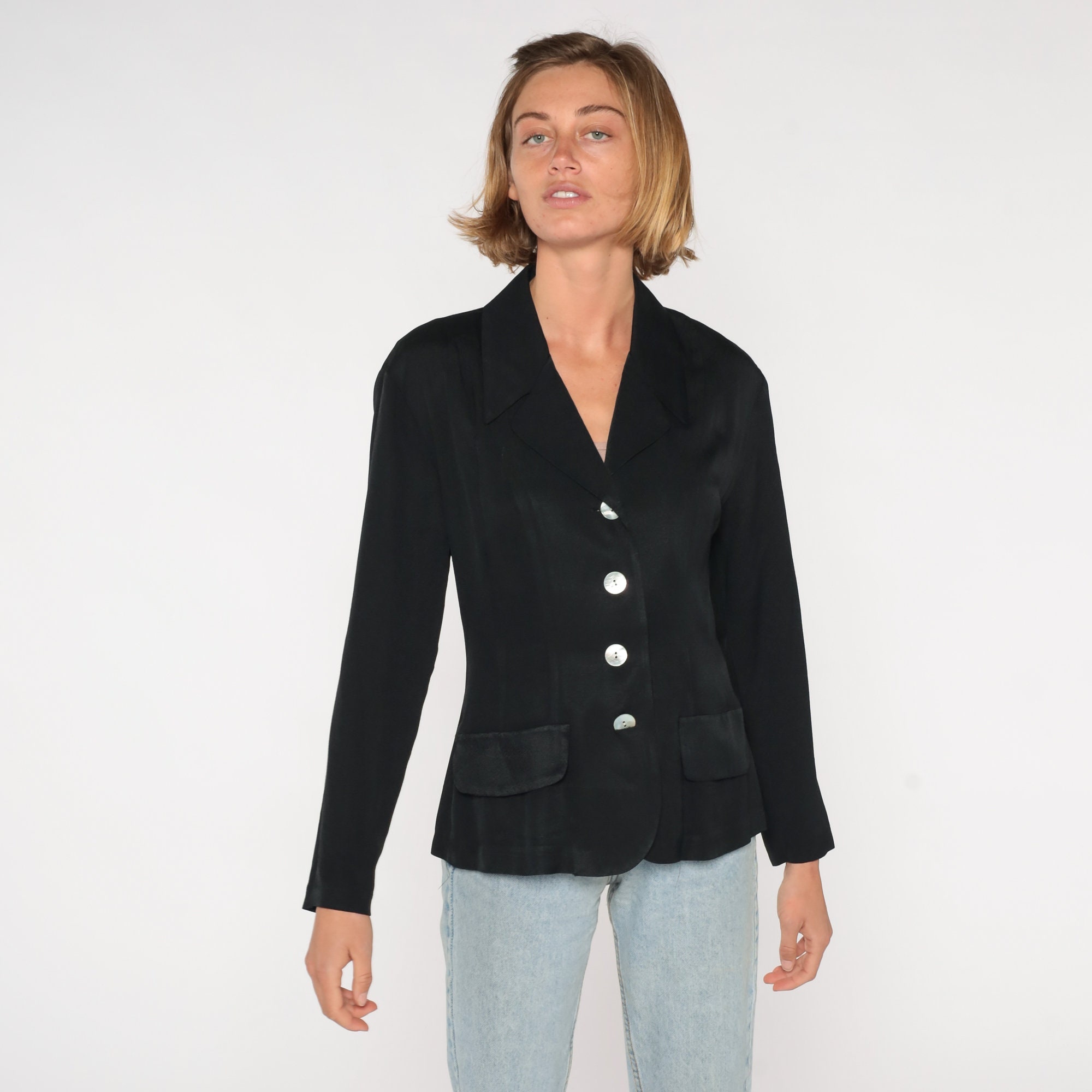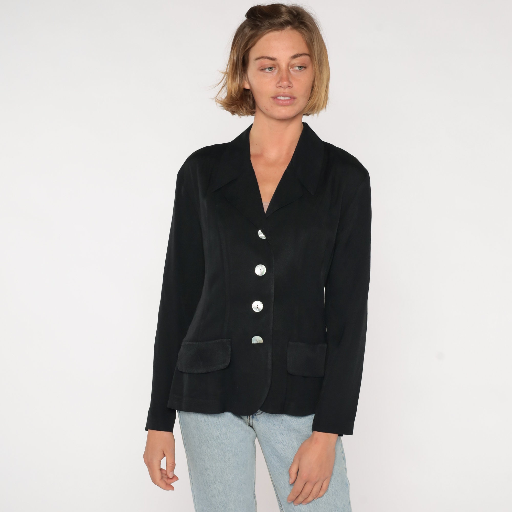 Vintage 90s blazer jacket in black with four buttons up the front.