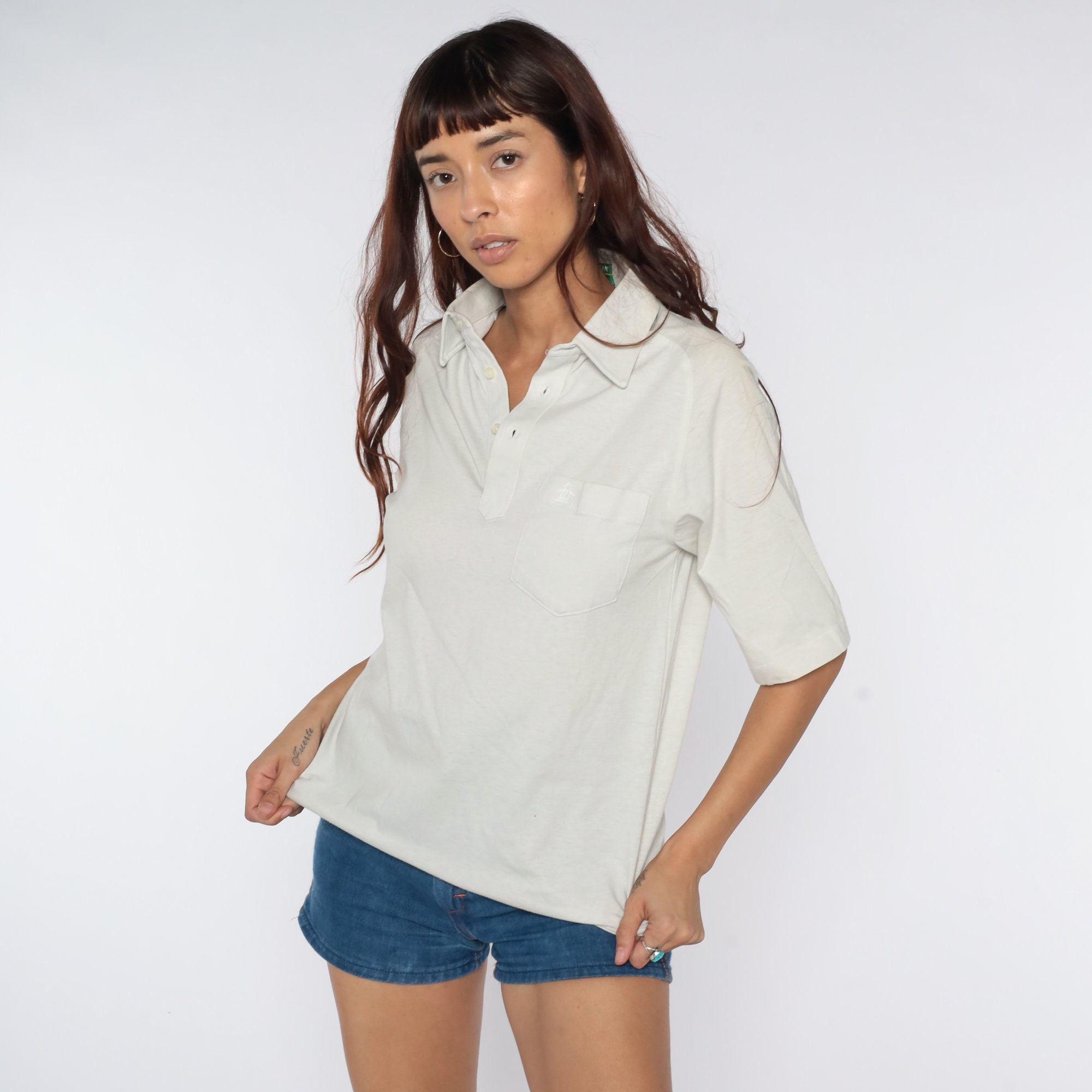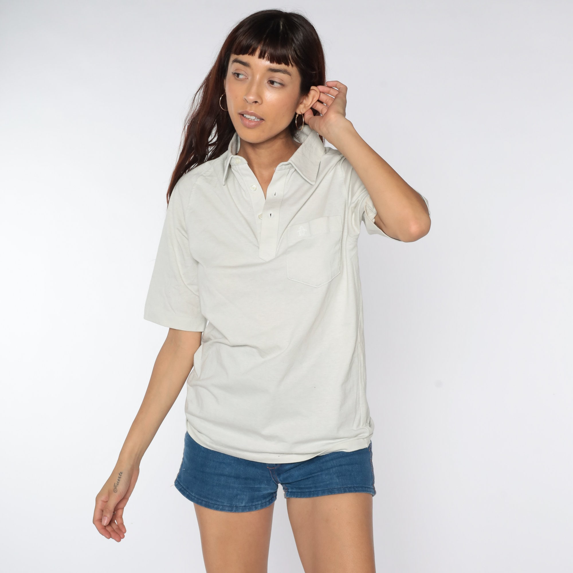 Vintage 70s 80s shirt by Munsingwear in grey with a penguin on the chest pocket.