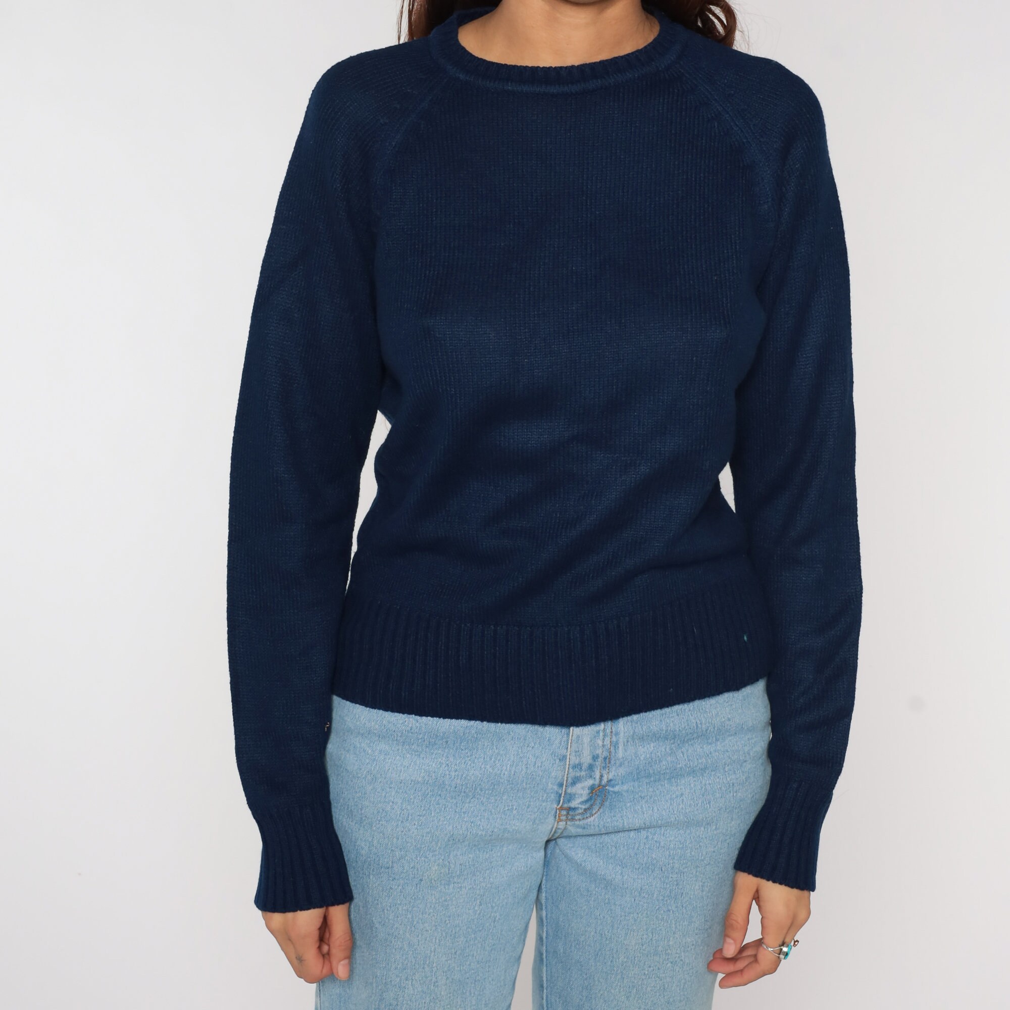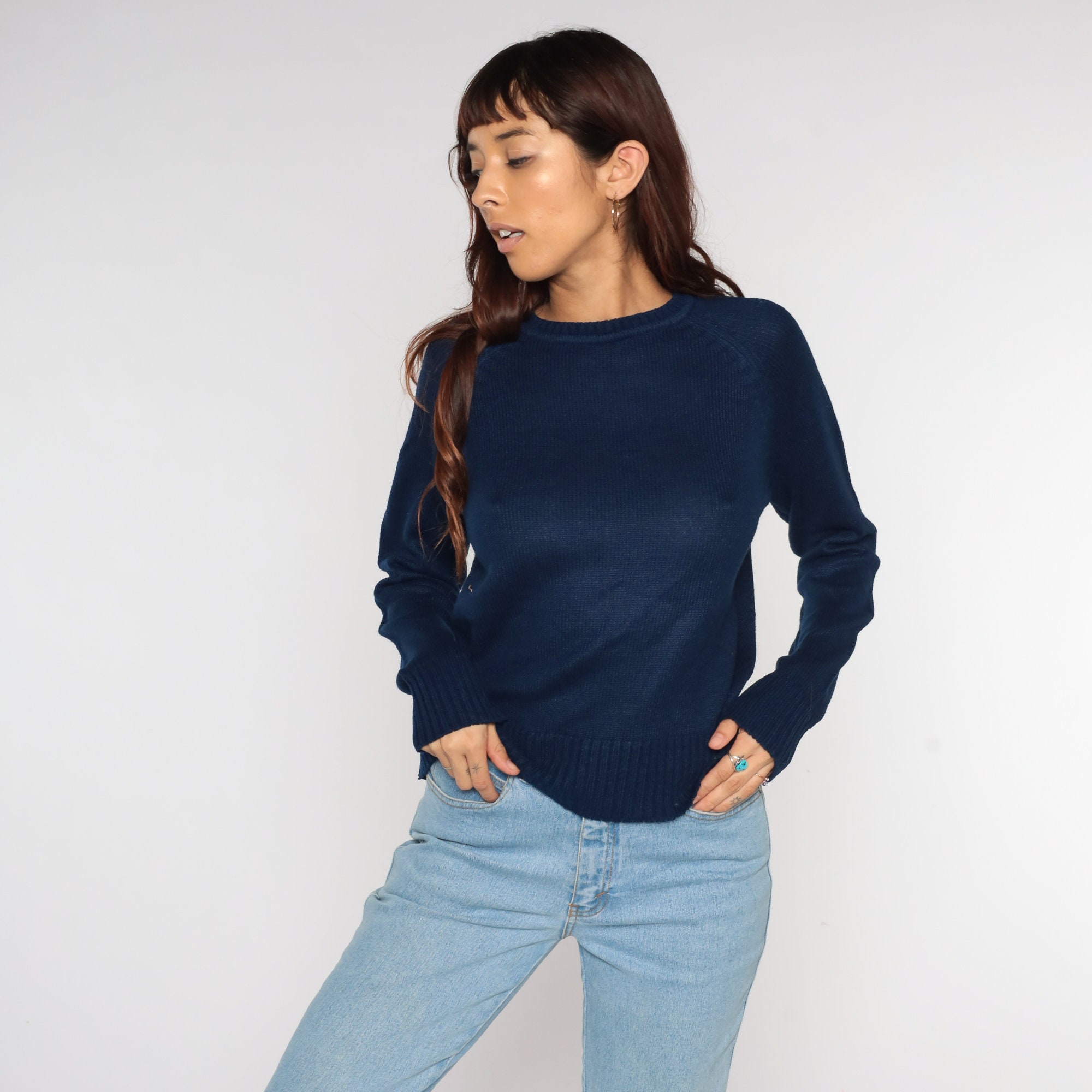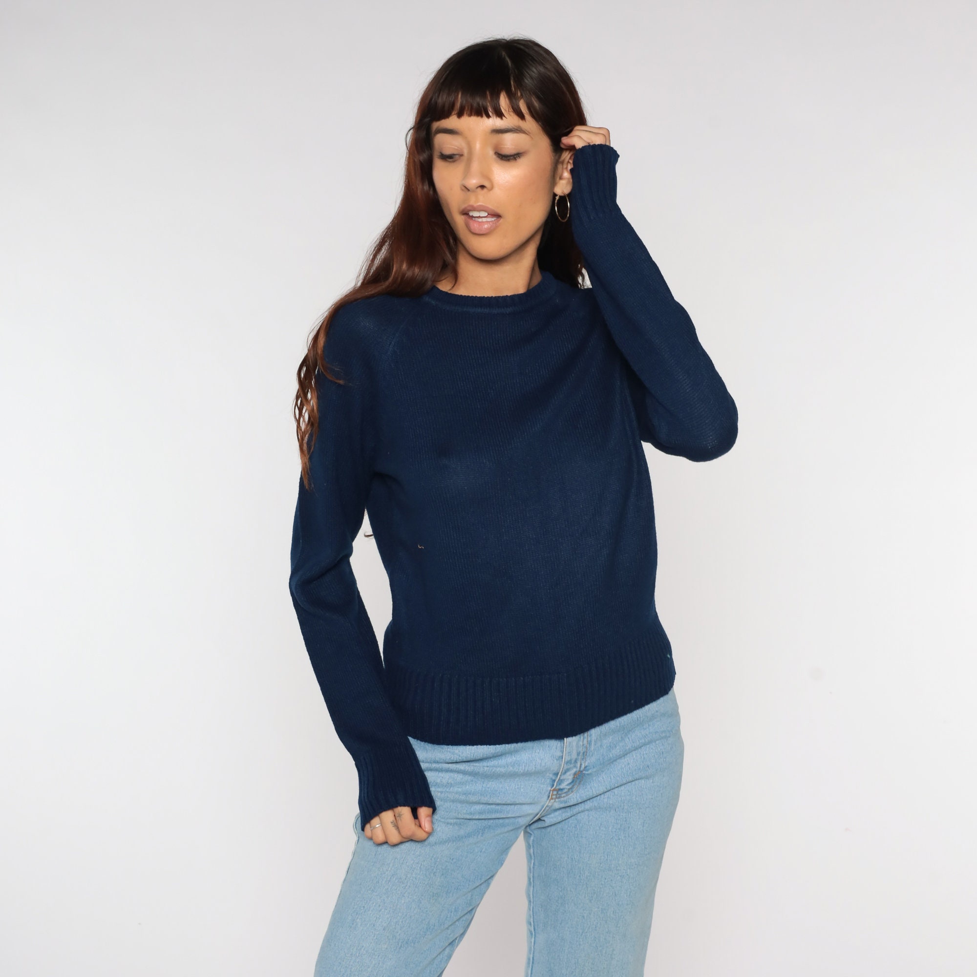 Vintage 80s sweater in navy knit with a slouchy fit and raglan sleeves. Unisex.
