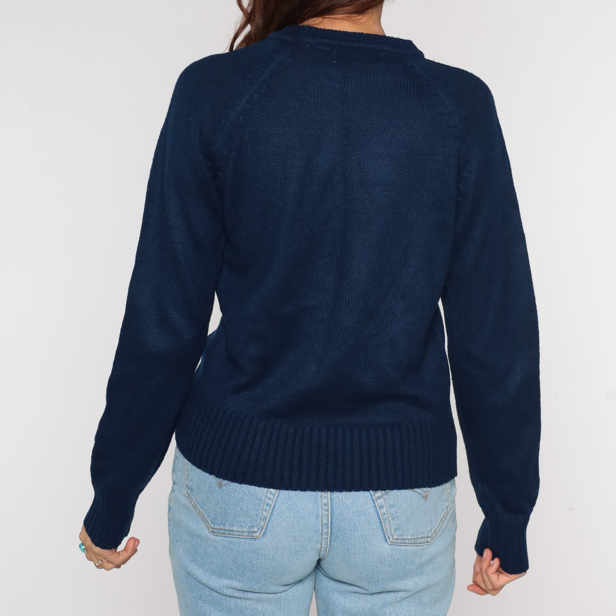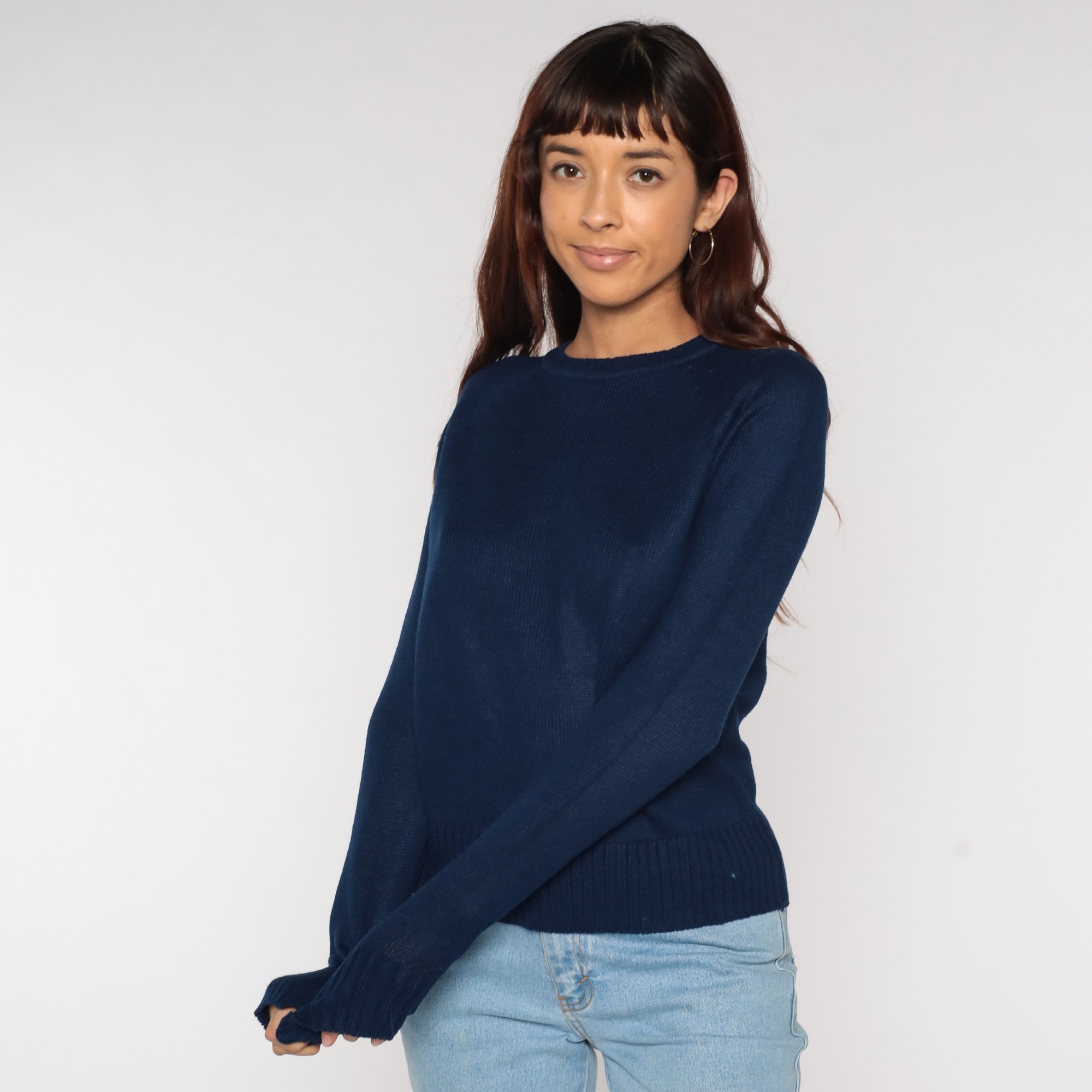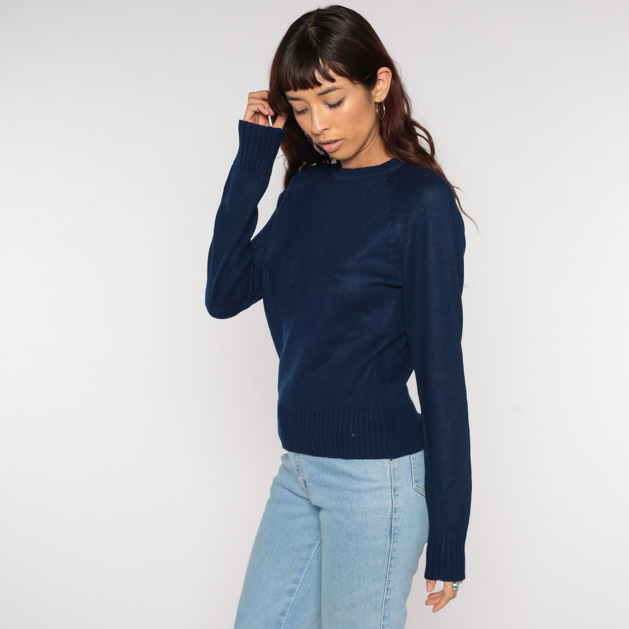 Vintage 80s sweater in navy knit with a slouchy fit and raglan sleeves. Unisex.