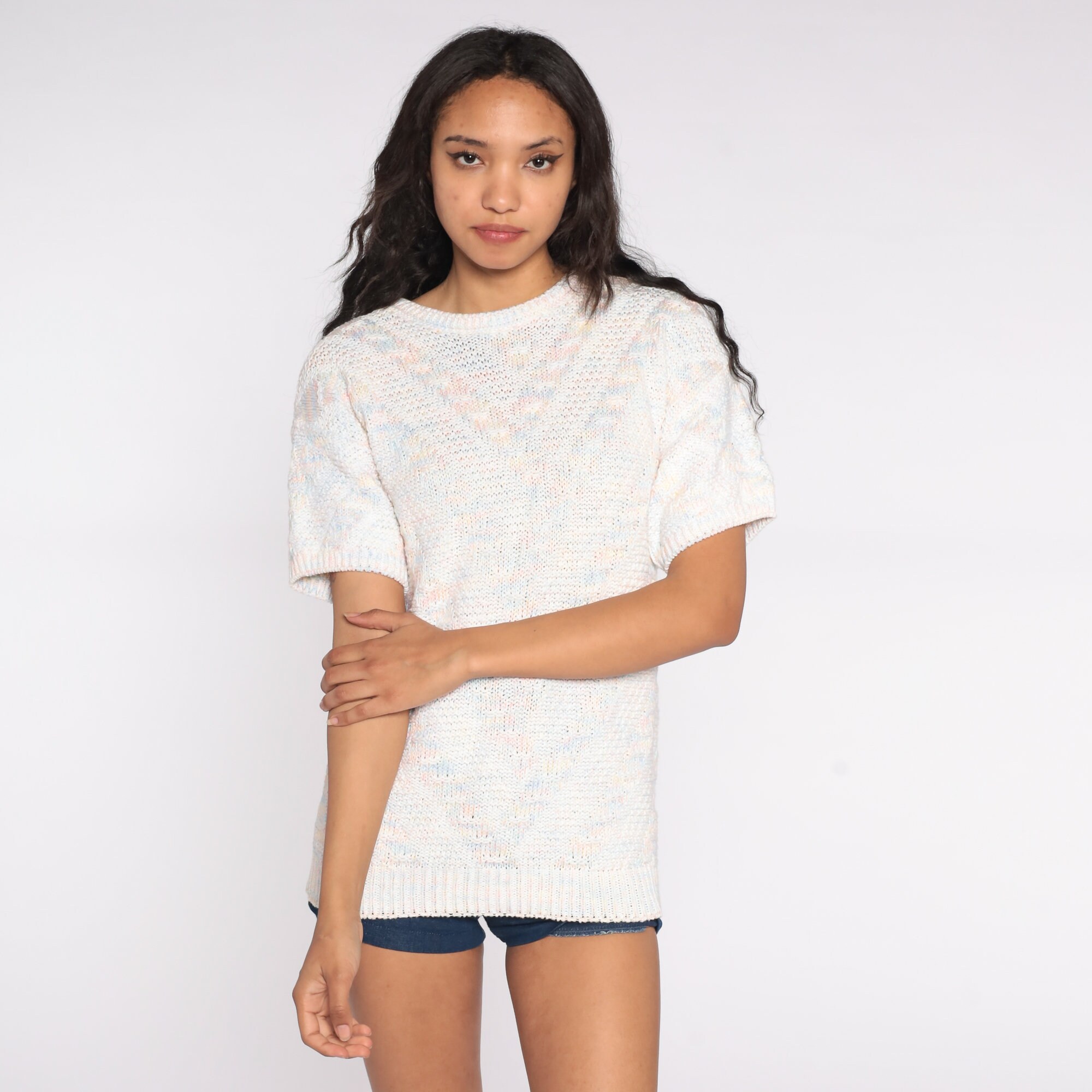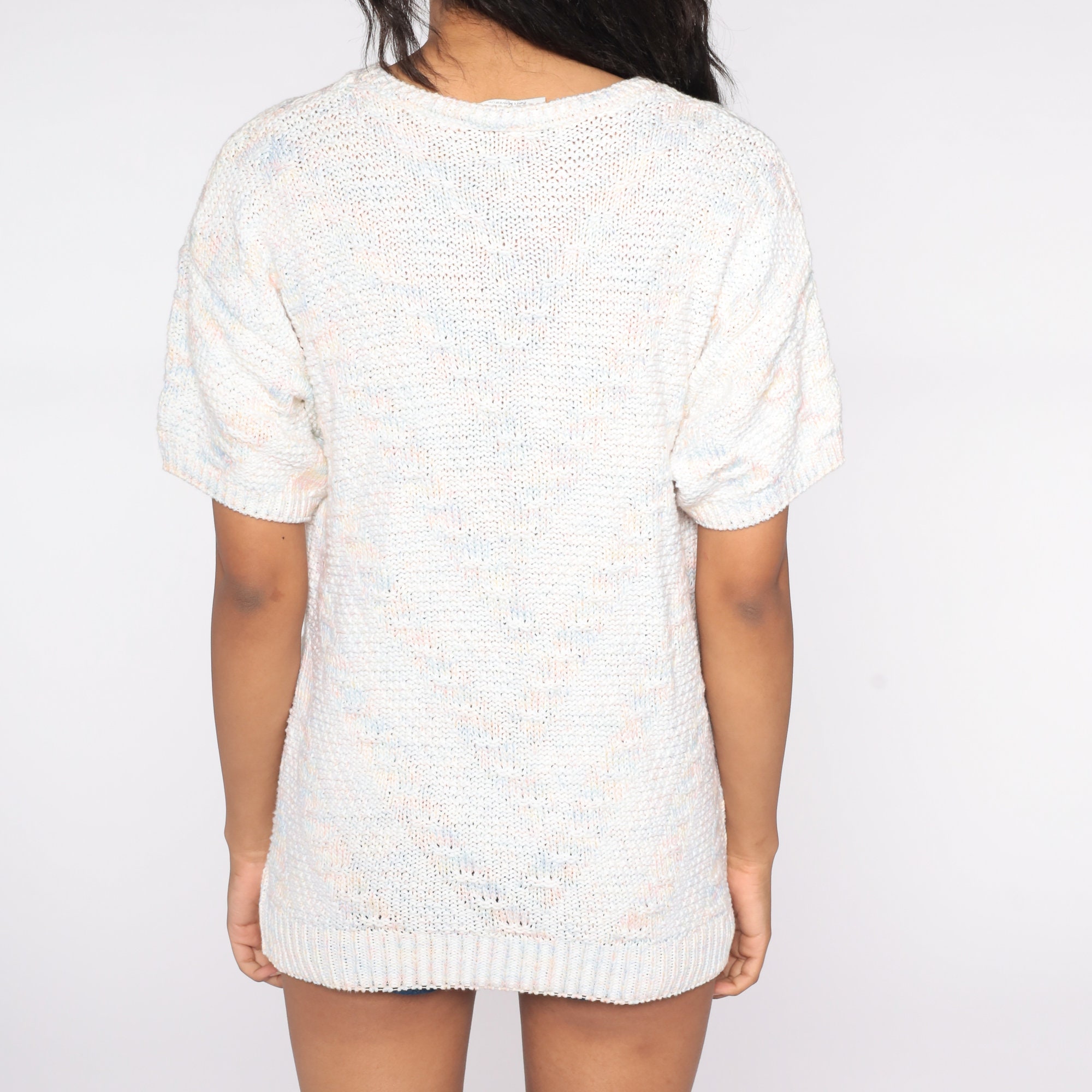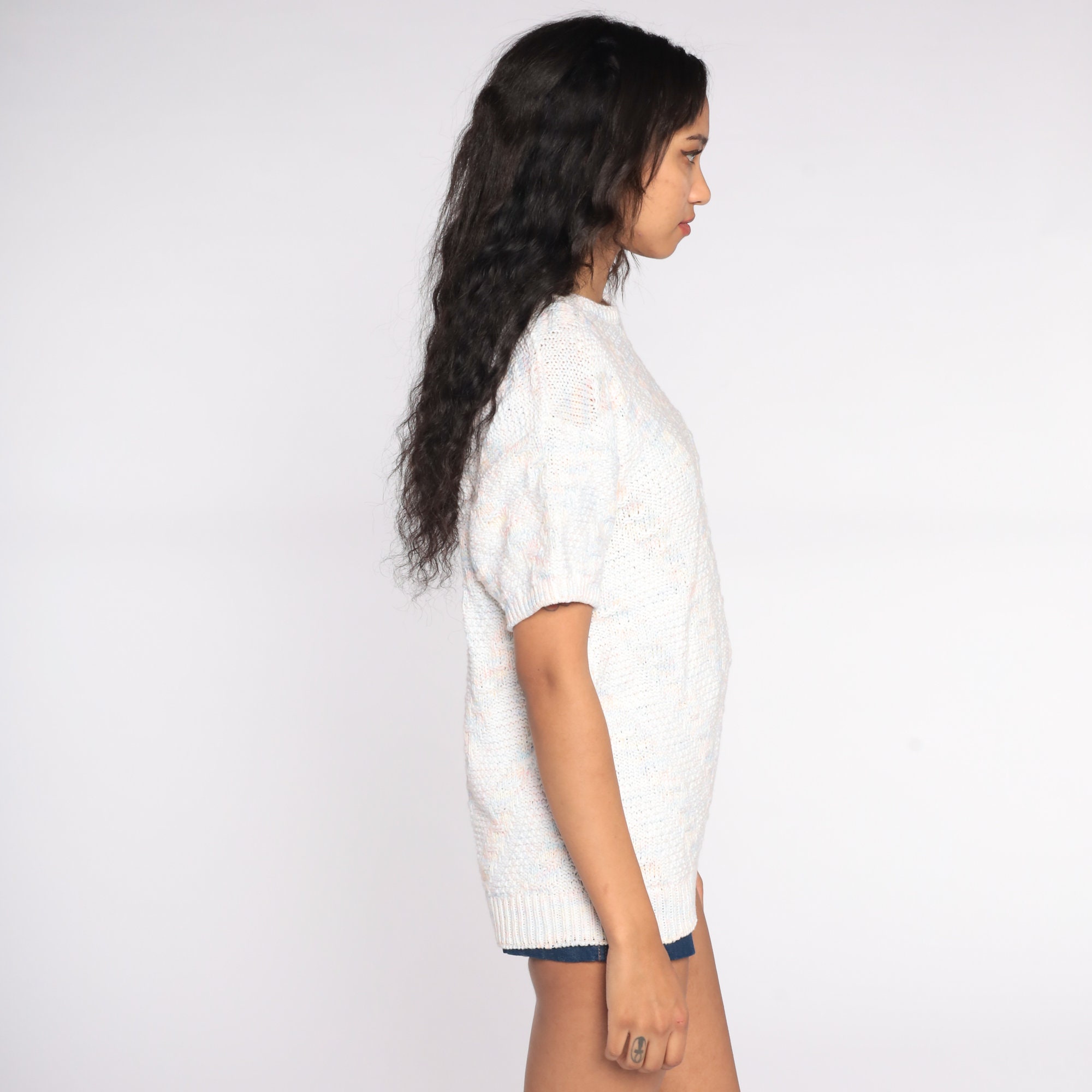Vintage 80s shirt in textured white knit with a subtle pastel design.