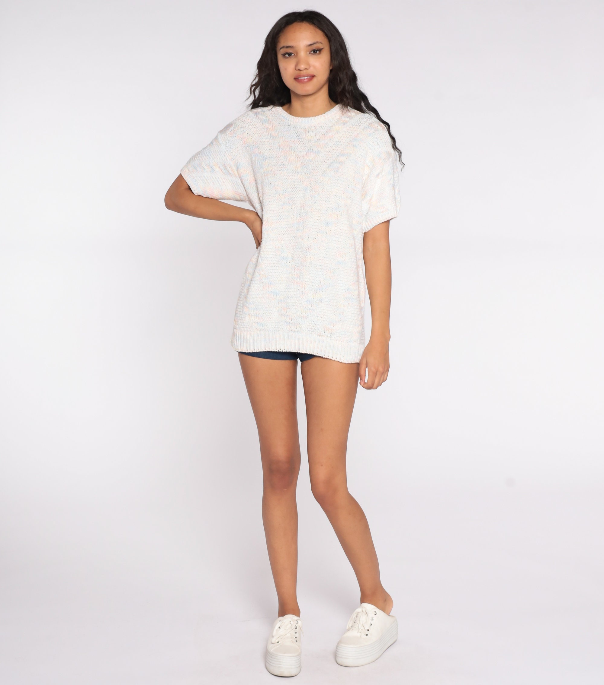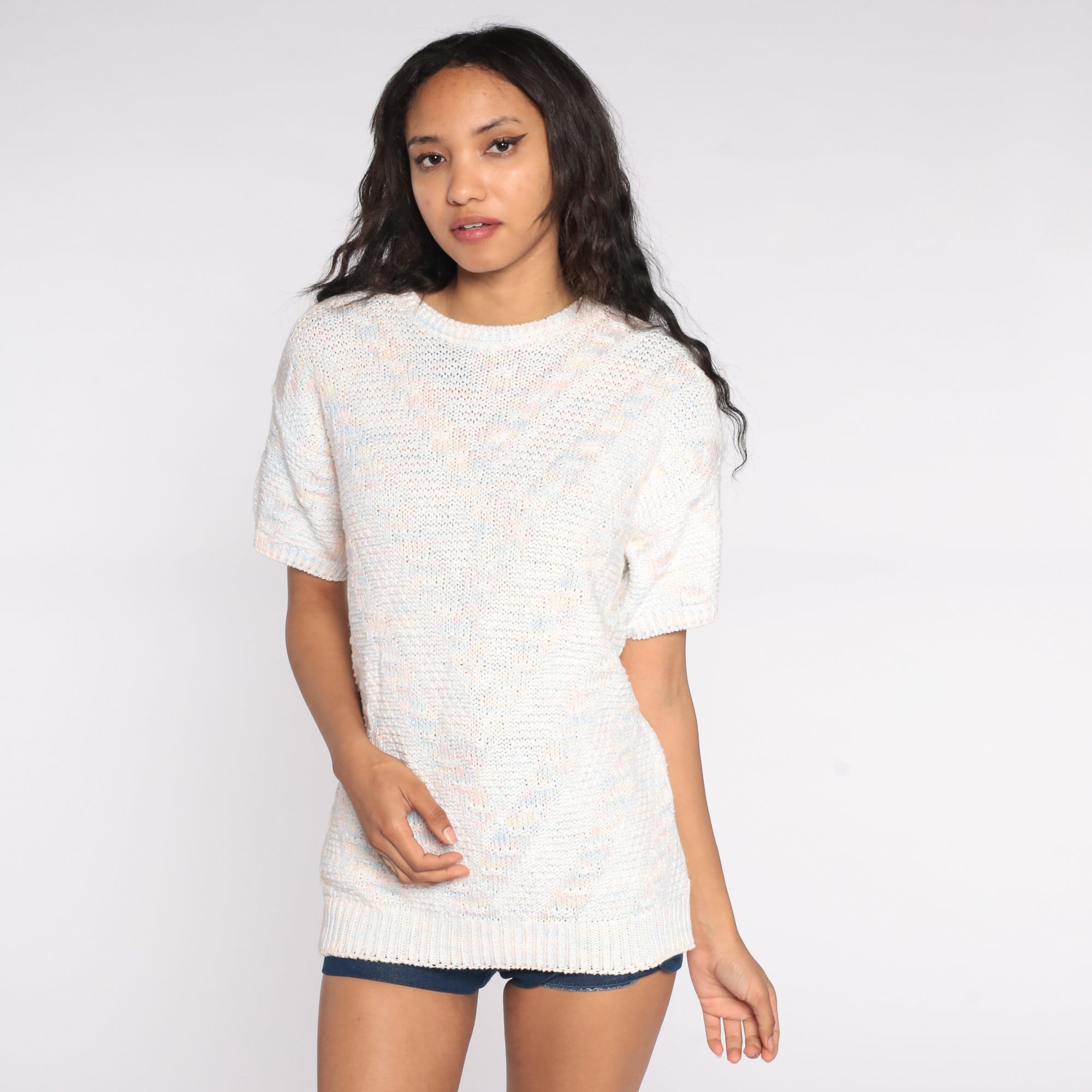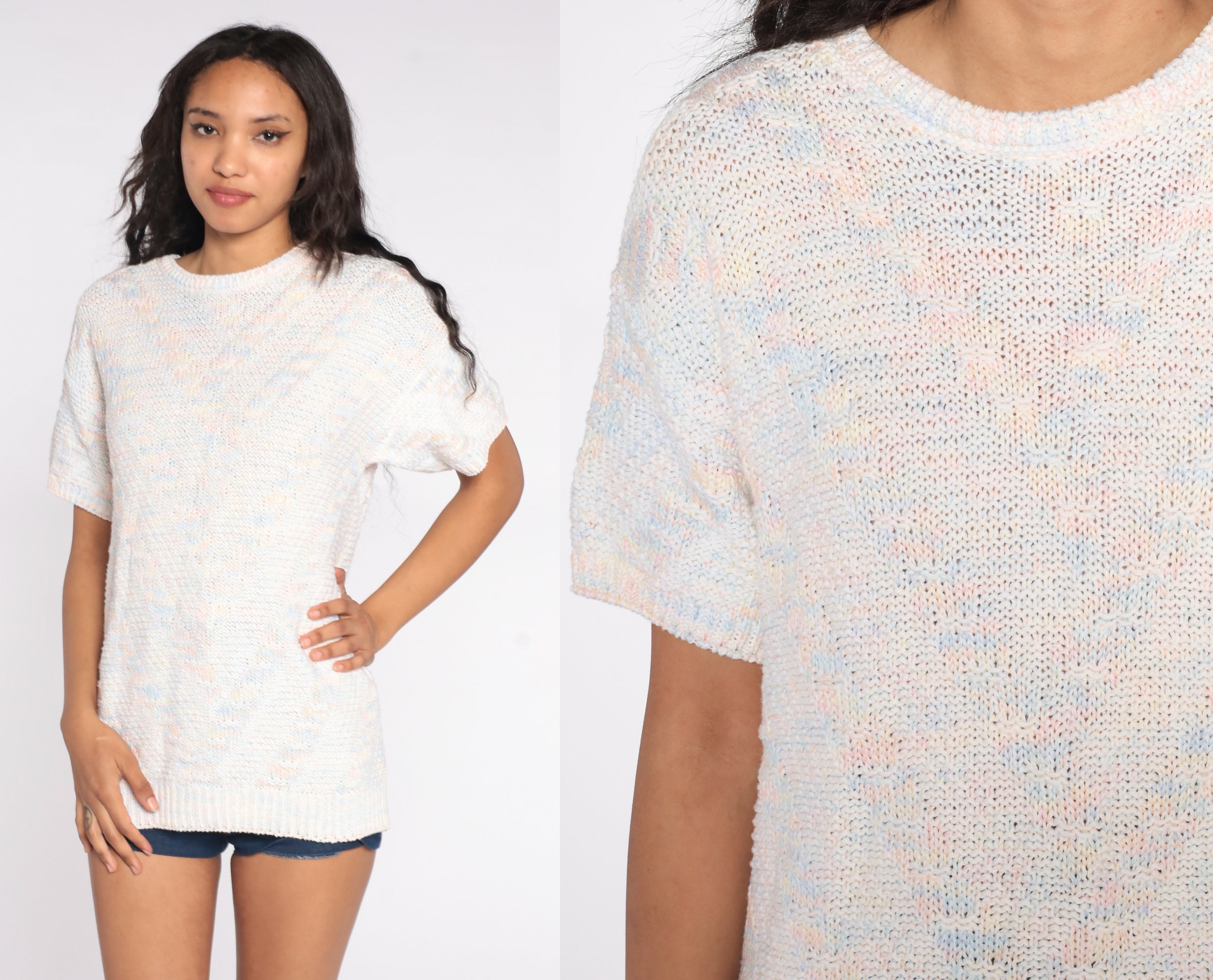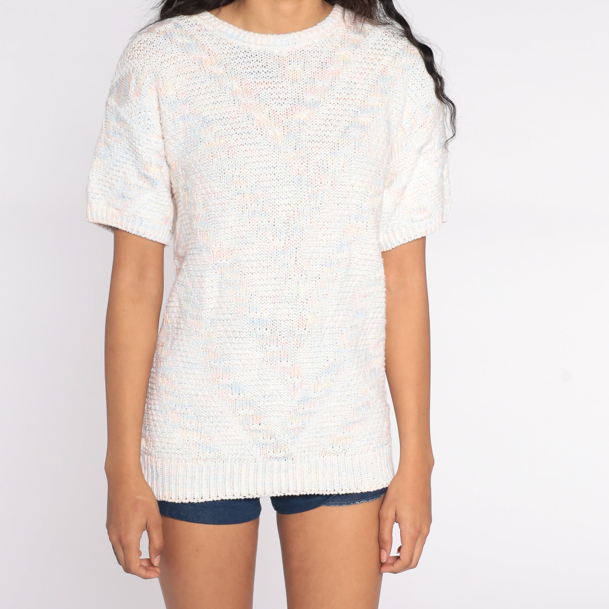 Vintage 80s shirt in textured white knit with a subtle pastel design.