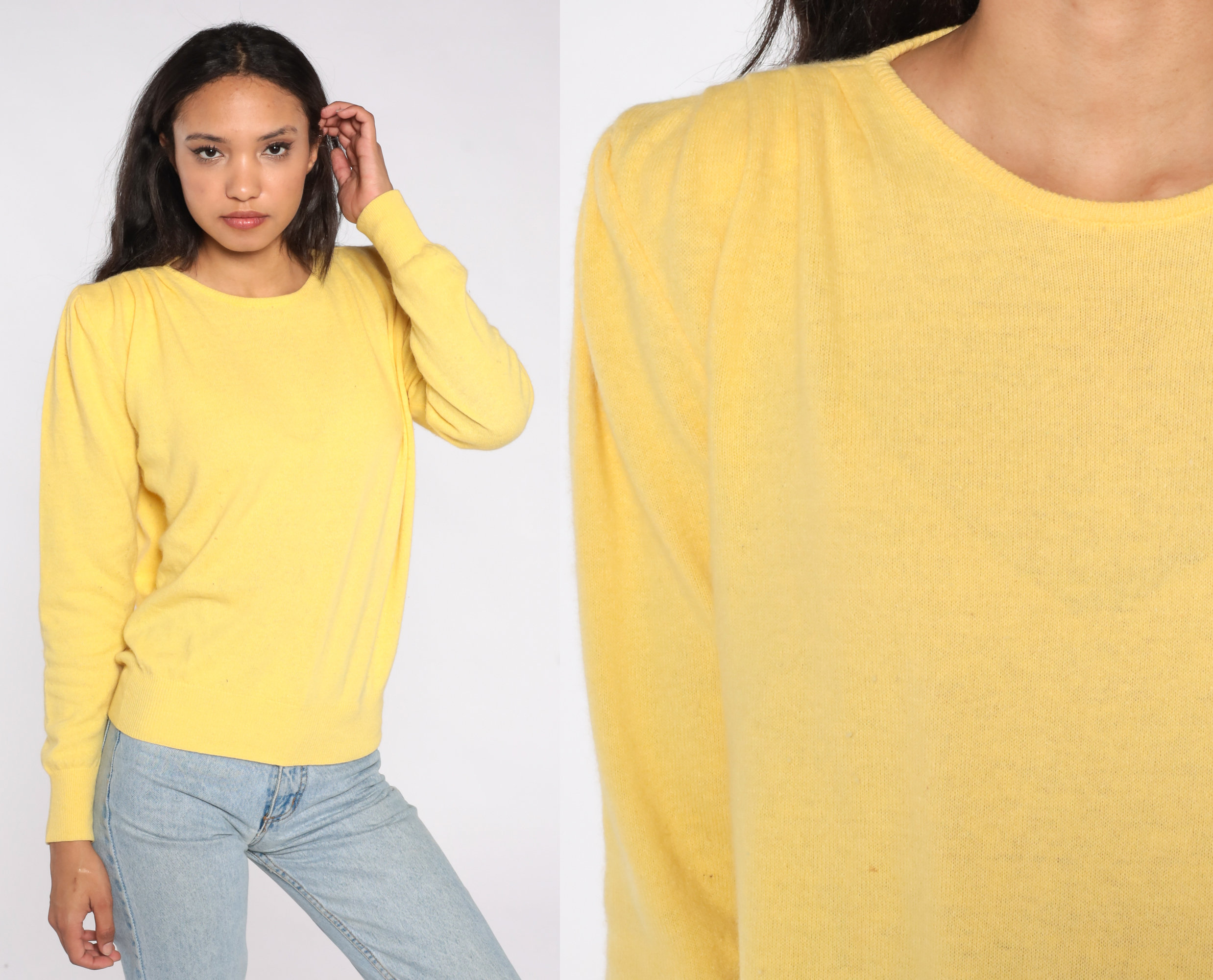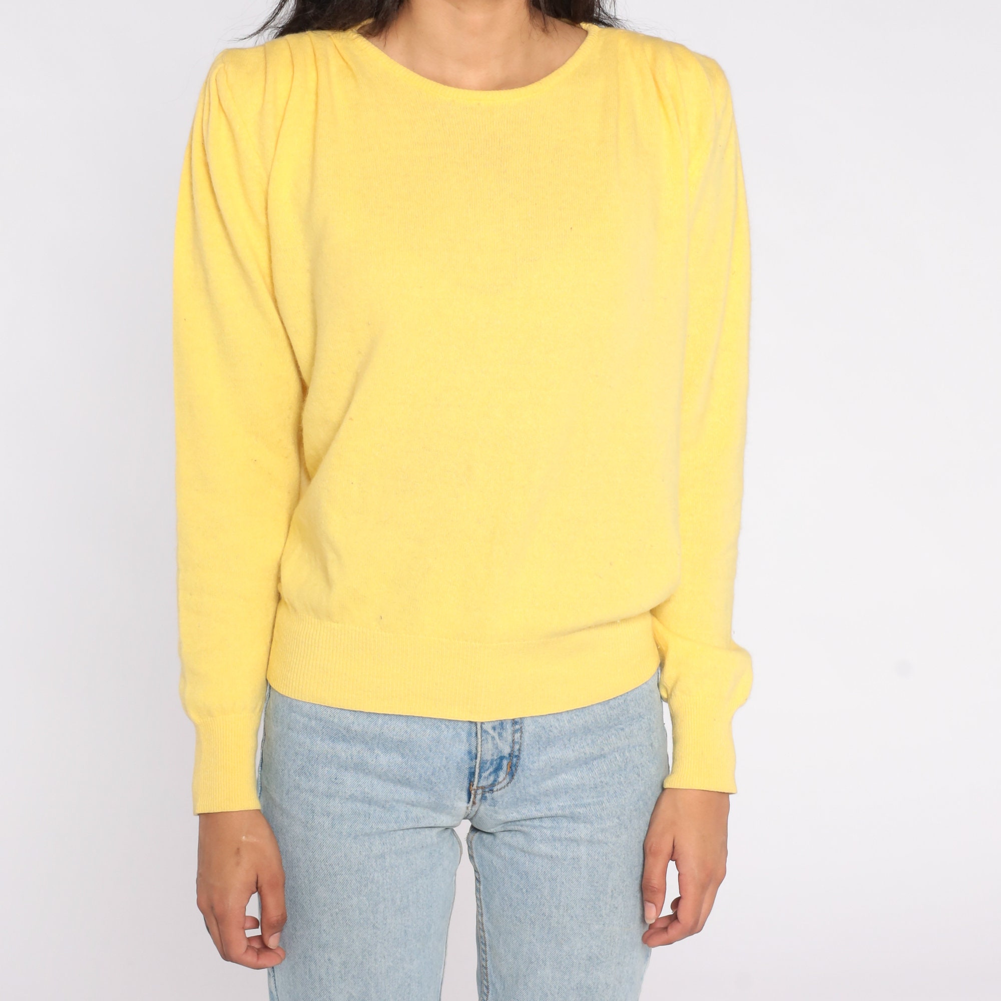 Vintage 80s sweater by Benetton in yellow cashmere with puff sleeves.