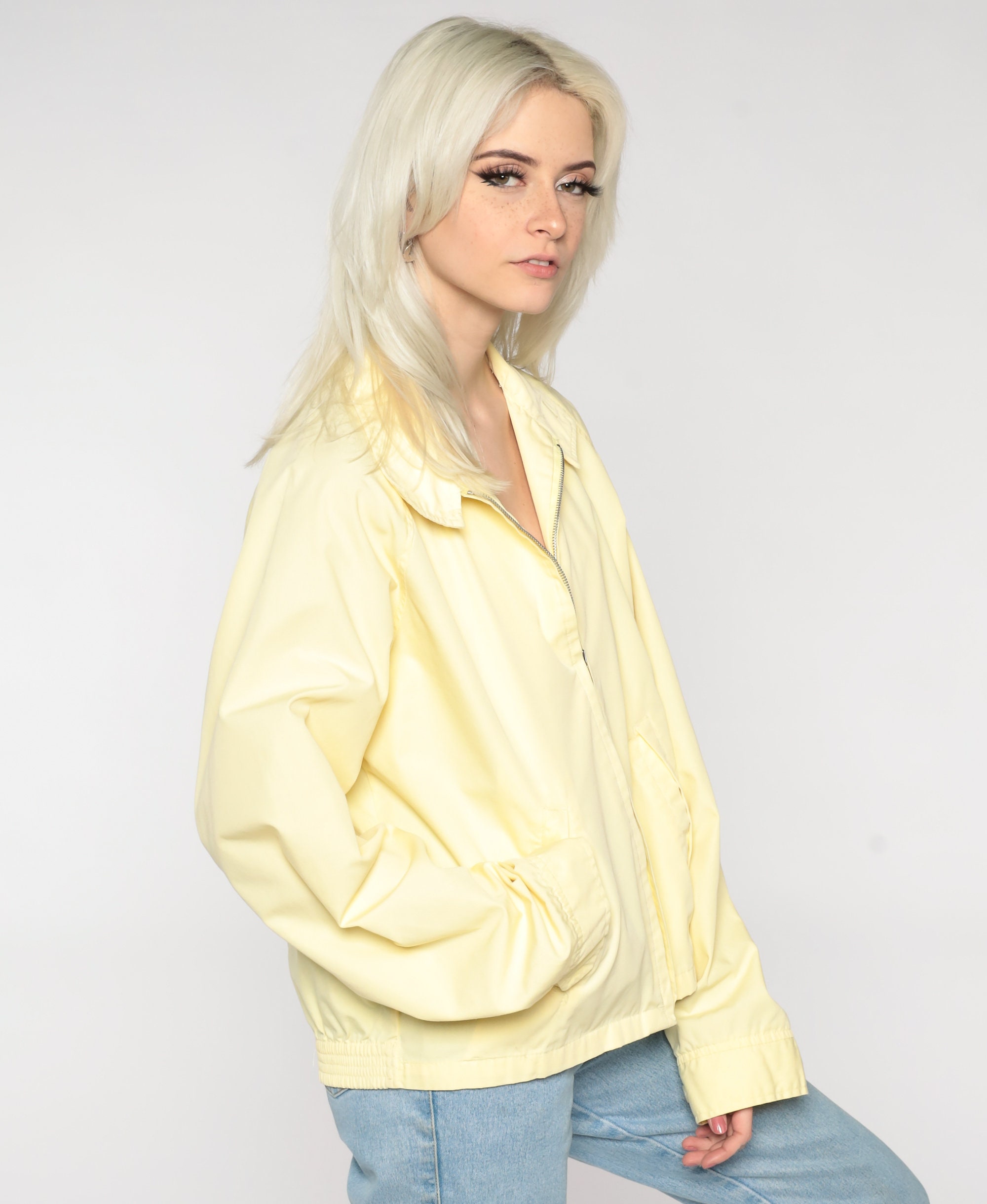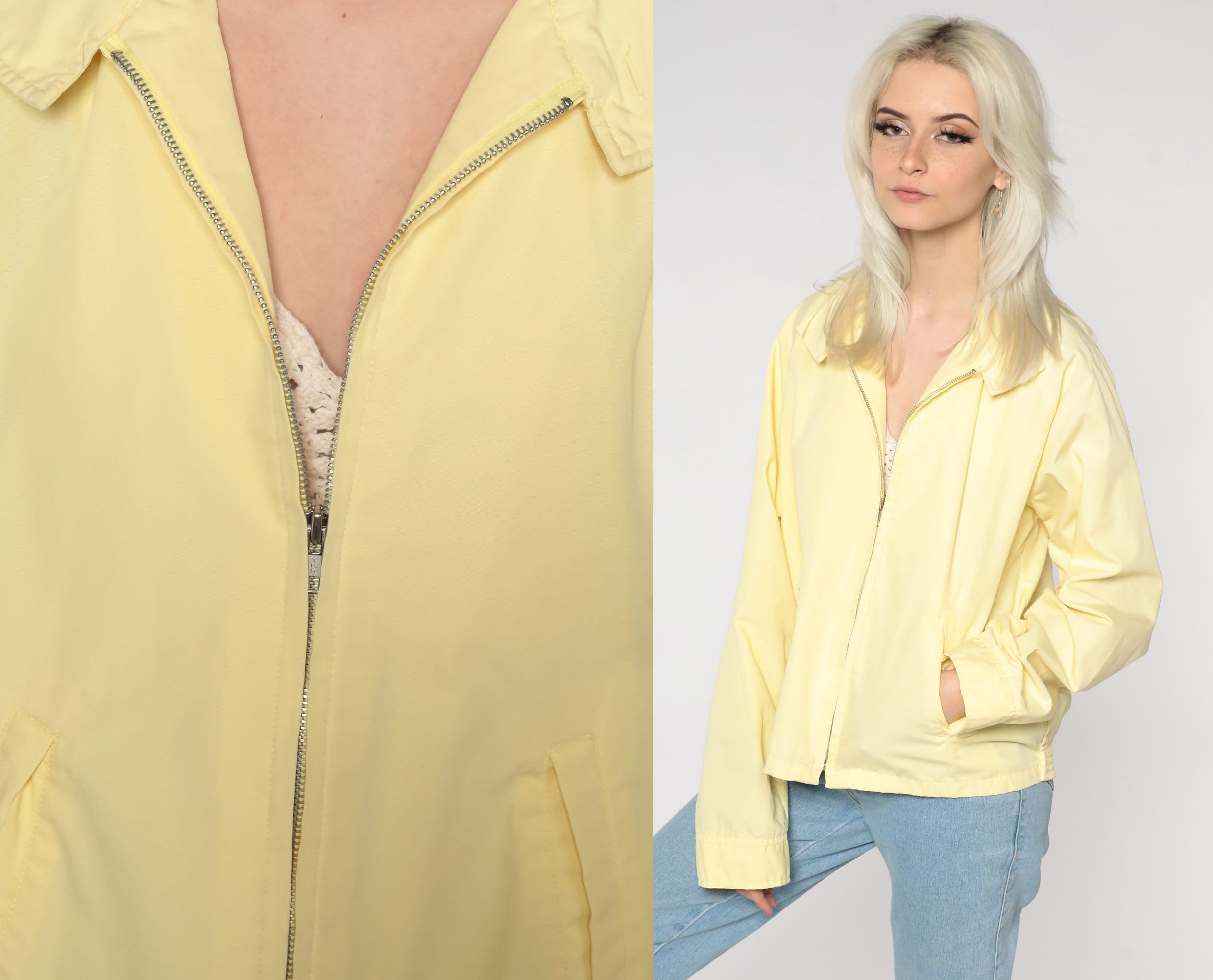 Vintage 80s 90s jacket in yellow with a collar and a full zip.
