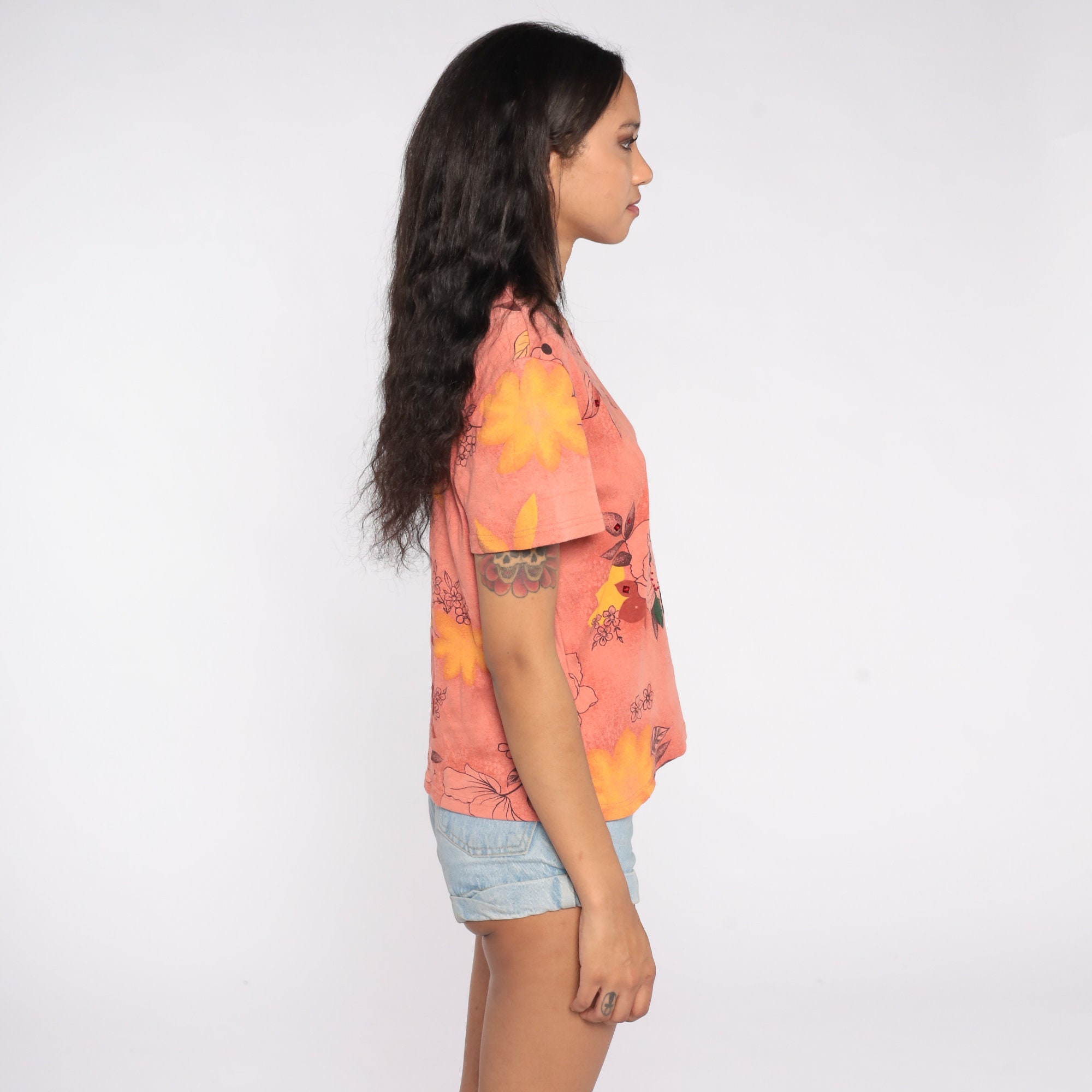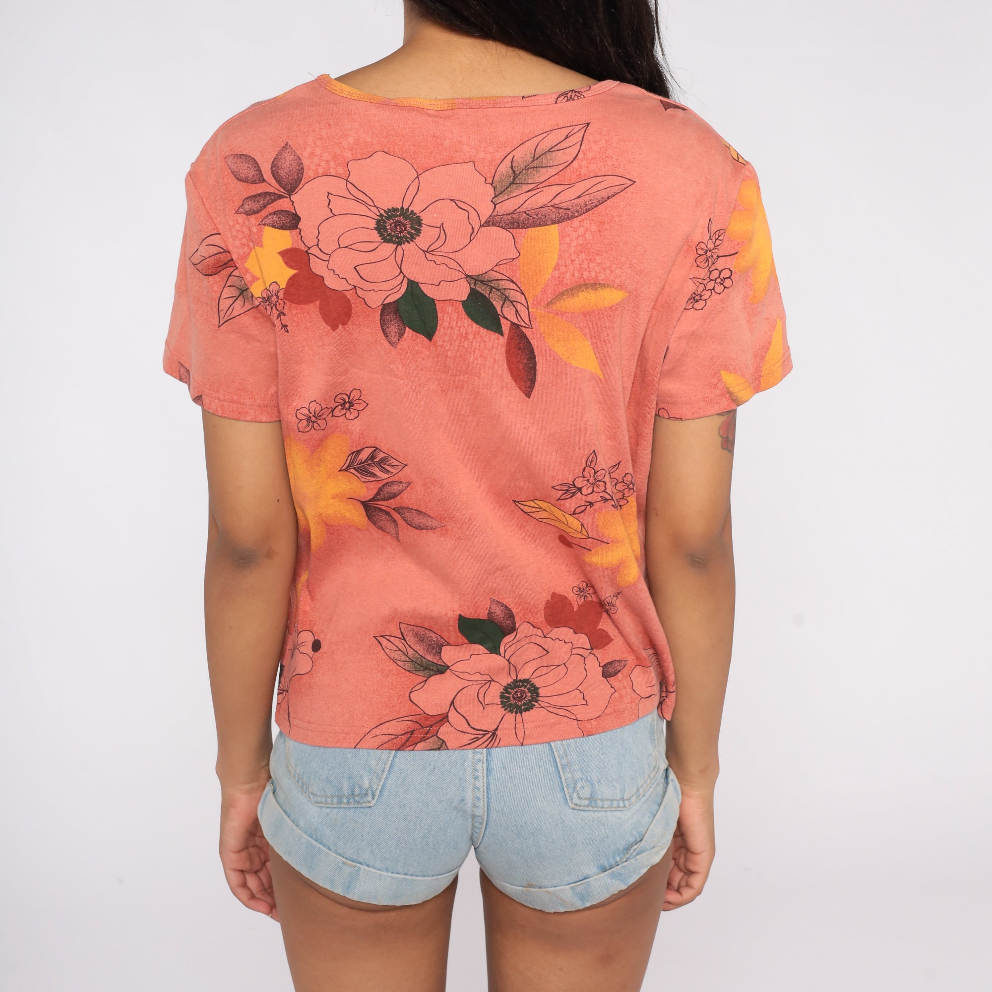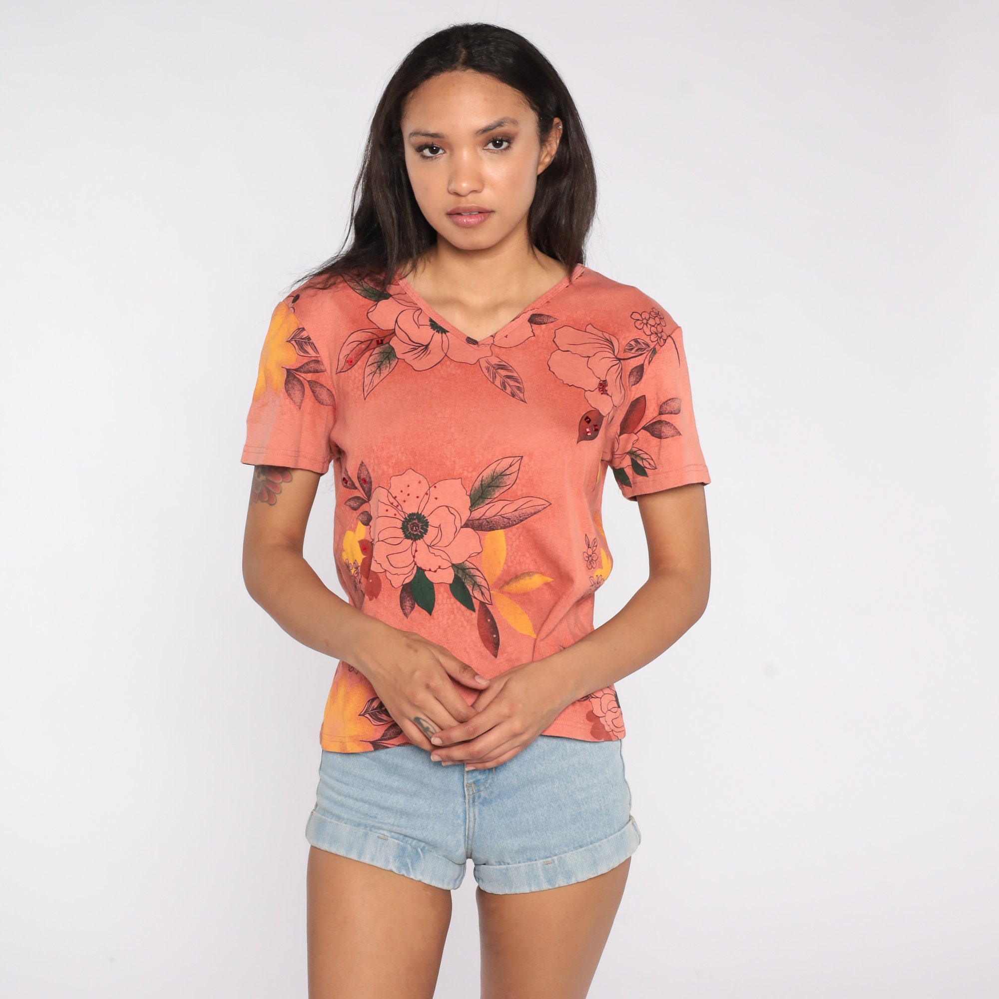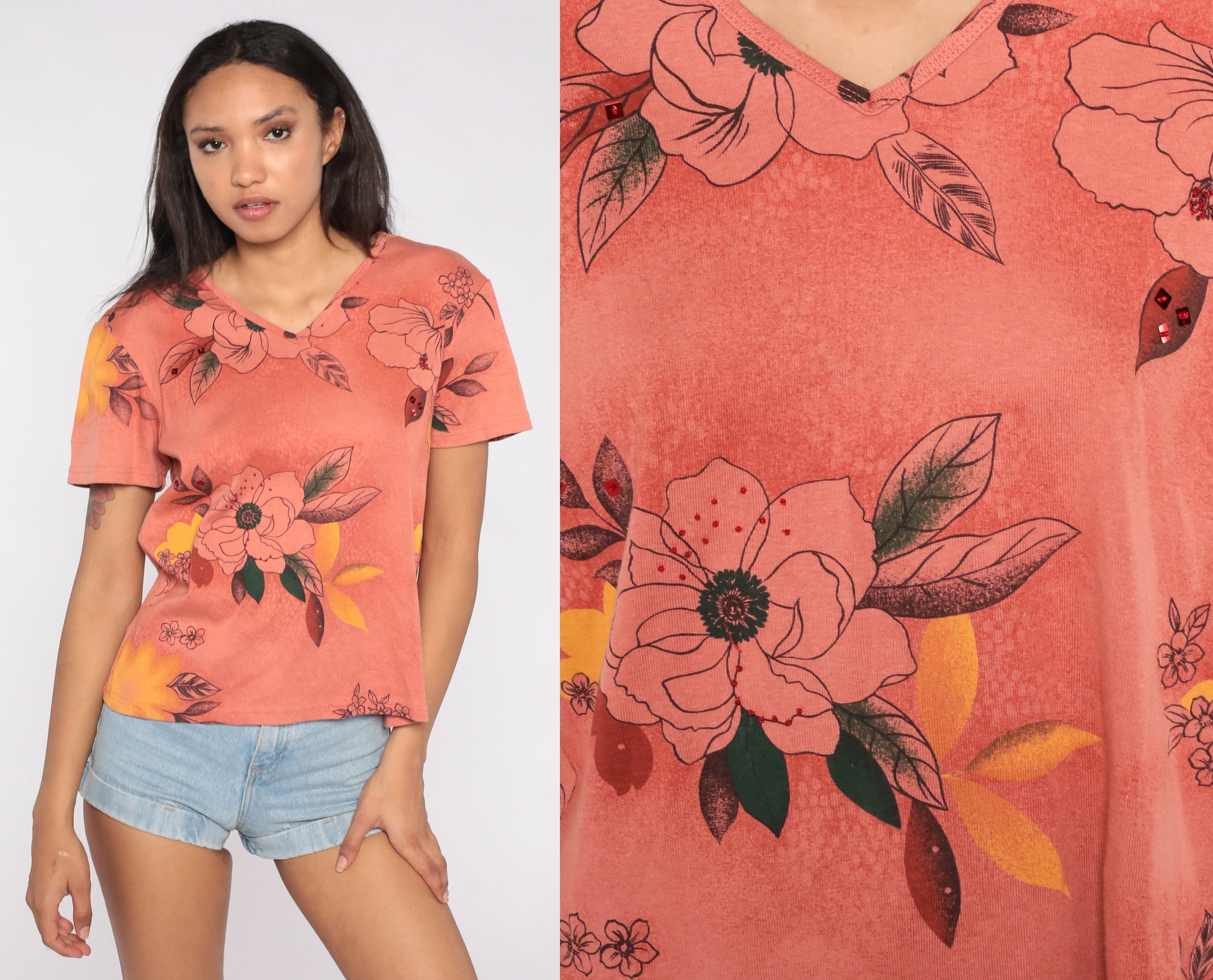 Vintage 90s t shirt with a v neck and floral print.