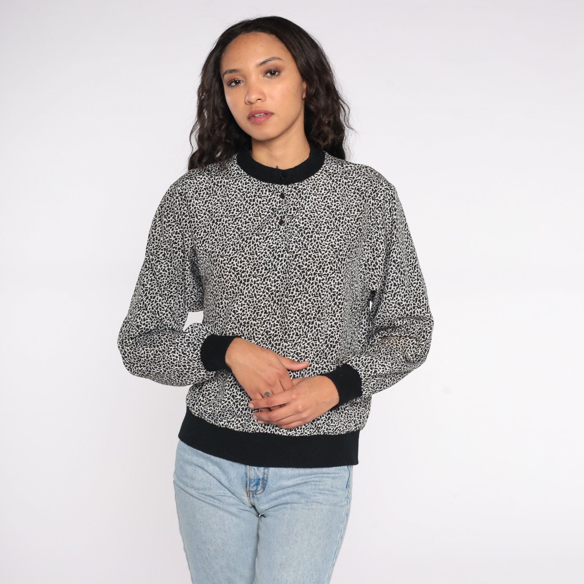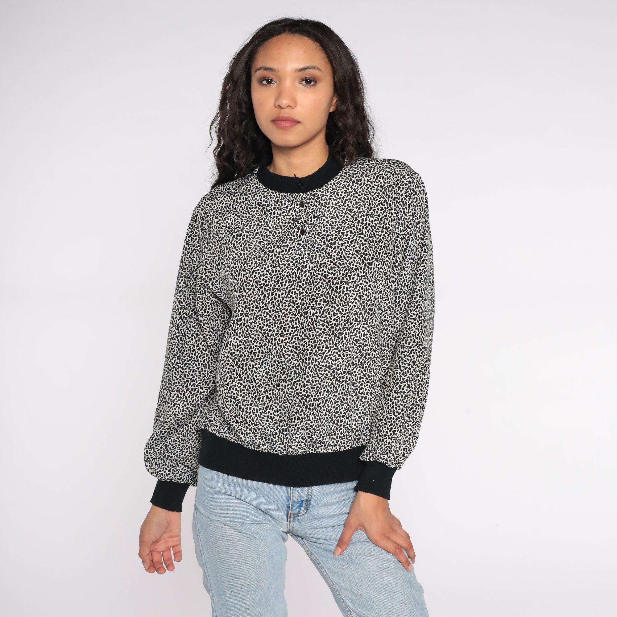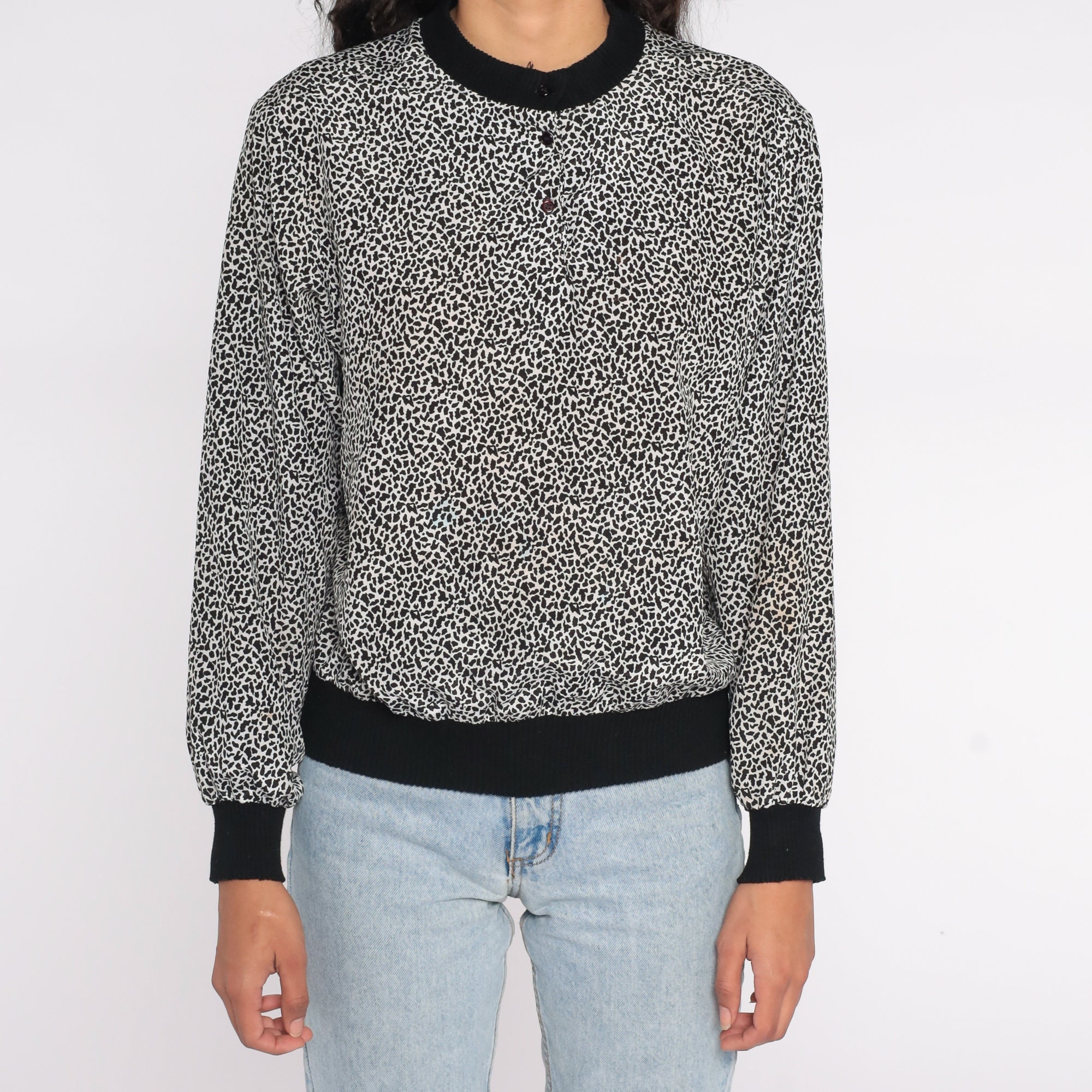 Vintage 80s shirt with a tiny leopard spot print.