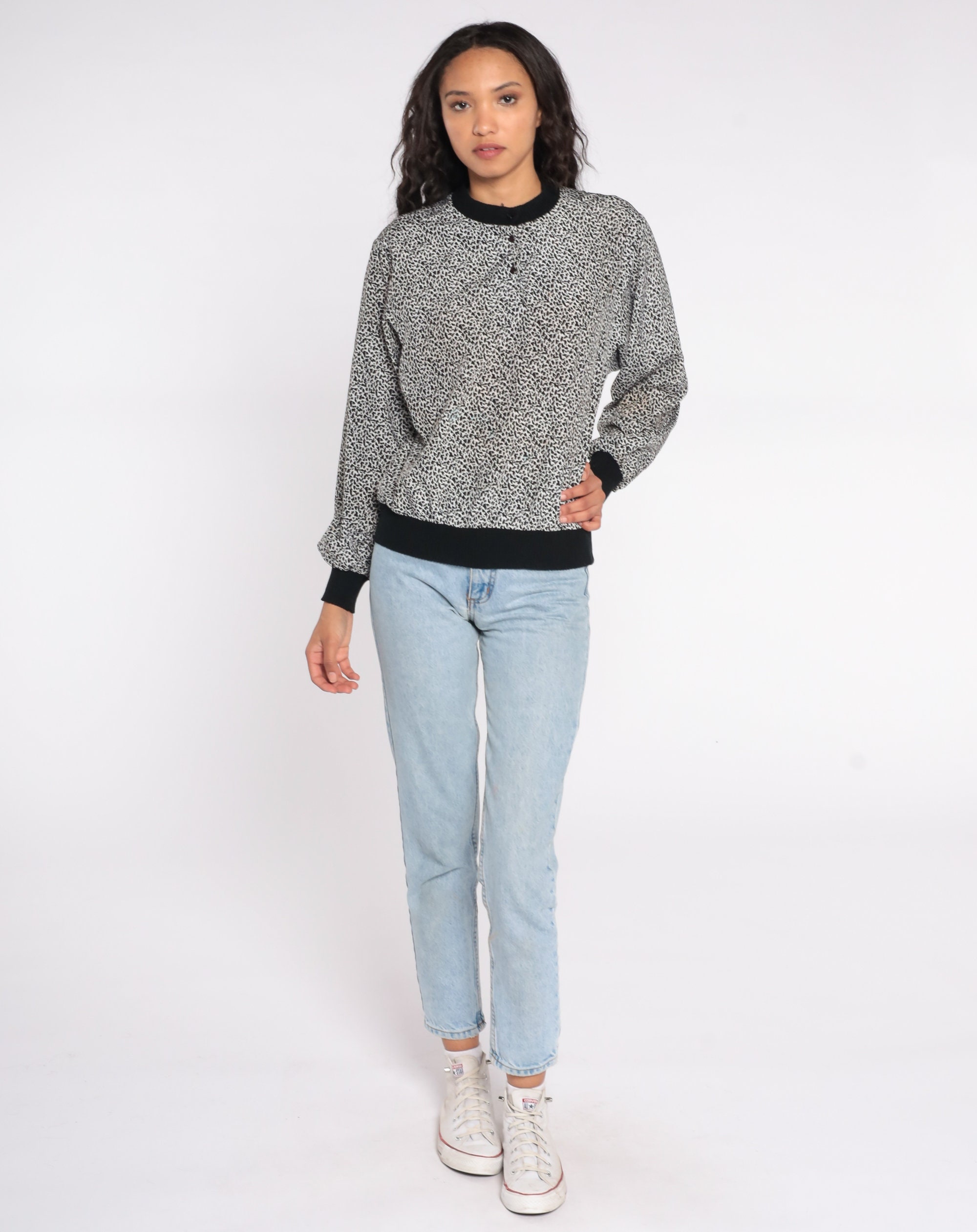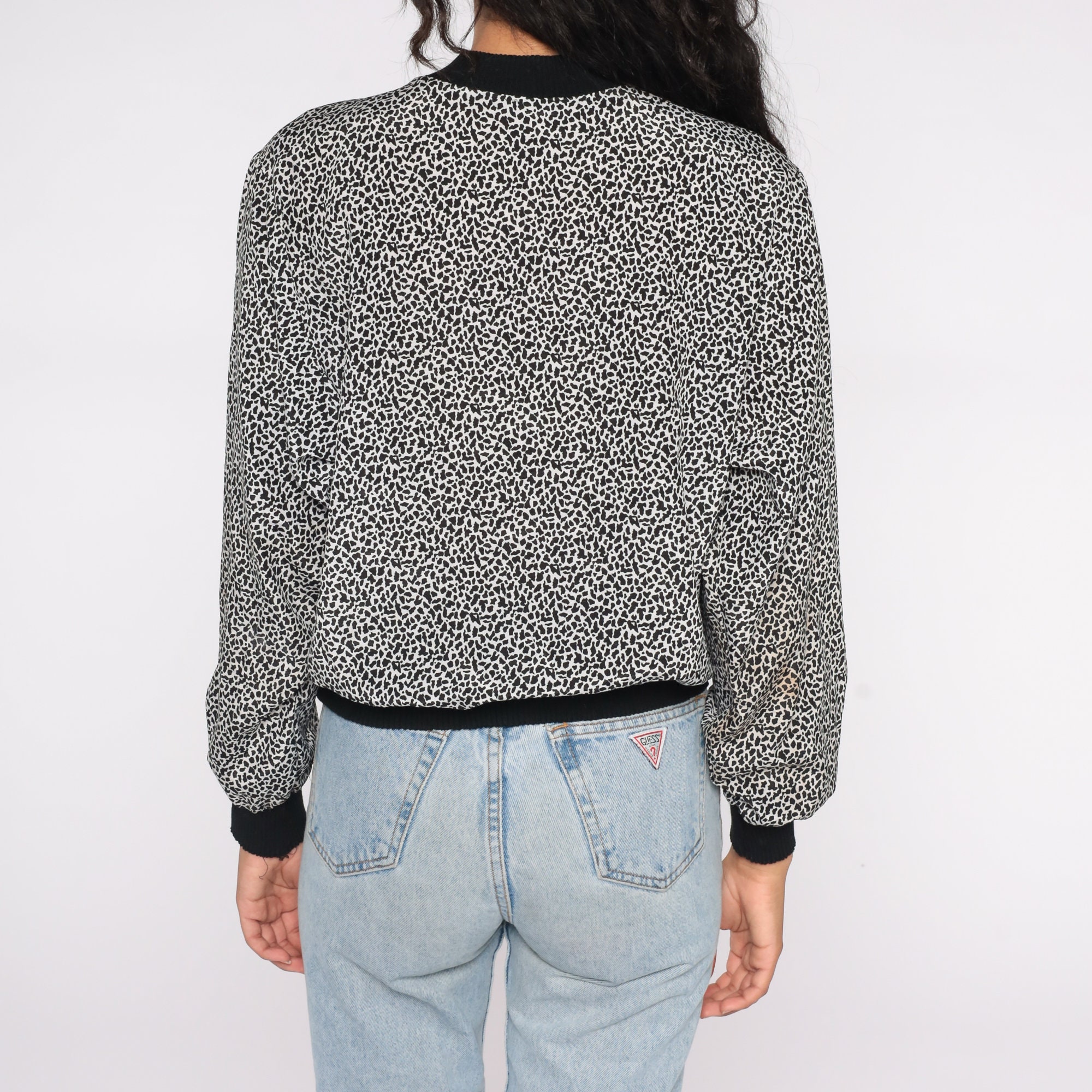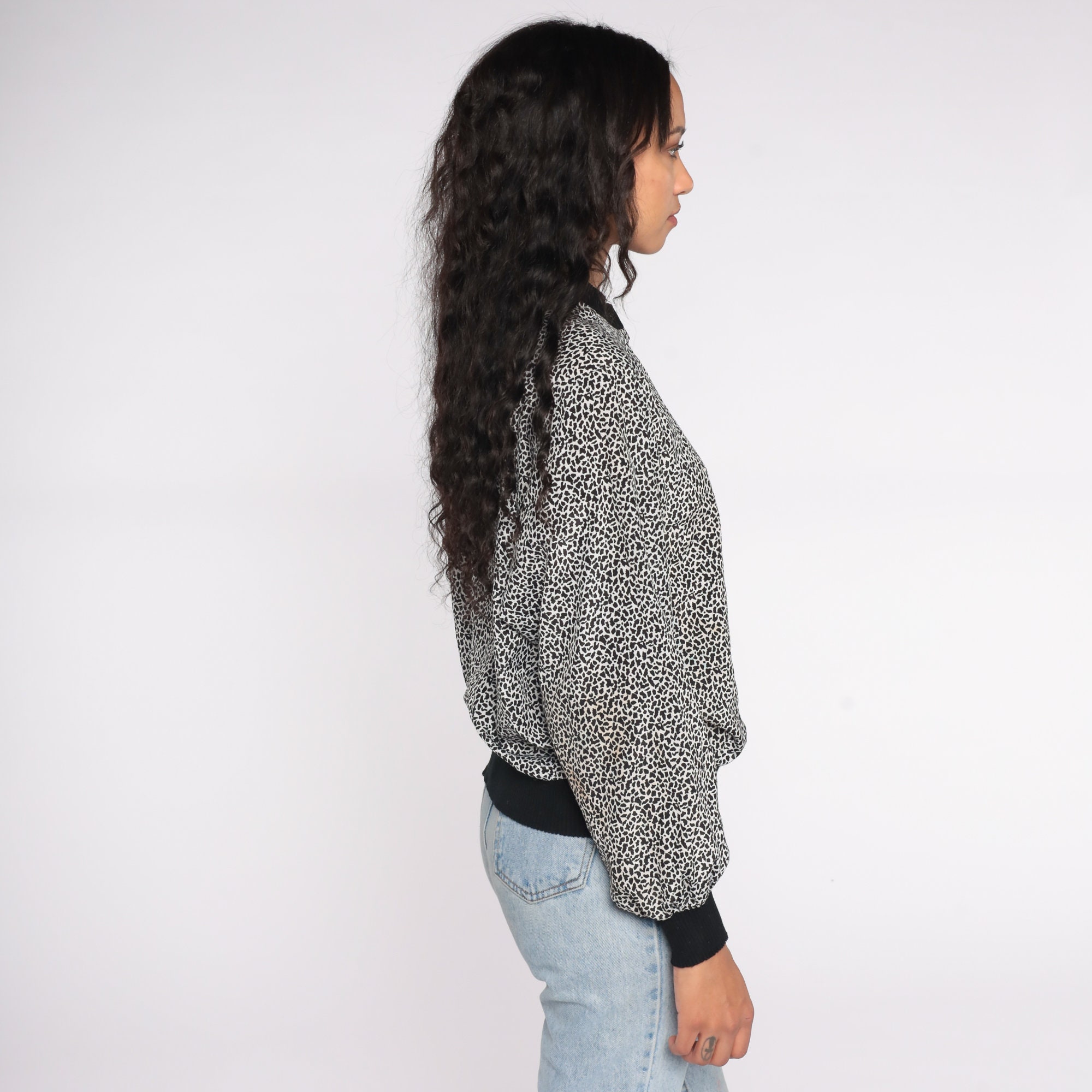 Vintage 80s shirt with a tiny leopard spot print.