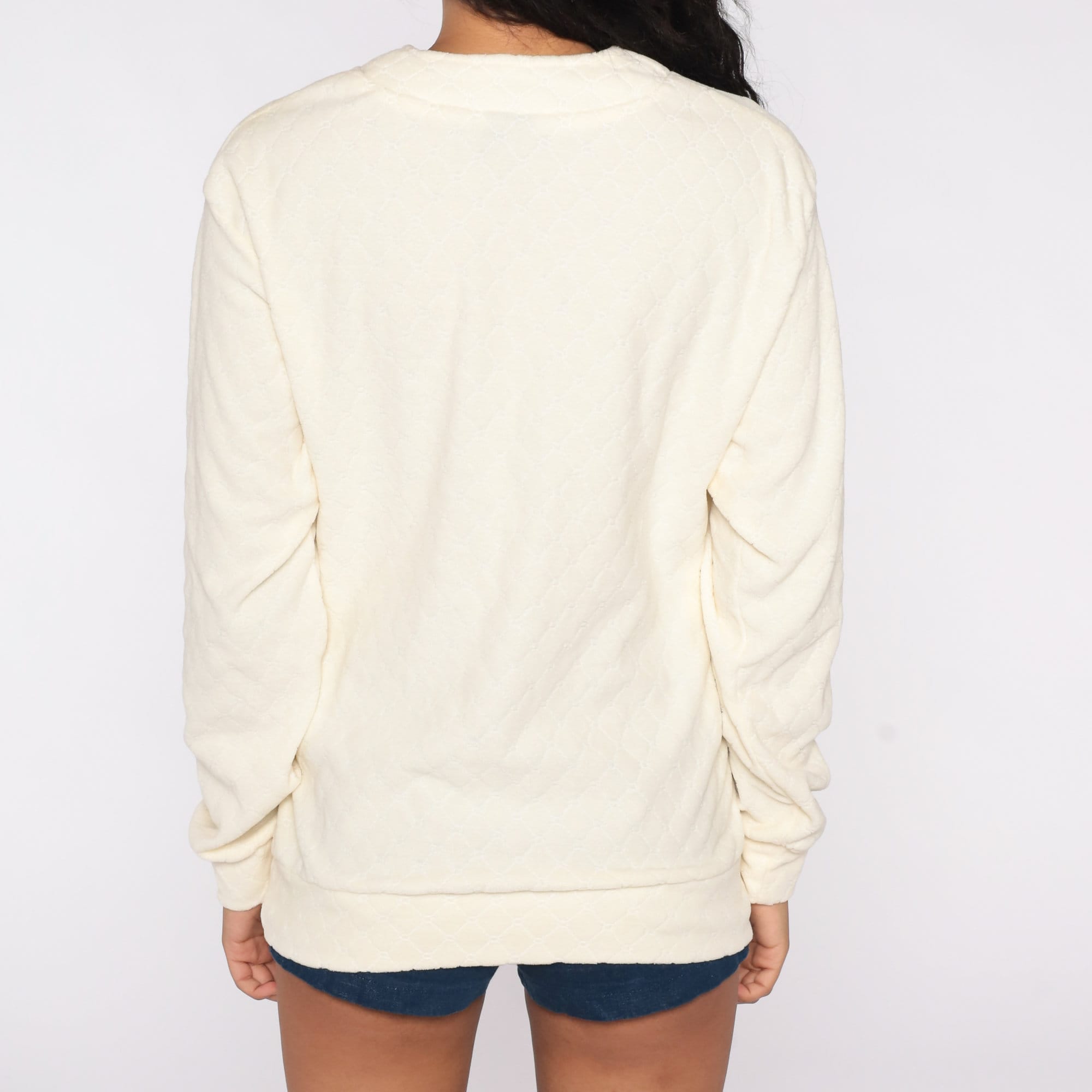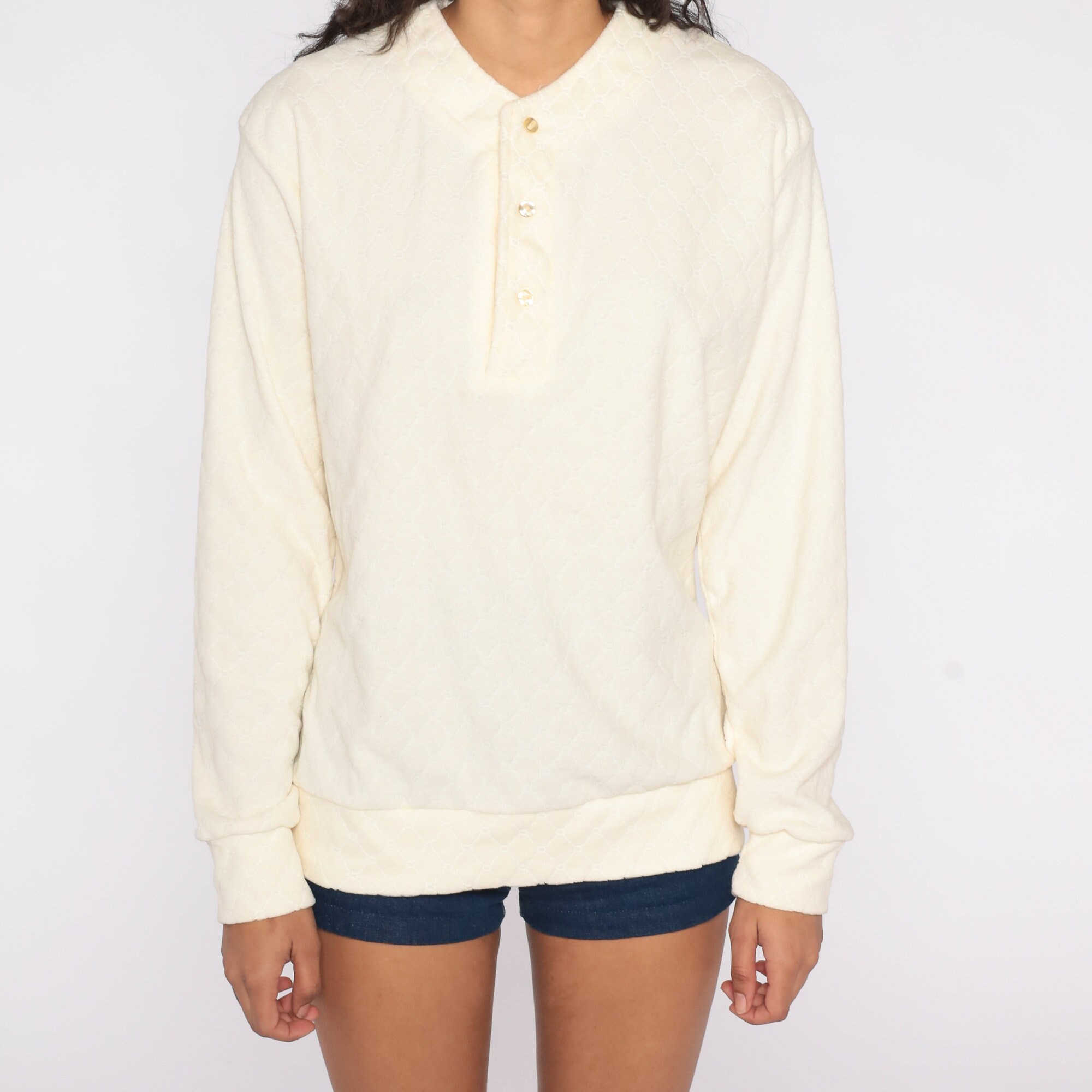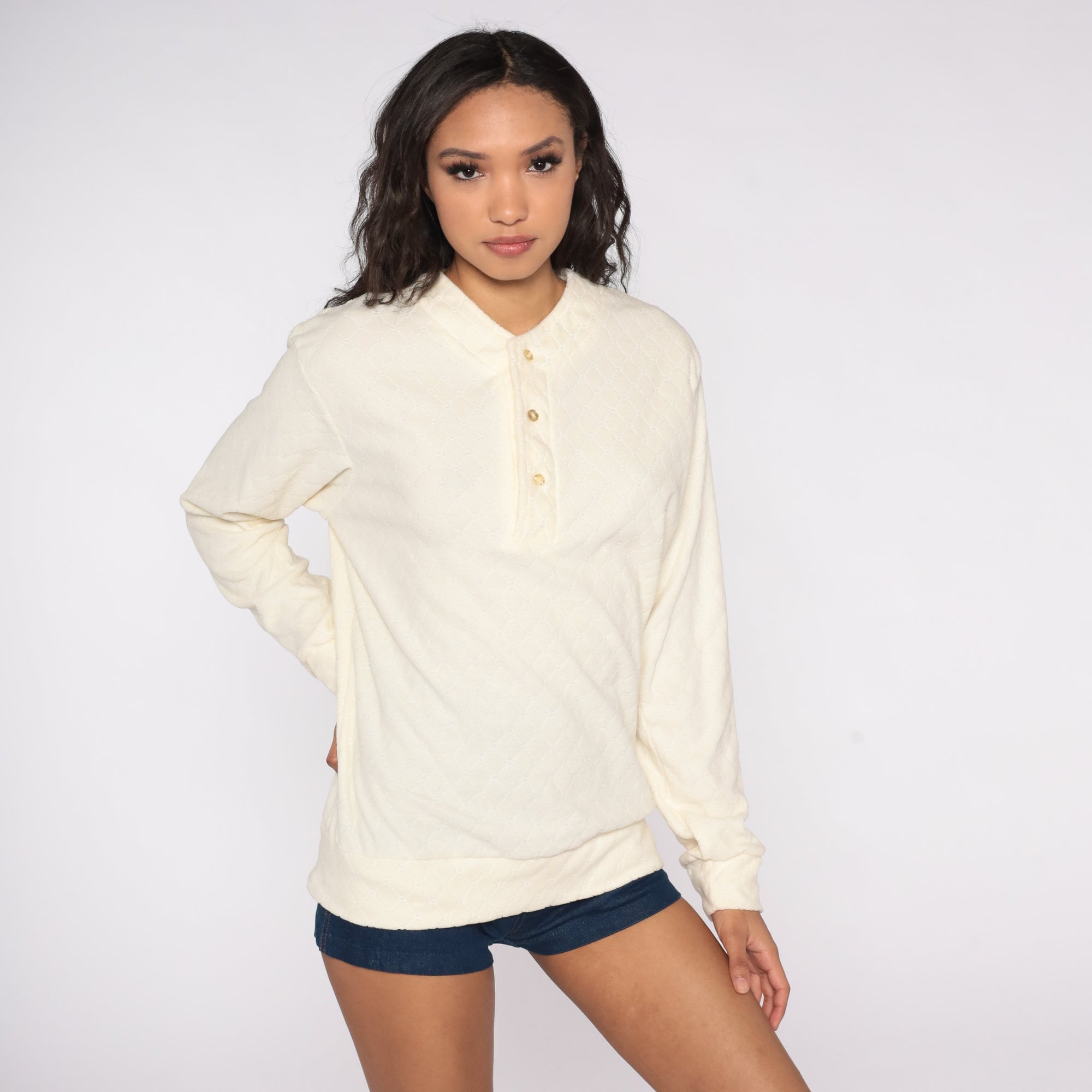 Vintage 80s sweatshirt in cream with a henley neckline and a quilted look.