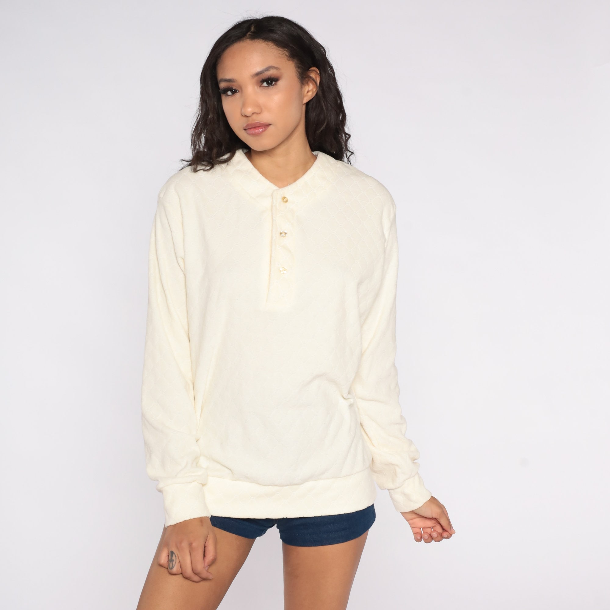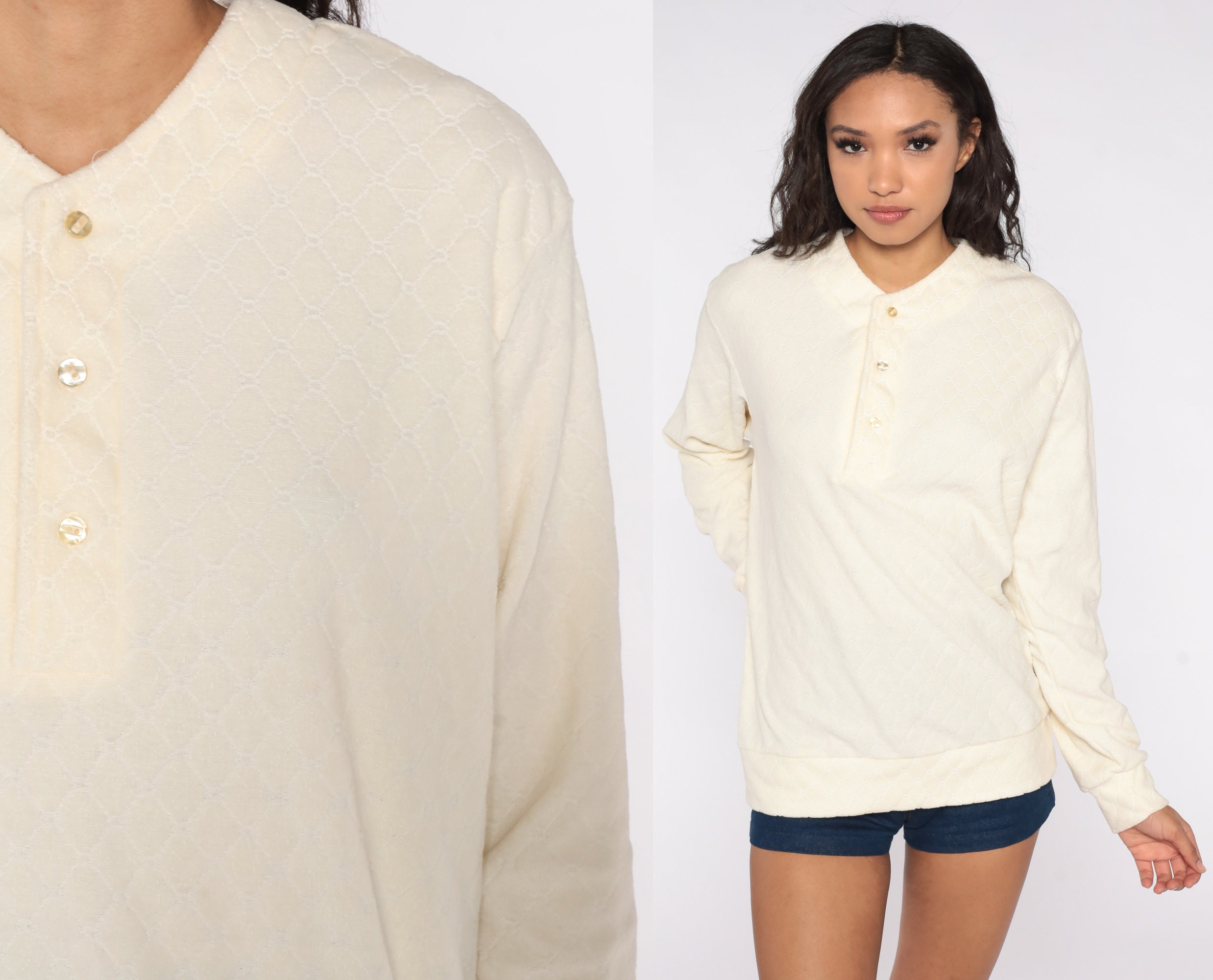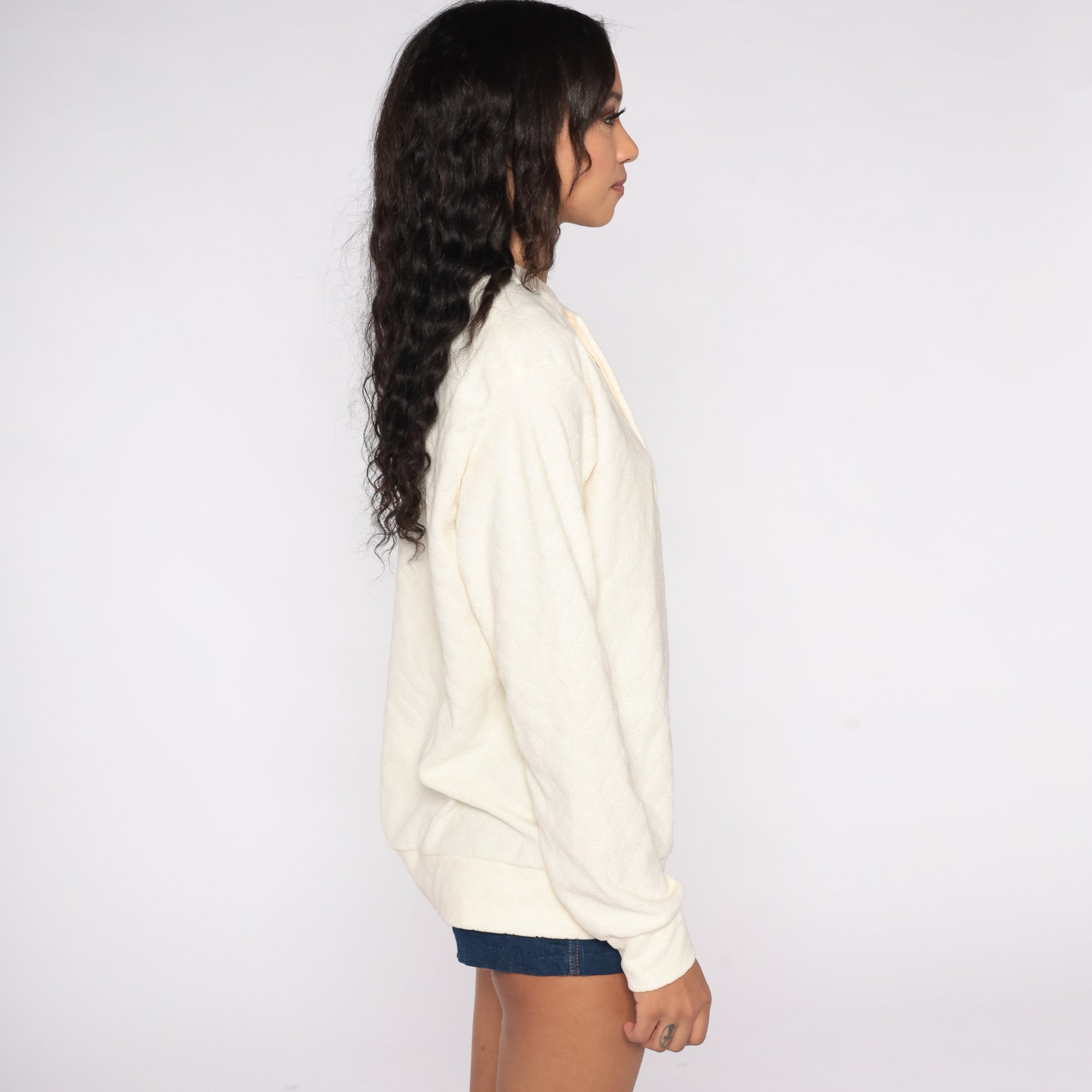 Vintage 80s sweatshirt in cream with a henley neckline and a quilted look.