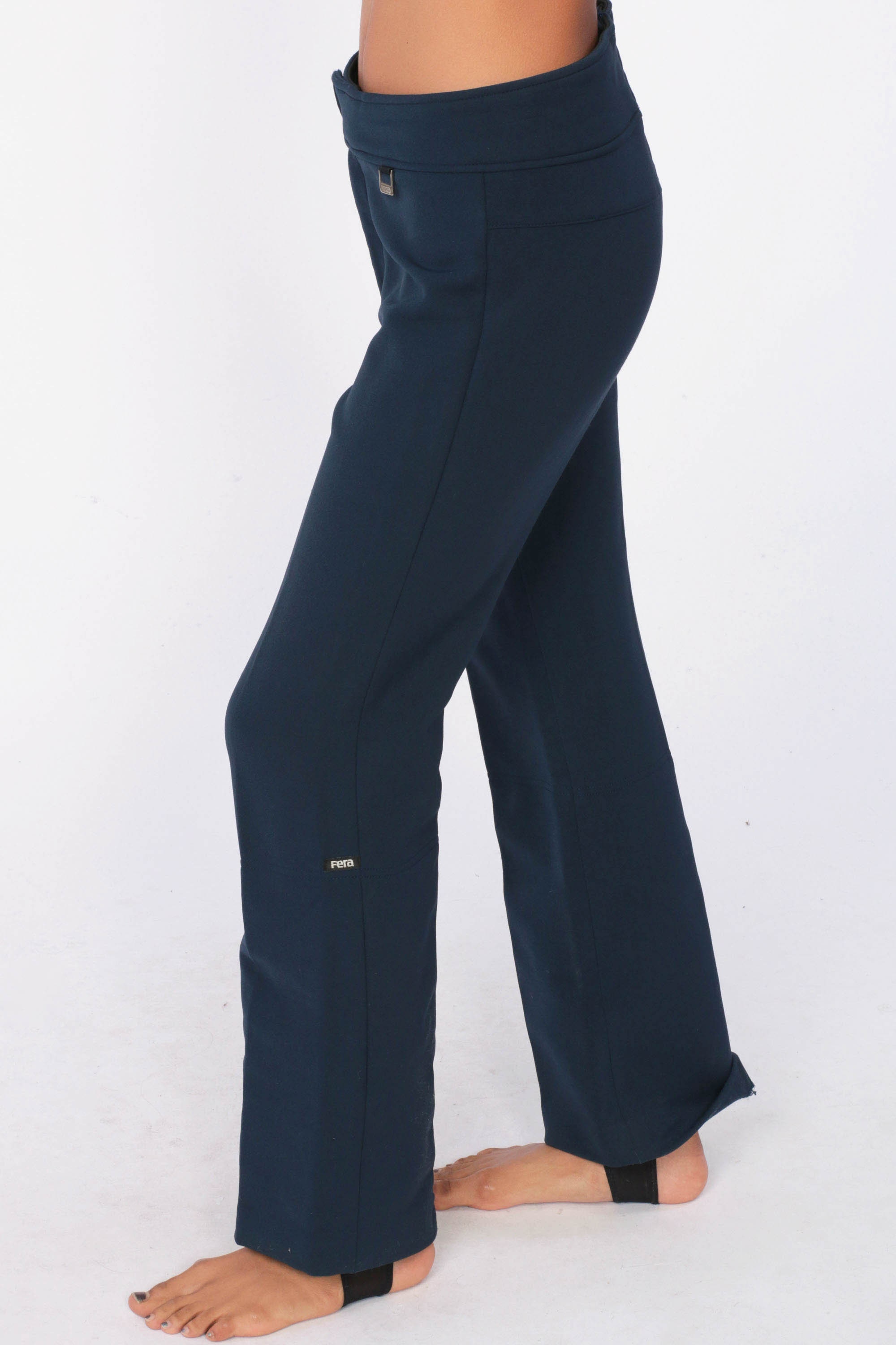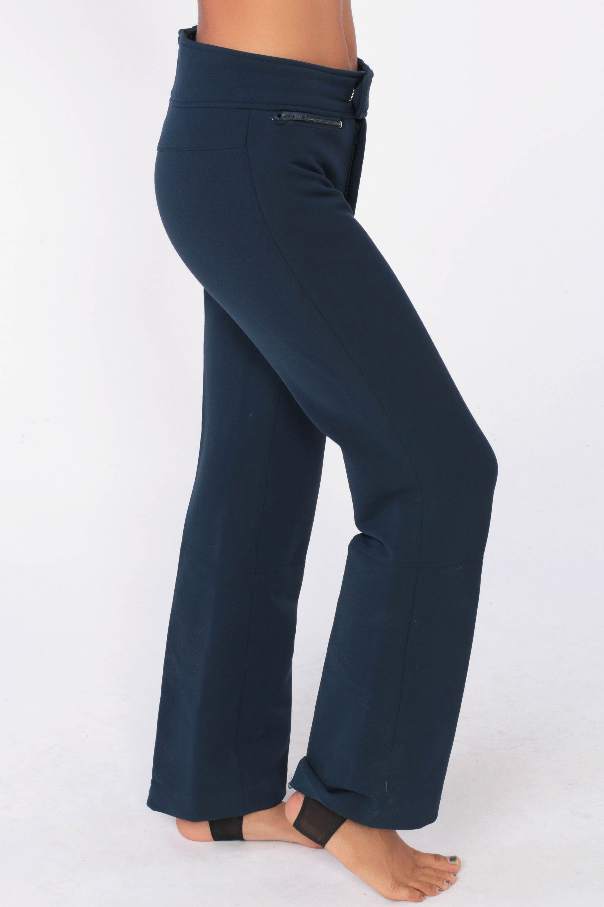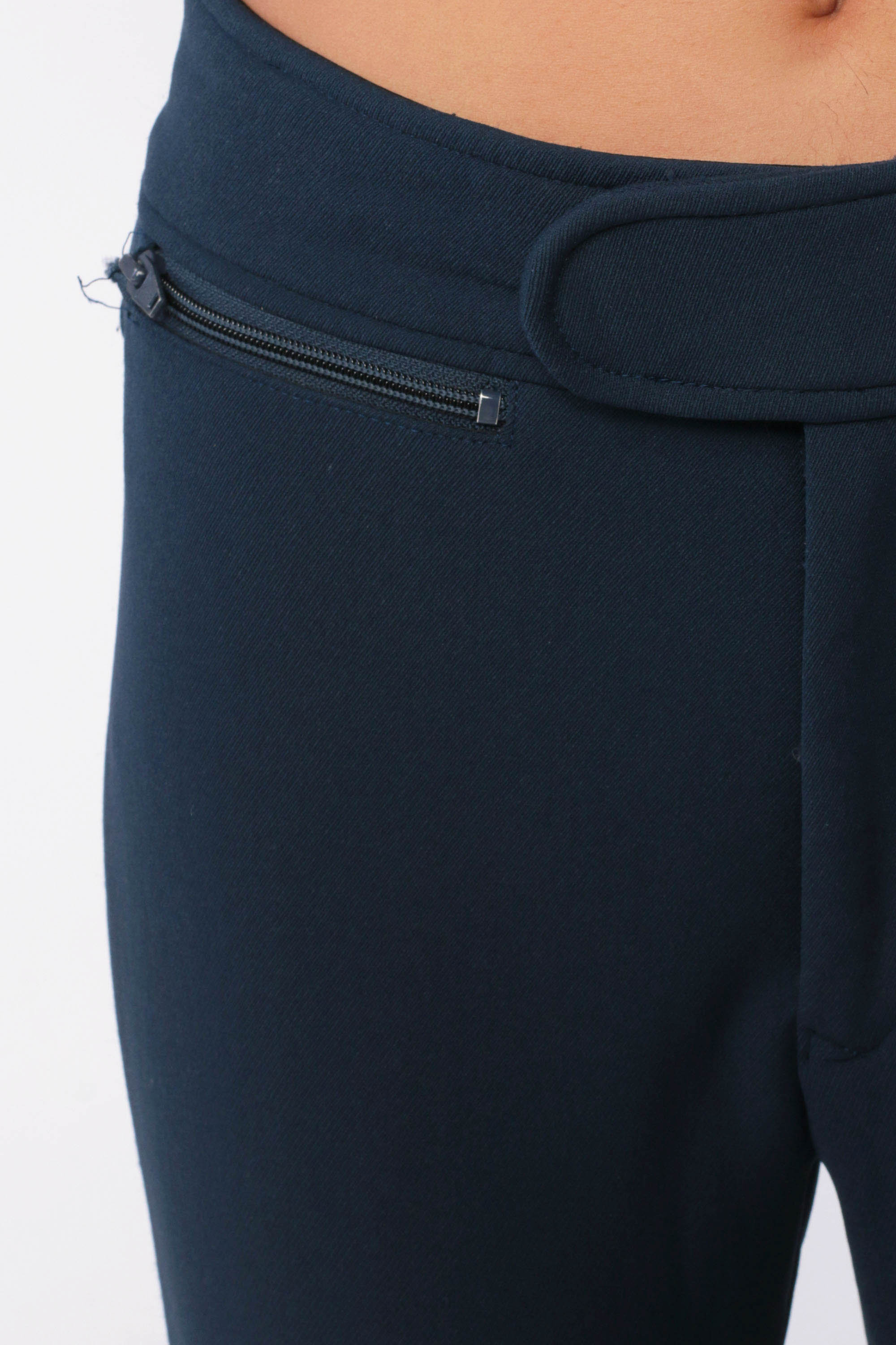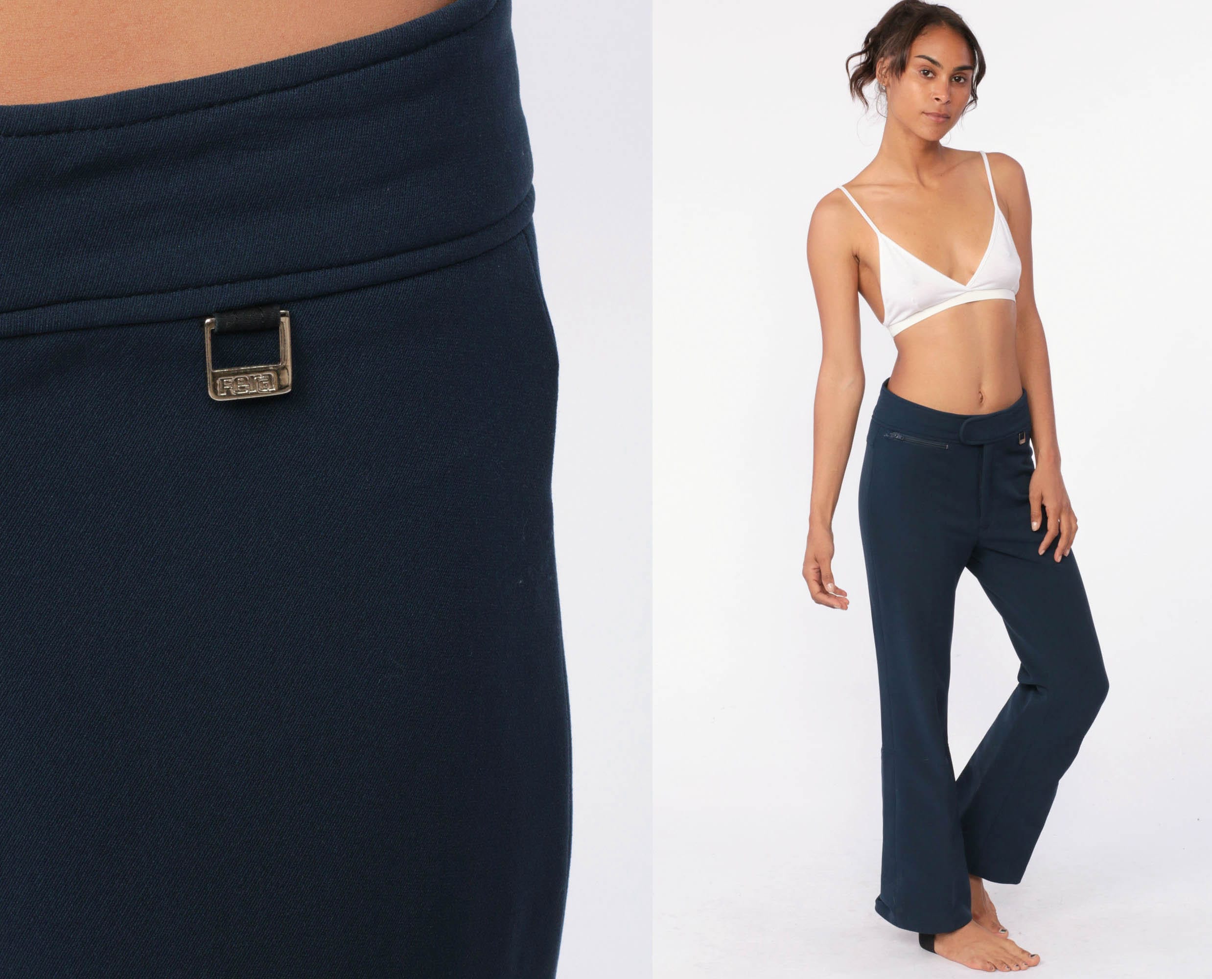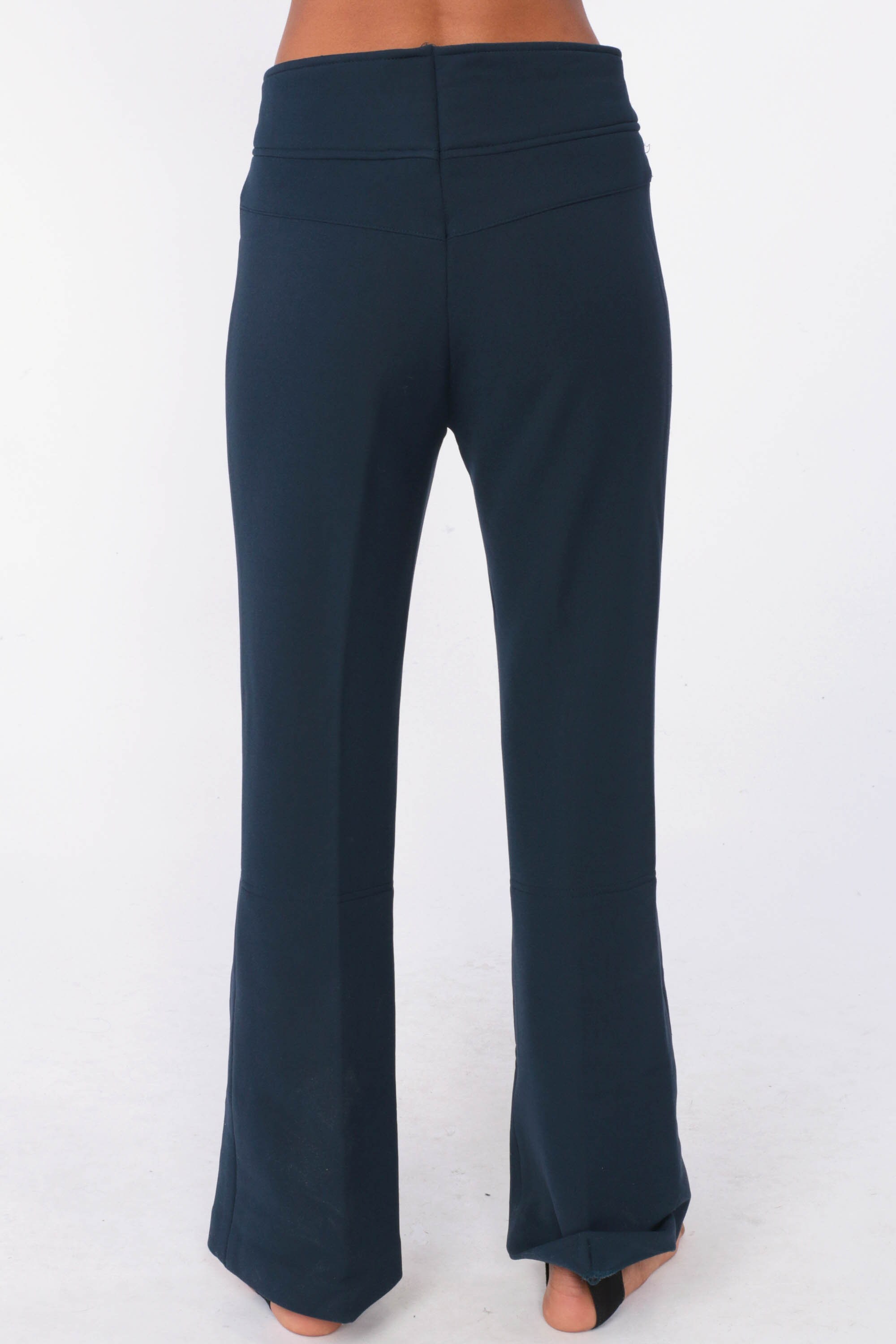 Vintage 70s snow pants in navy blue with bell bottoms and stirrups.
