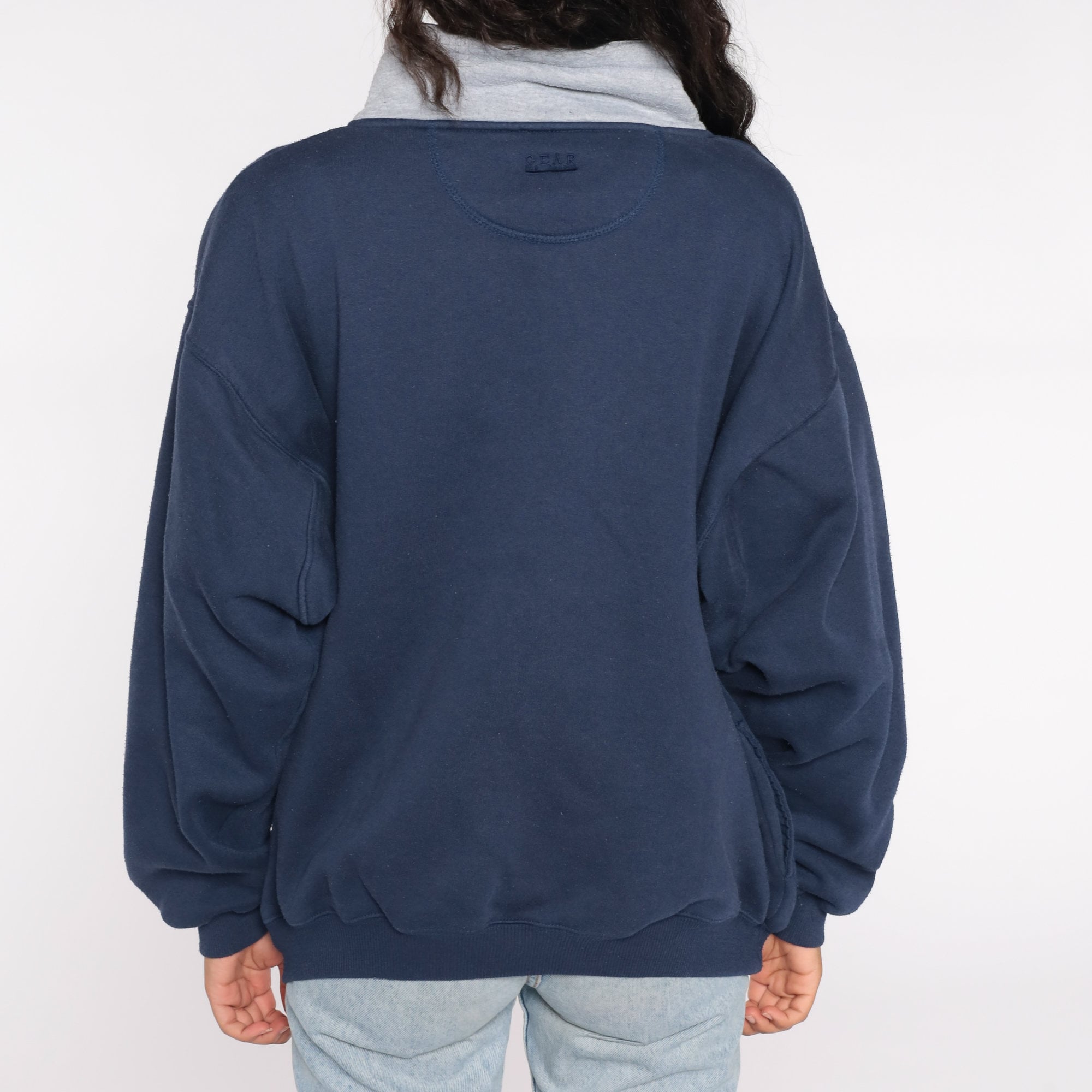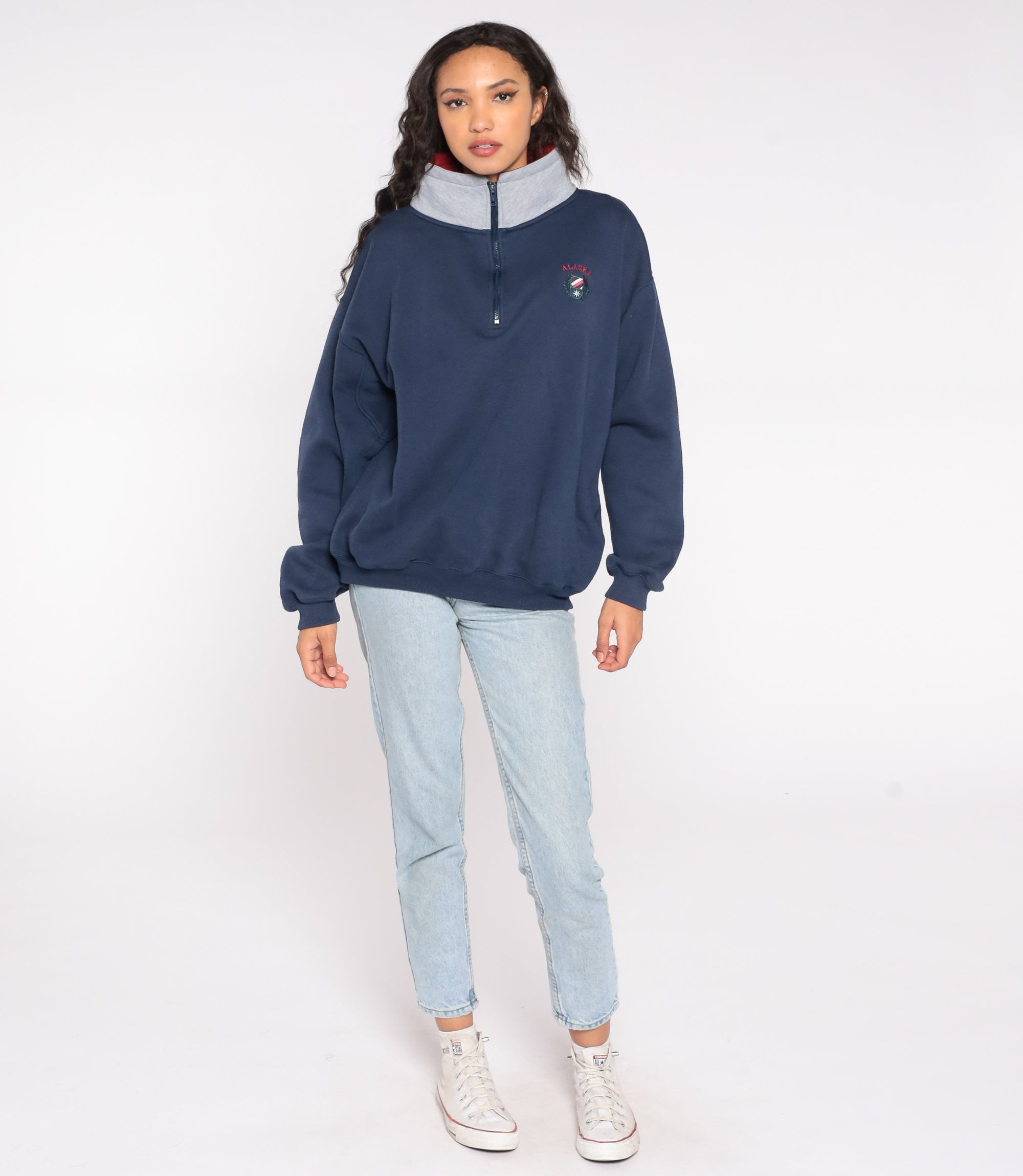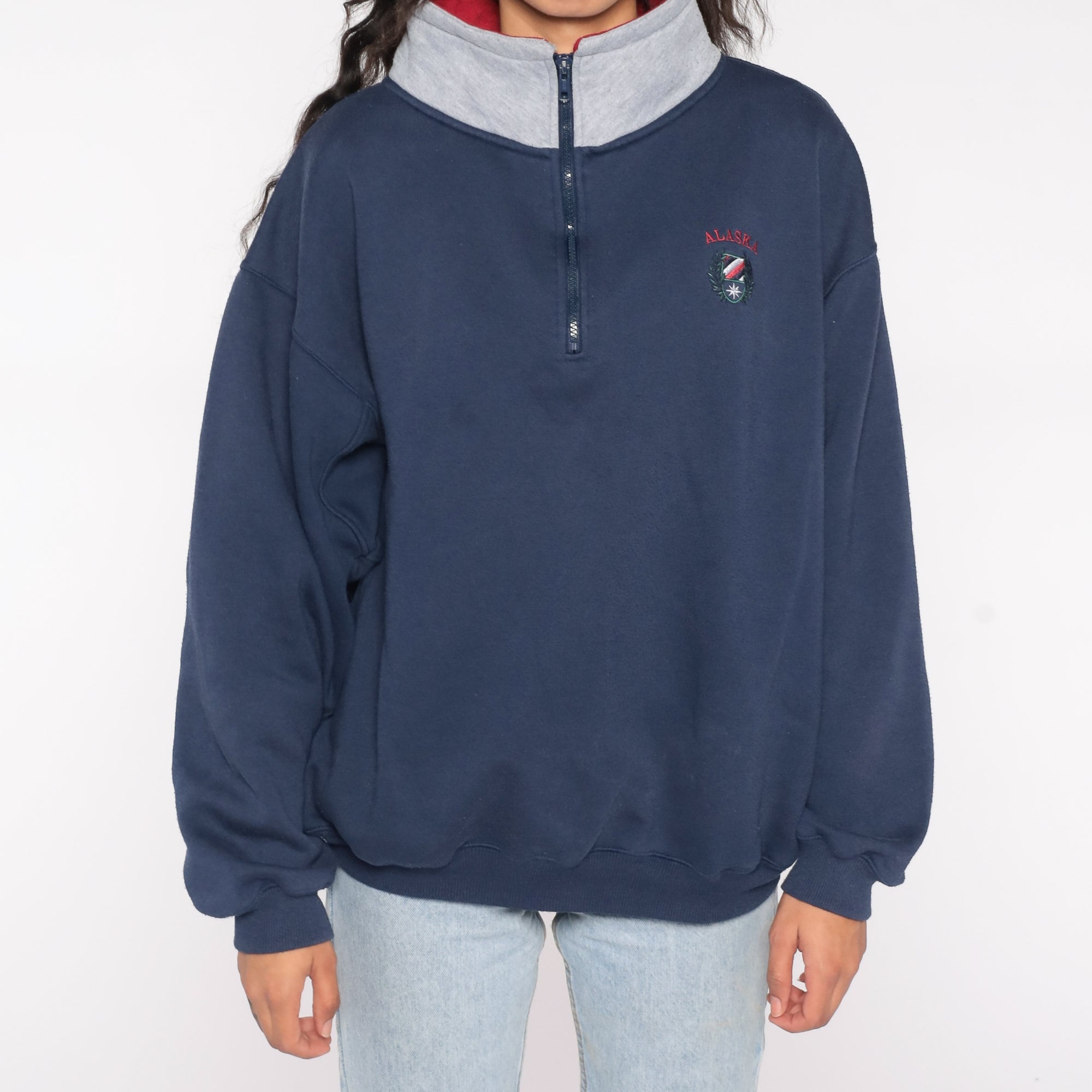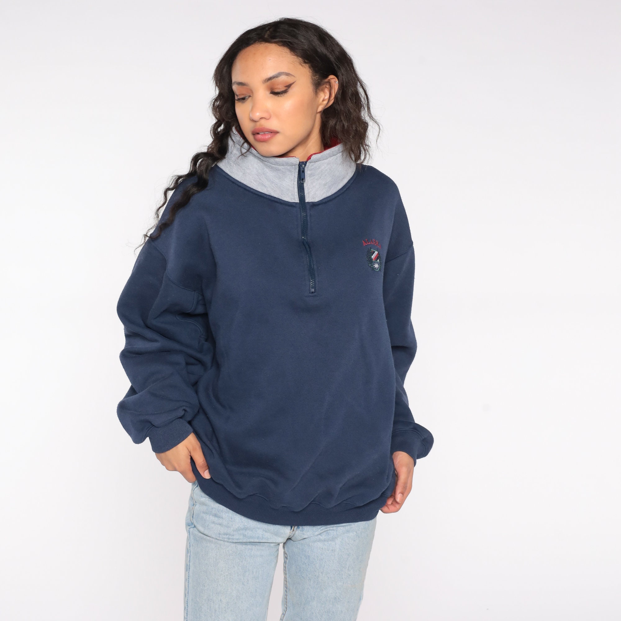 Vintage 80s 90s sweatshirt with an Alaska logo, quarter zip, and grey collar.