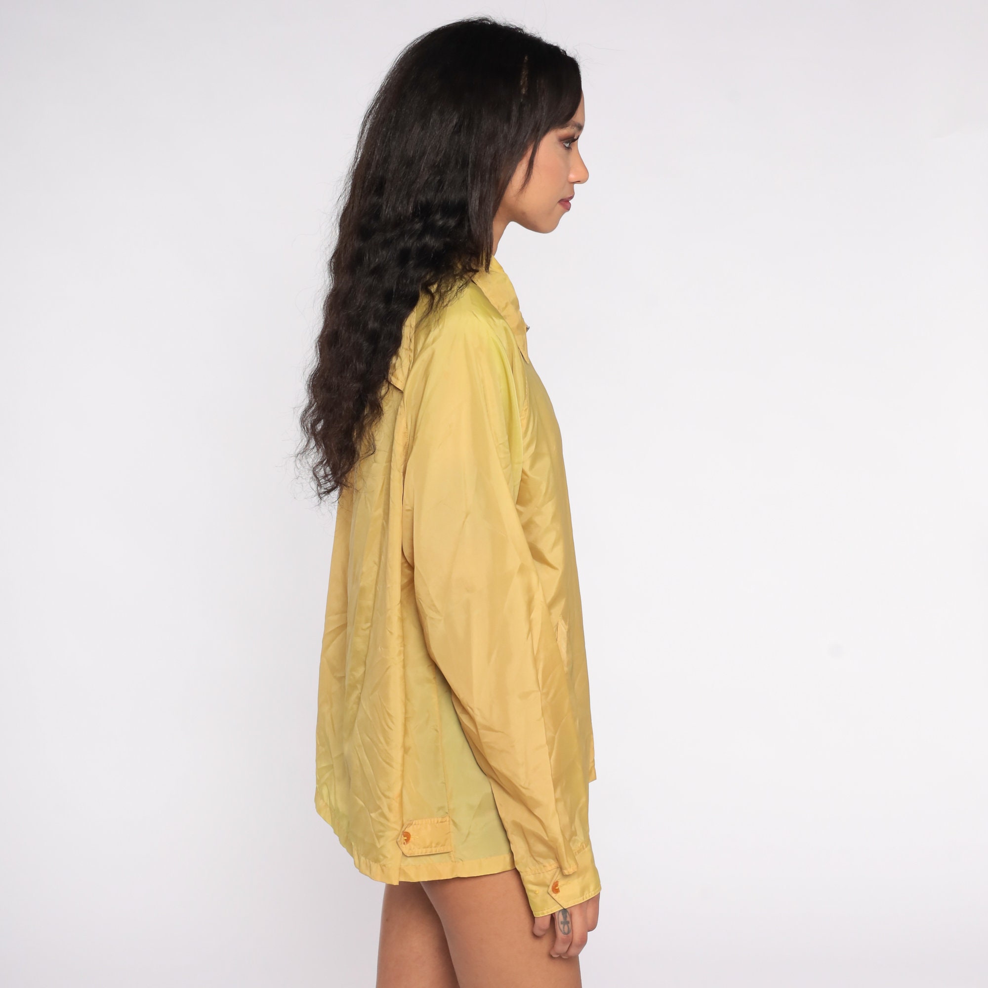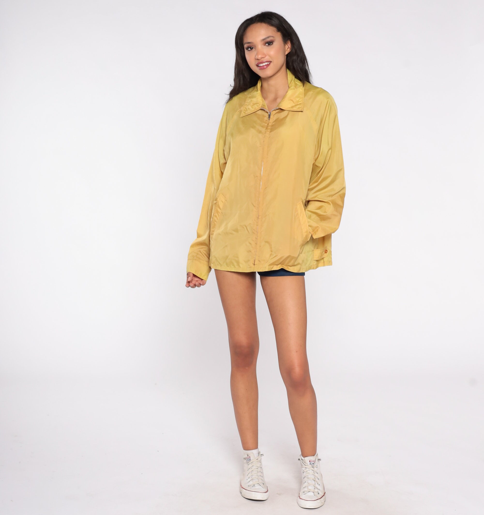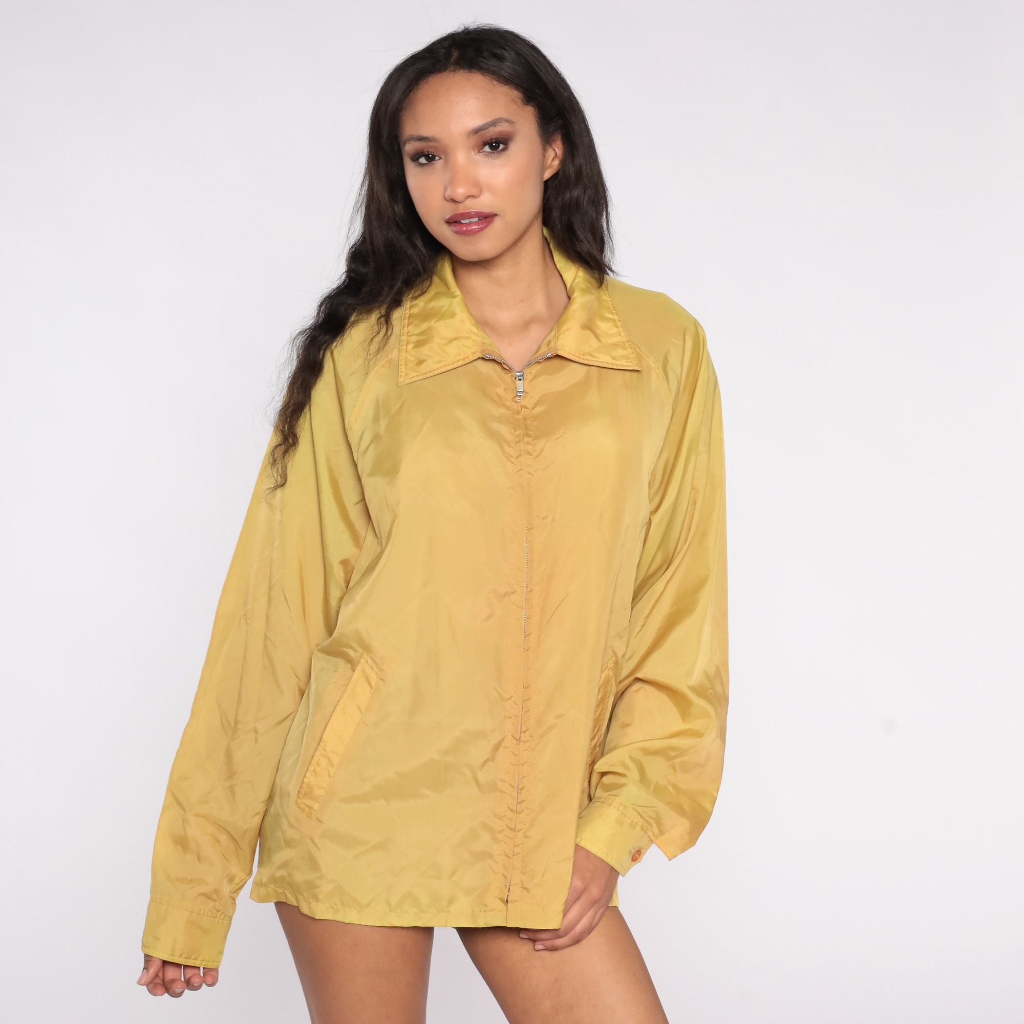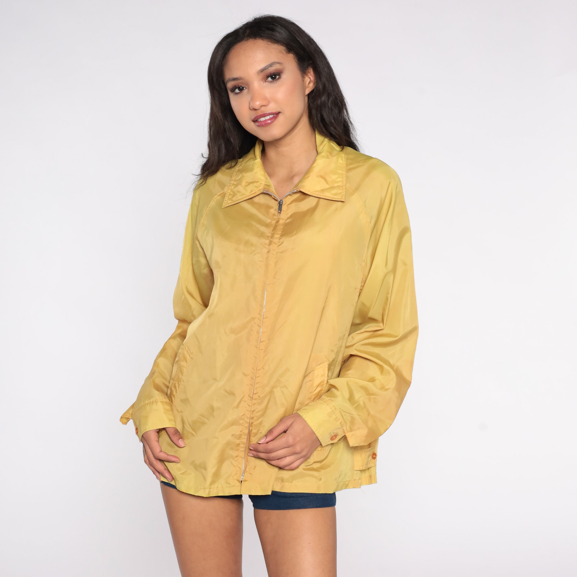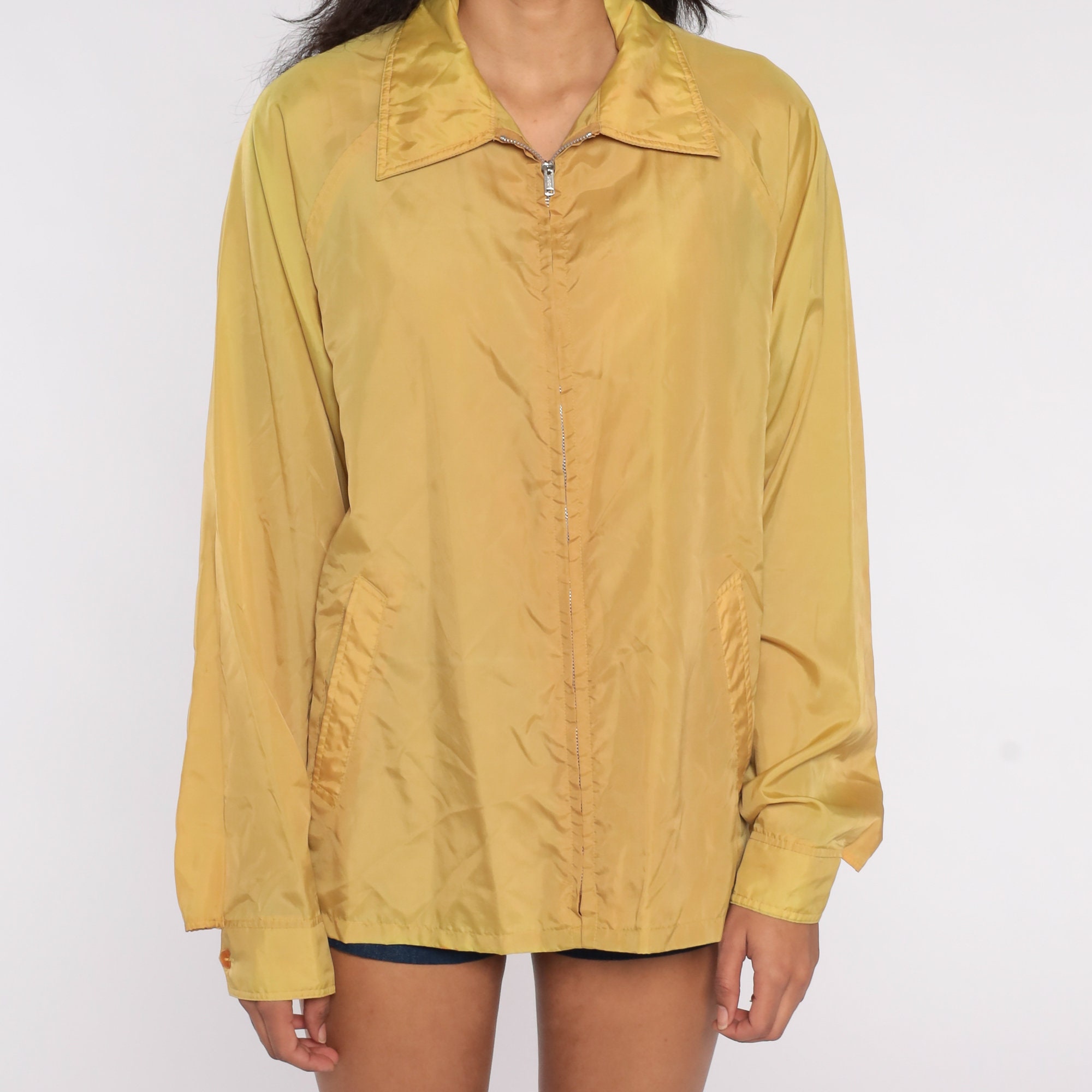 Vintage 70s jacket in yellow with a front zip. Has some condition issues, see details below.