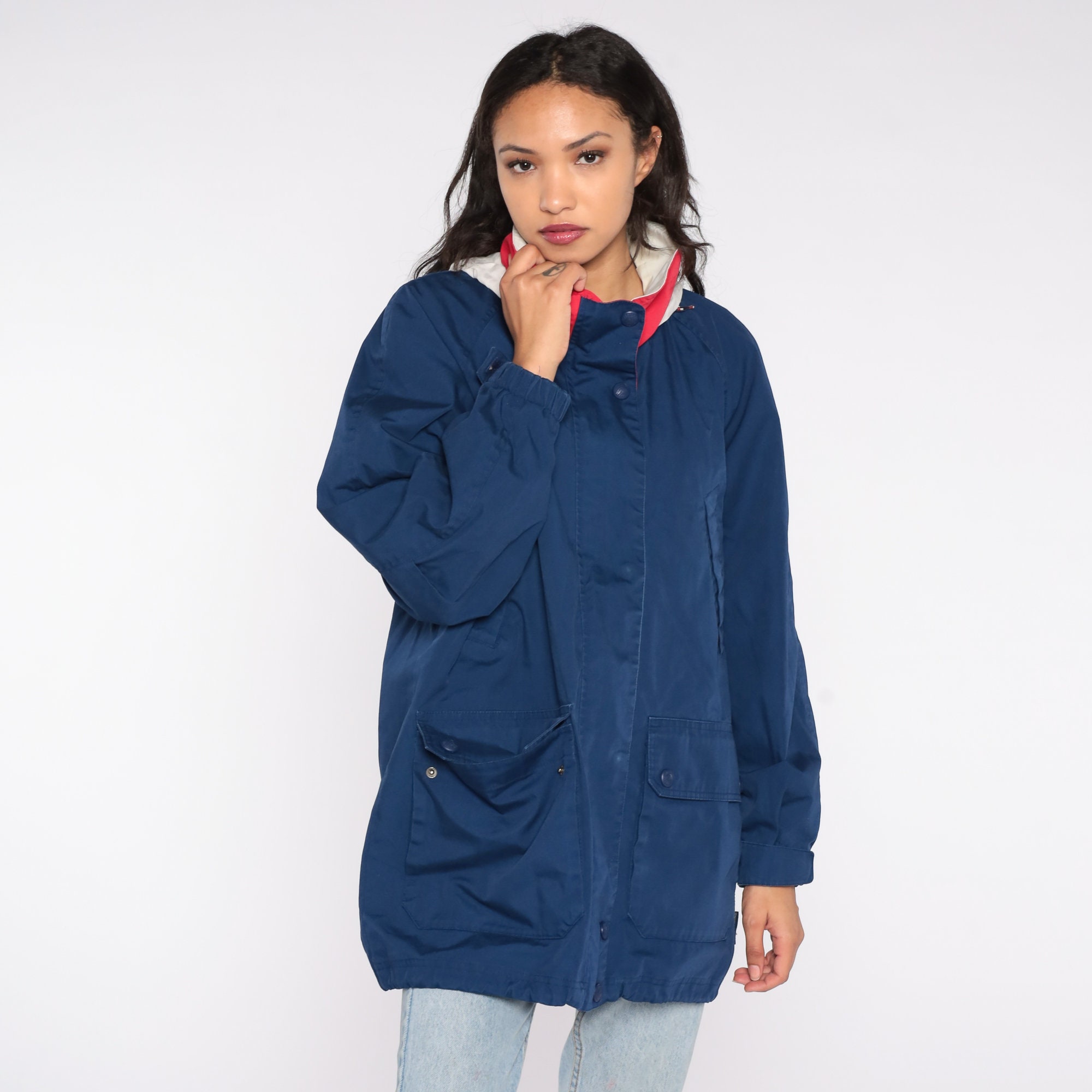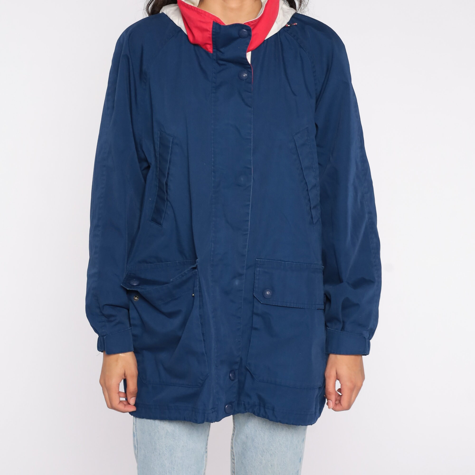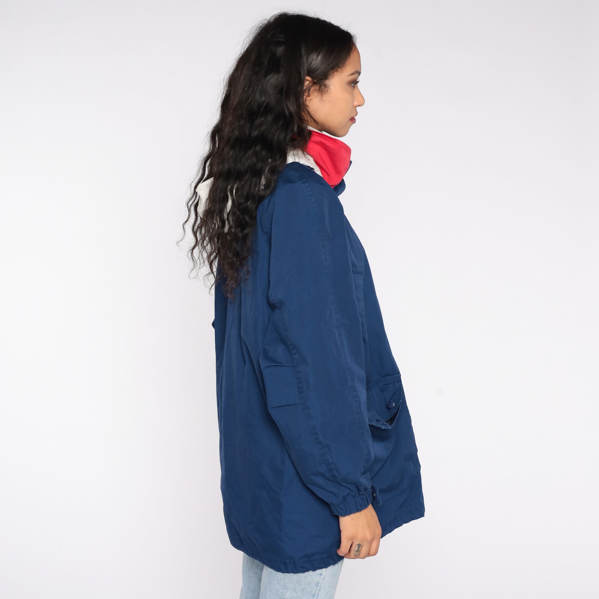 Vintage 90s windbreaker jacket in navy blue with a funnel neck.