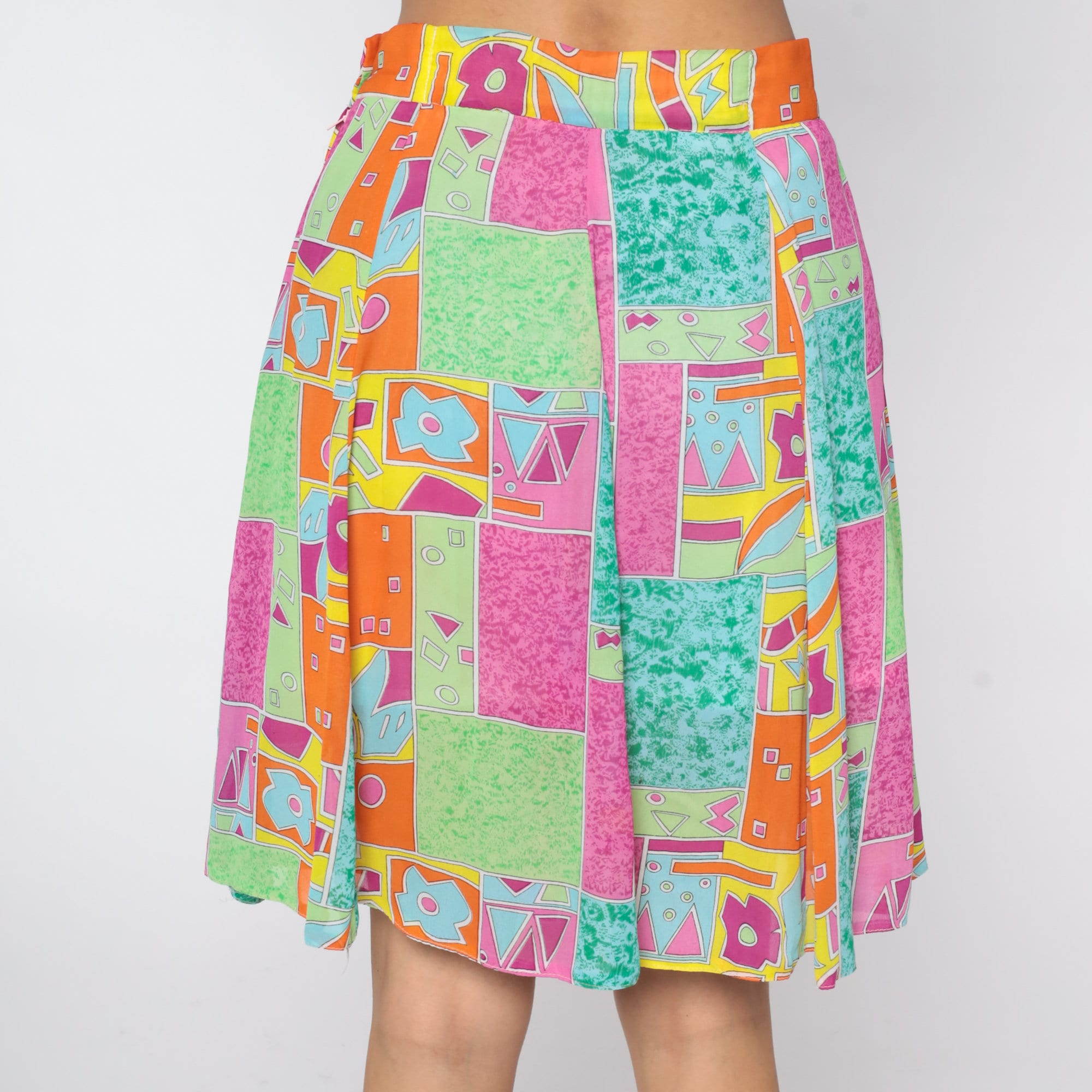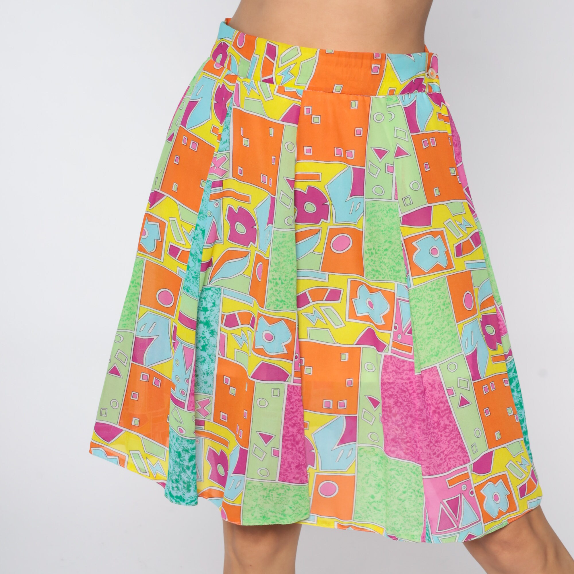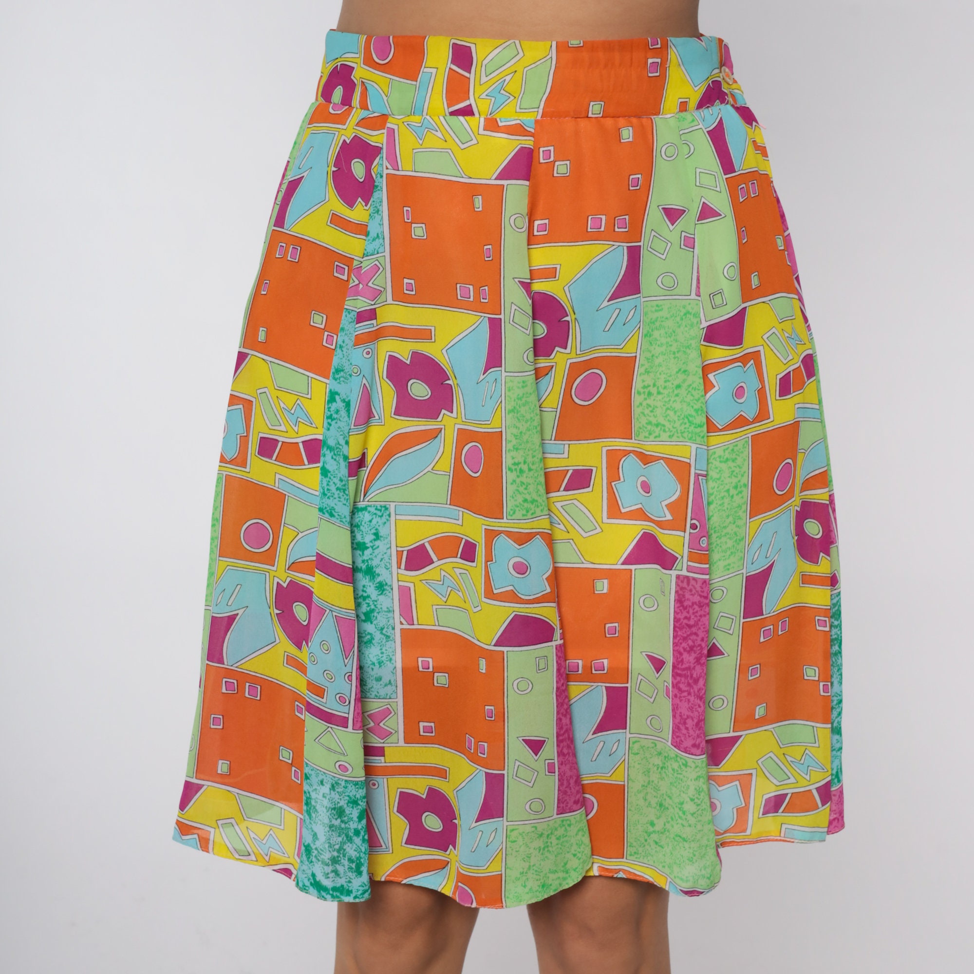 Vintage 80s skirt with a bright floral print. High waist, knee length.