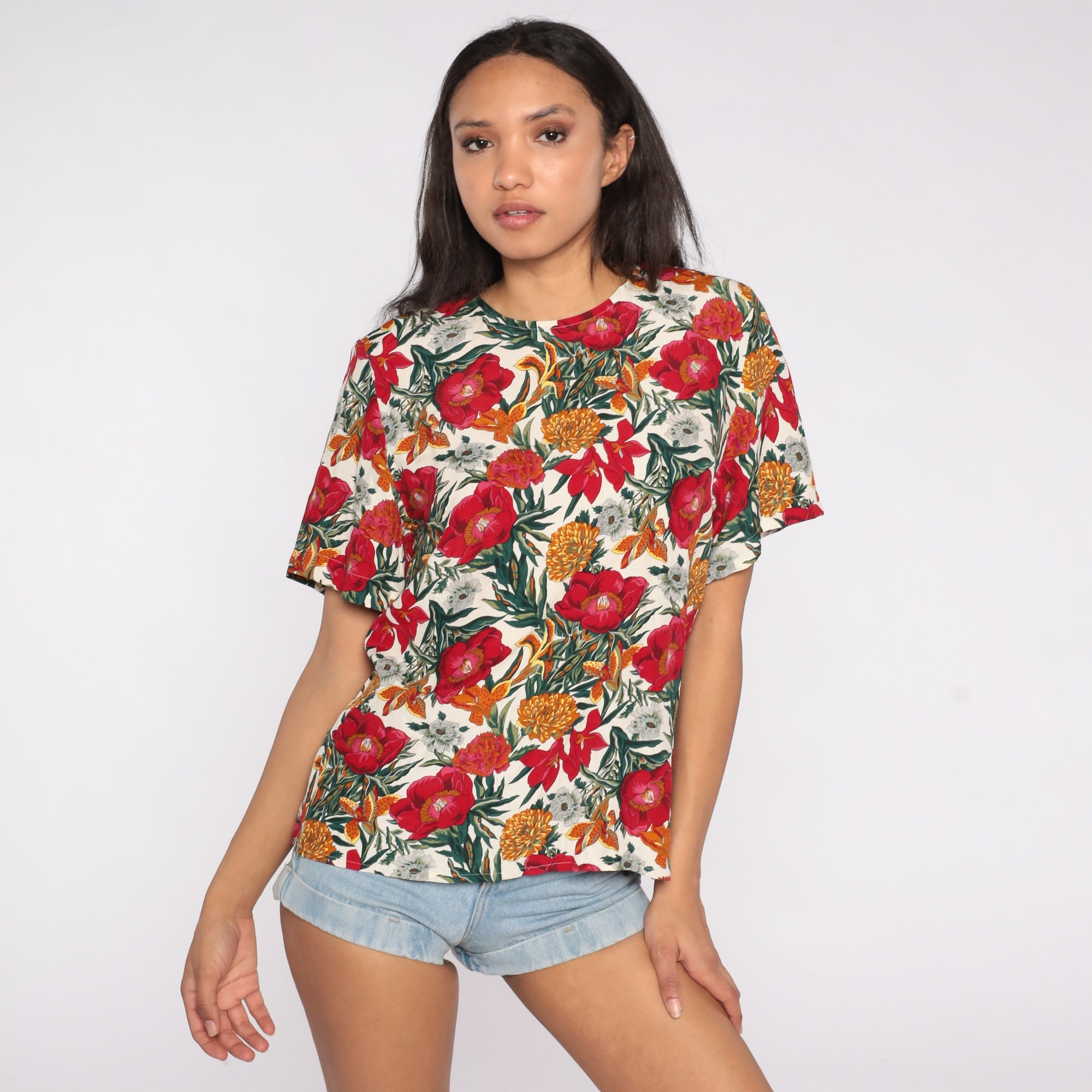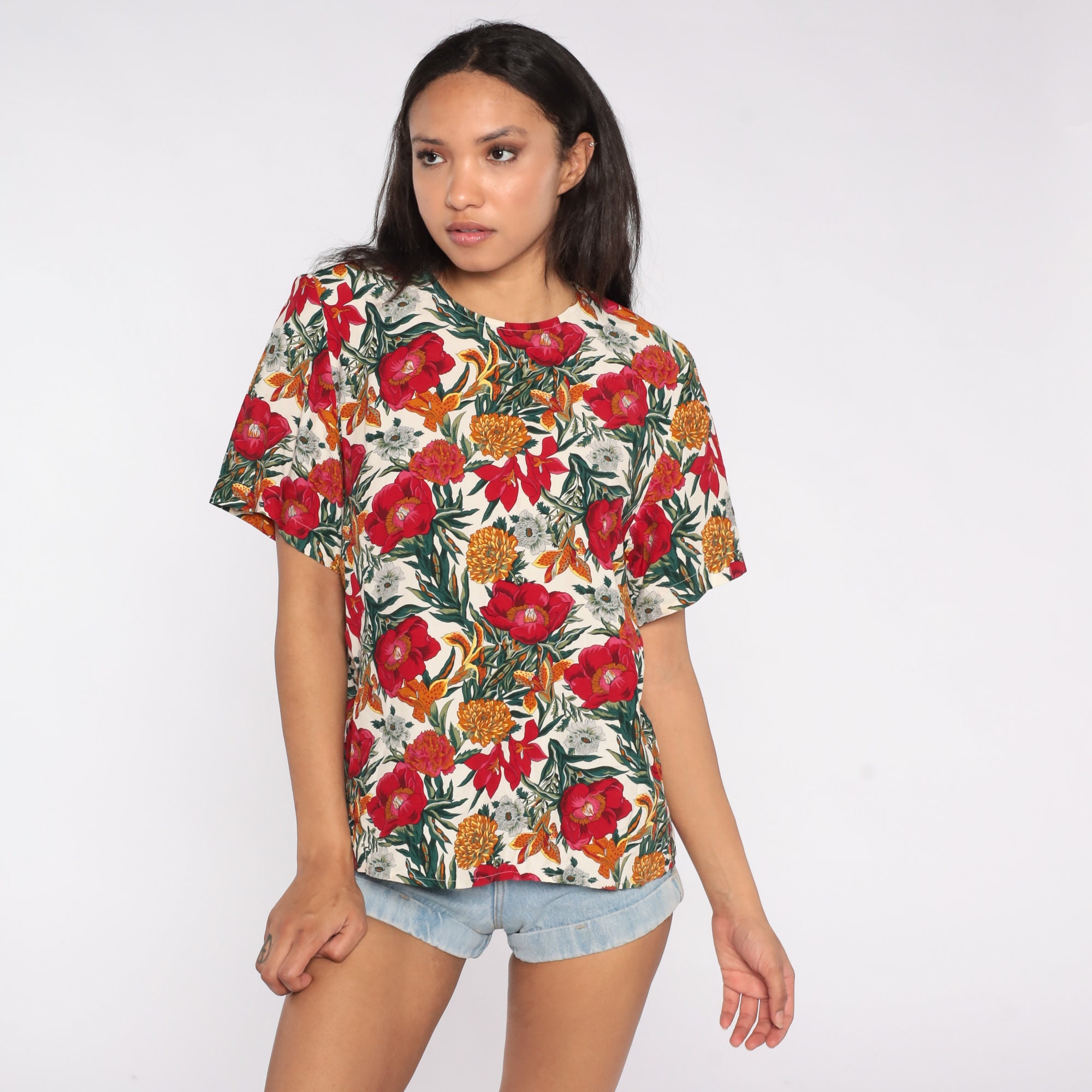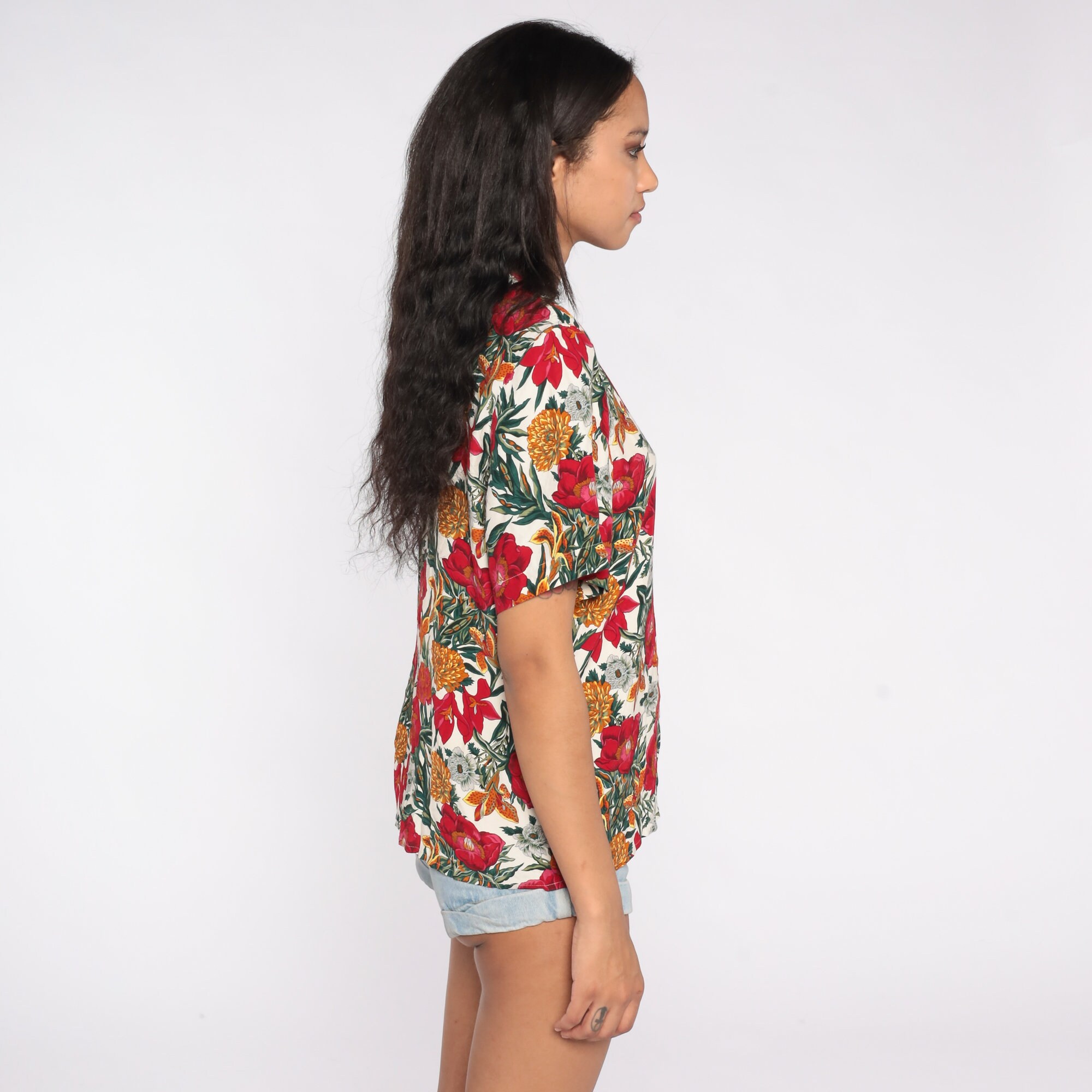 Vintage 90s shirt in rayon with a floral print.