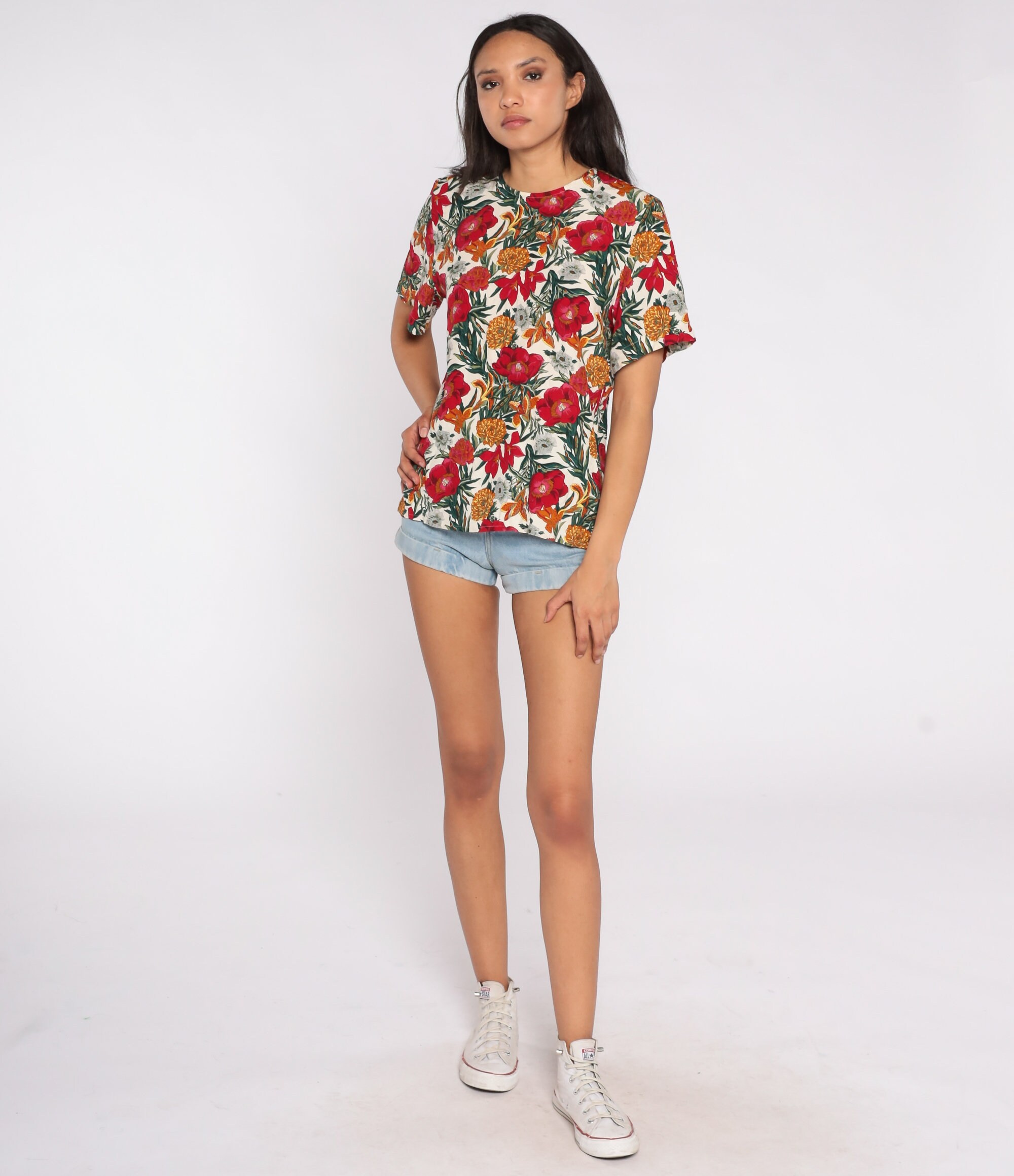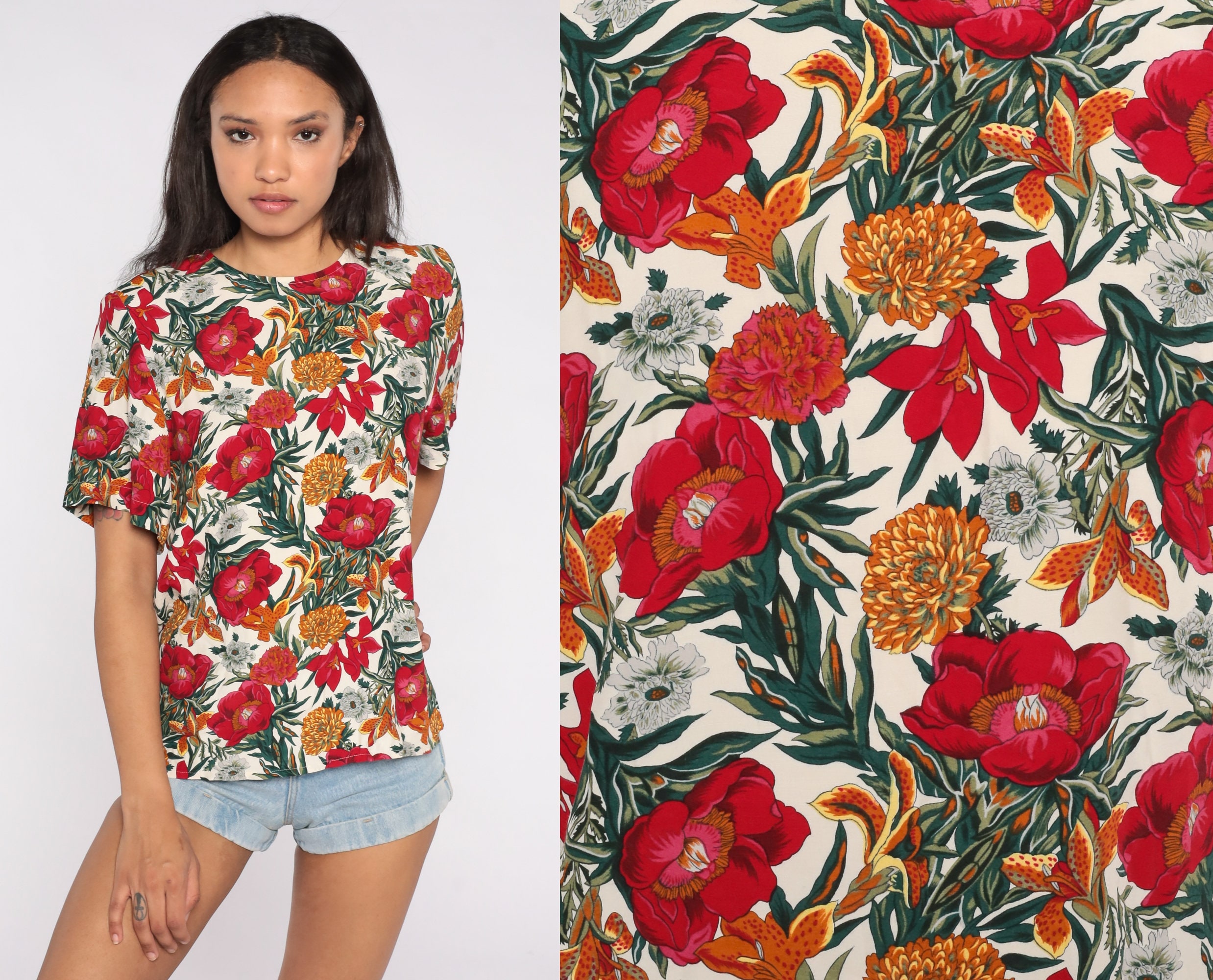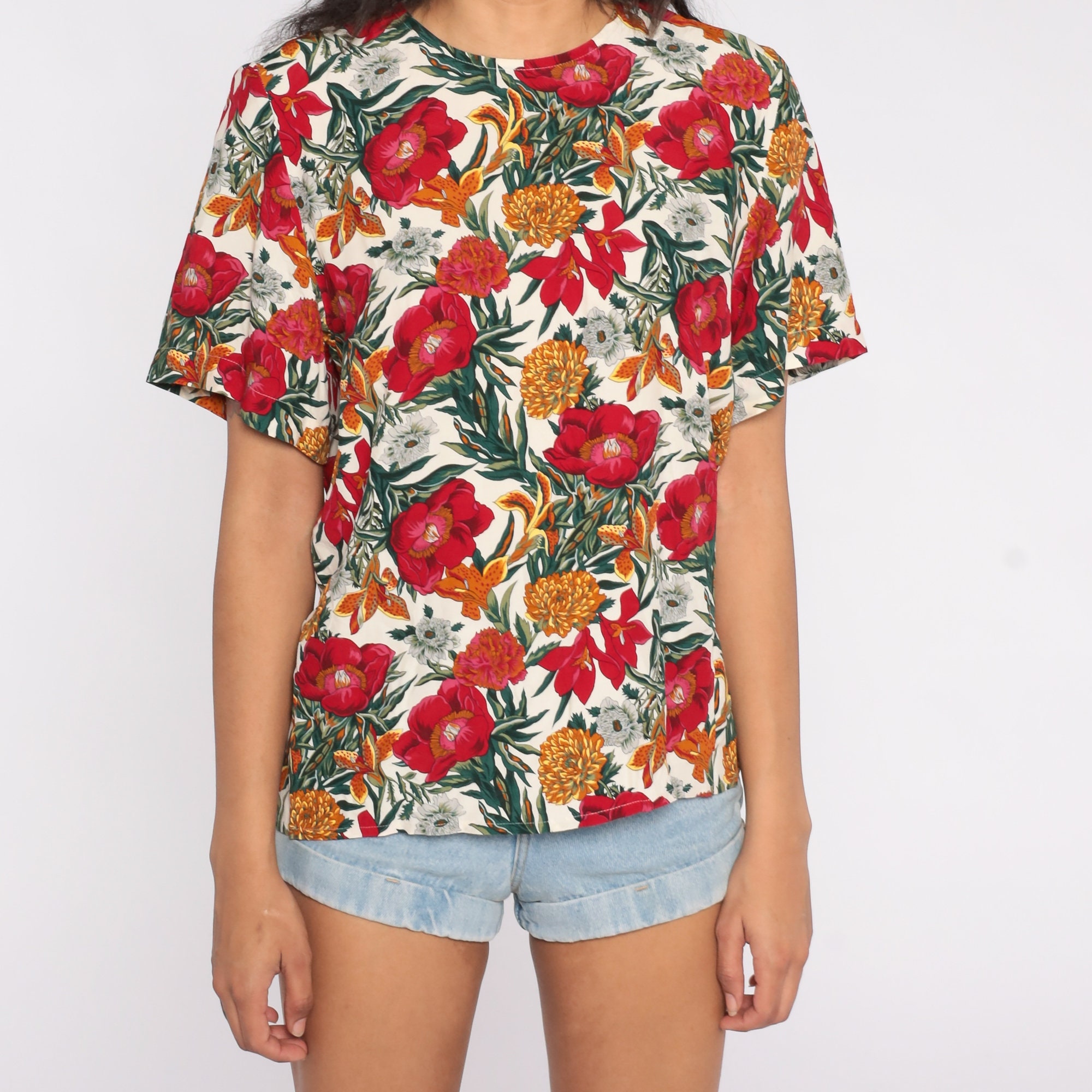 Vintage 90s shirt in rayon with a floral print.