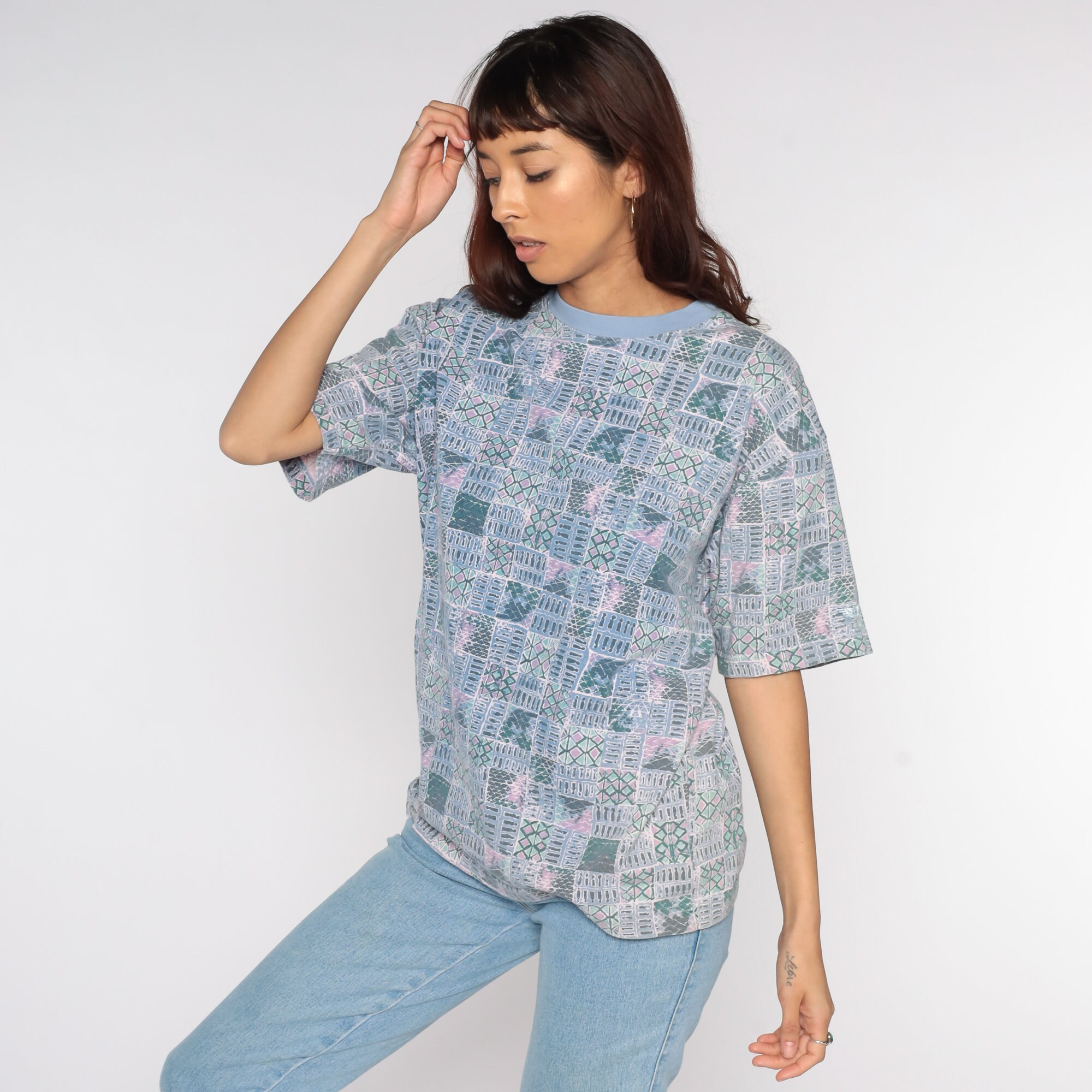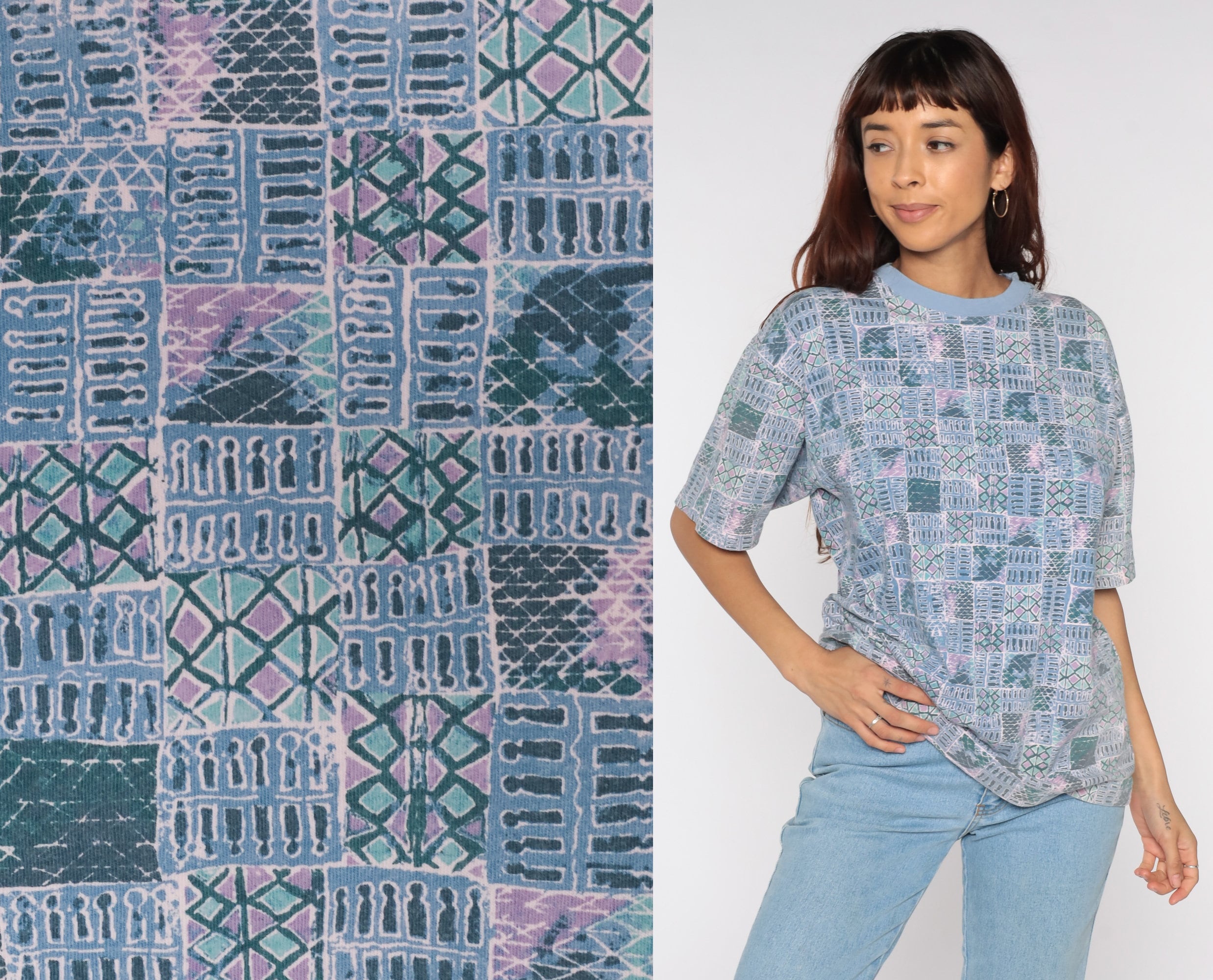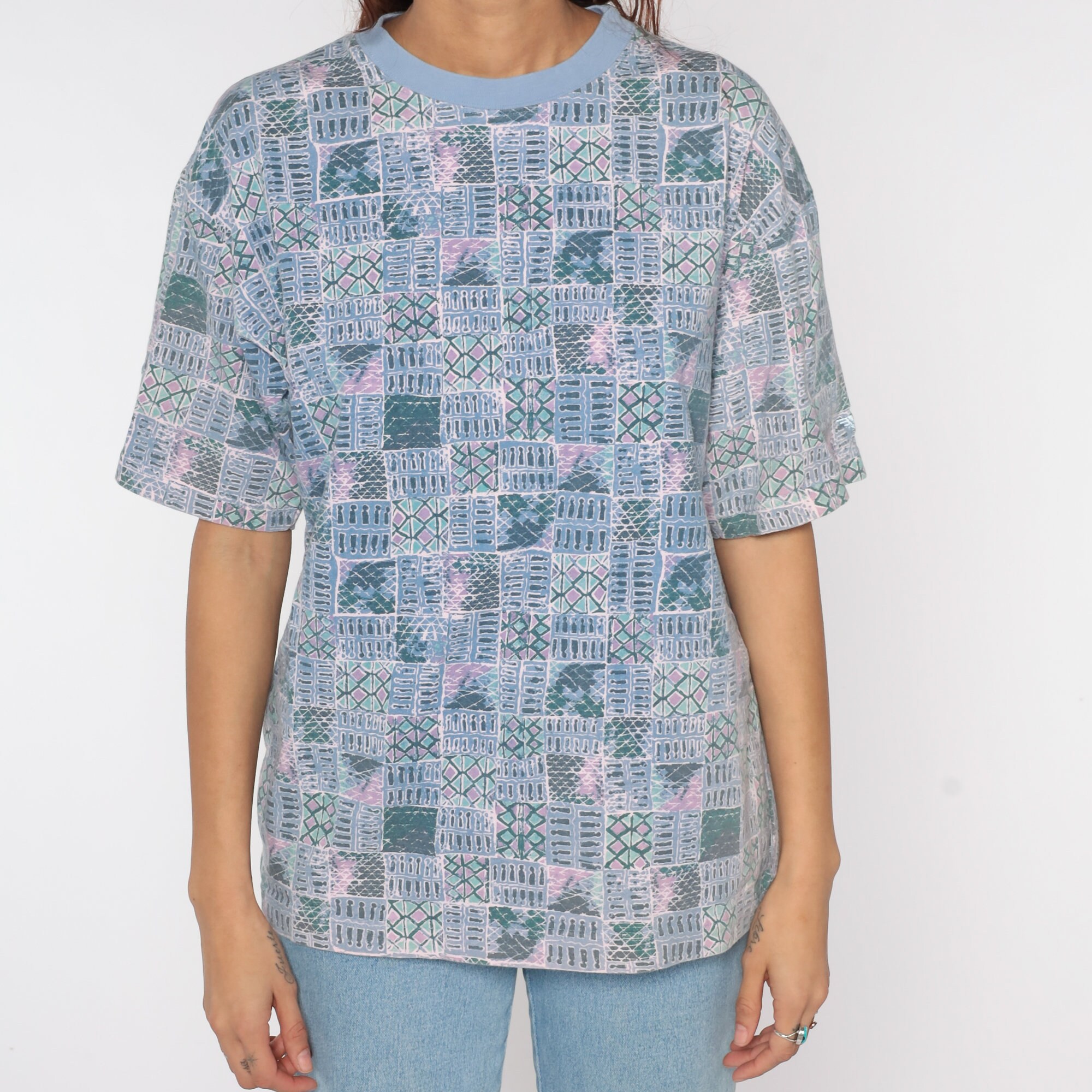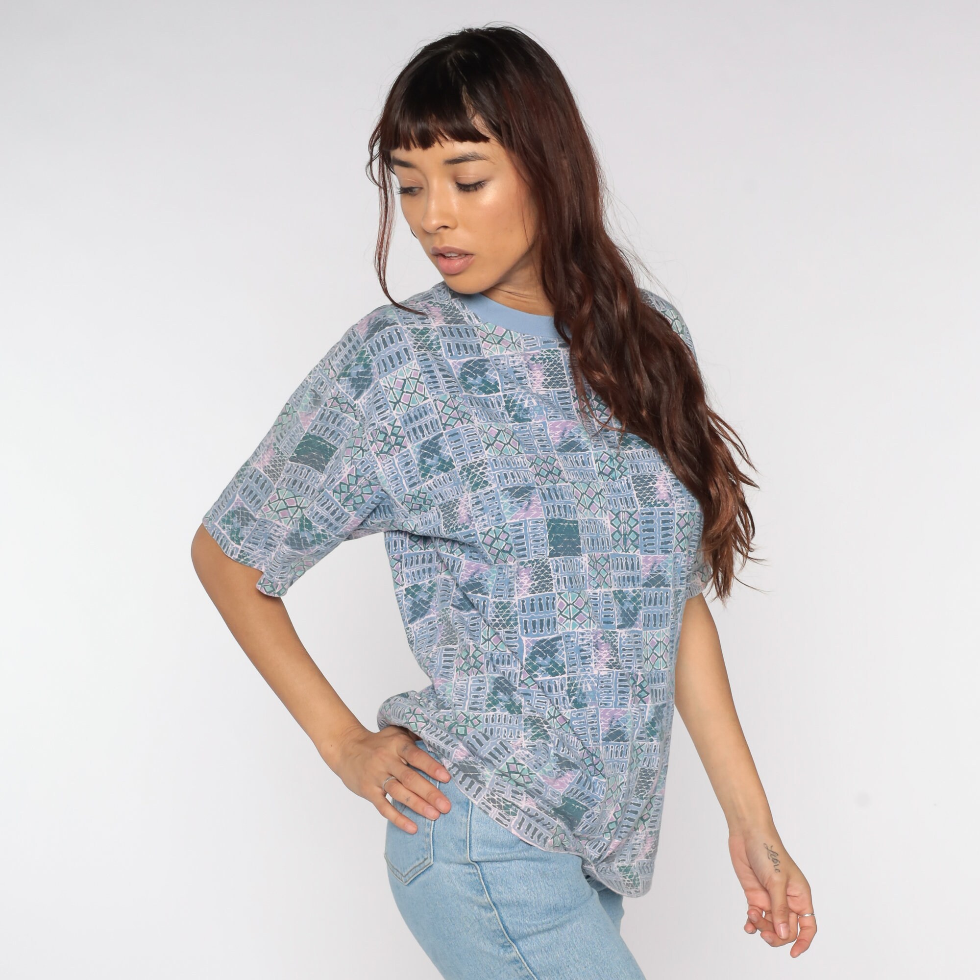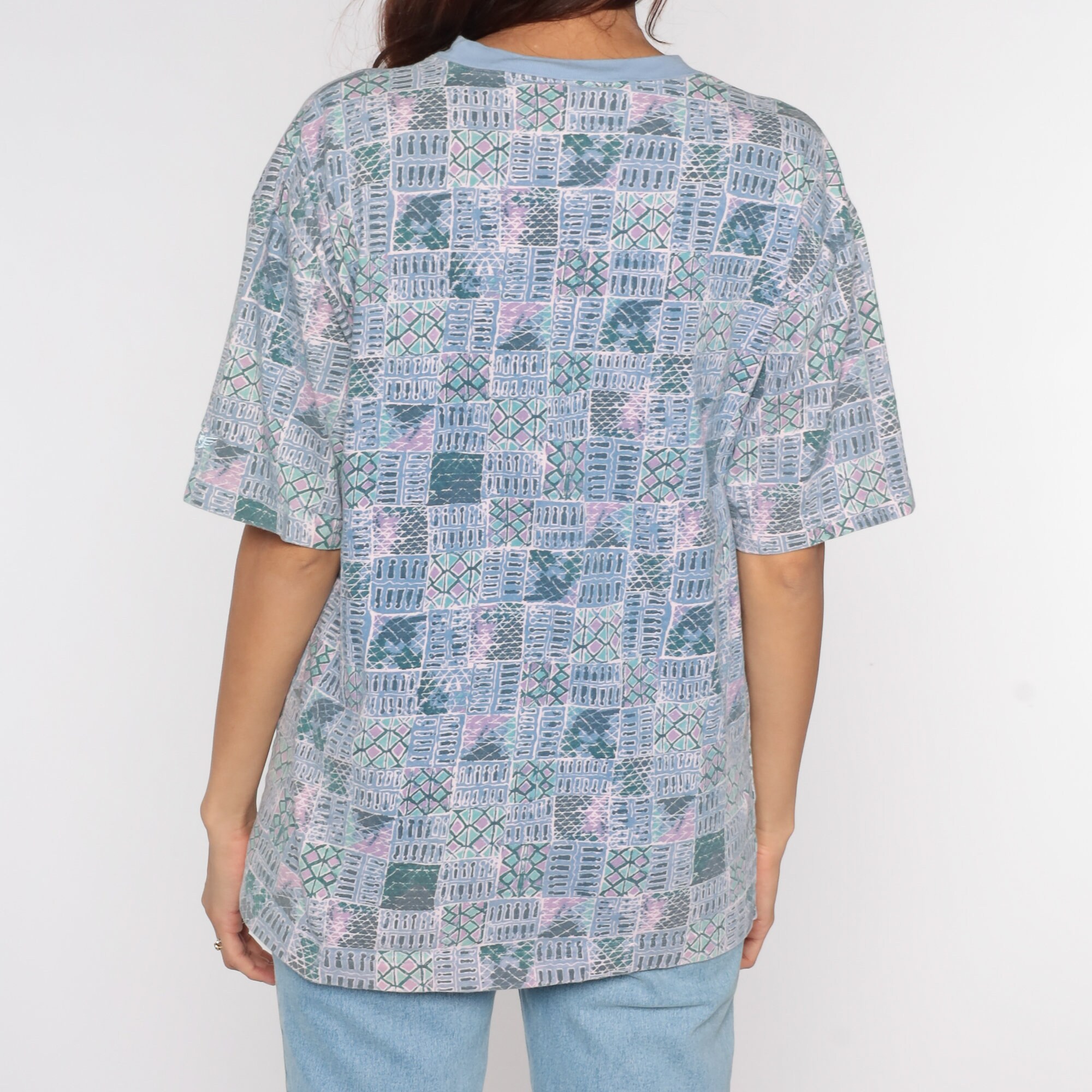 Vintage 90s t shirt with a geometric print and short sleeves.