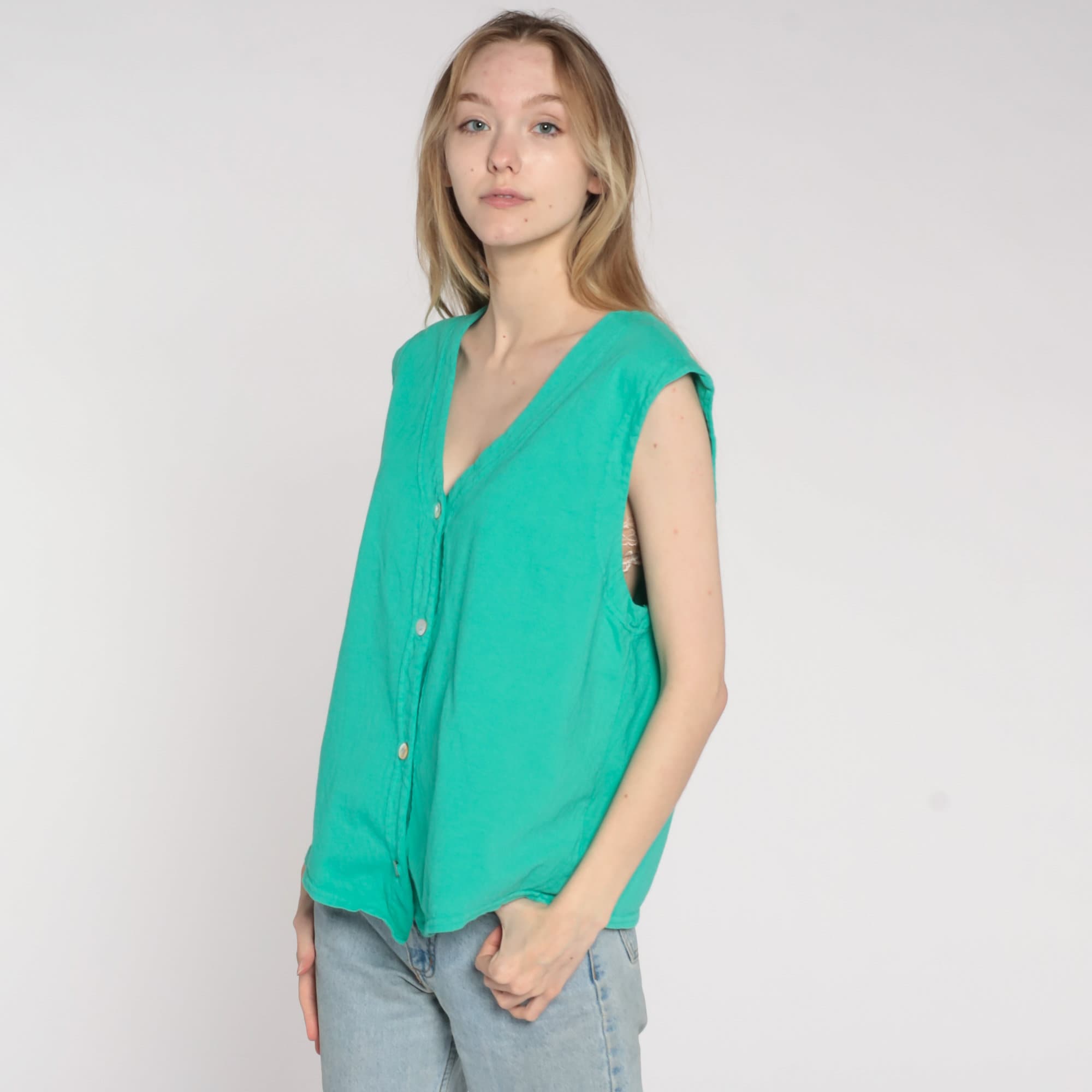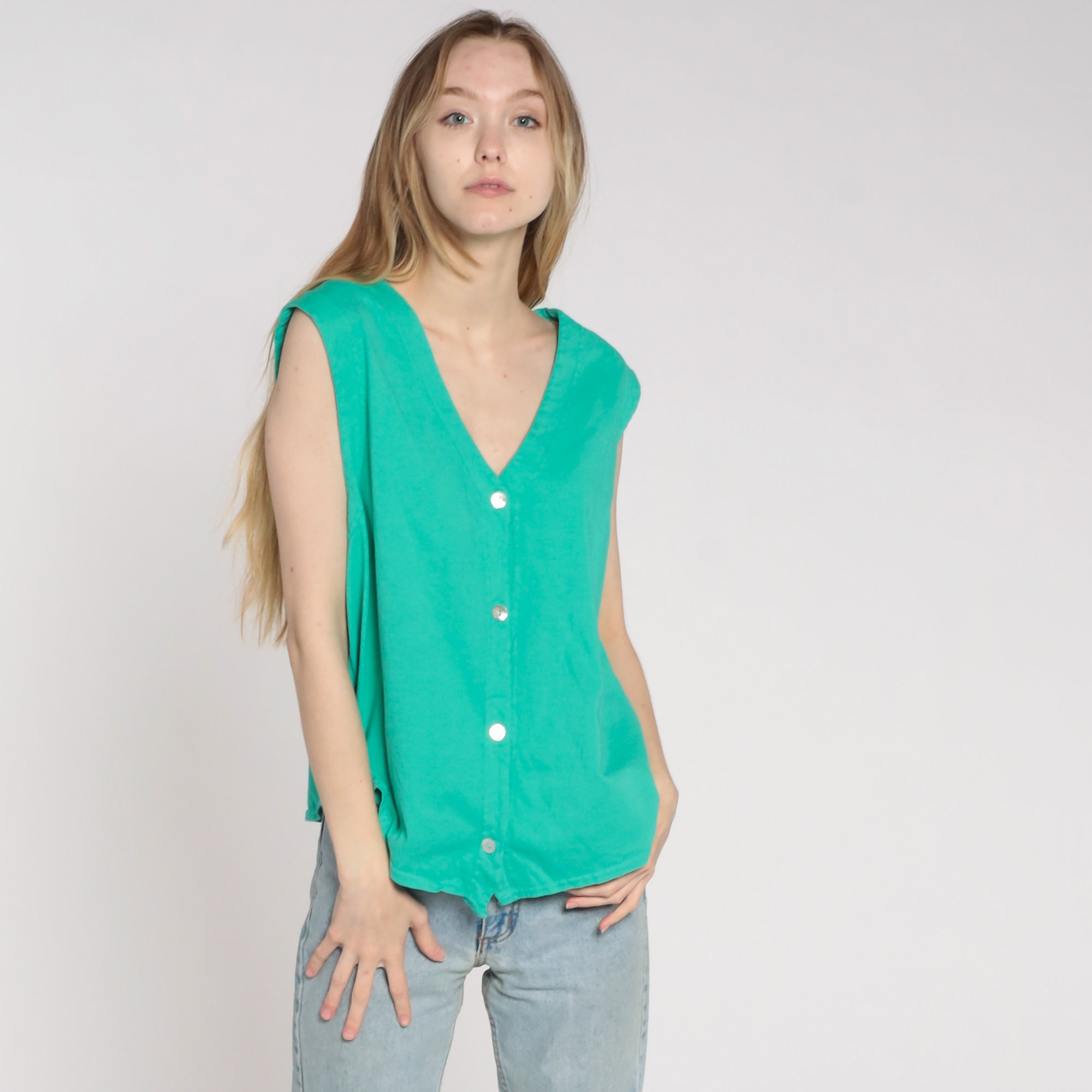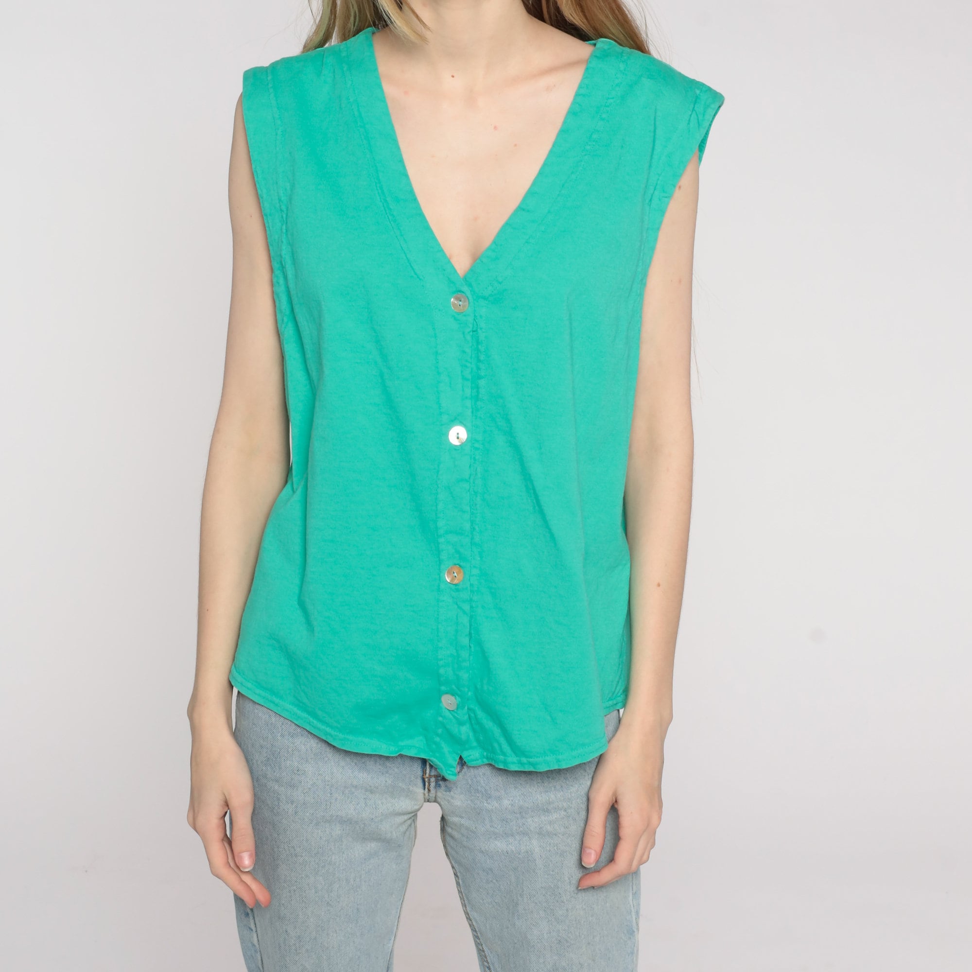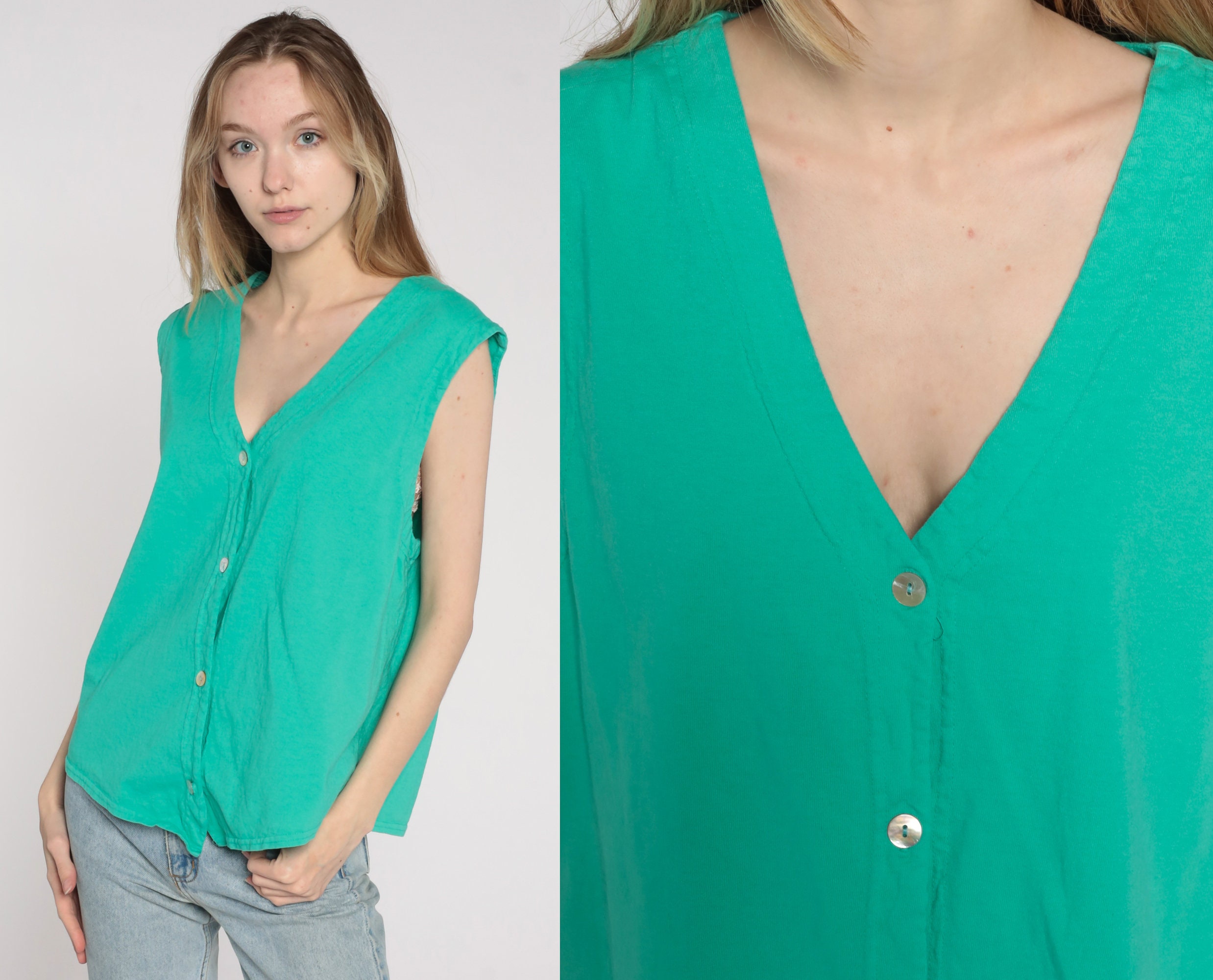 Vintage 90s blouse in green with buttons up the front.