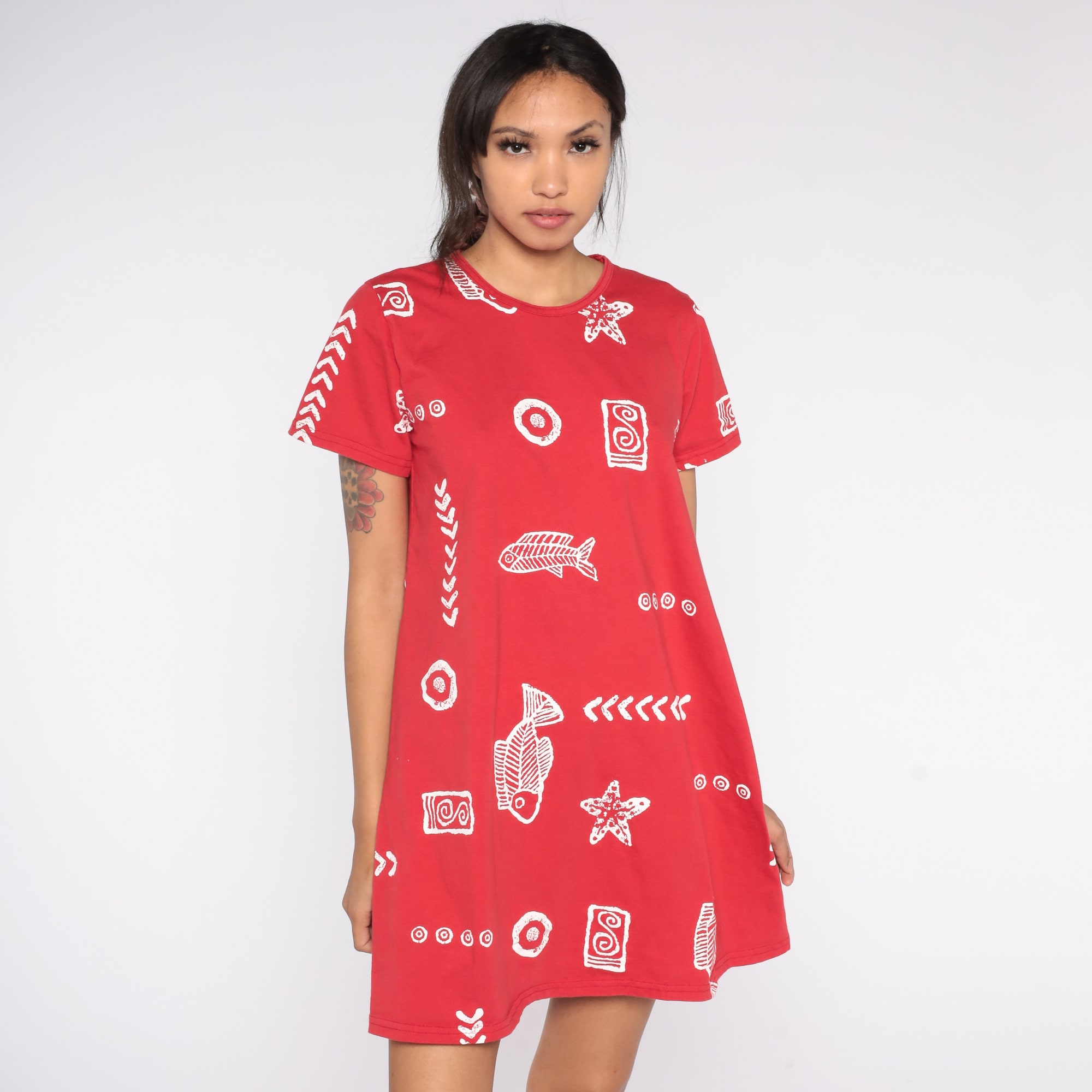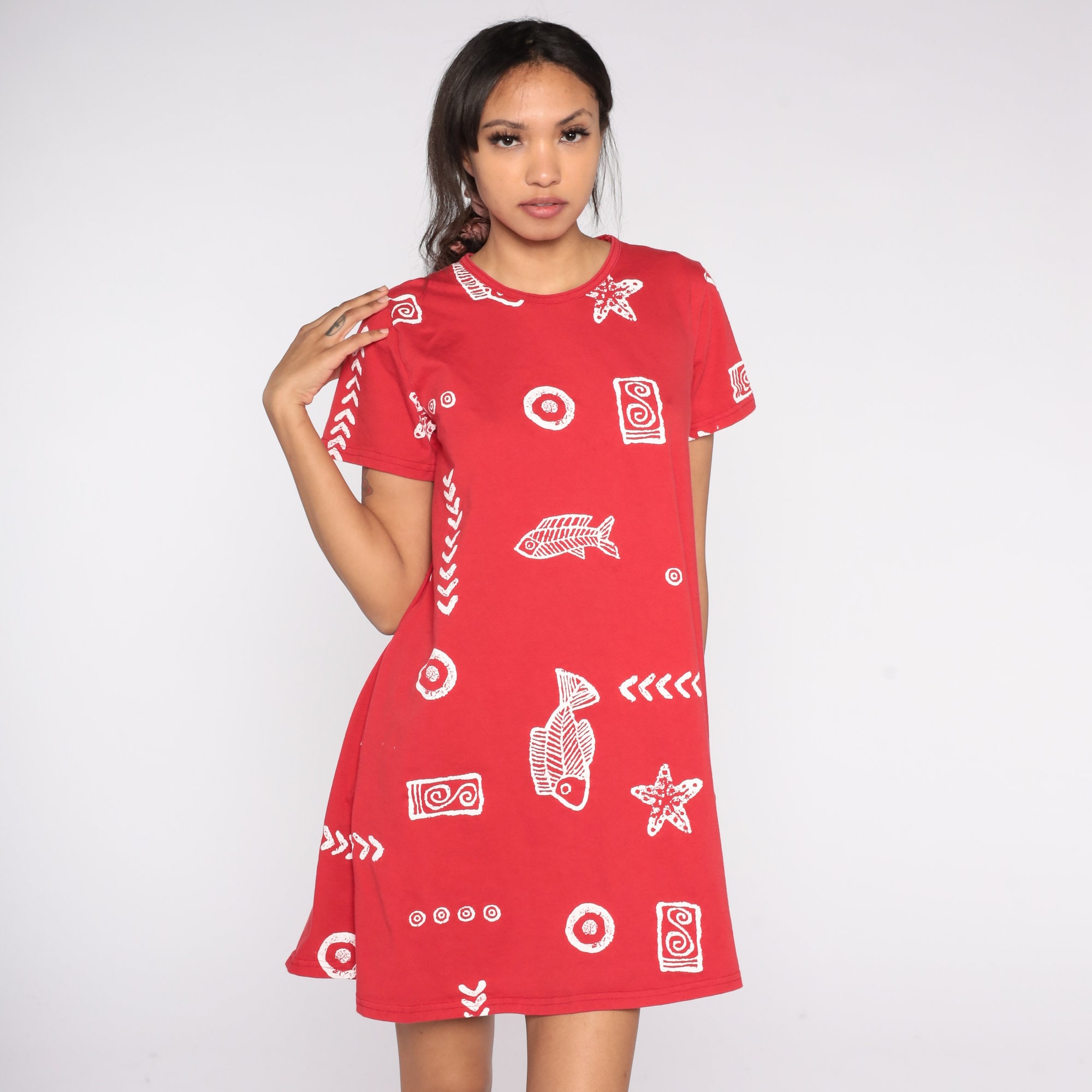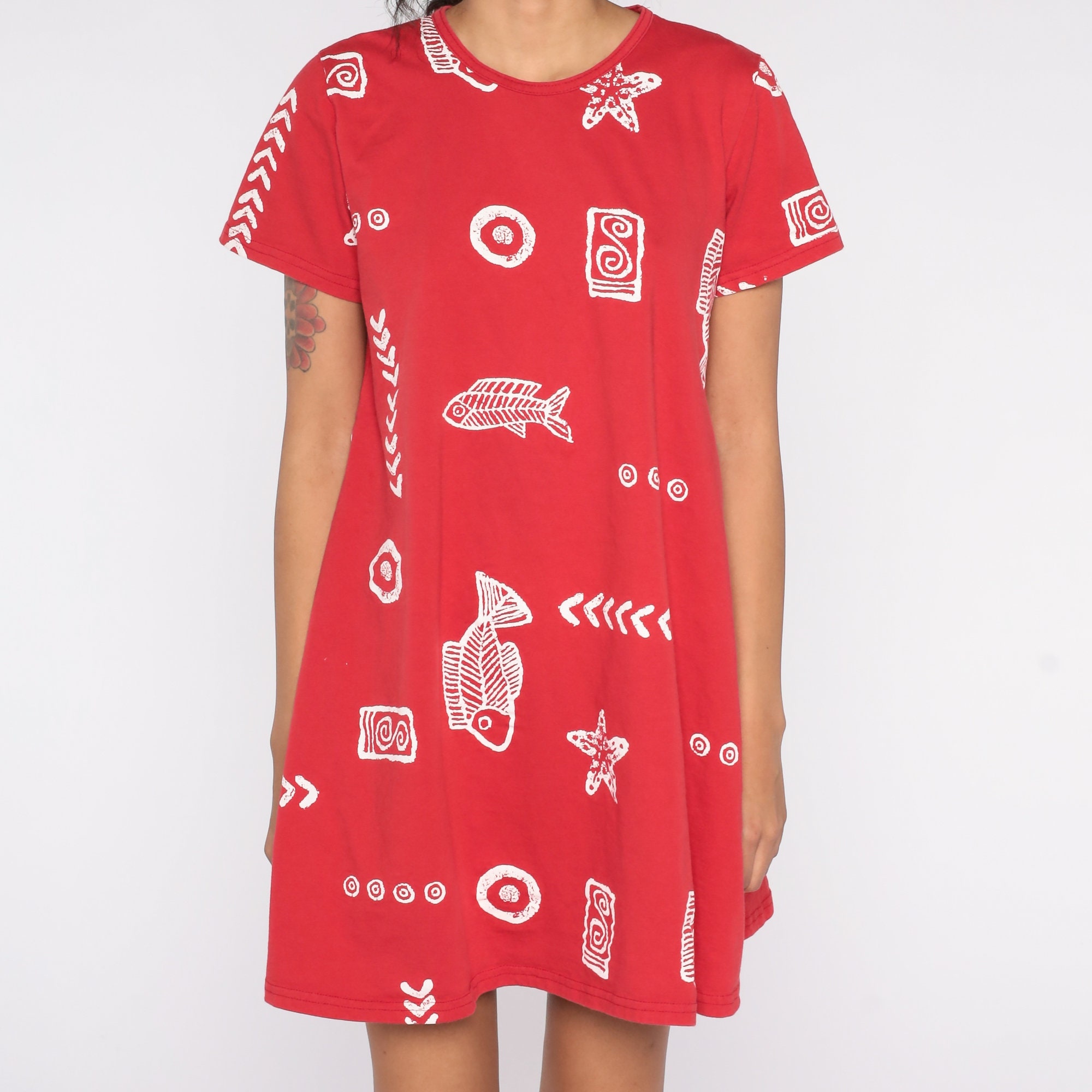 Vintage 90s dress with a fish and seashell print.