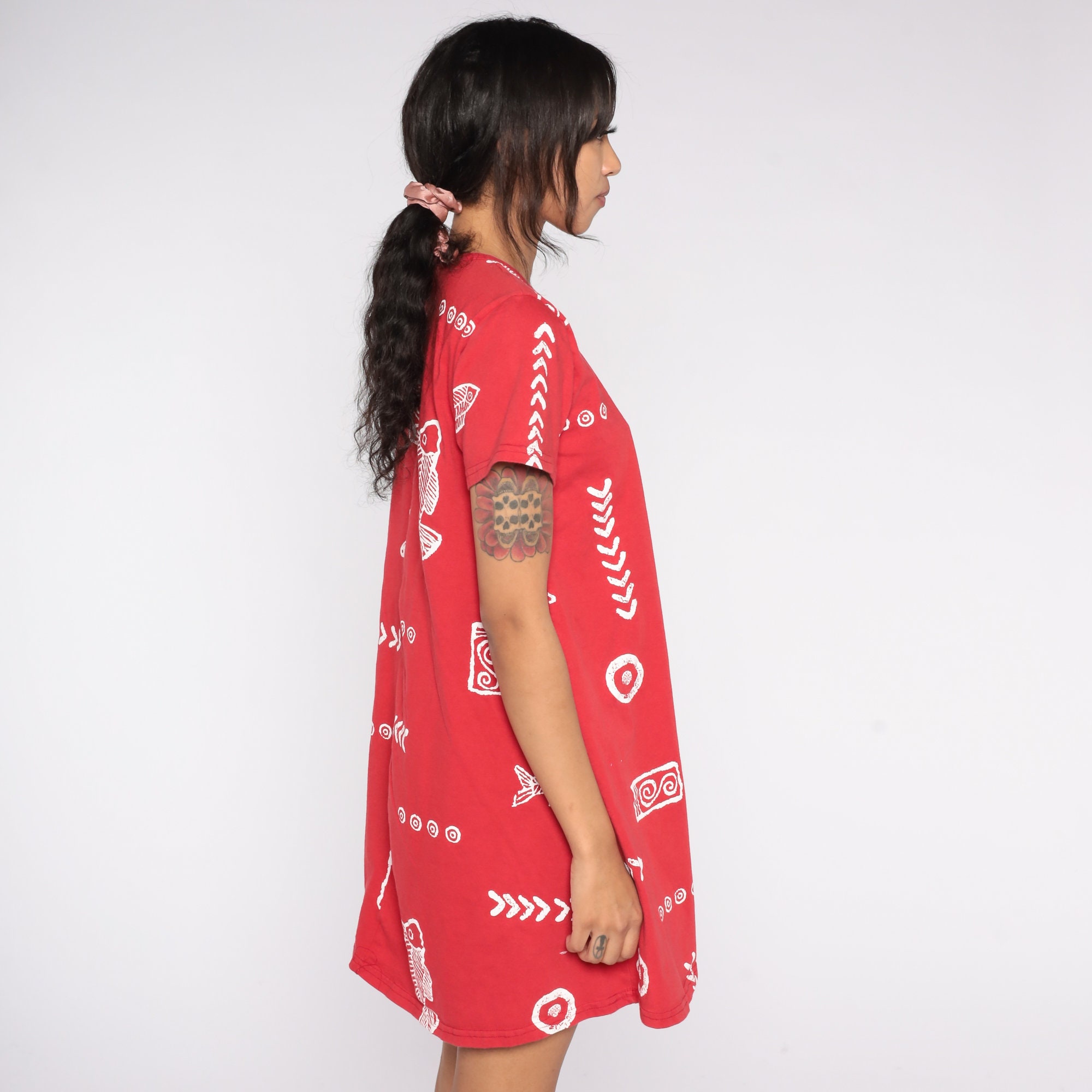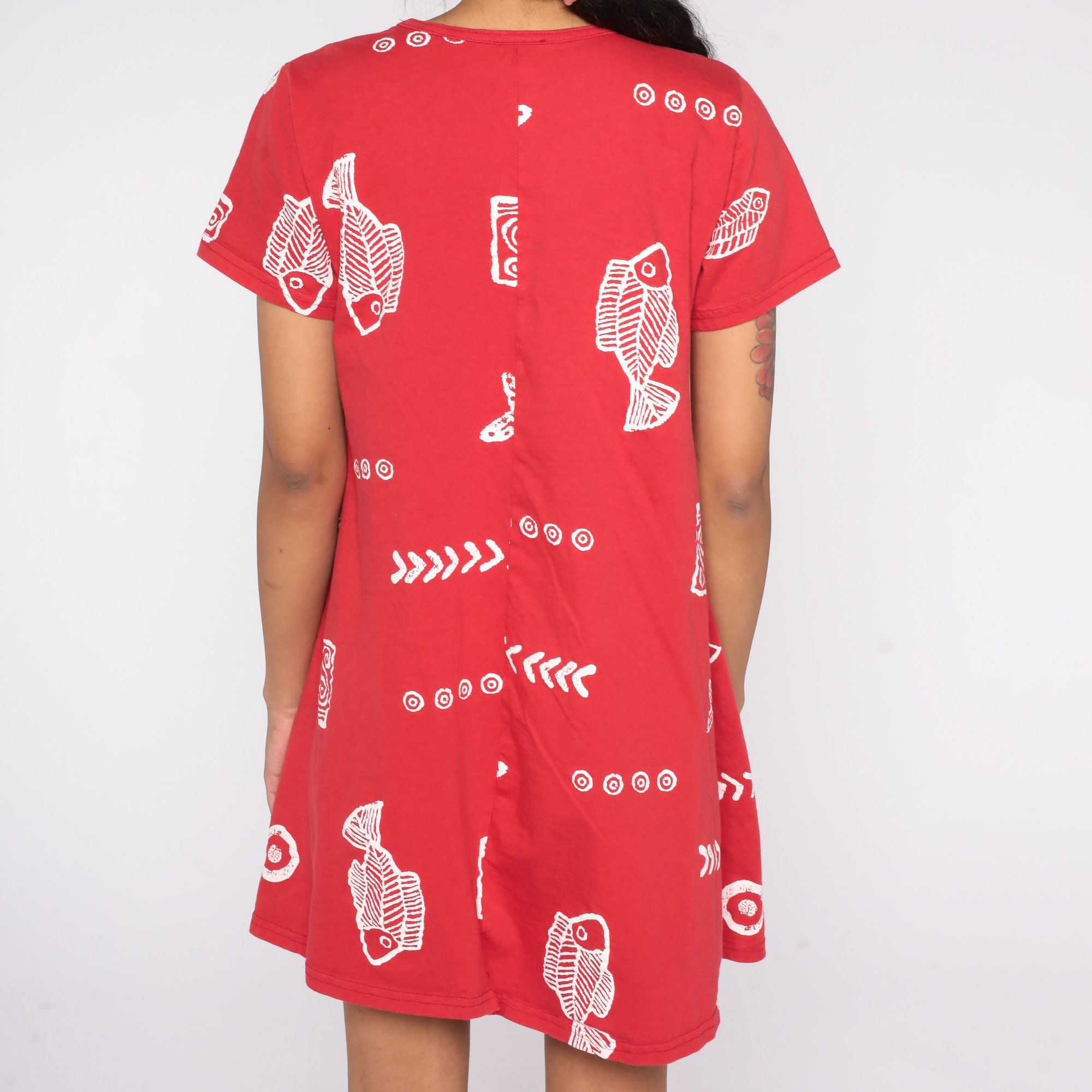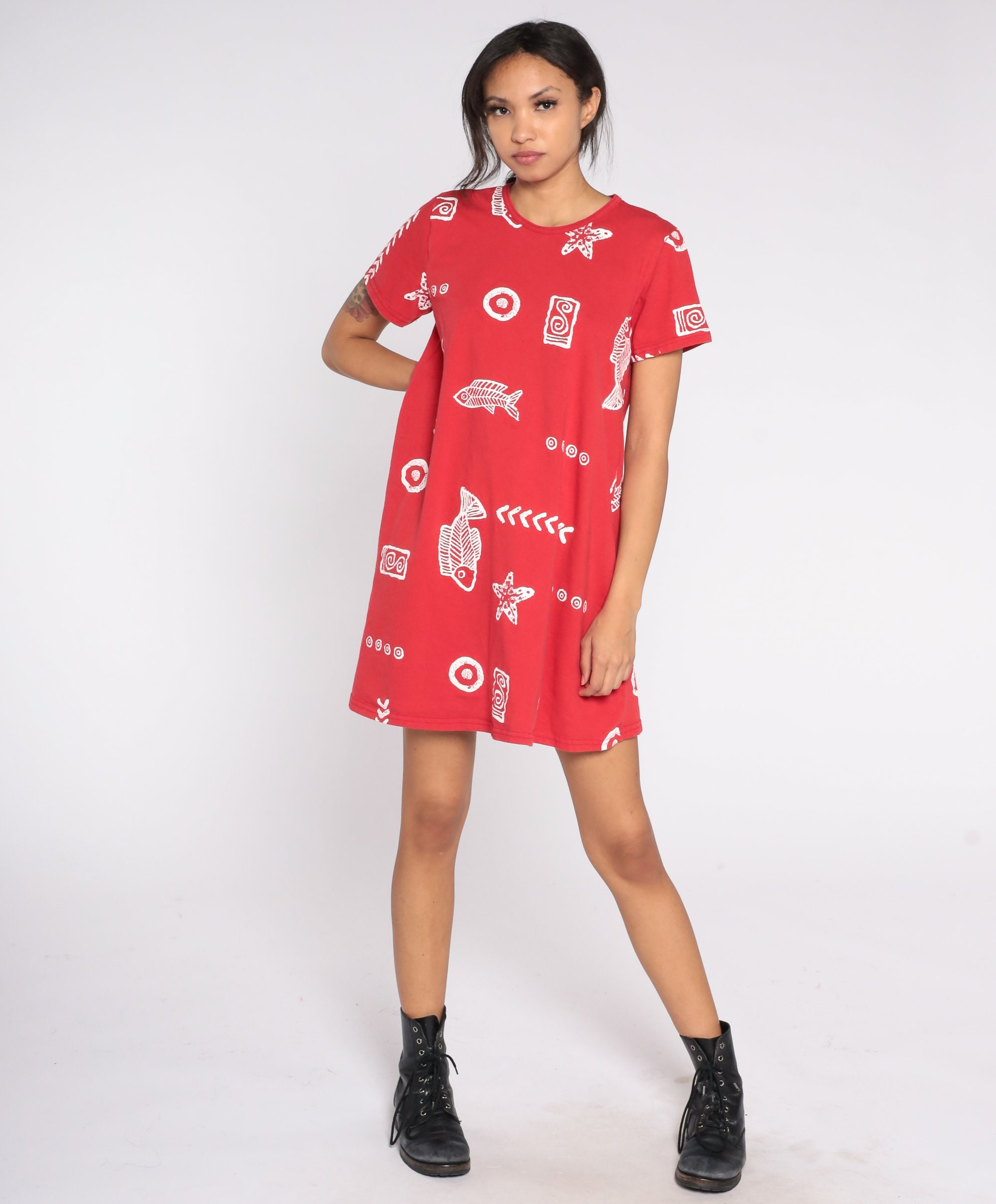 Vintage 90s dress with a fish and seashell print.