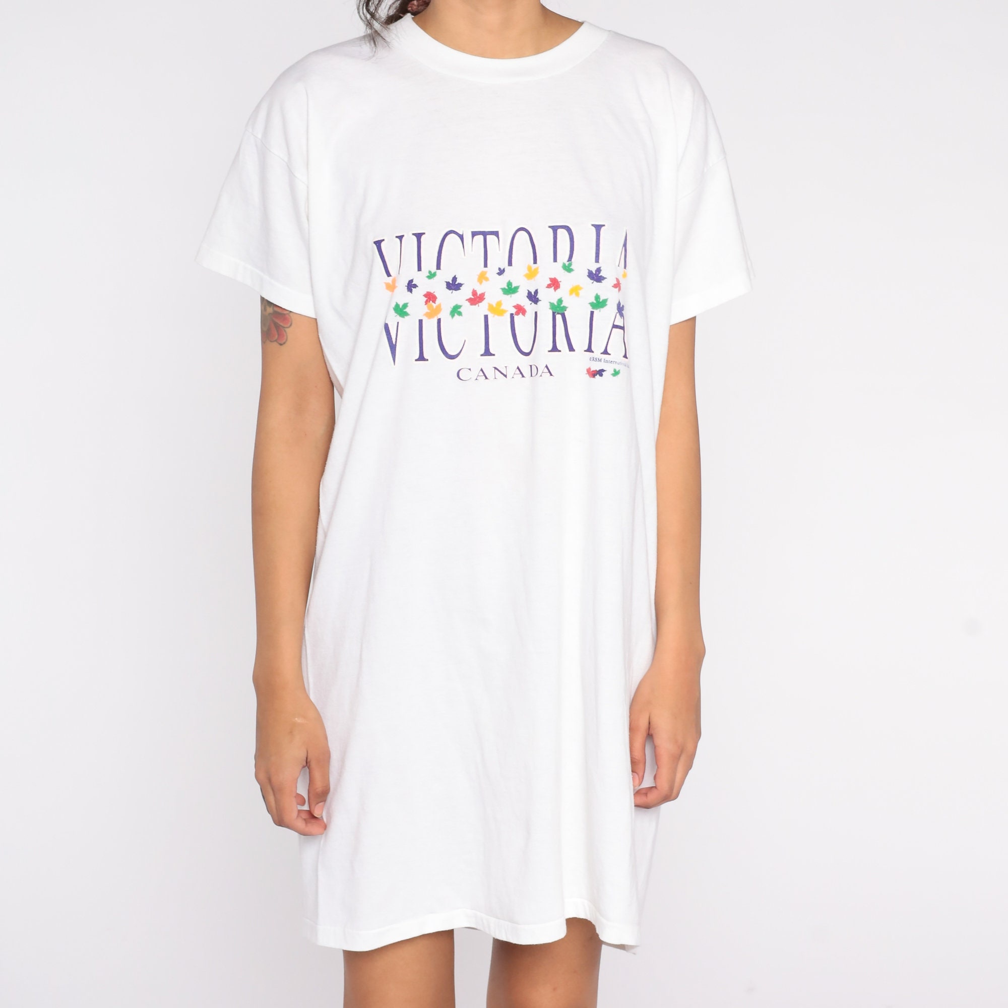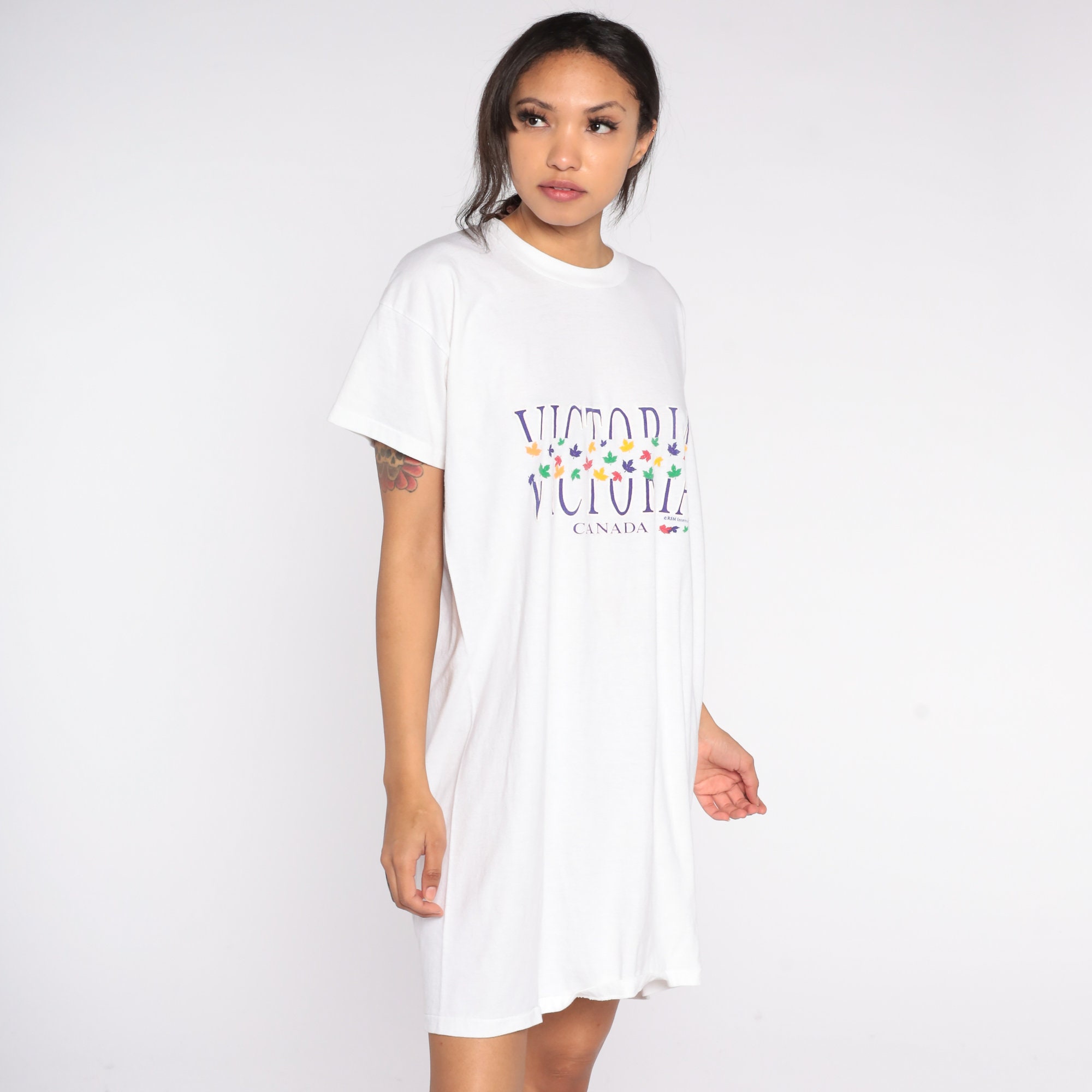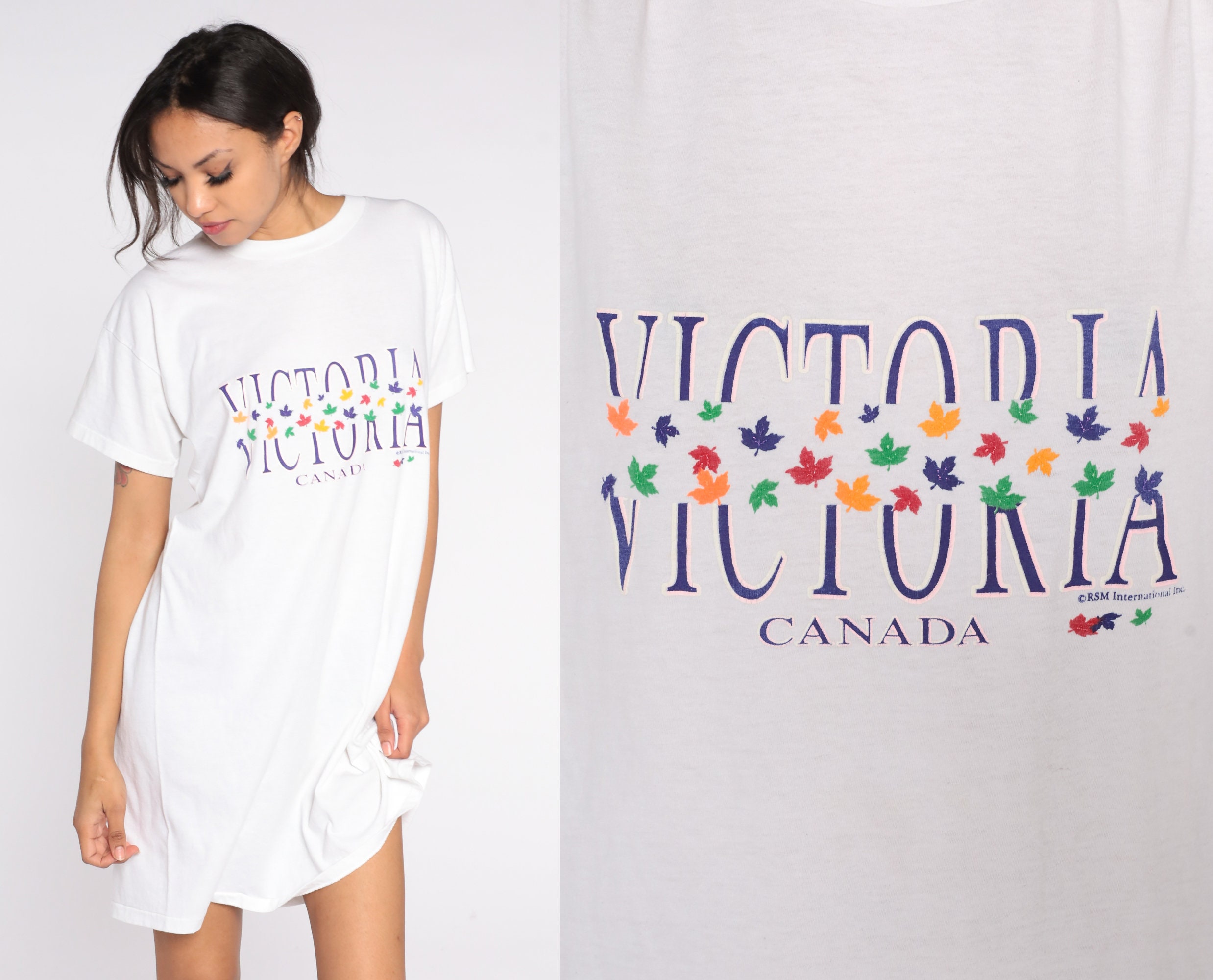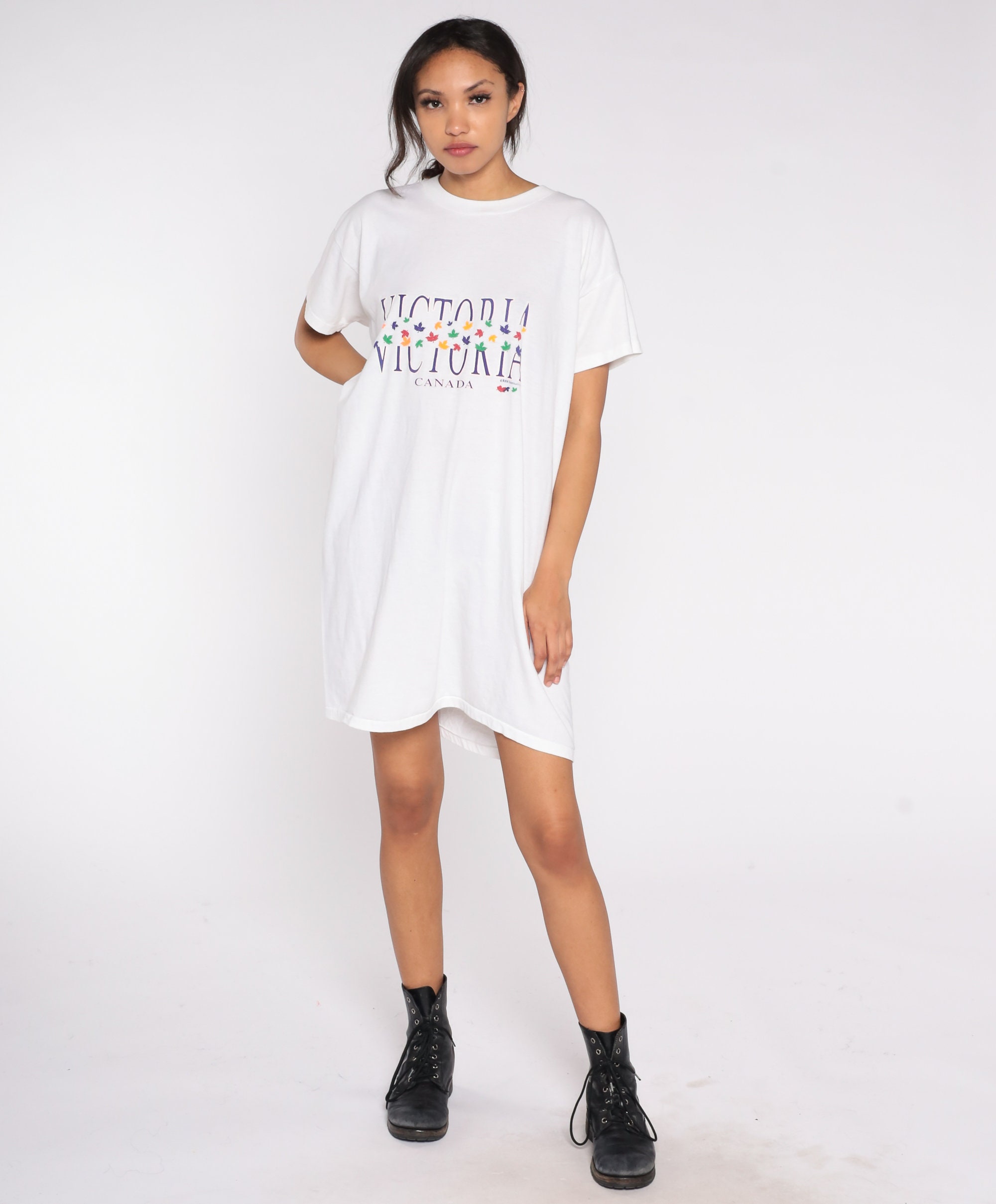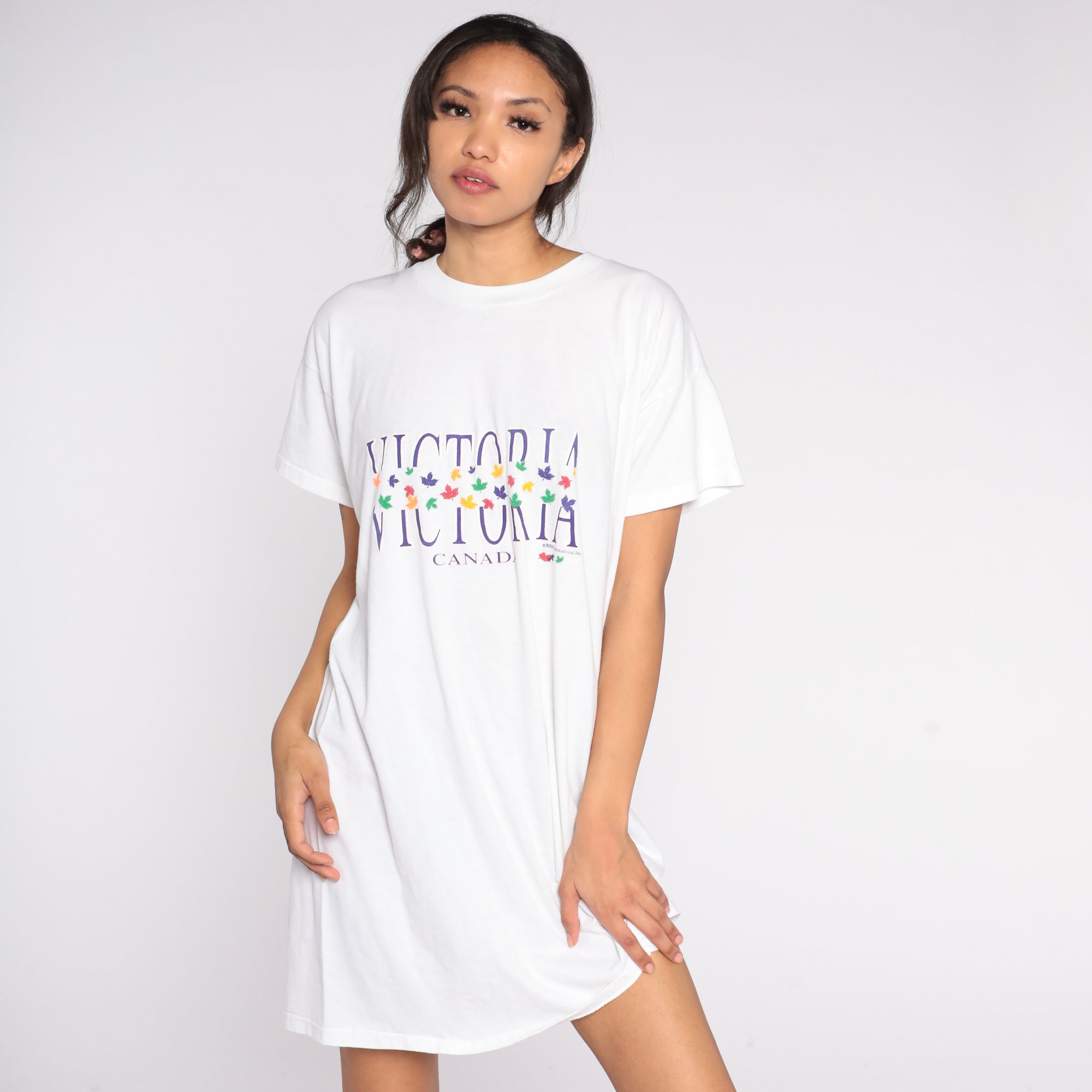 Vintage 90s t shirt dress with a Victoria, Canada print.