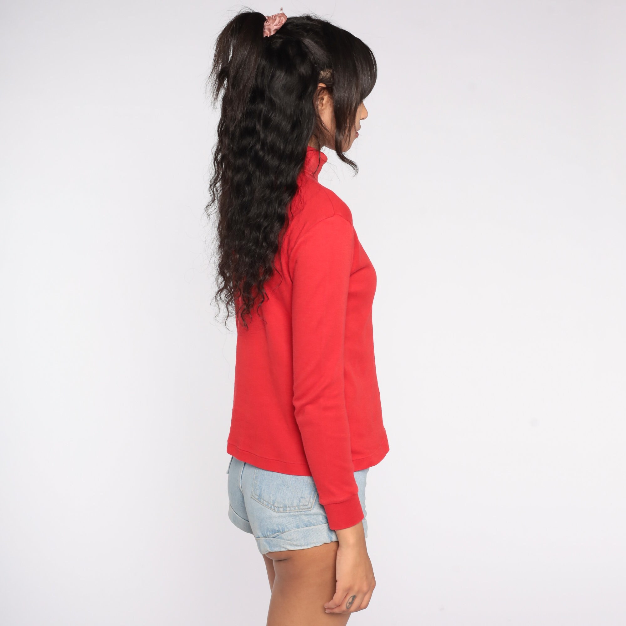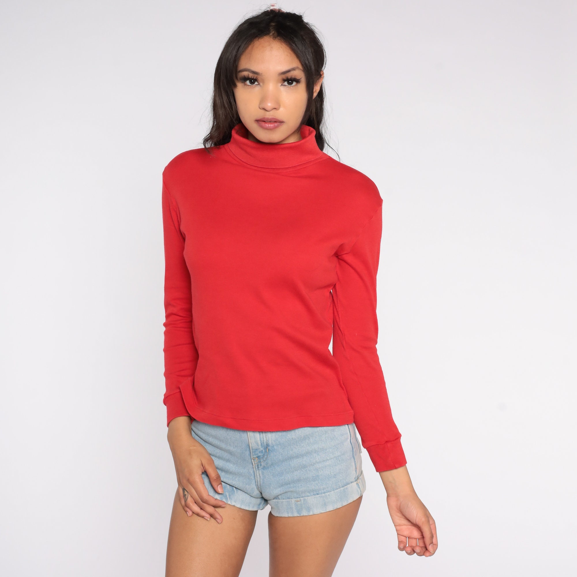 Vintage 90s shirt in red with long sleeves and a turtleneck.