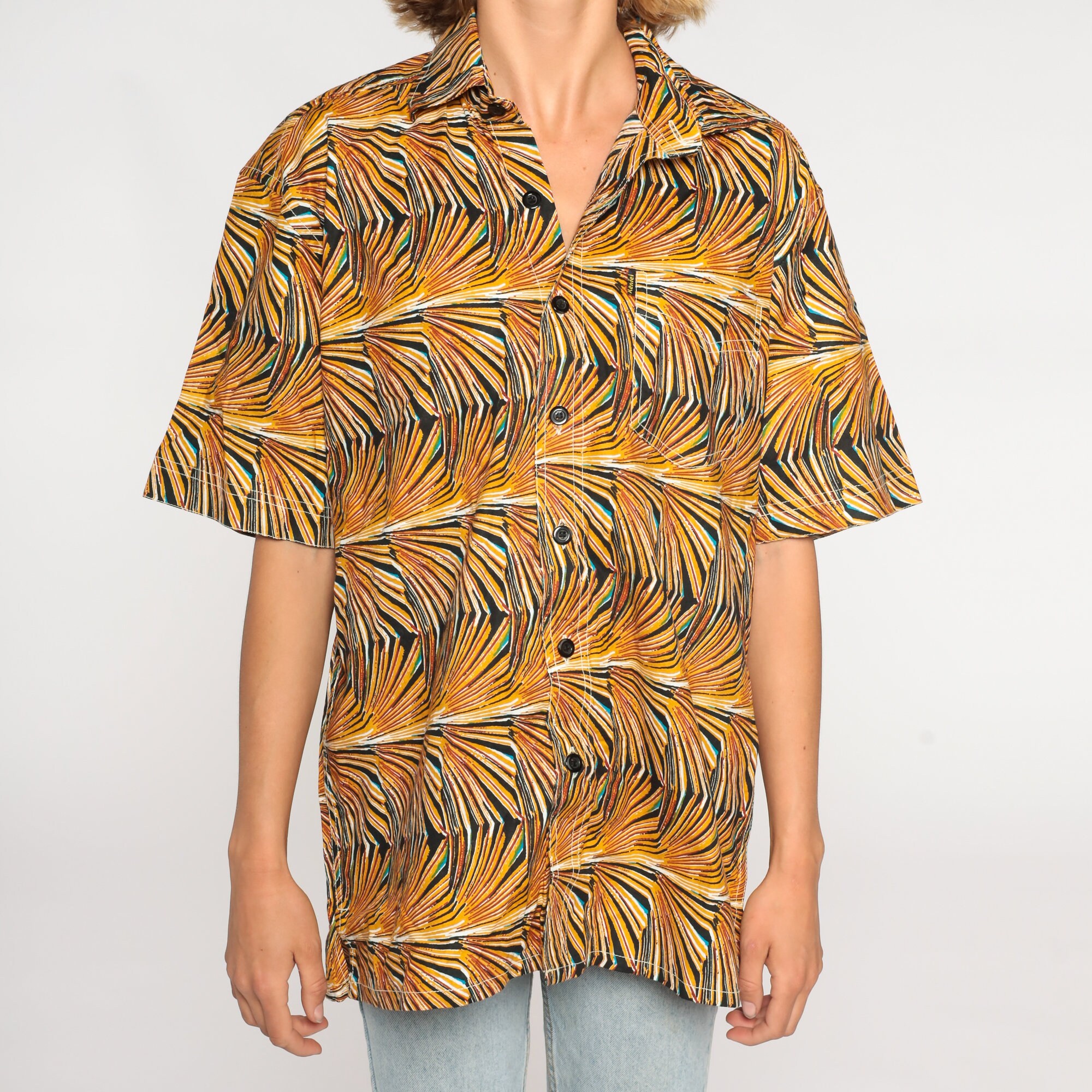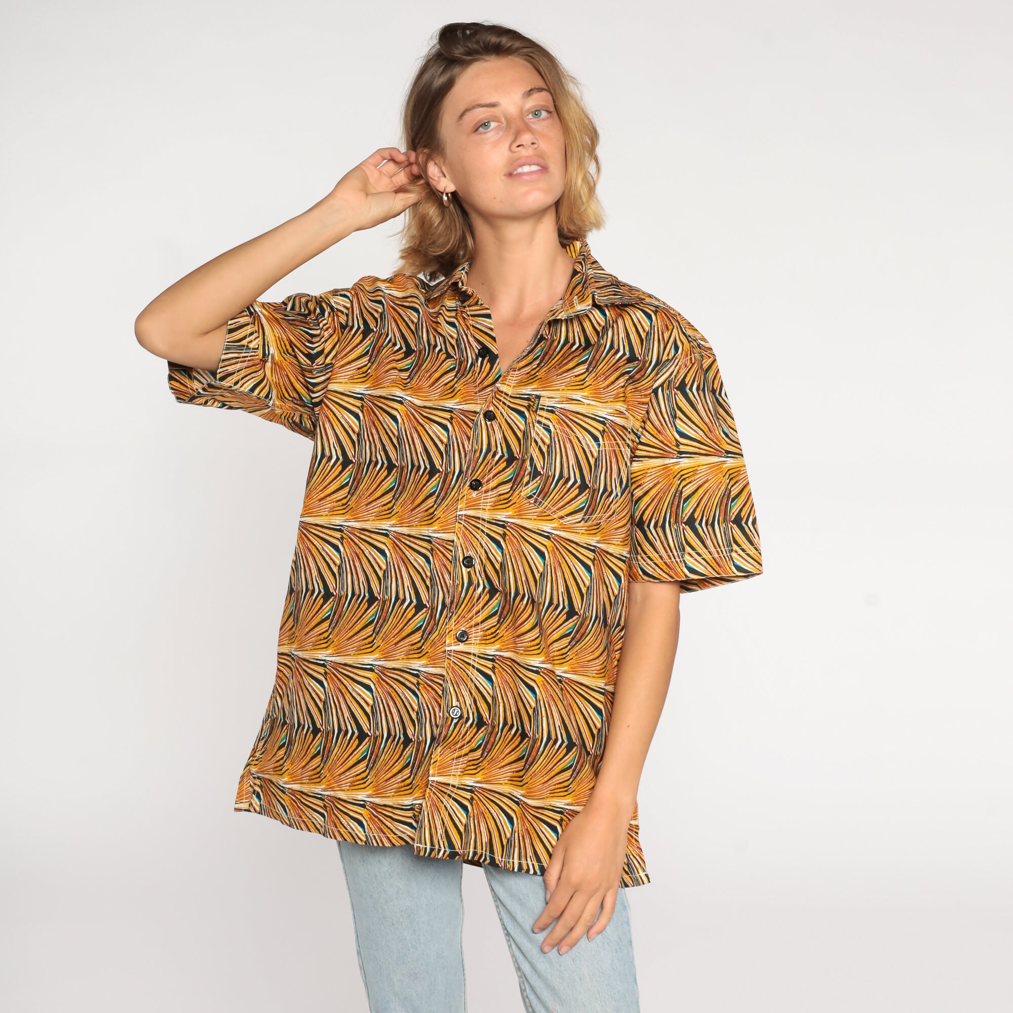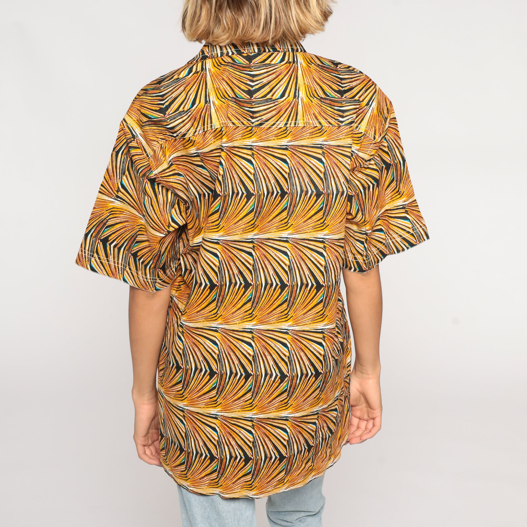 Vintage 80s shirt in an abstract print. Buttons up the front with short sleeves.
